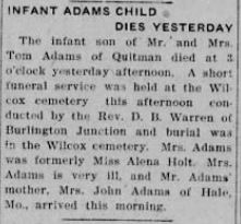 | Adams, Charlie David of Clarinda |