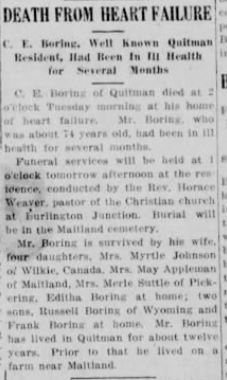 | Boring, C.E. | died | 1918 | MDF | Mar 6, 1918 | |
