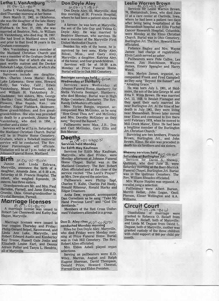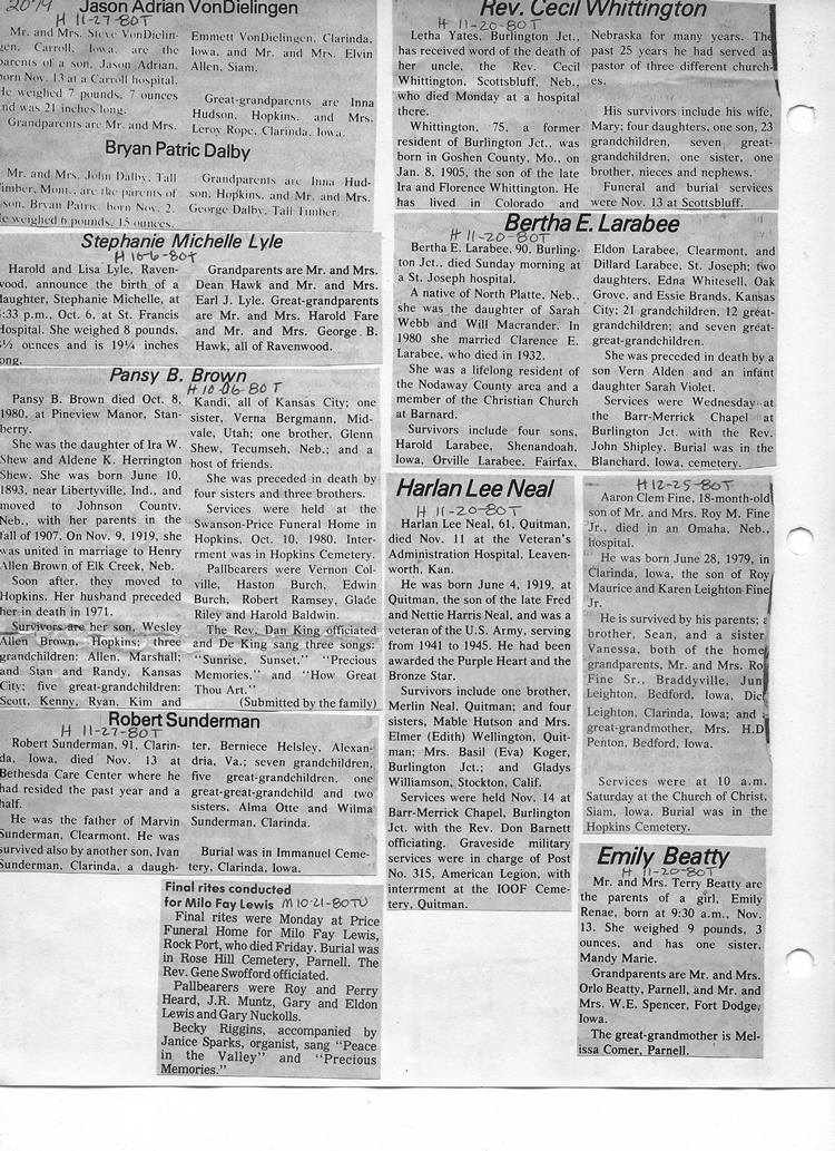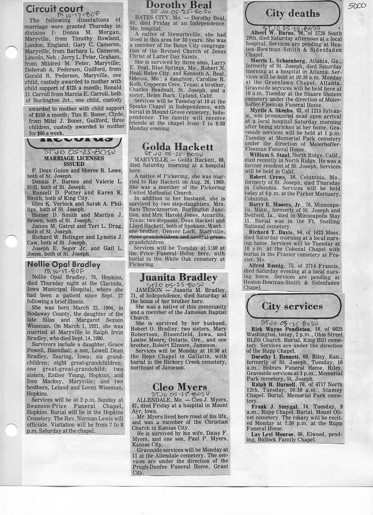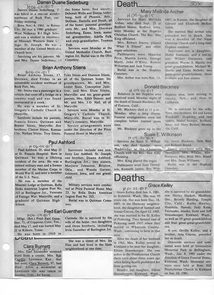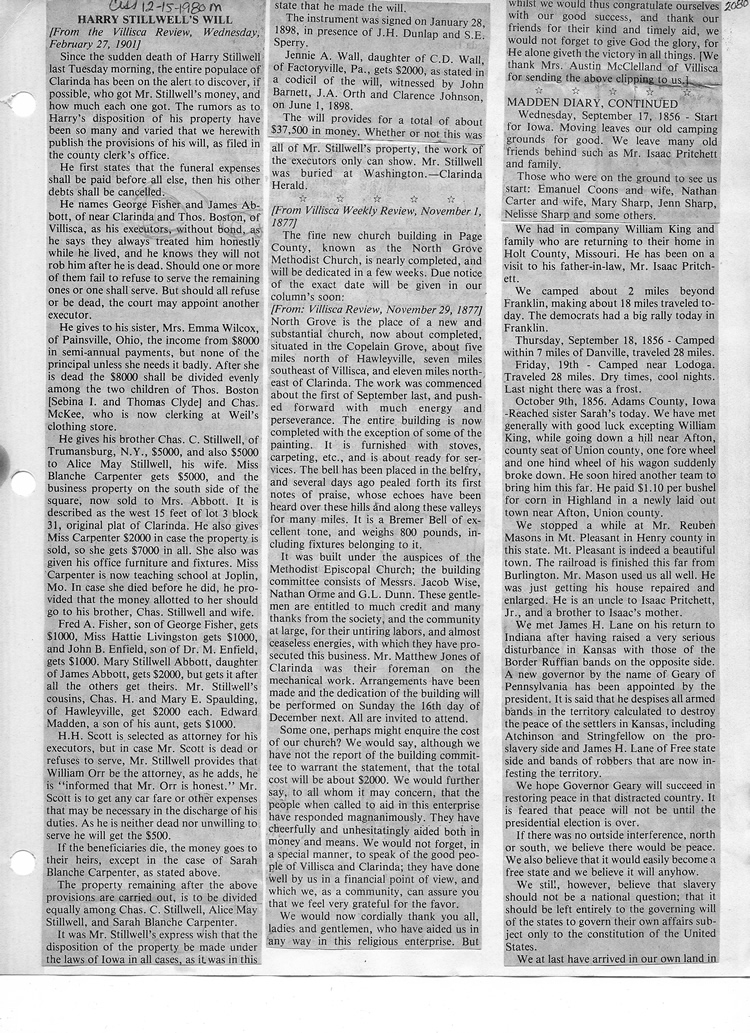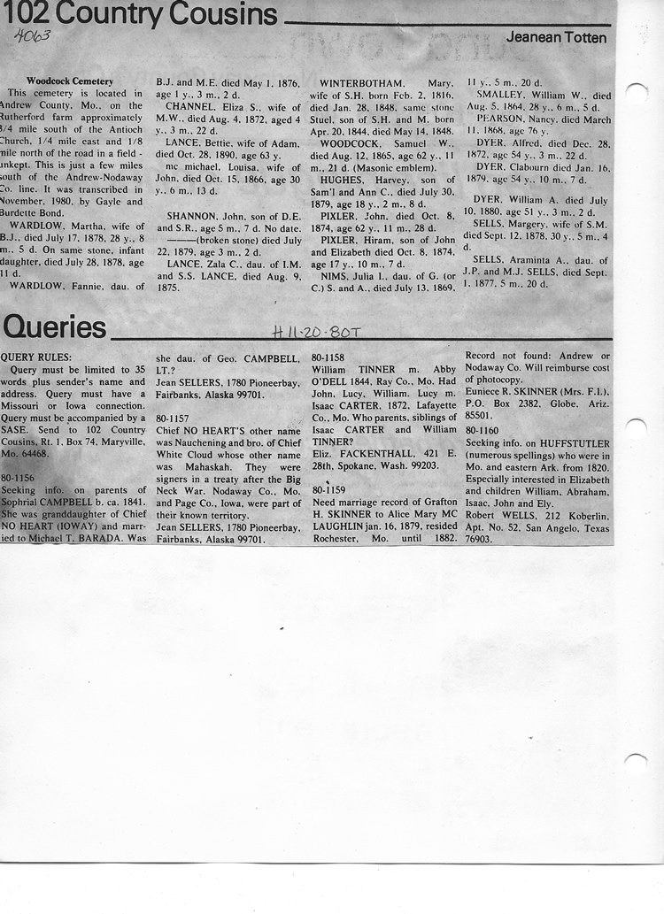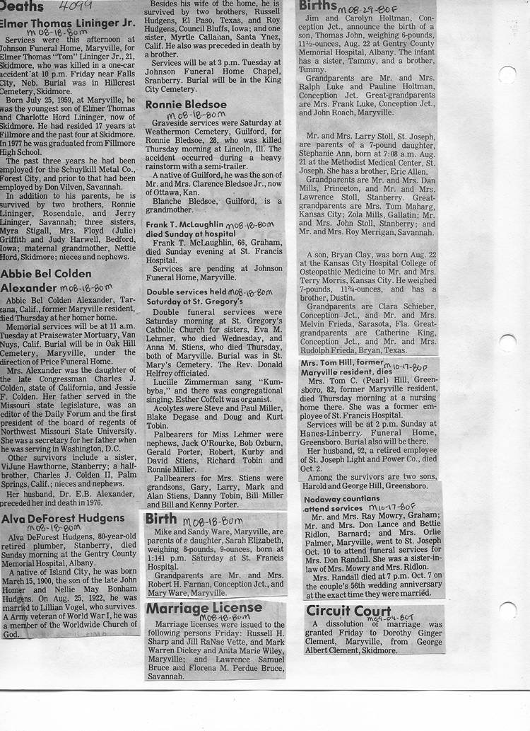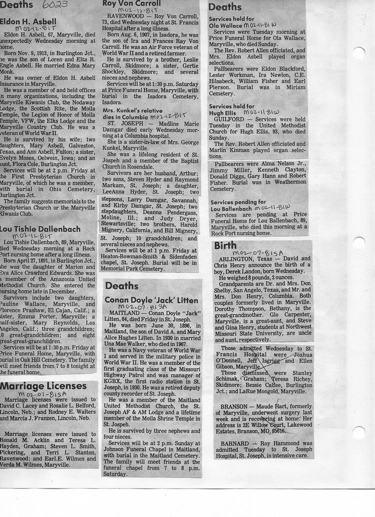 O'Dell's Abstracted Newspaper Index - Clippings - #2000 - #7000