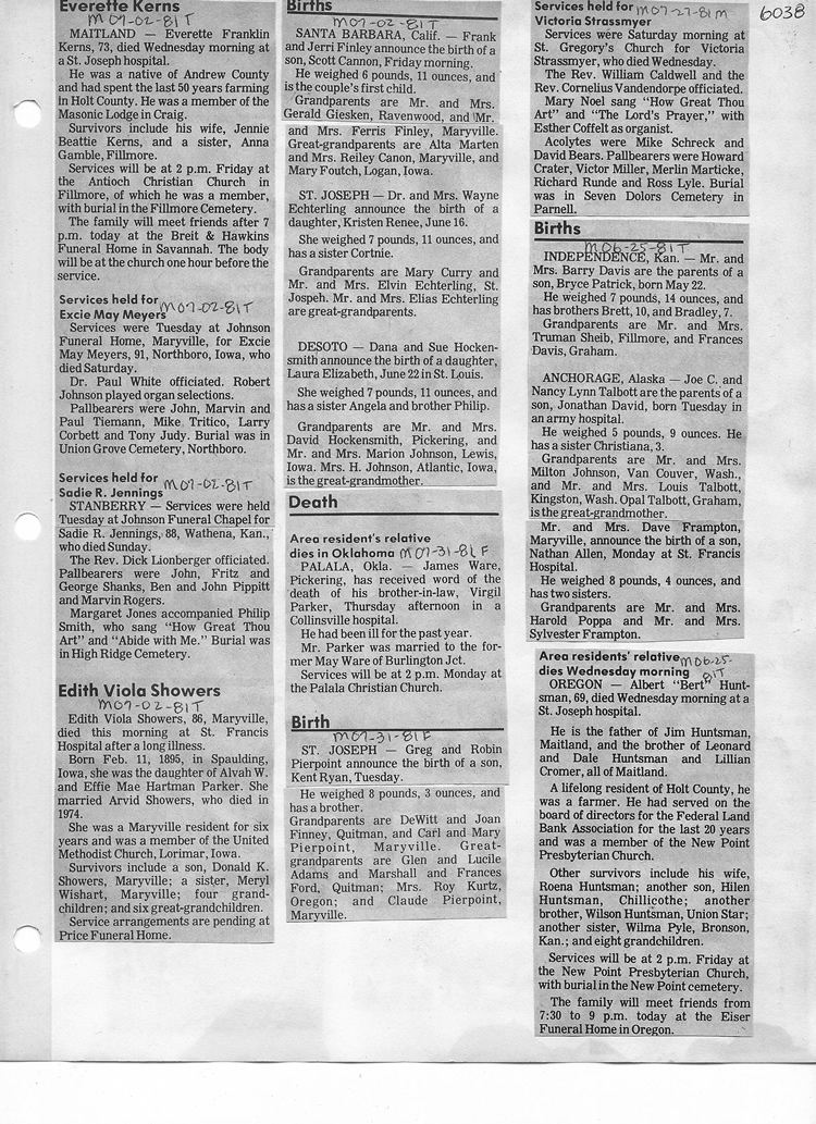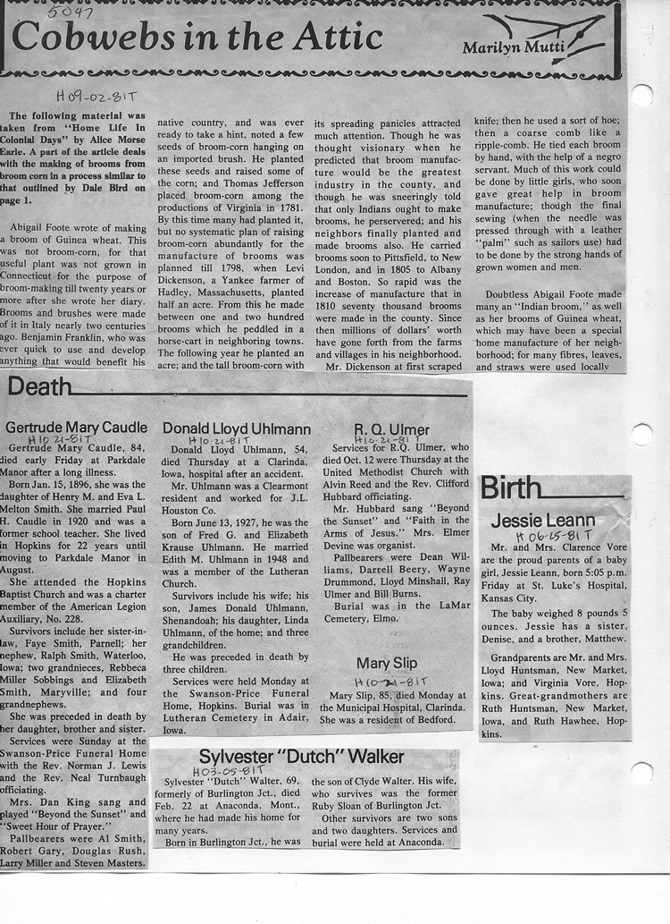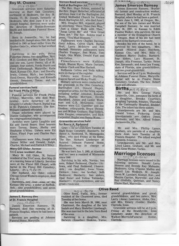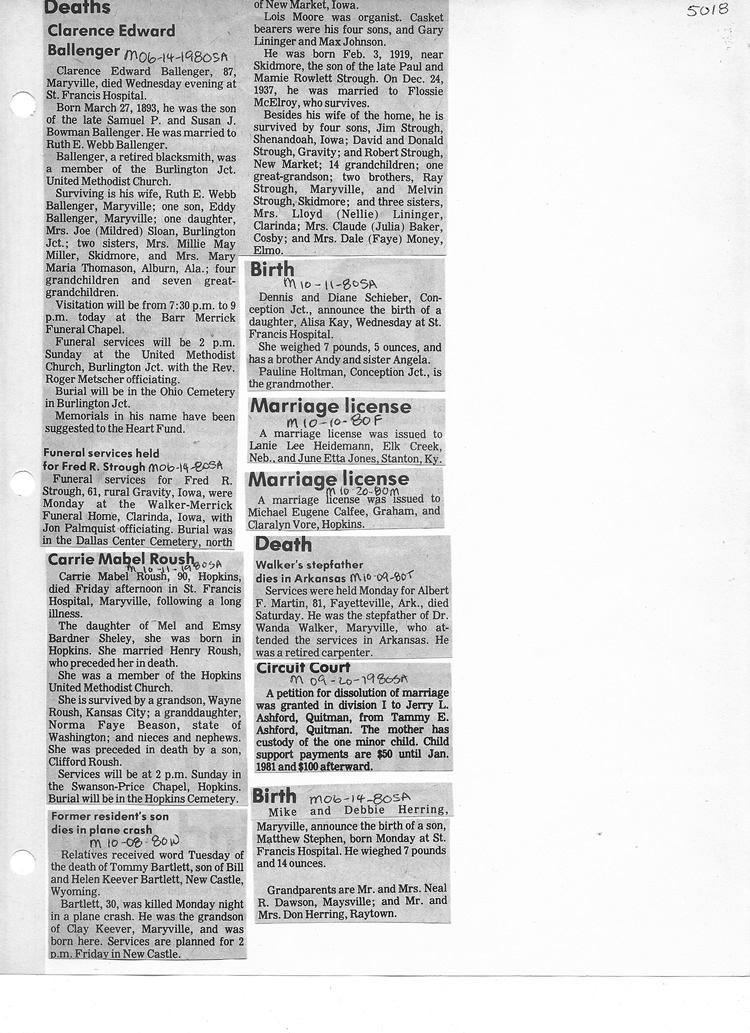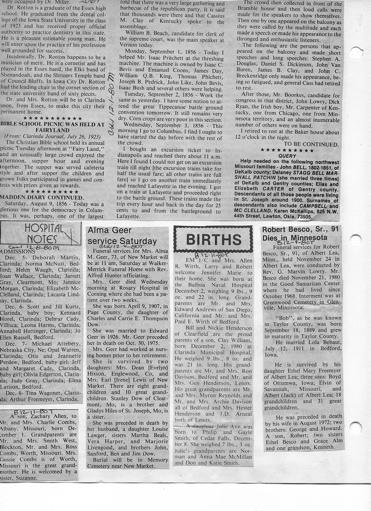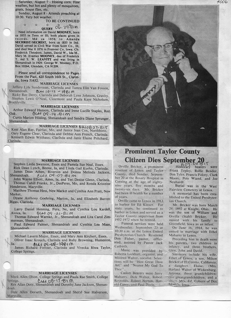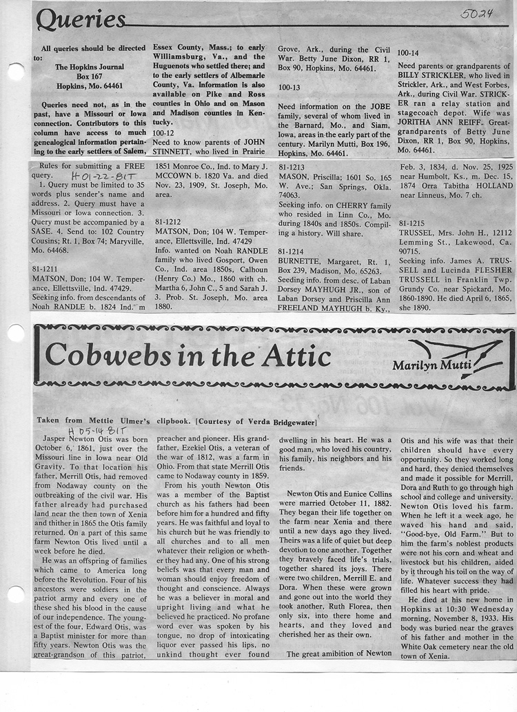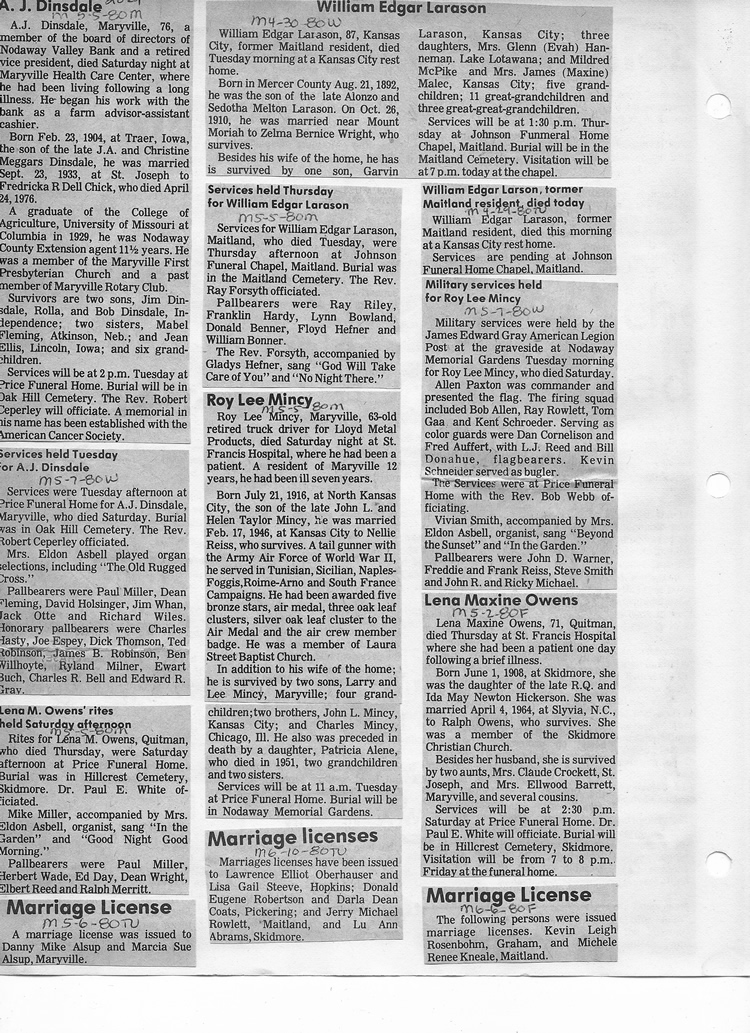 O'Dell's Abstracted Newspaper Index - Clippings - #2000 - #7000