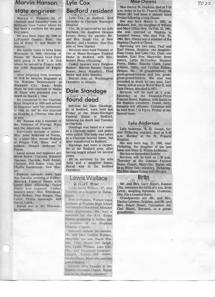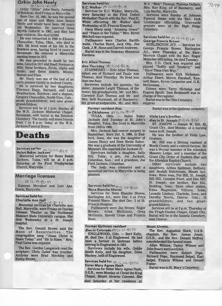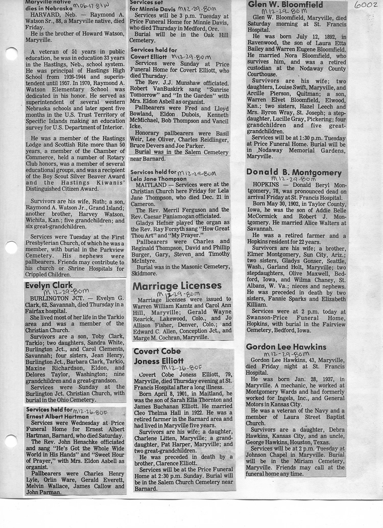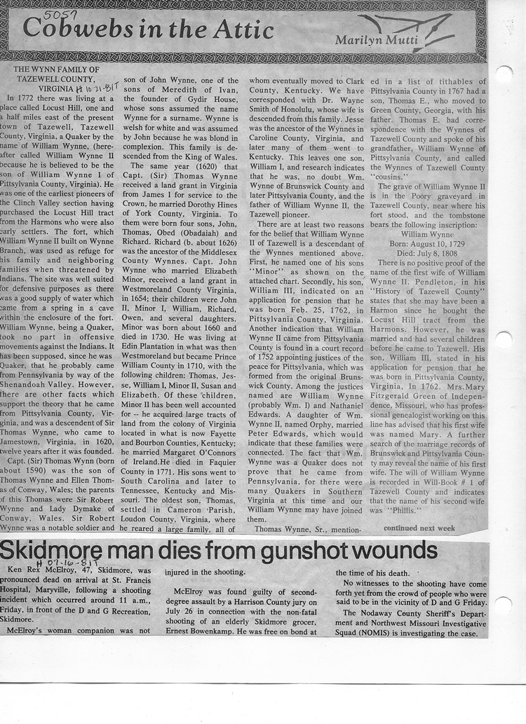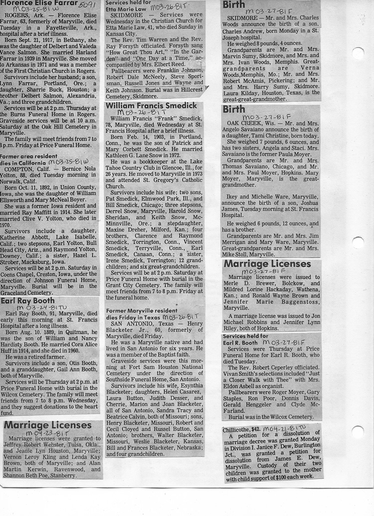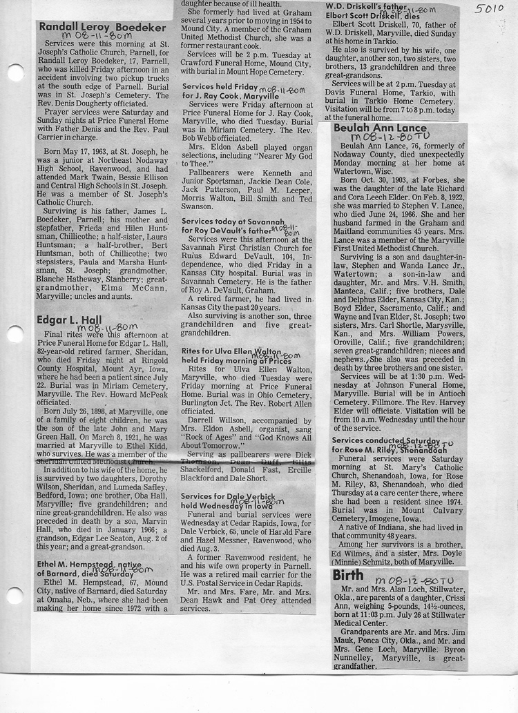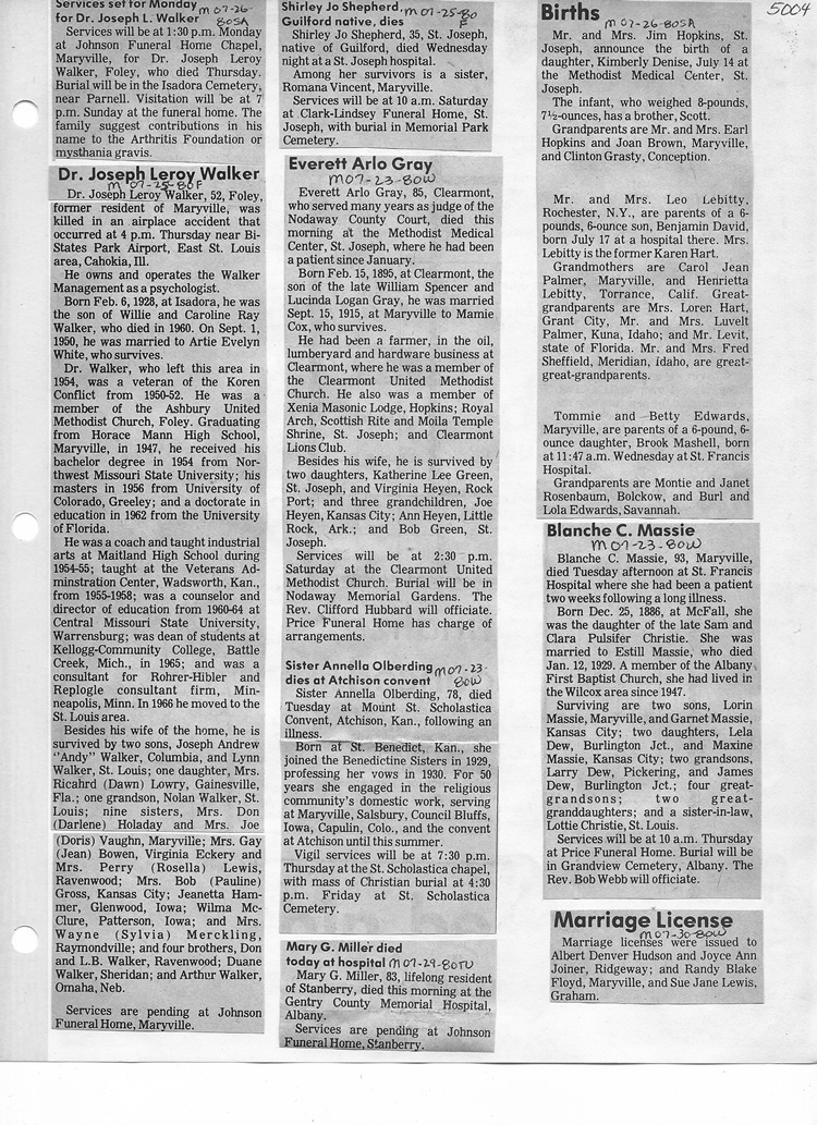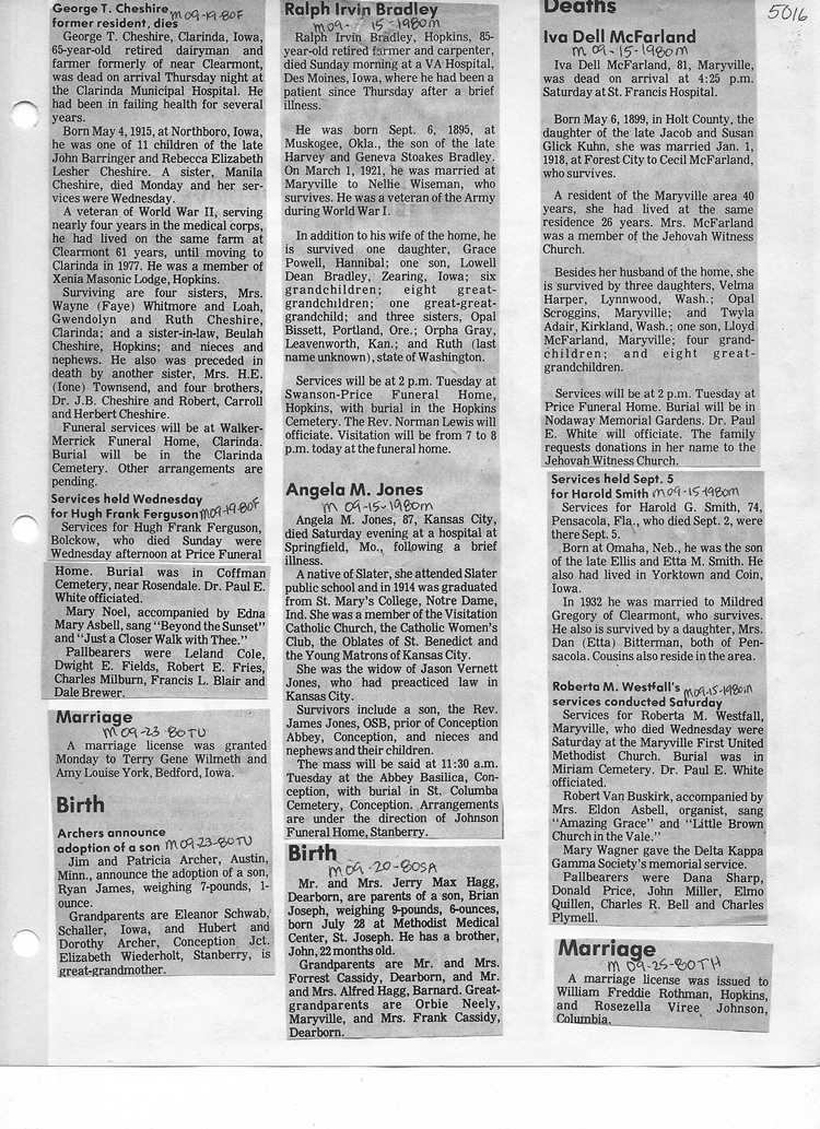 O'Dell's Abstracted Newspaper Index - Clippings - #2000 - #7000