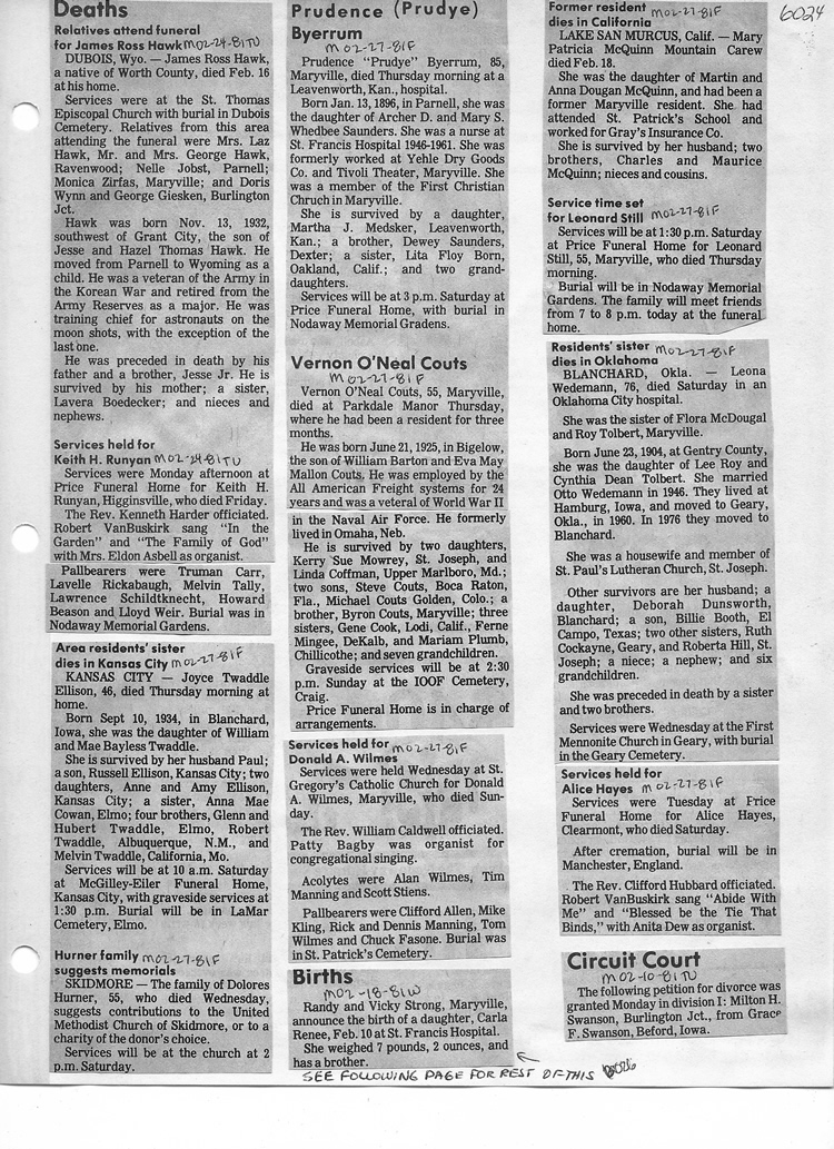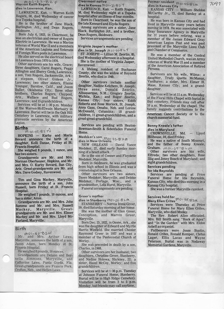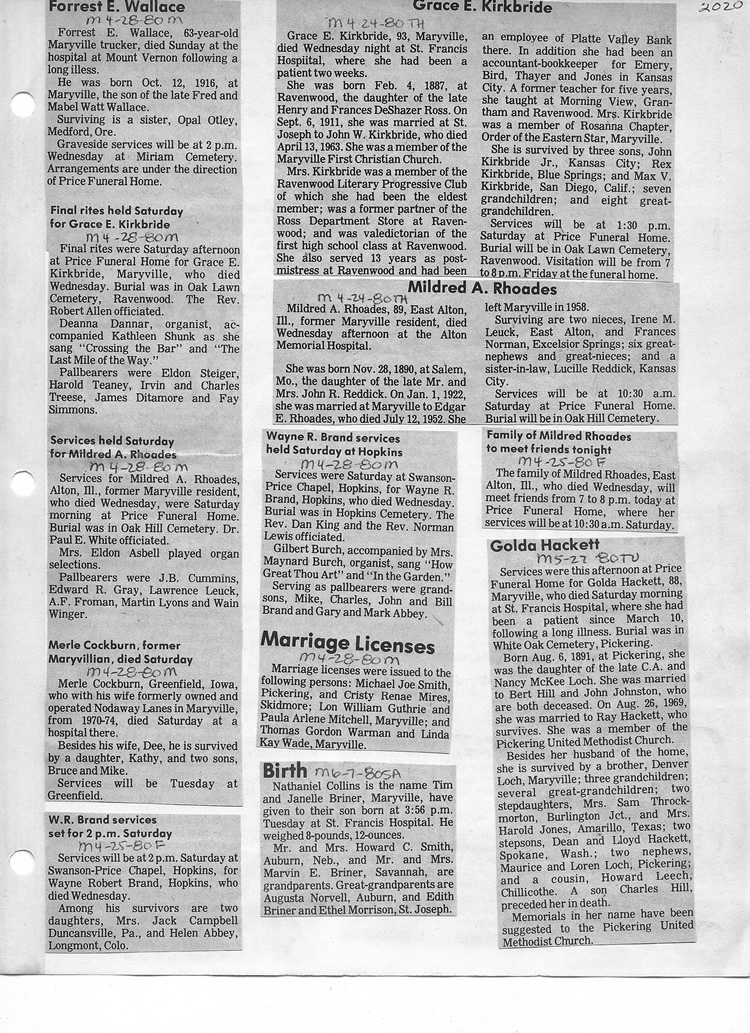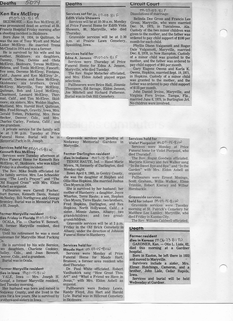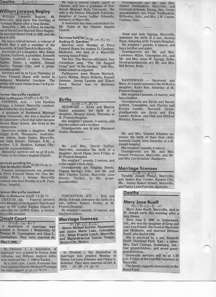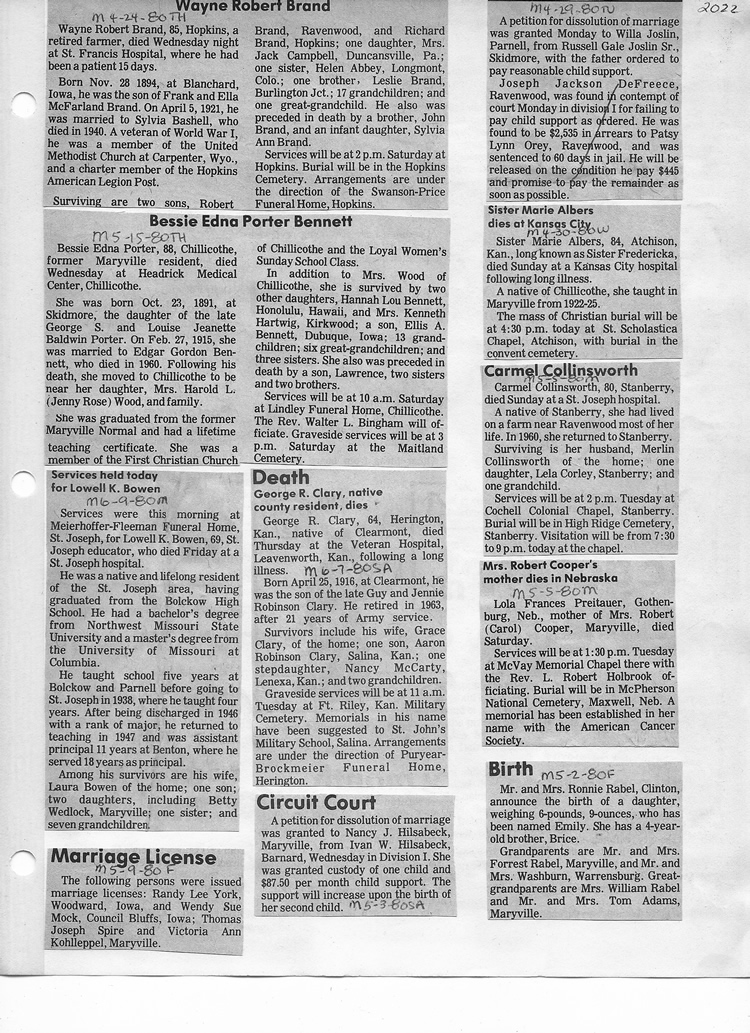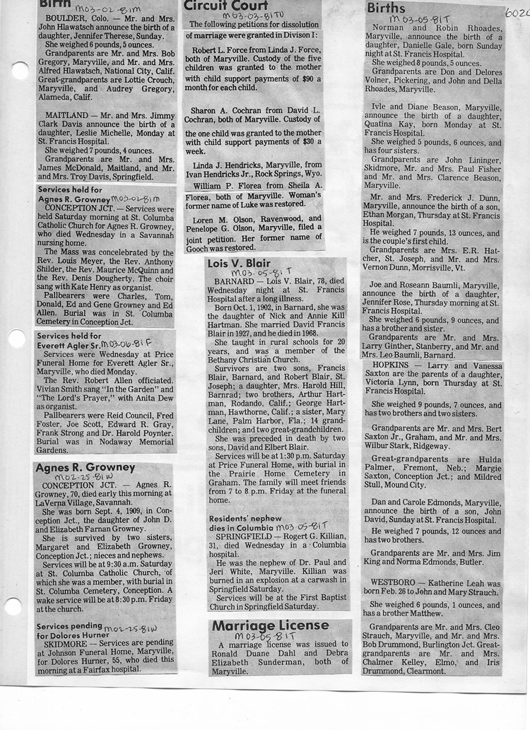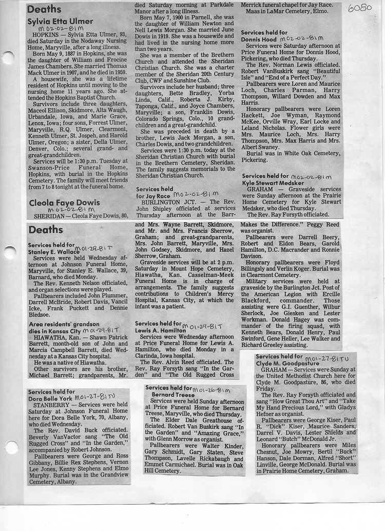 O'Dell's Abstracted Newspaper Index - Clippings - #2000 - #7000