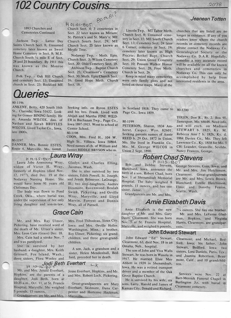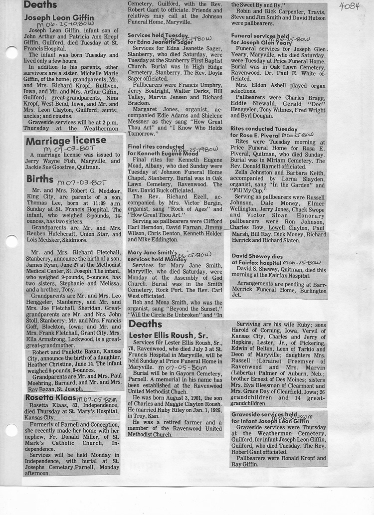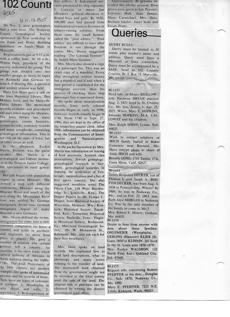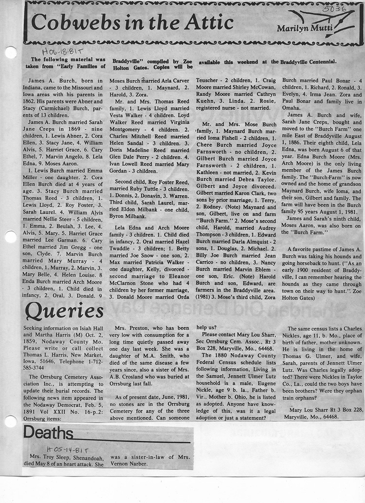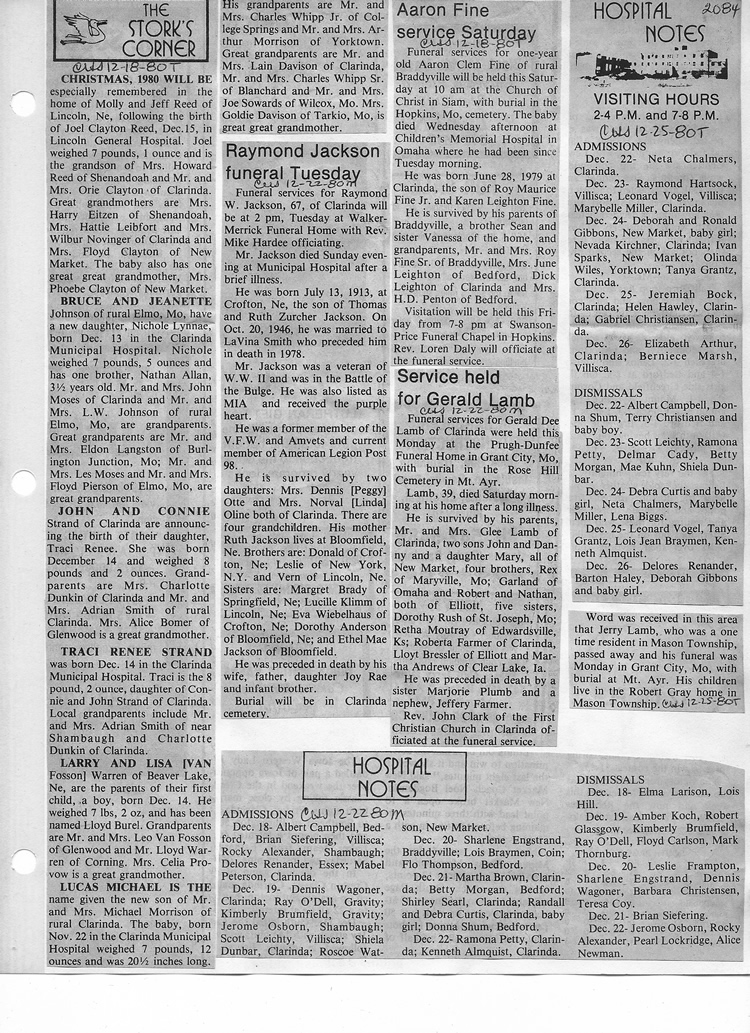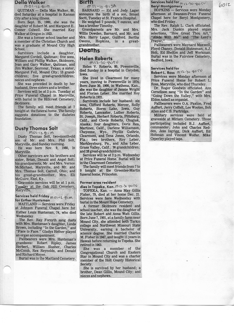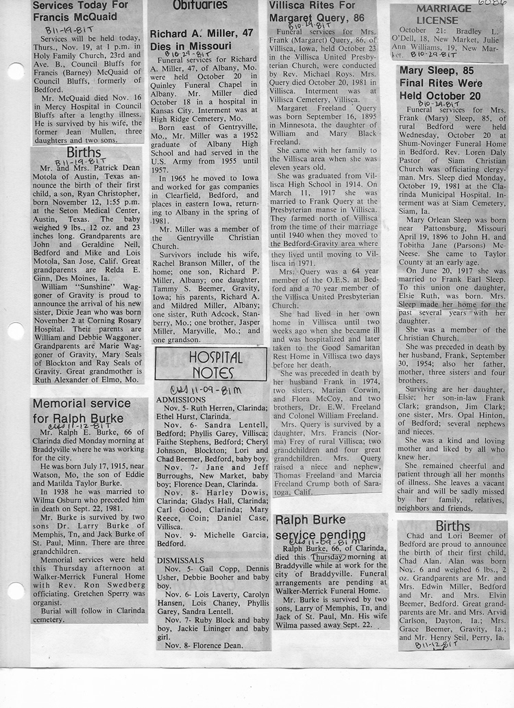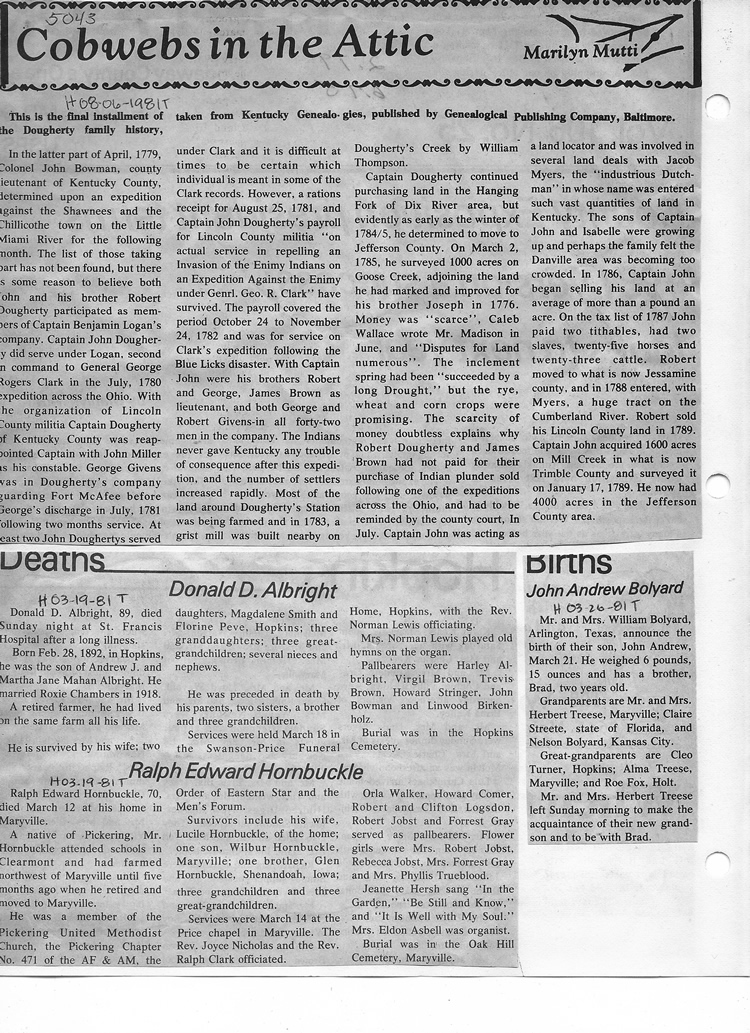 O'Dell's Abstracted Newspaper Index - Clippings - #2000 - #7000