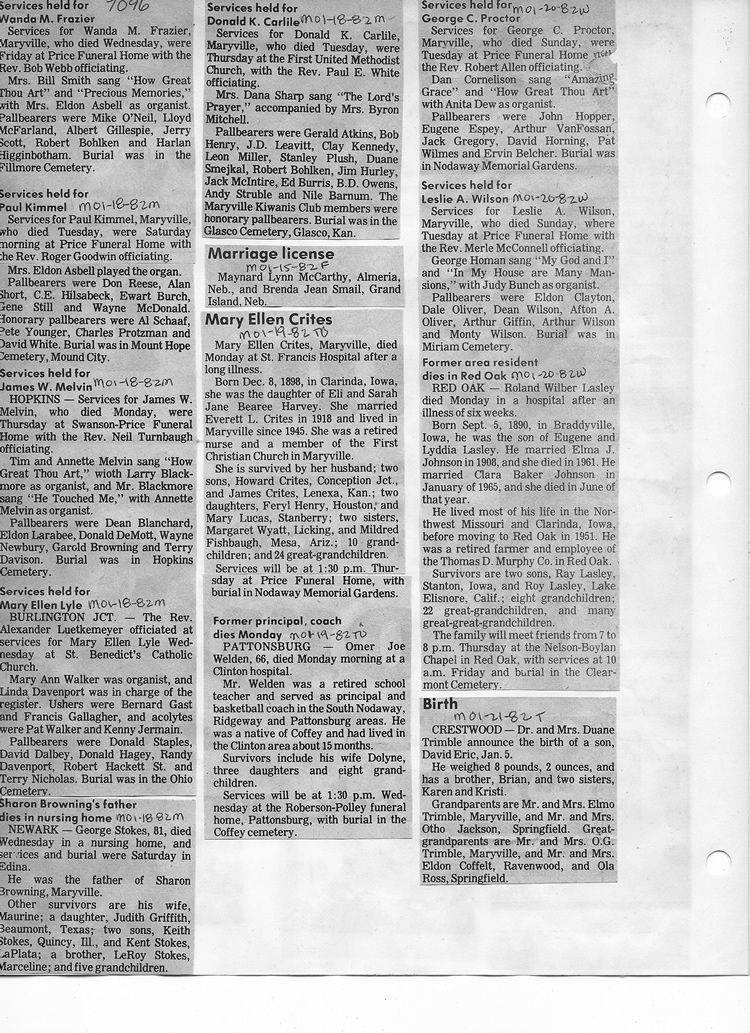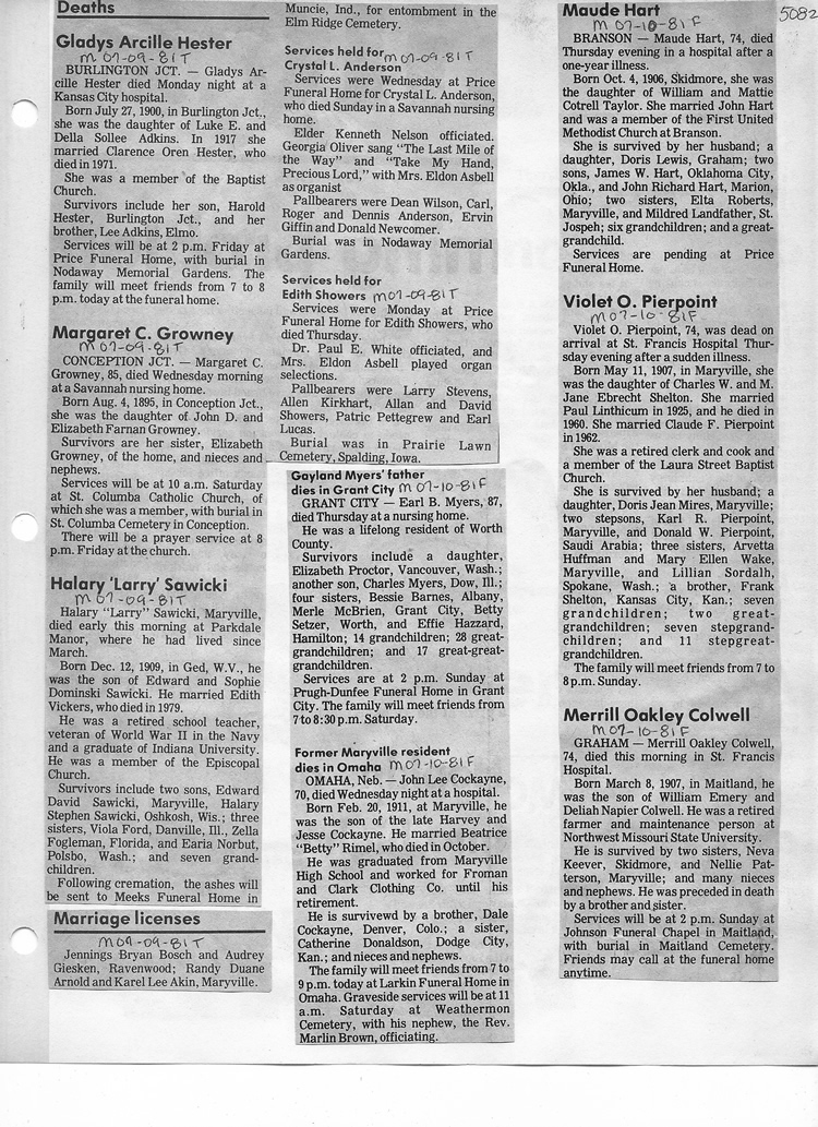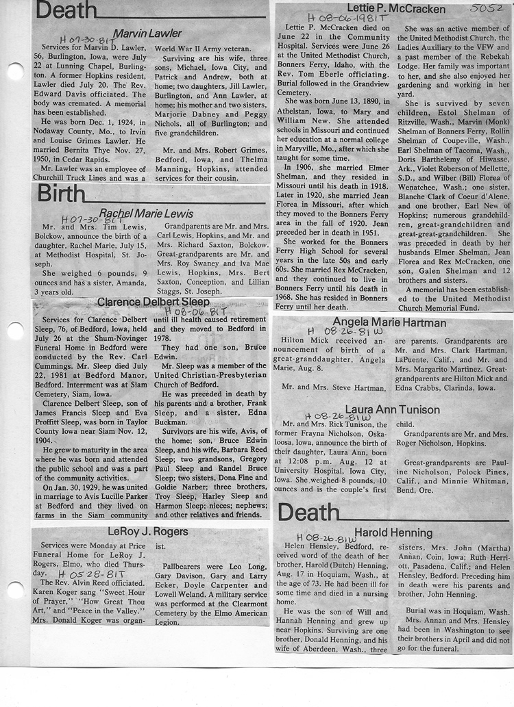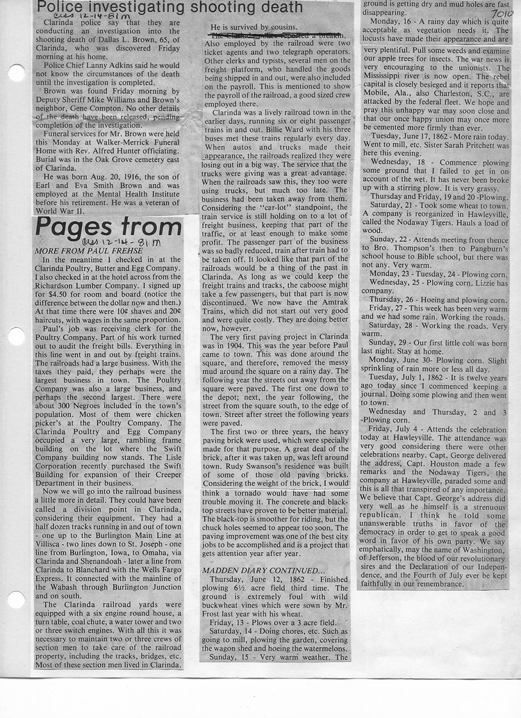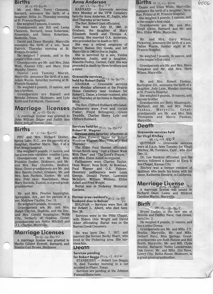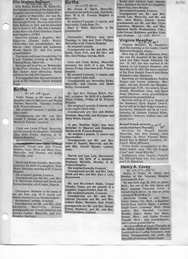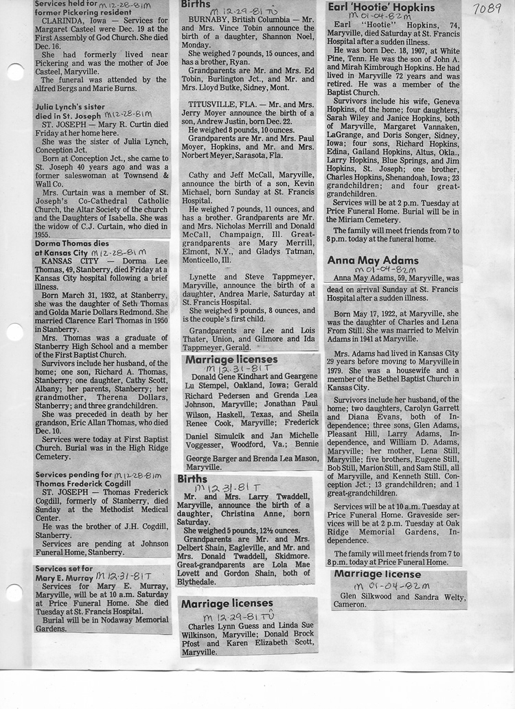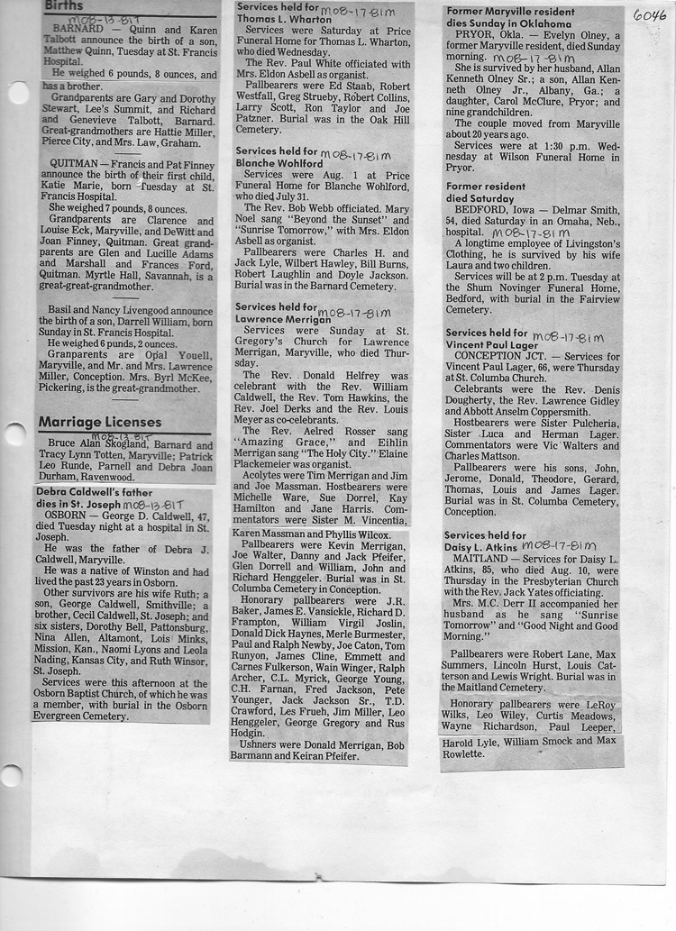 O'Dell's Abstracted Newspaper Index - Clippings - #2000 - #7000