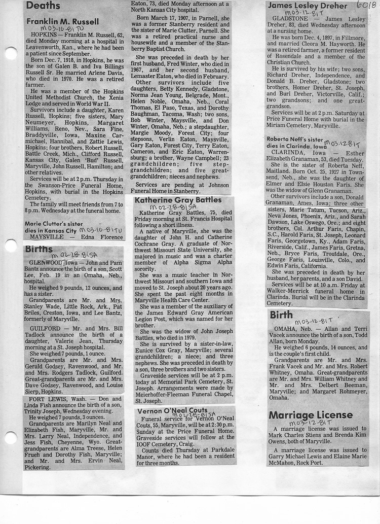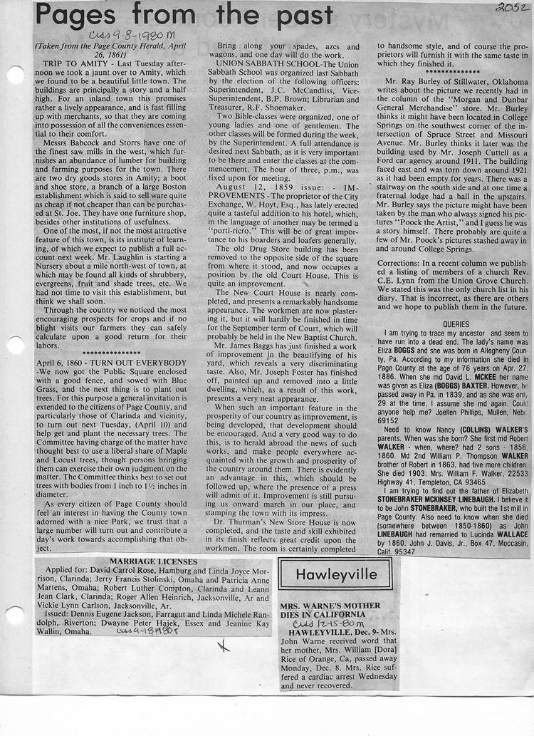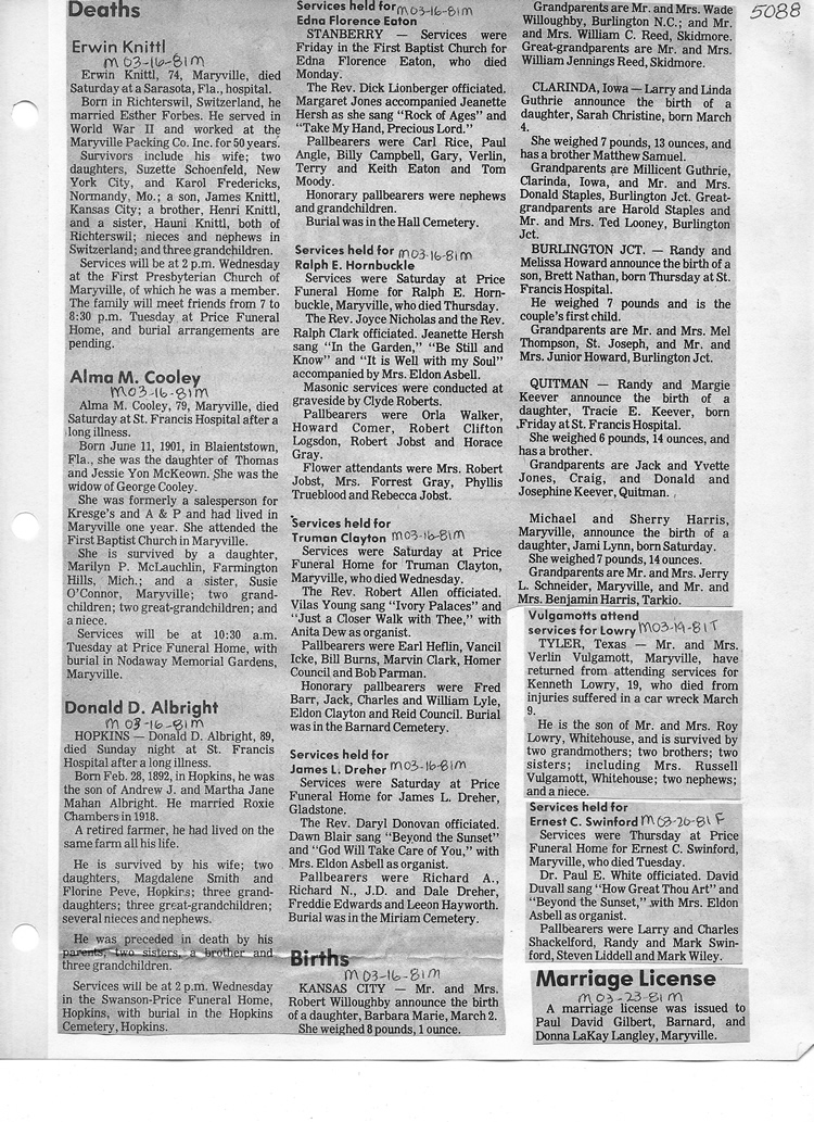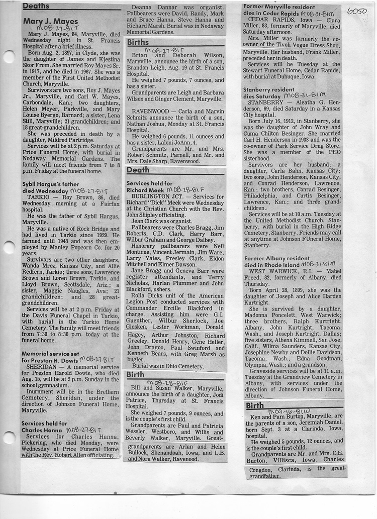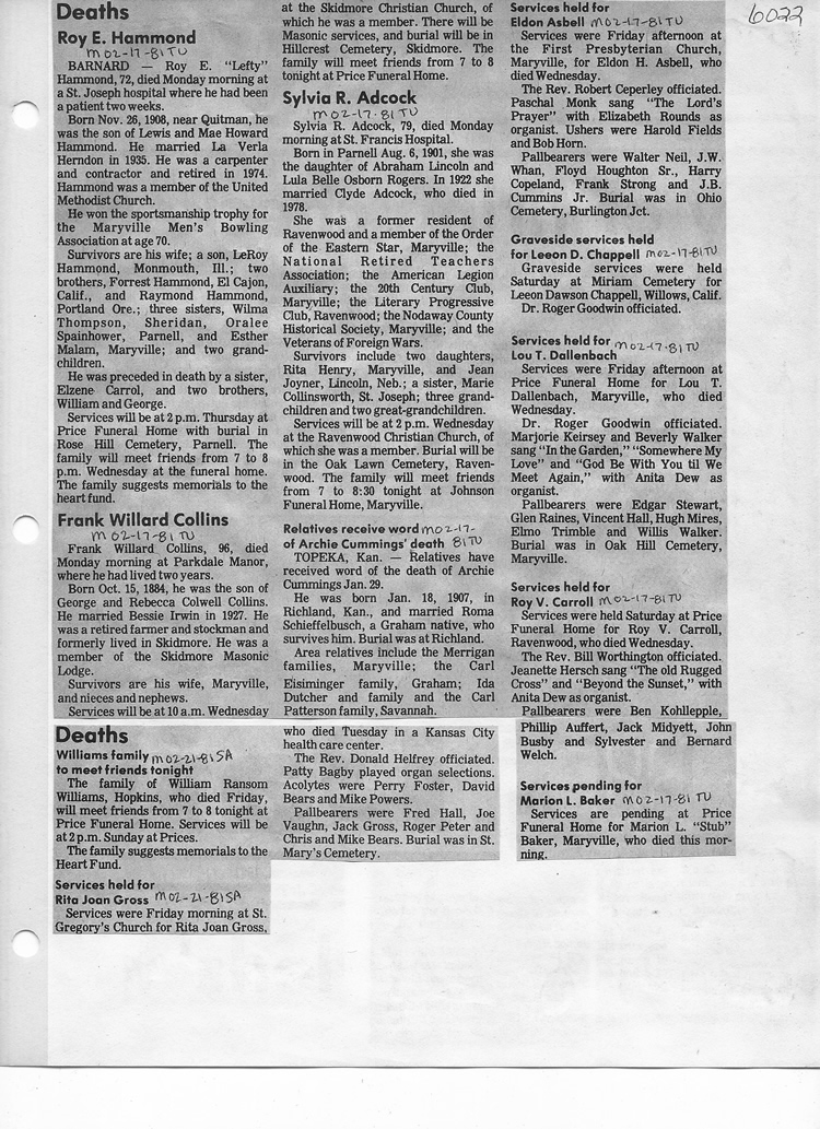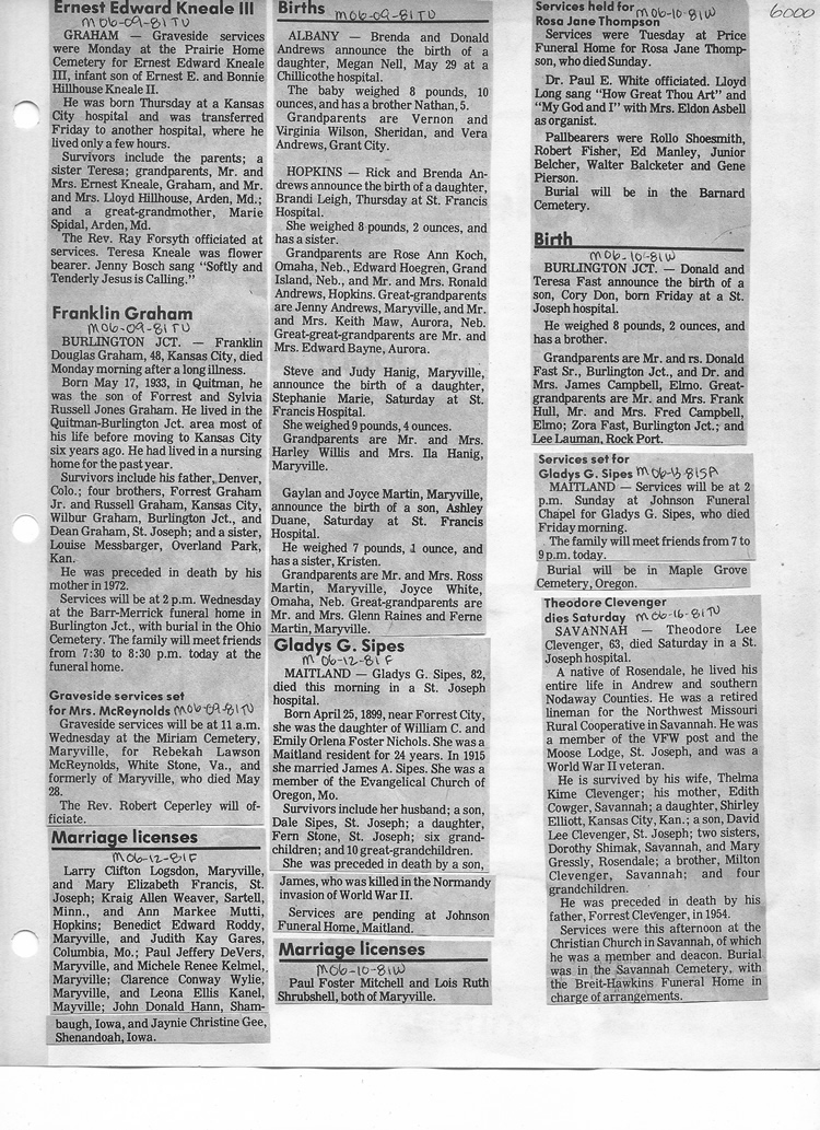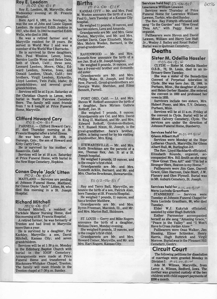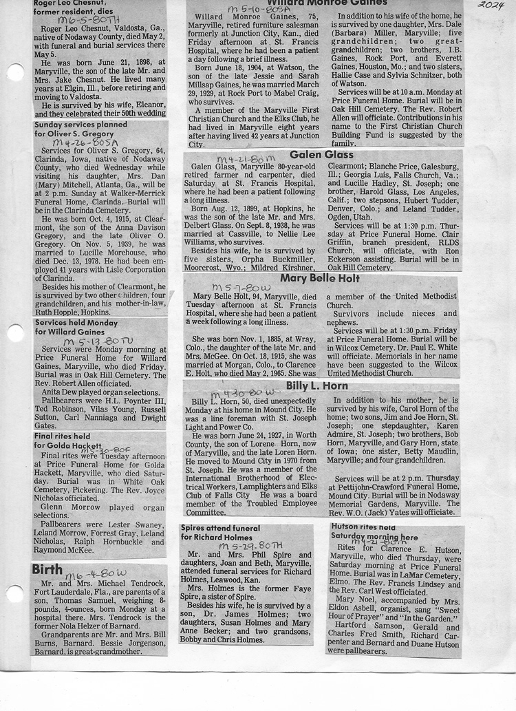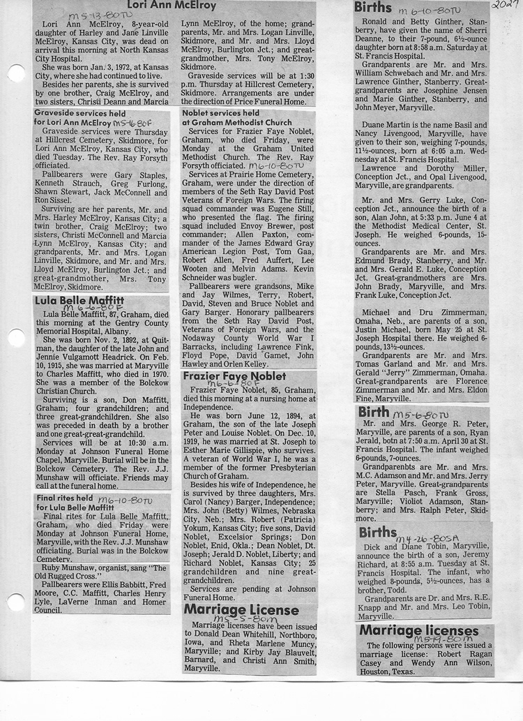 O'Dell's Abstracted Newspaper Index - Clippings - #2000 - #7000