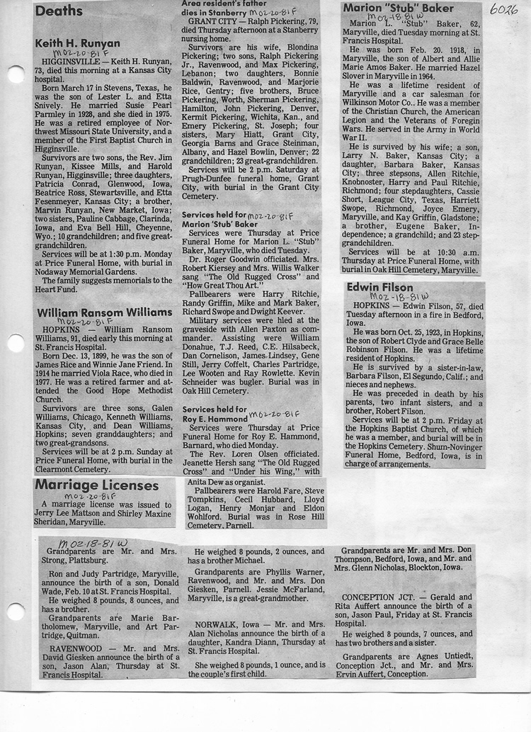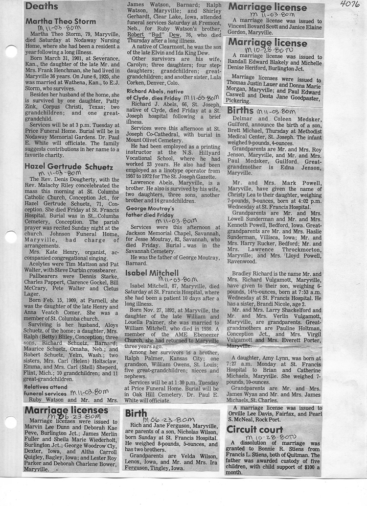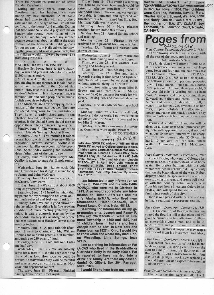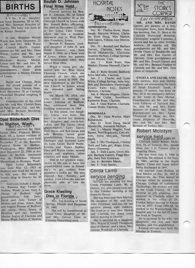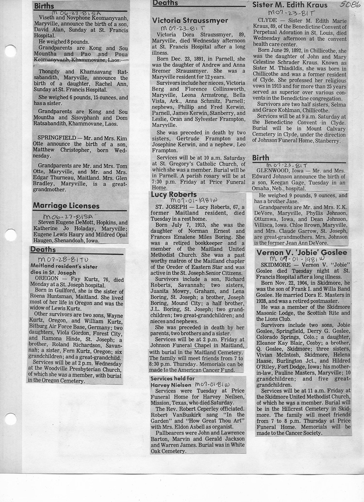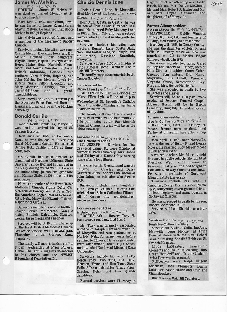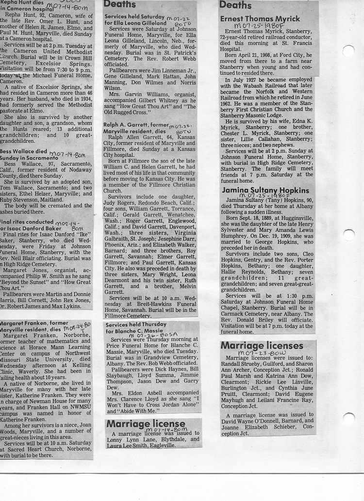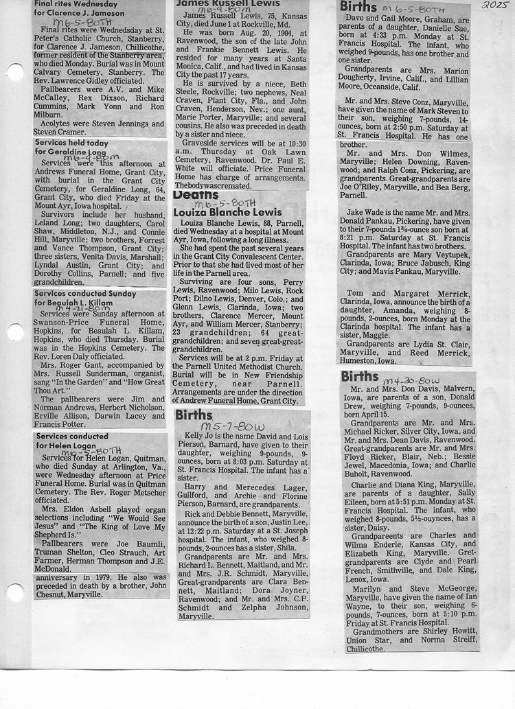 O'Dell's Abstracted Newspaper Index - Clippings - #2000 - #7000