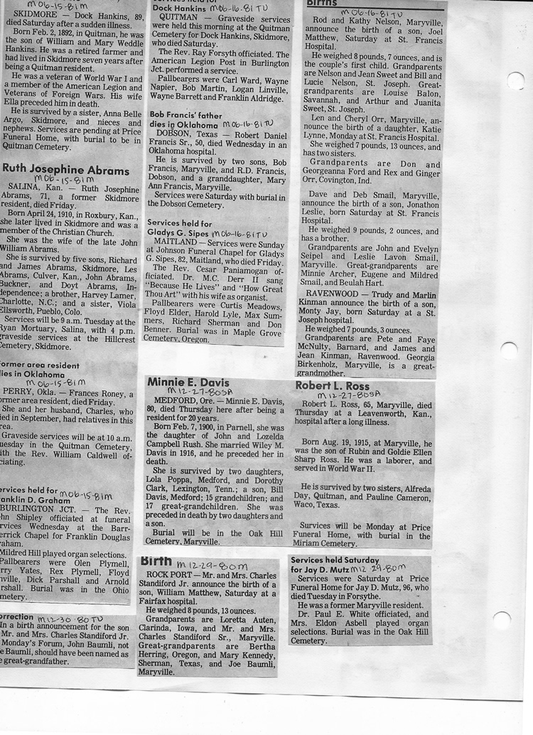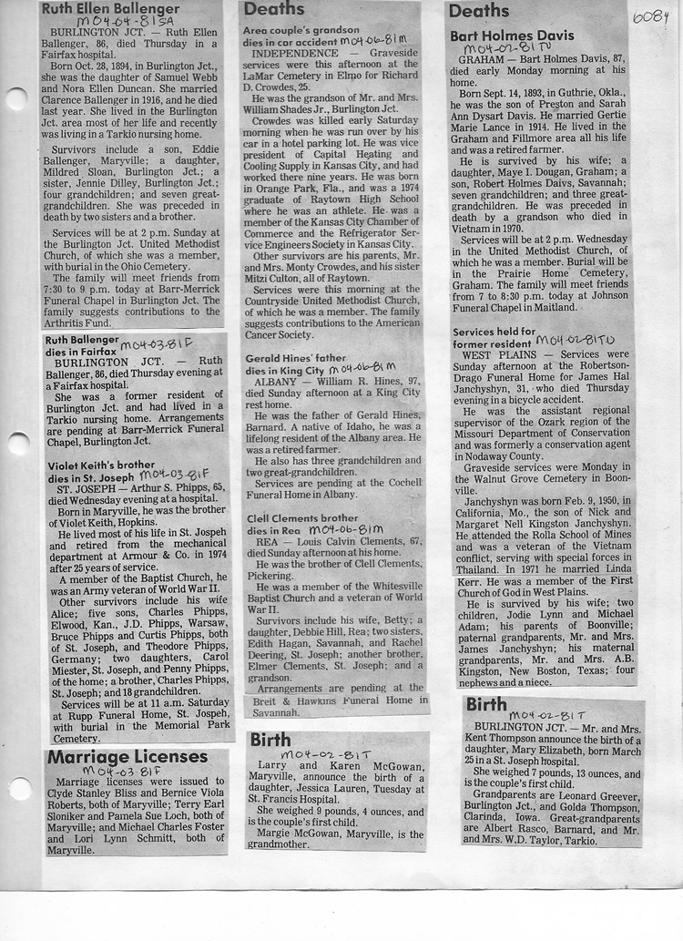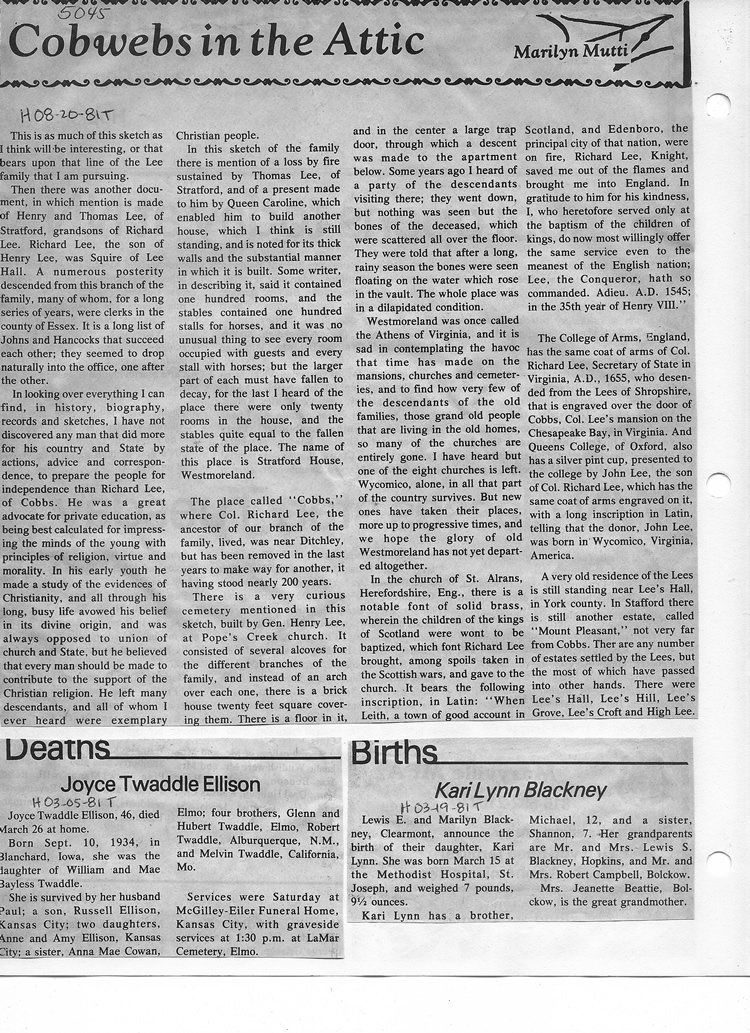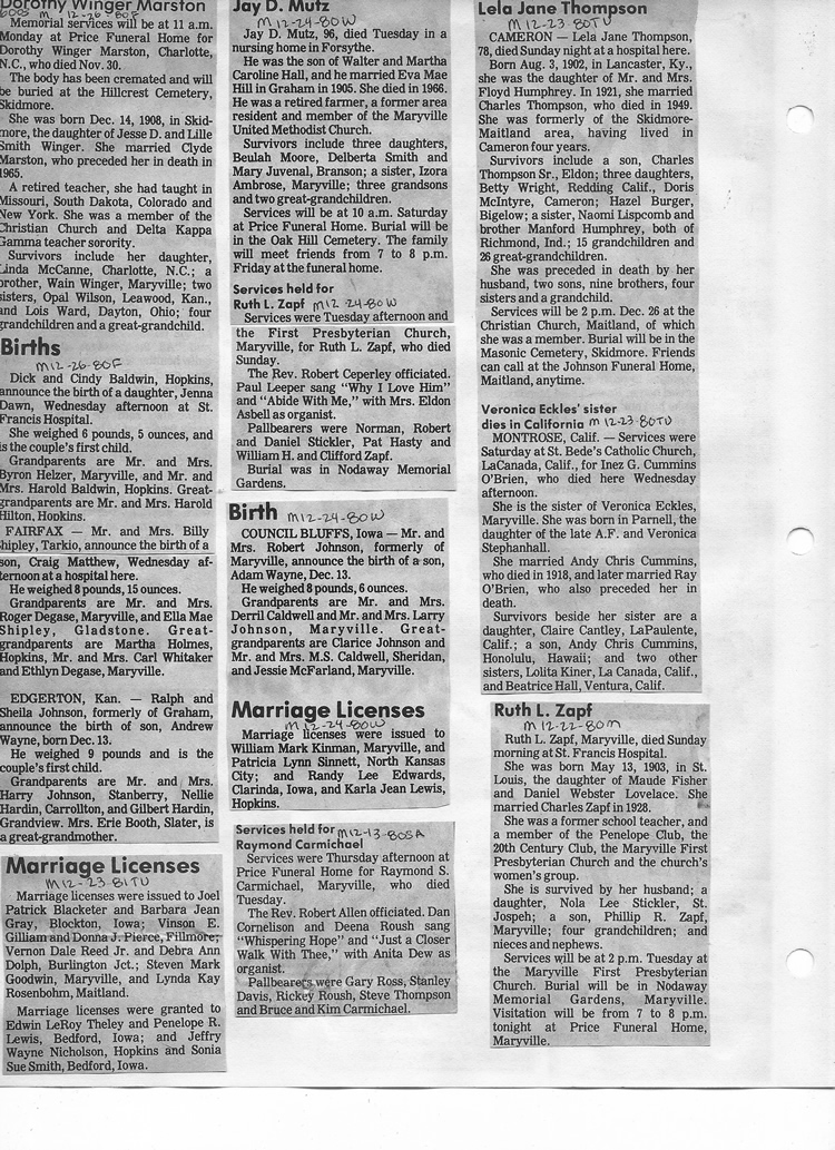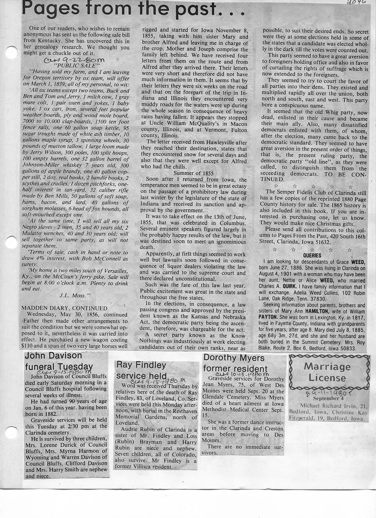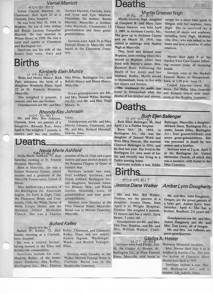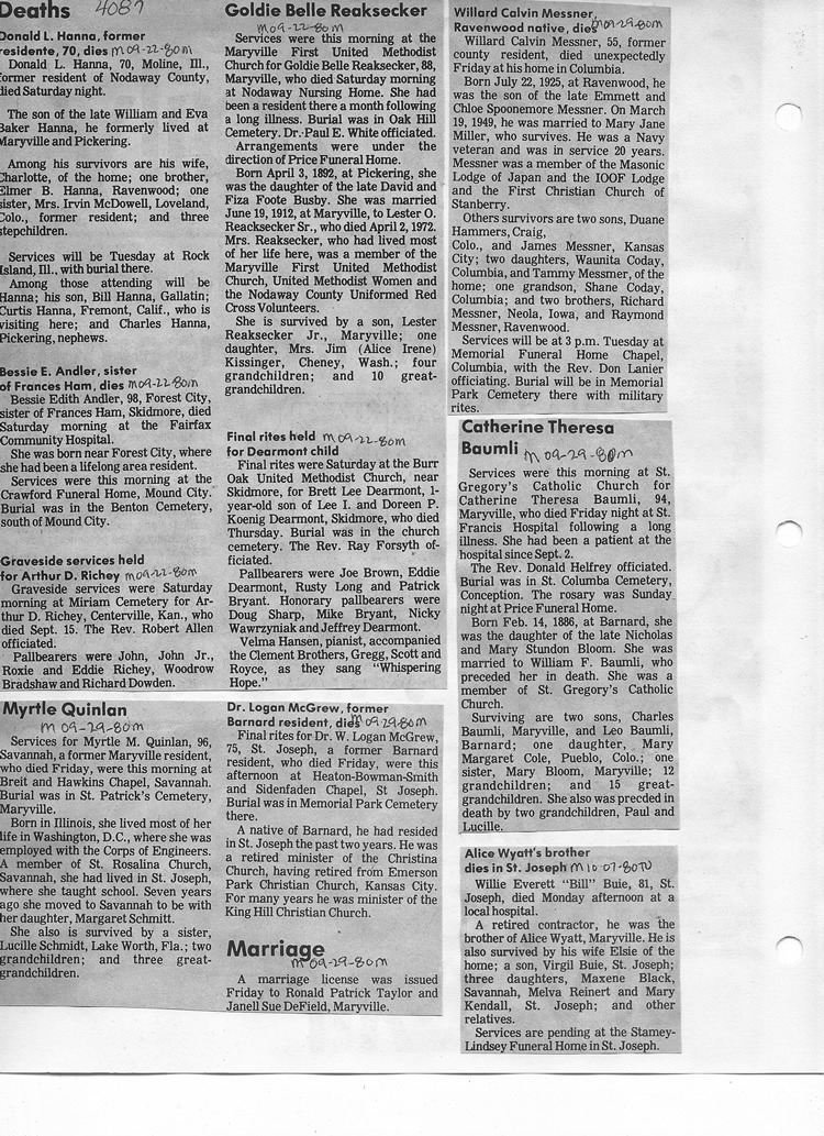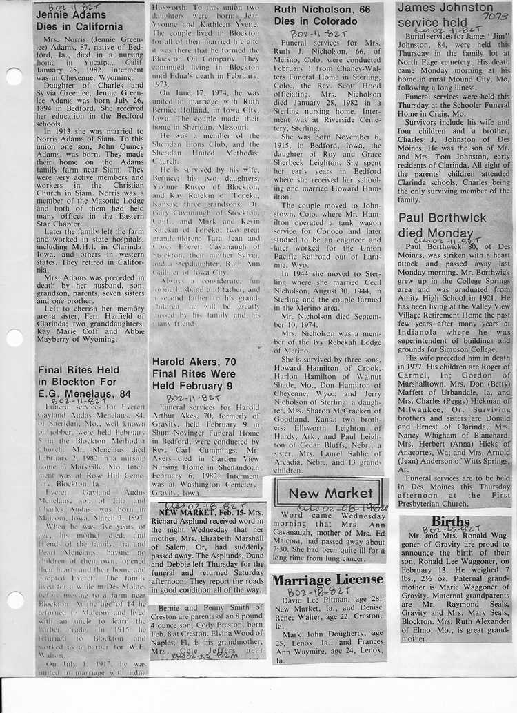 O'Dell's Abstracted Newspaper Index - Clippings - #2000 - #7000