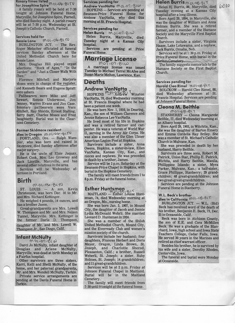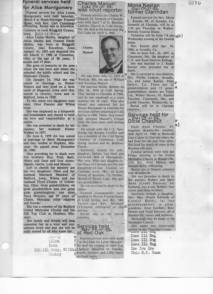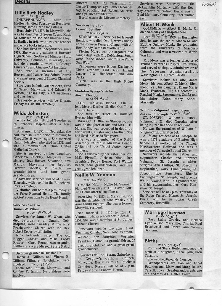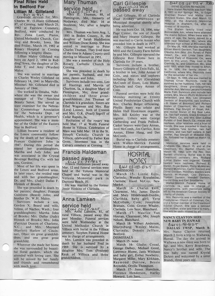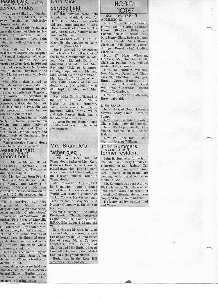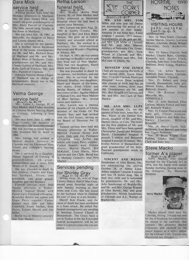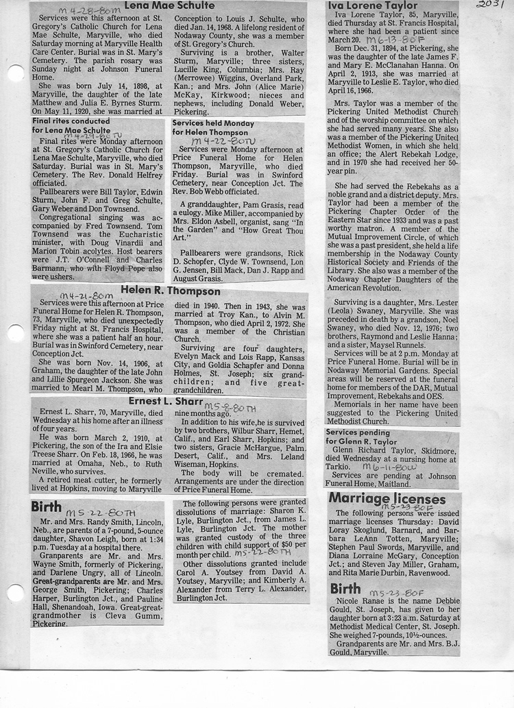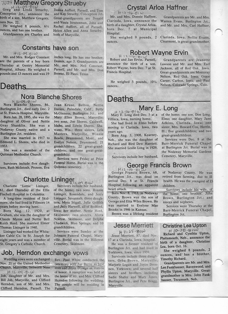 O'Dell's Abstracted Newspaper Index - Clippings - #2000 - #7000