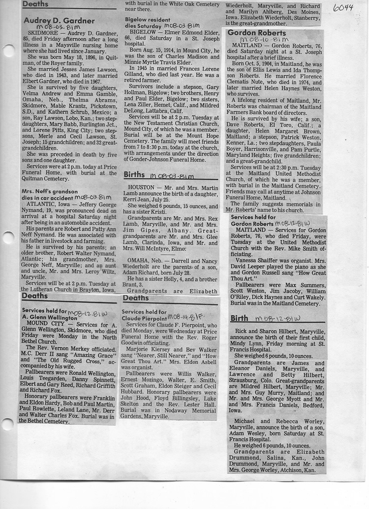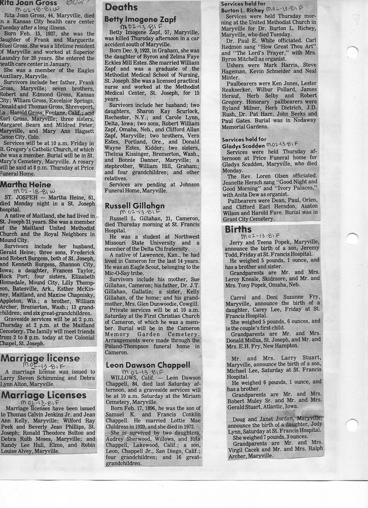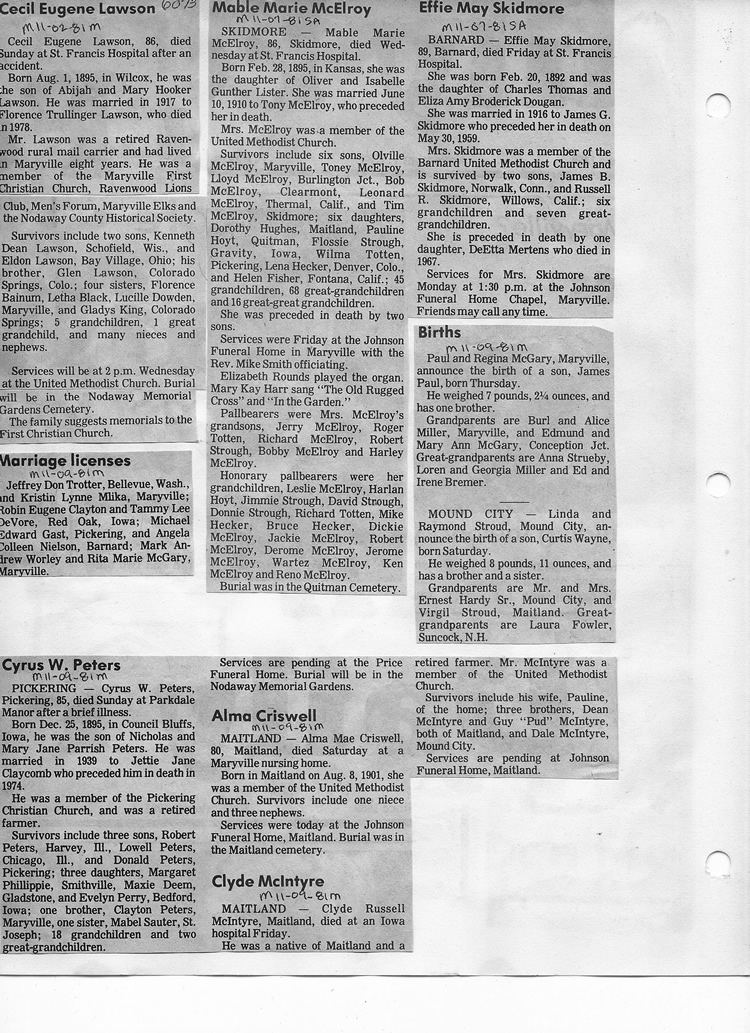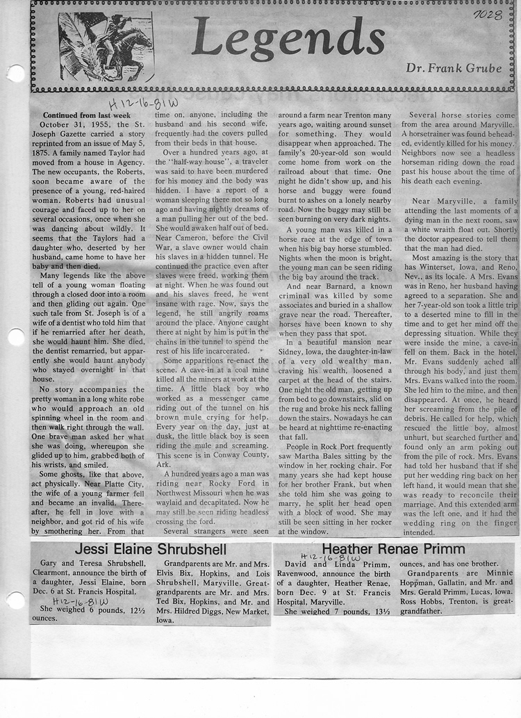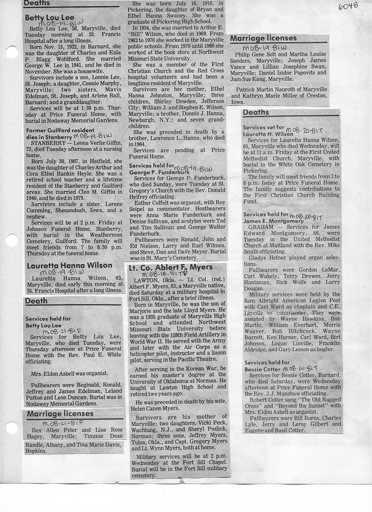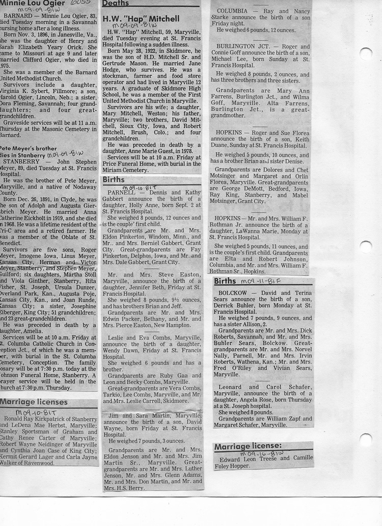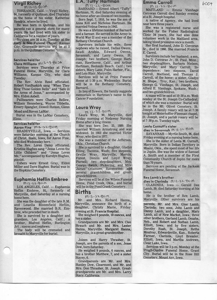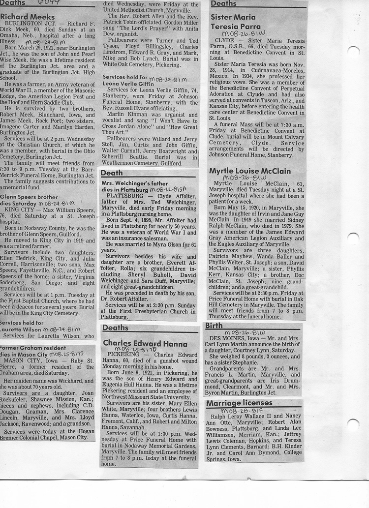 O'Dell's Abstracted Newspaper Index - Clippings - #2000 - #7000