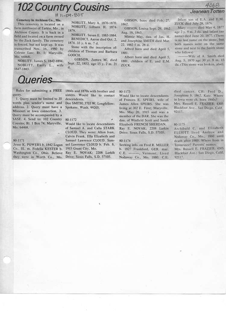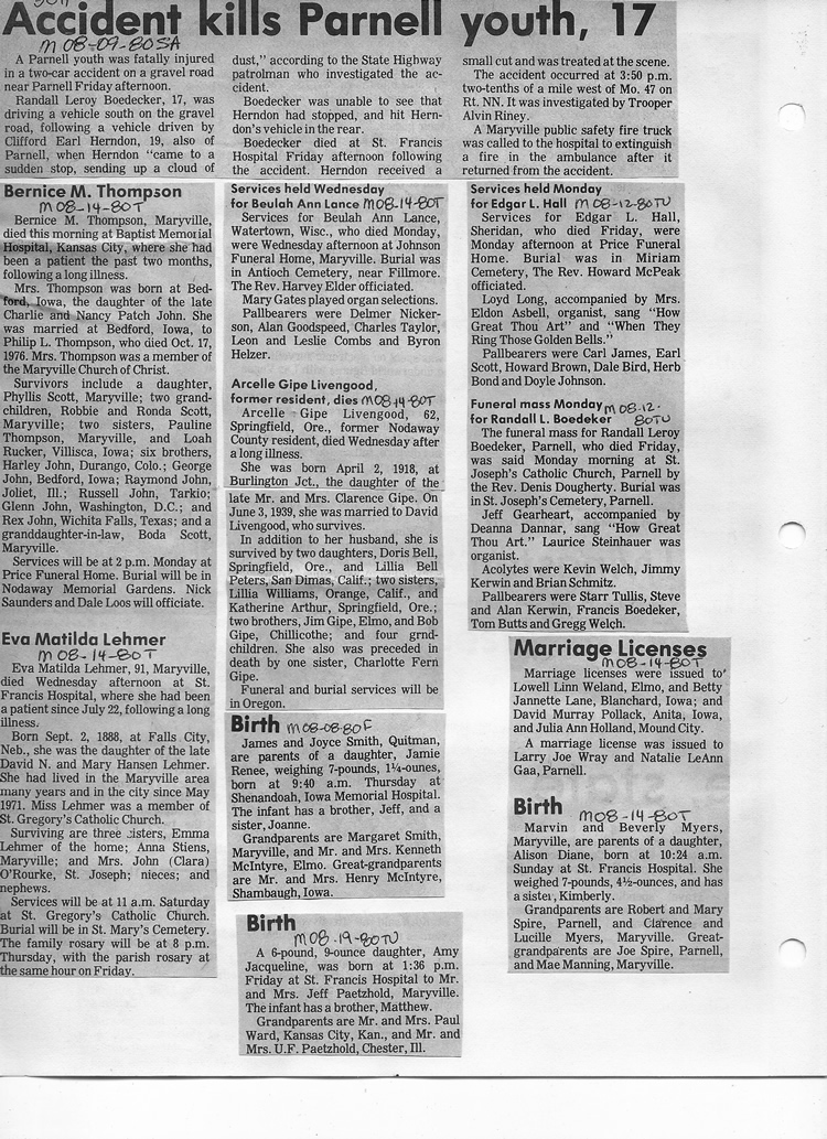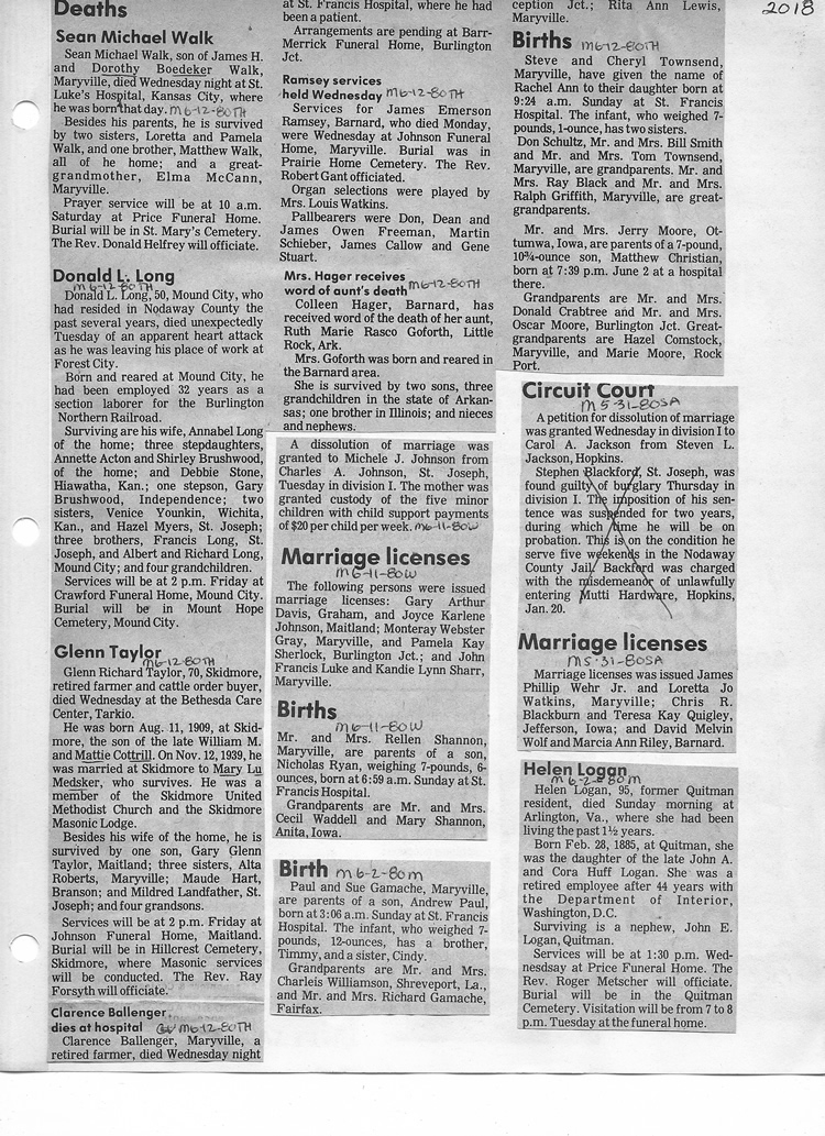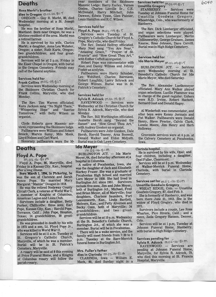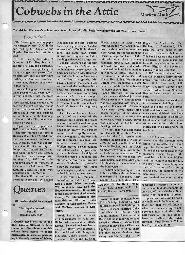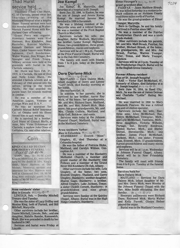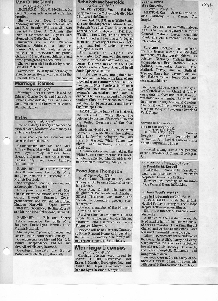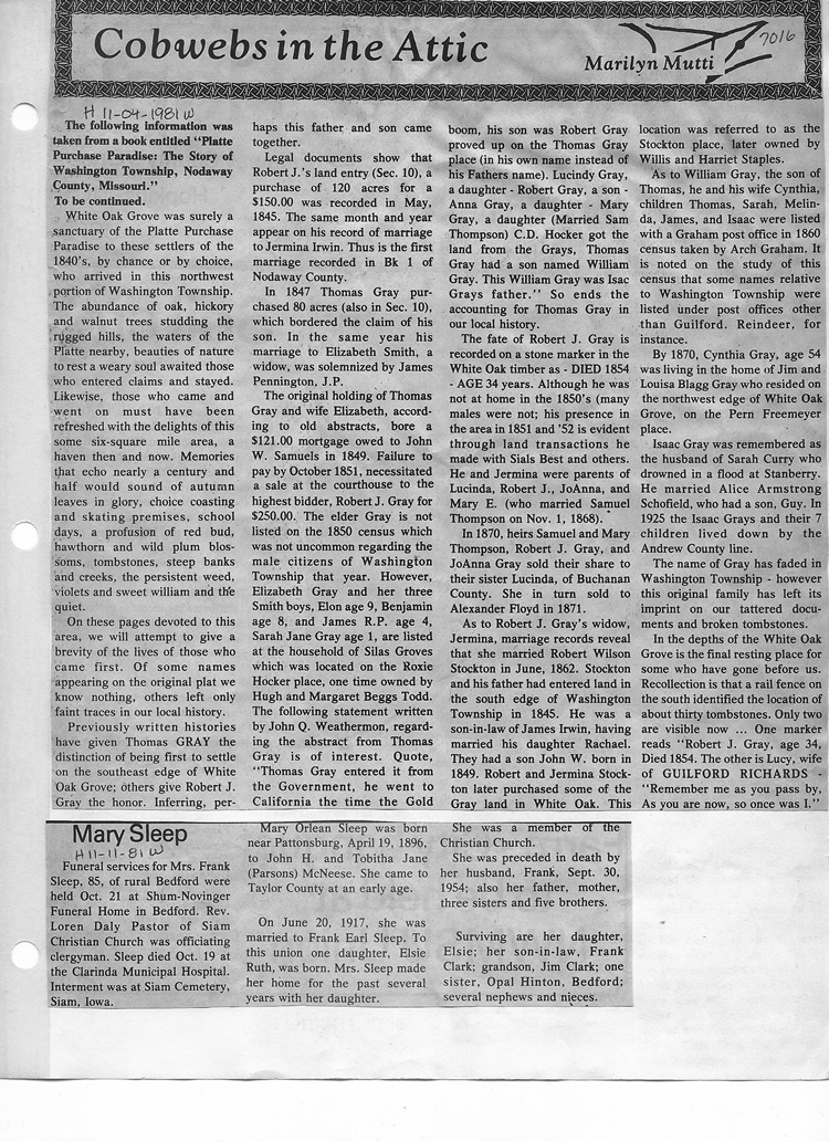 O'Dell's Abstracted Newspaper Index - Clippings - #2000 - #7000