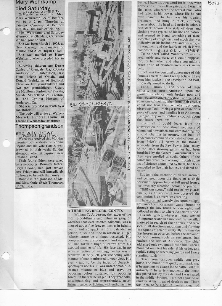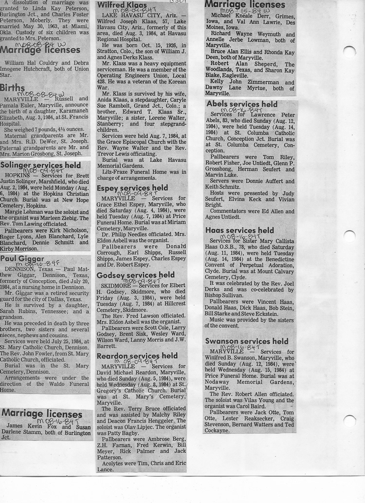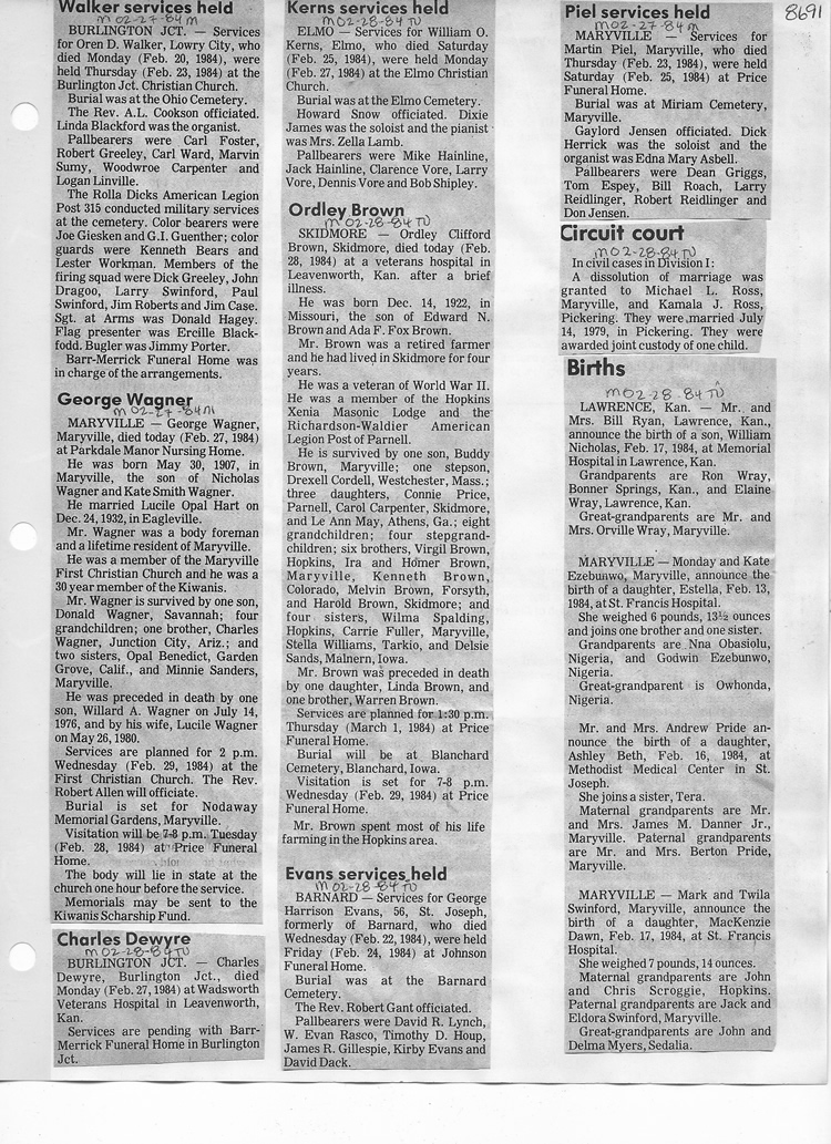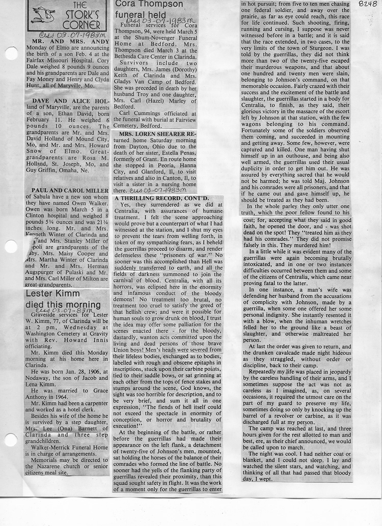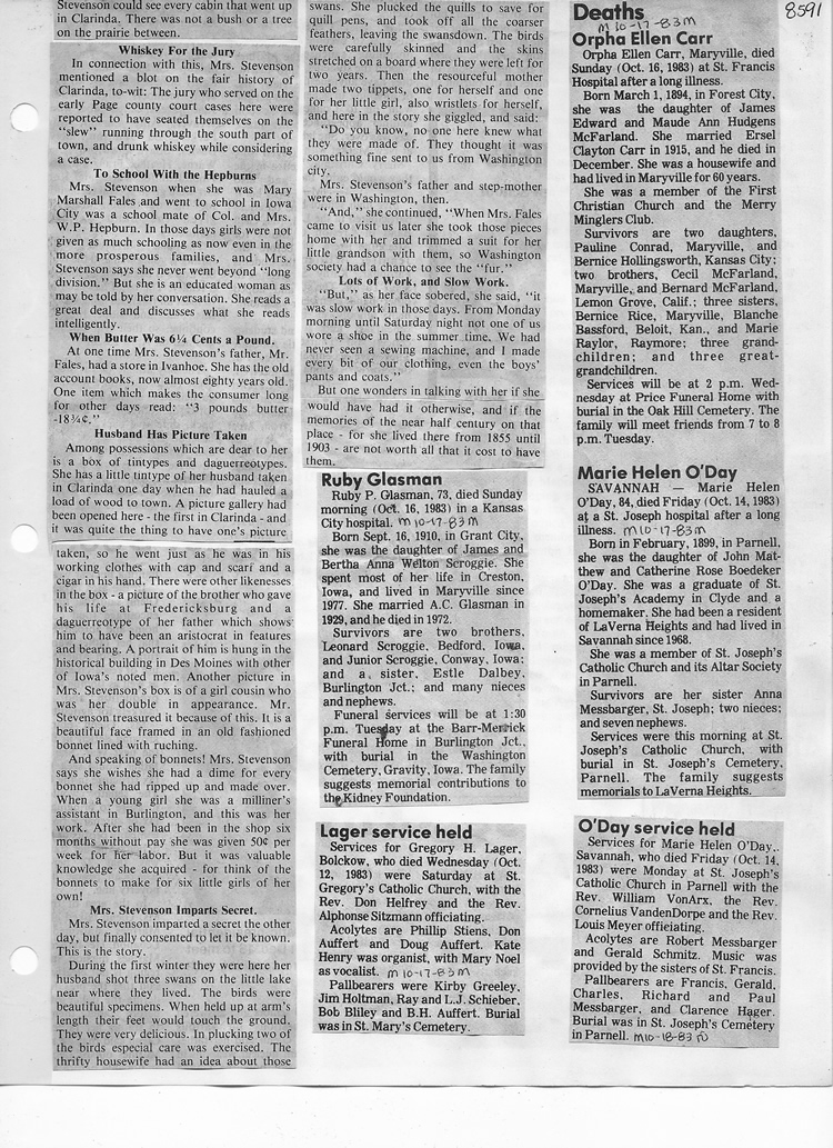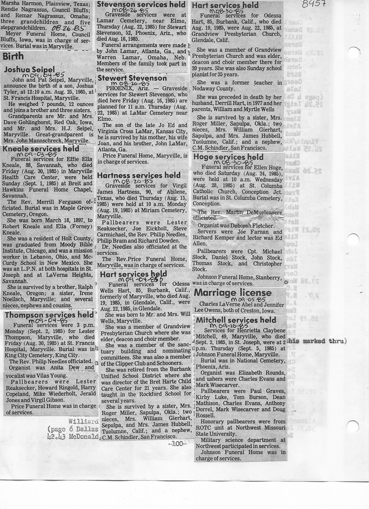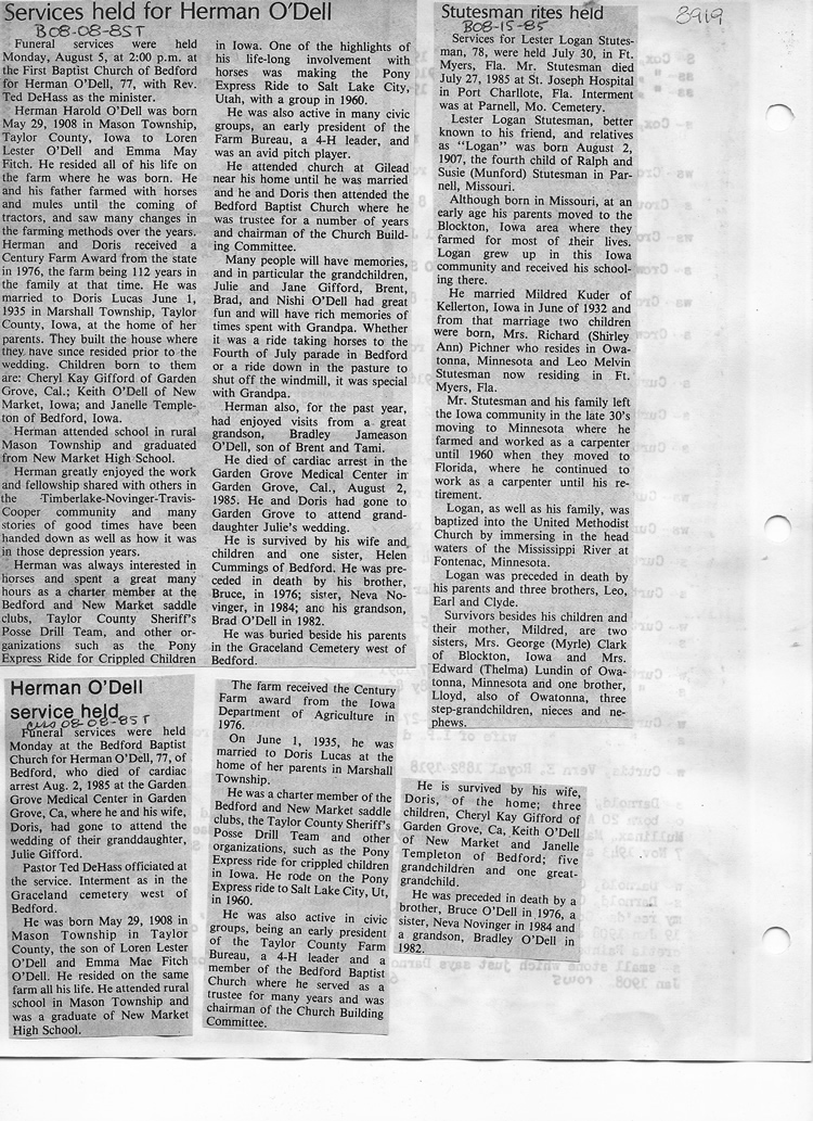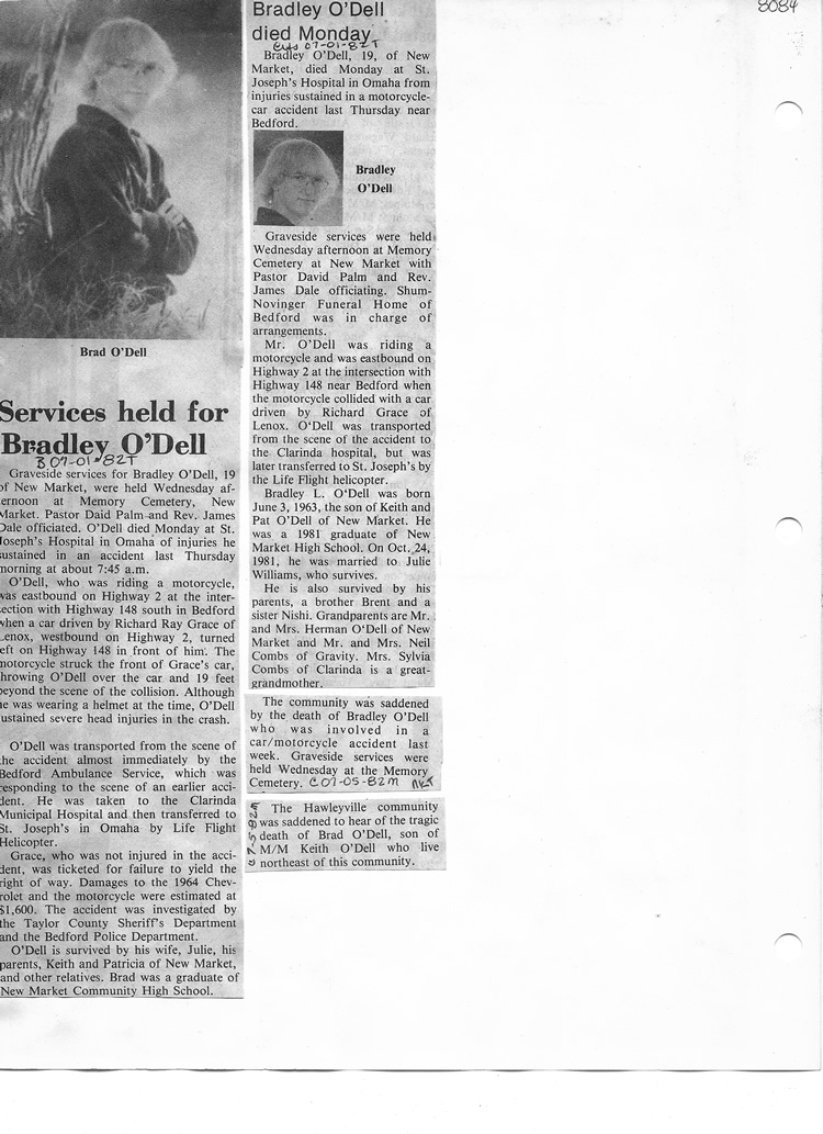 O'Dell's Abstracted Newspaper Index - Clippings - #8000's