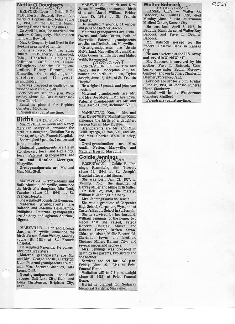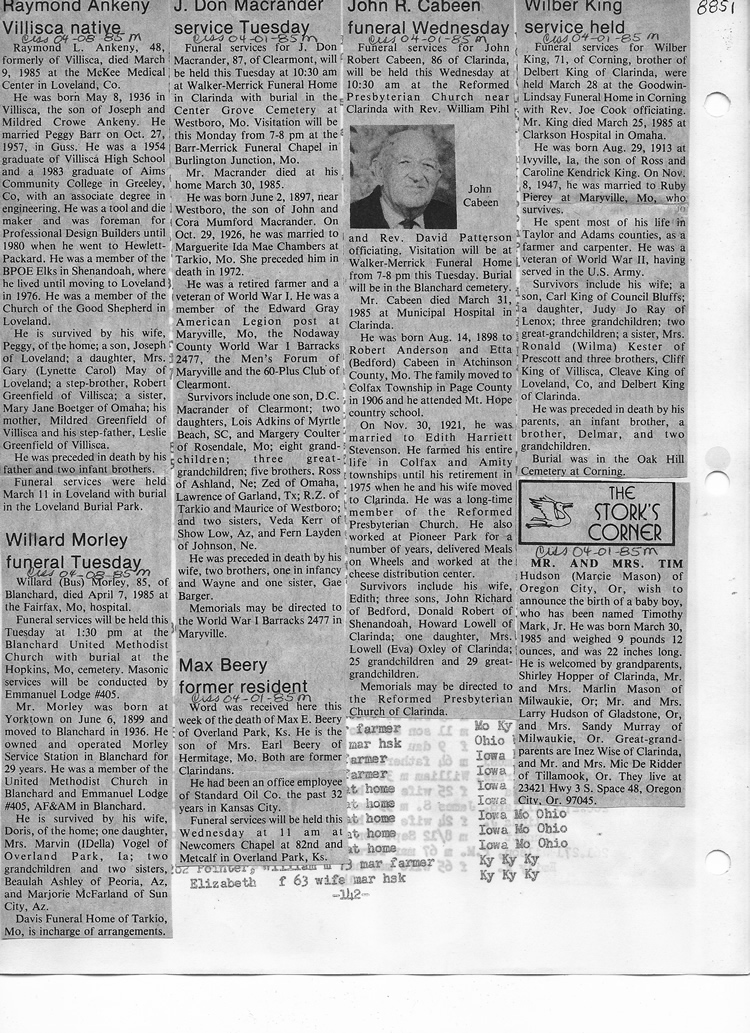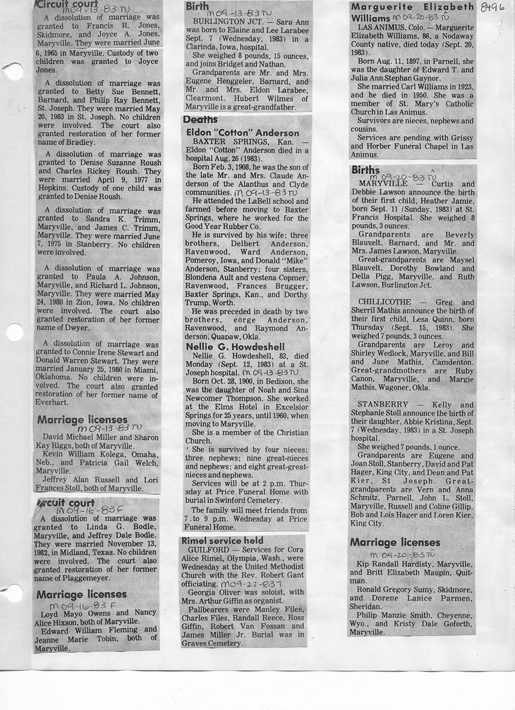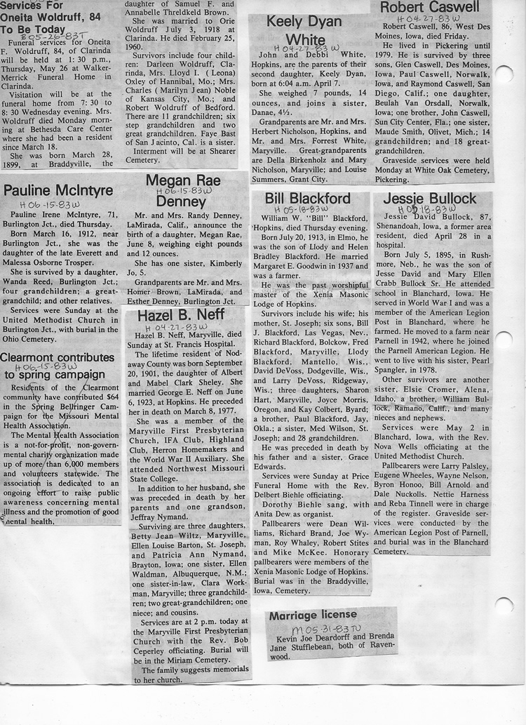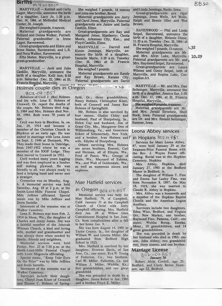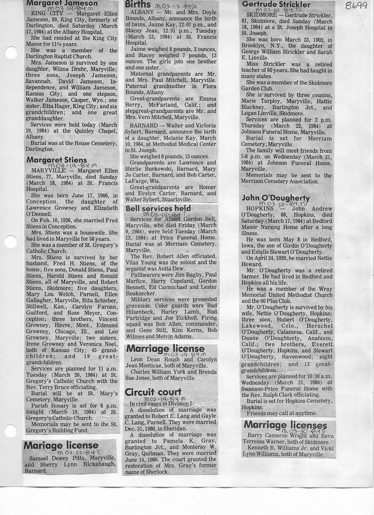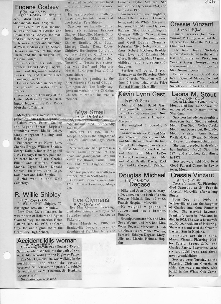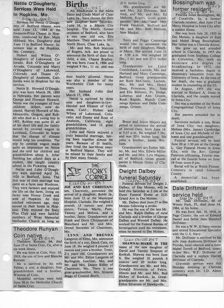 O'Dell's Abstracted Newspaper Index - Clippings - #8000's