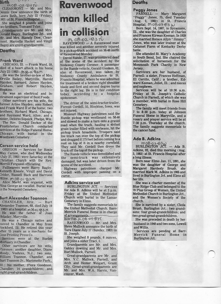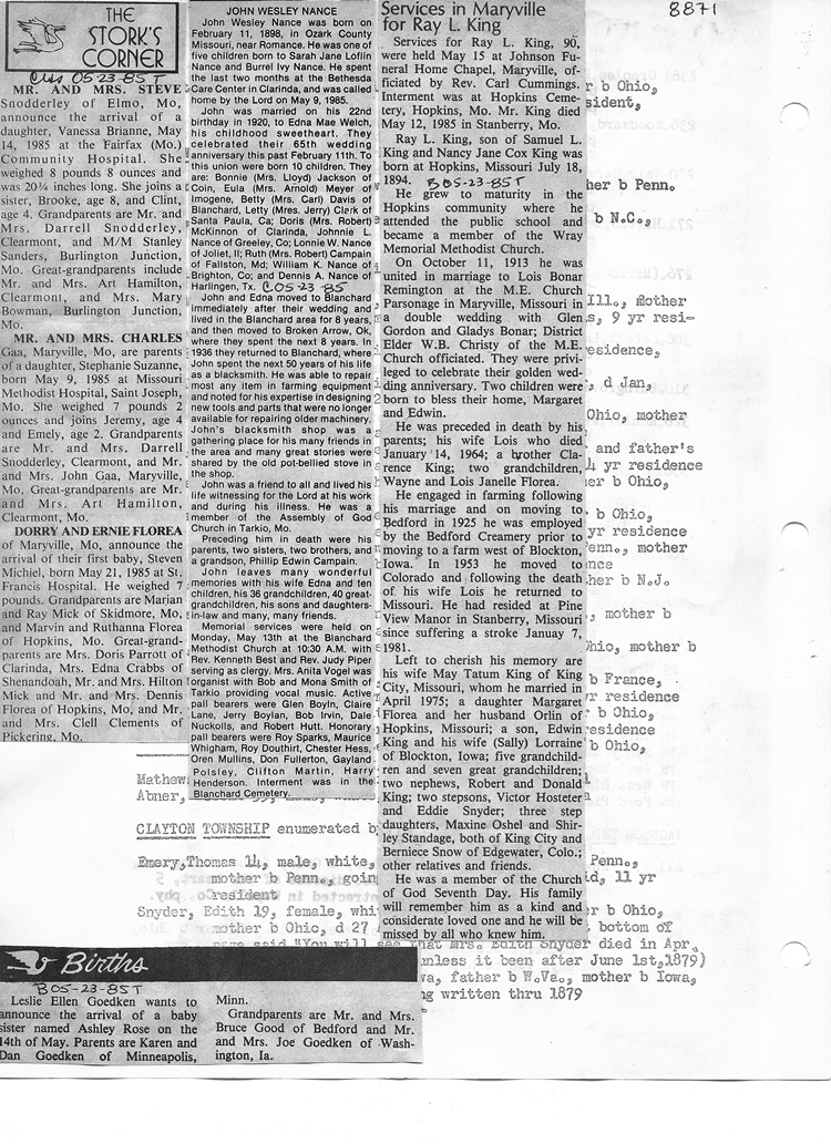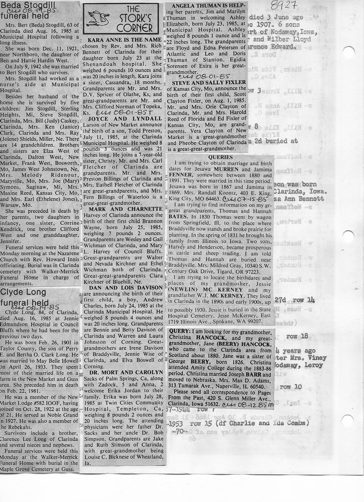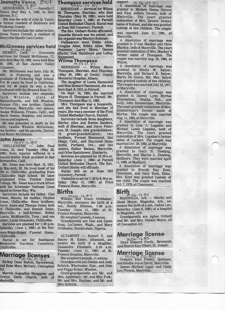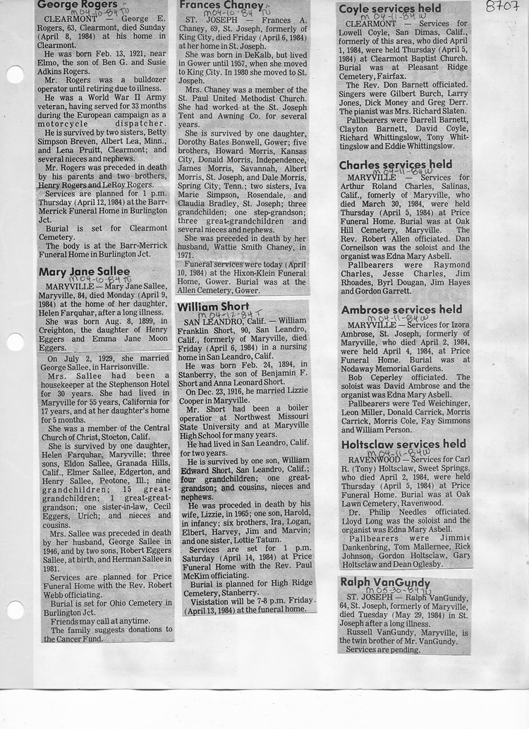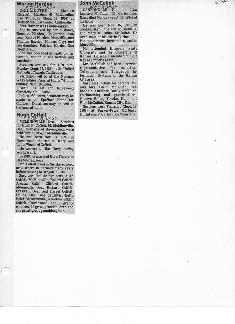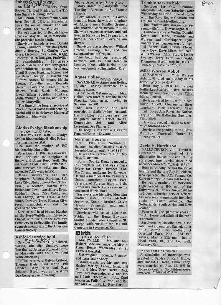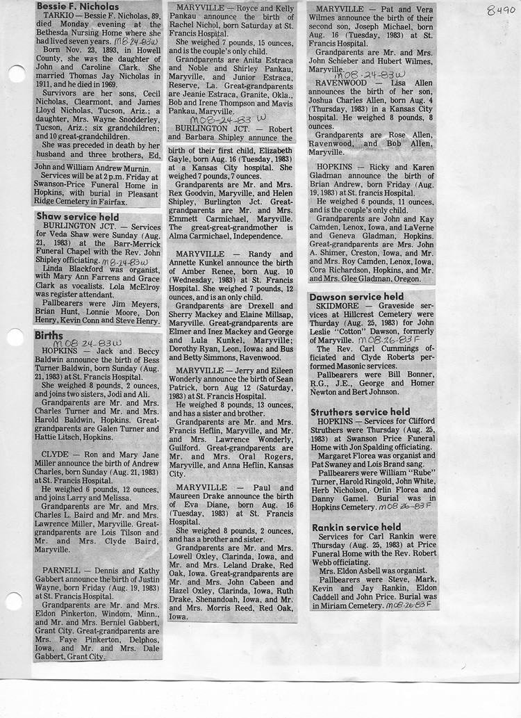 O'Dell's Abstracted Newspaper Index - Clippings - #8000's