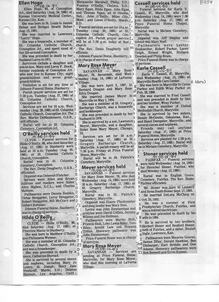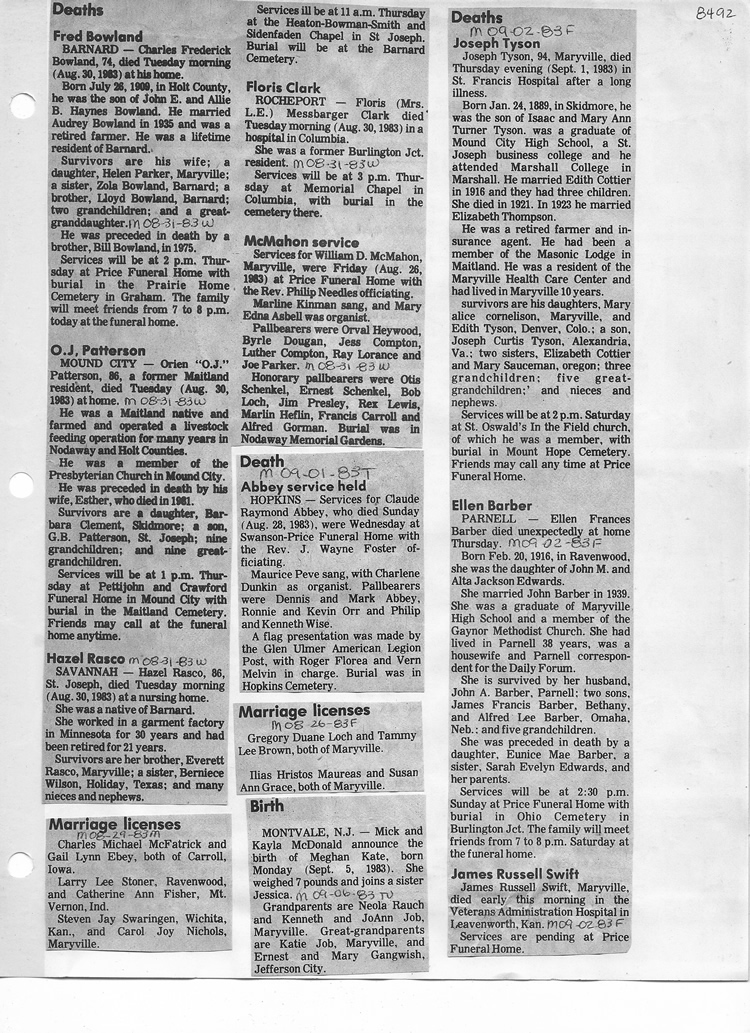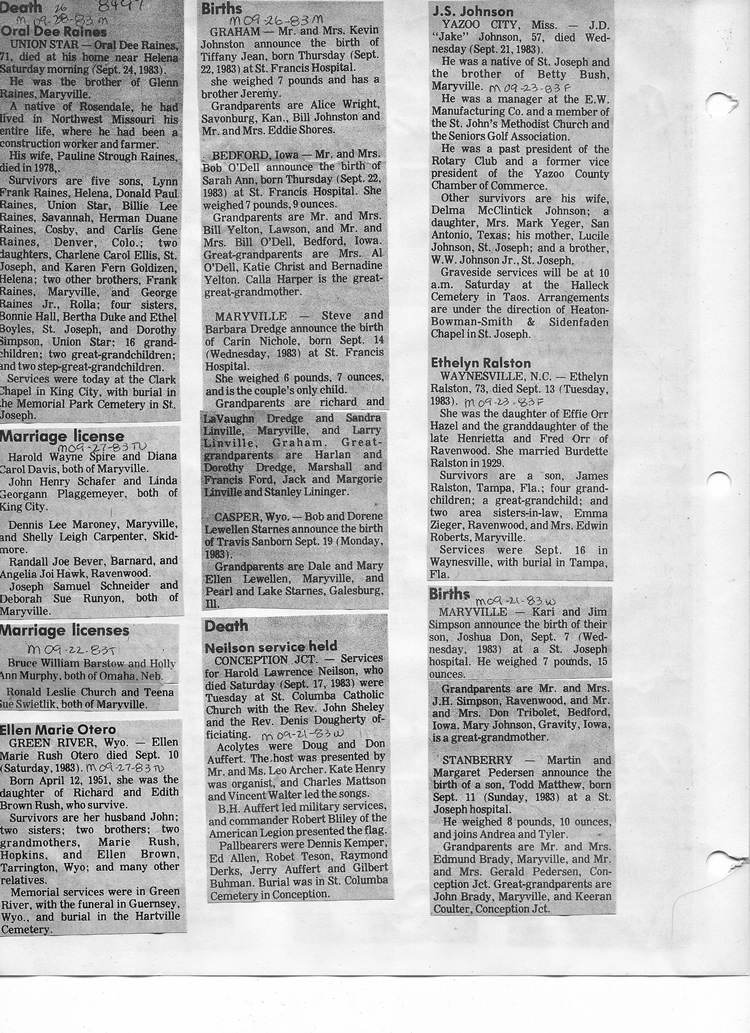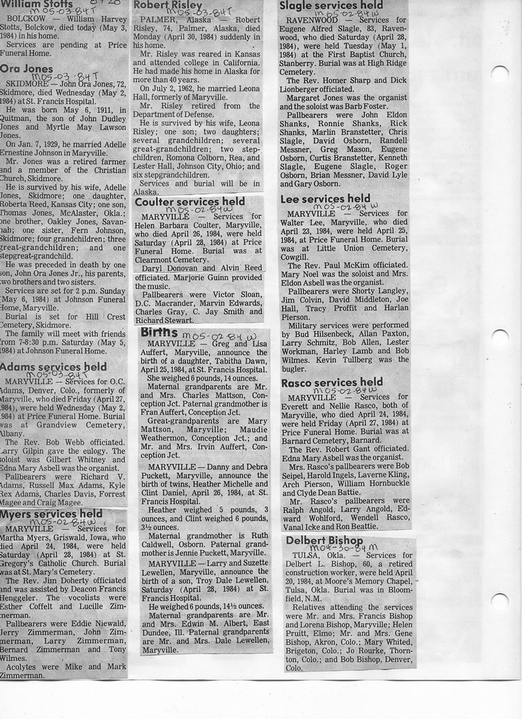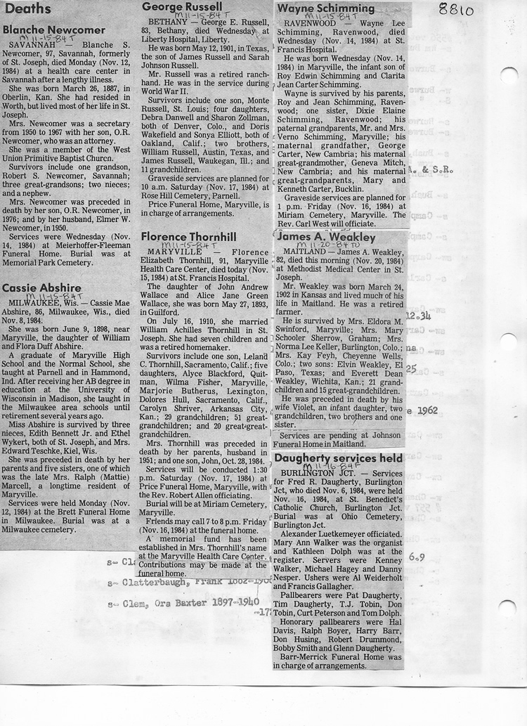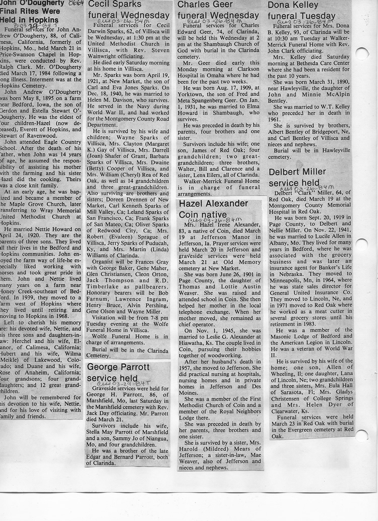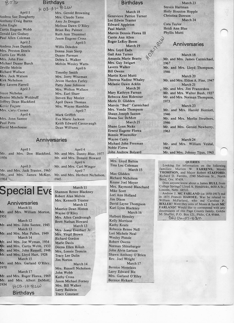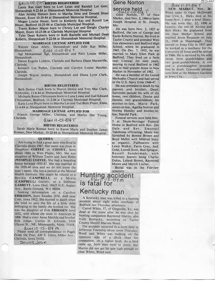 O'Dell's Abstracted Newspaper Index - Clippings - #8000's