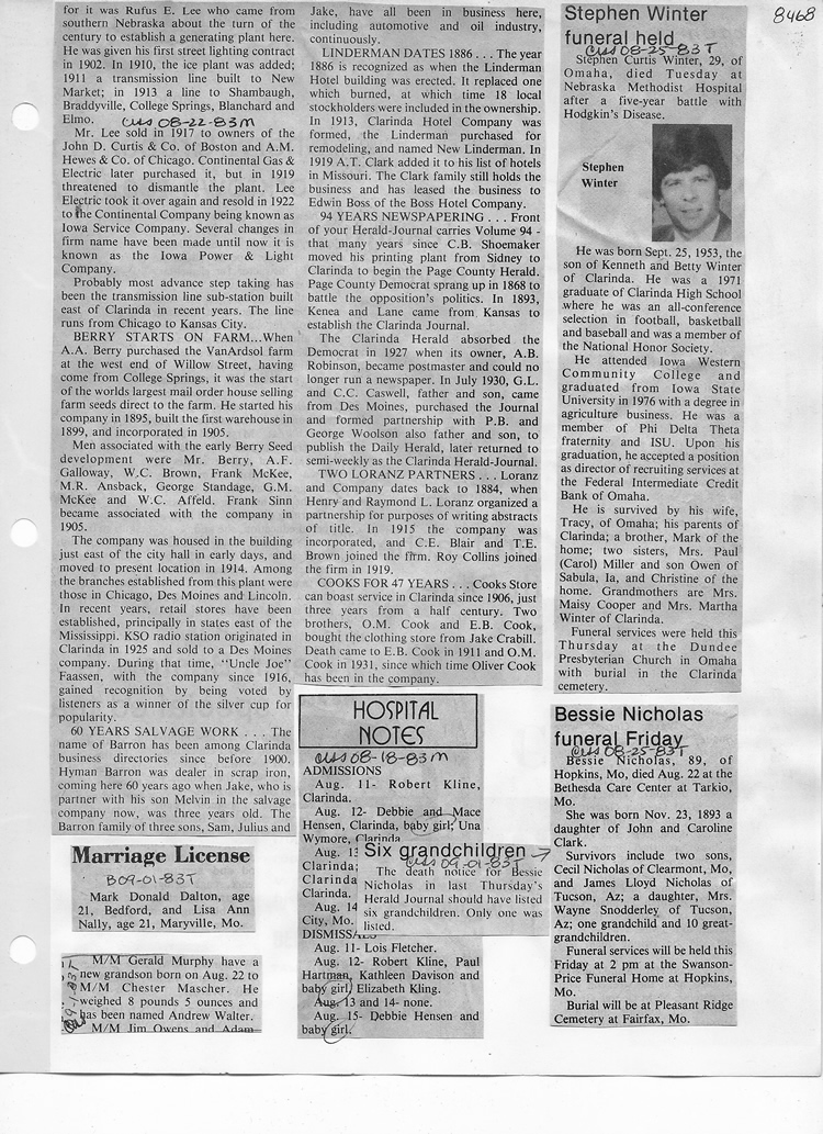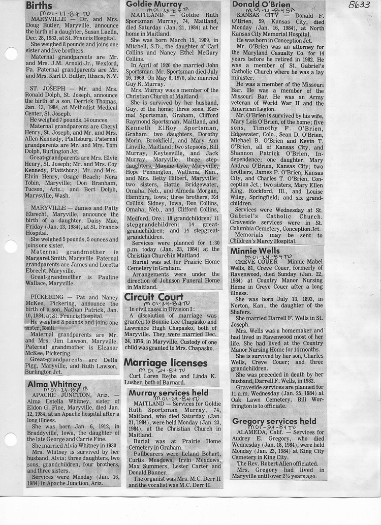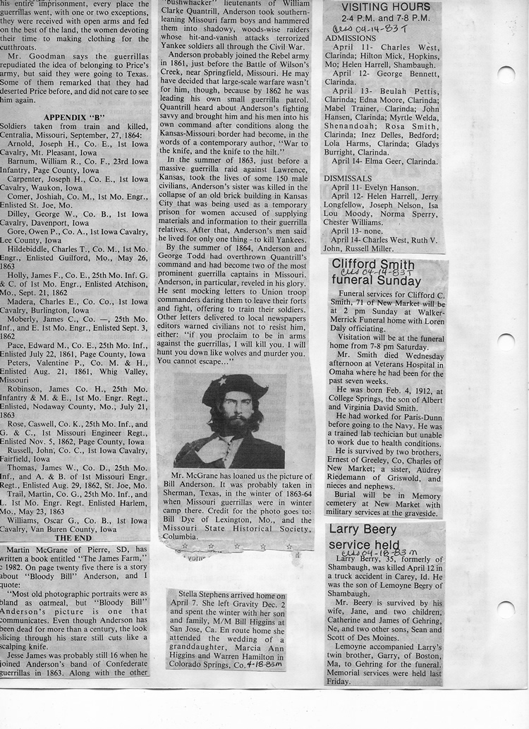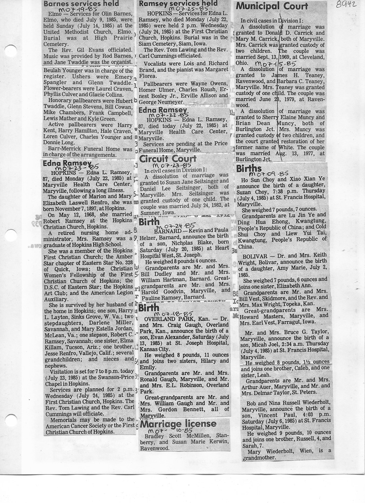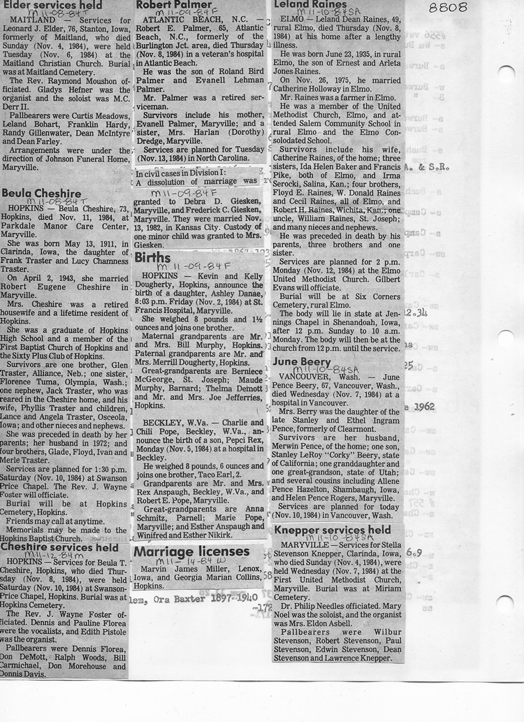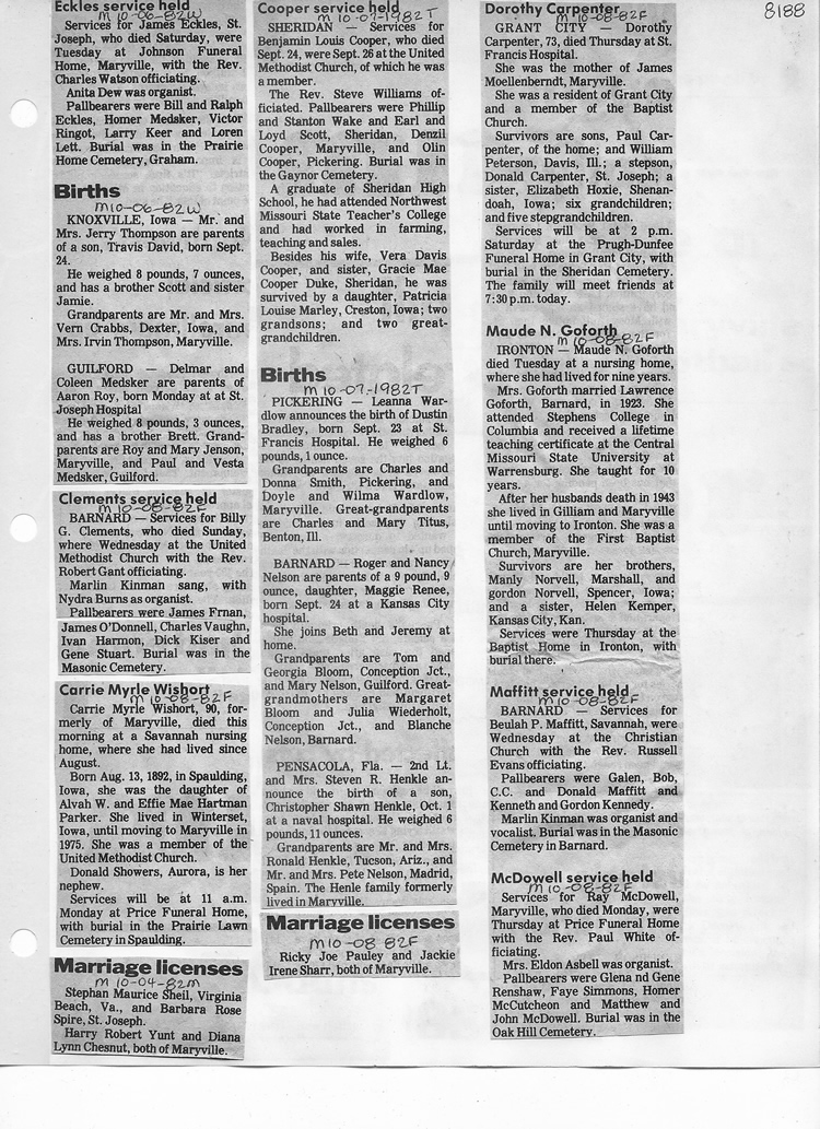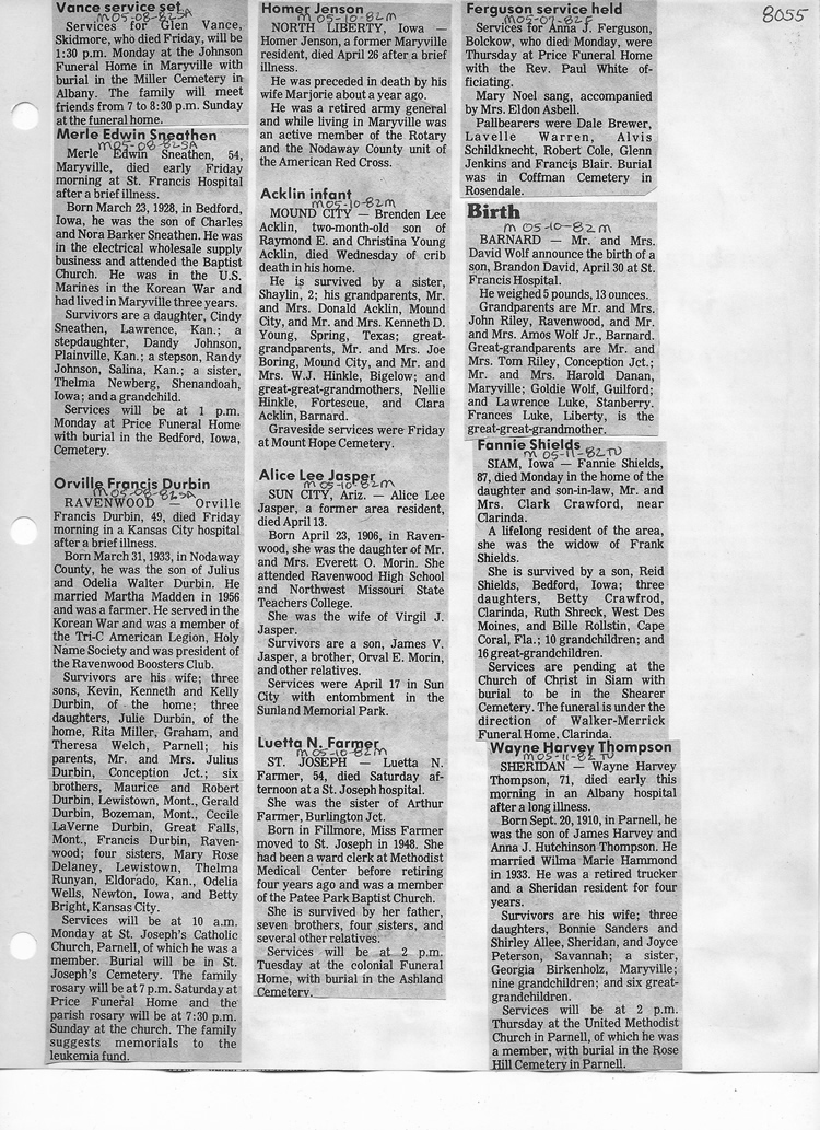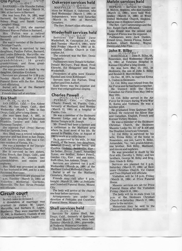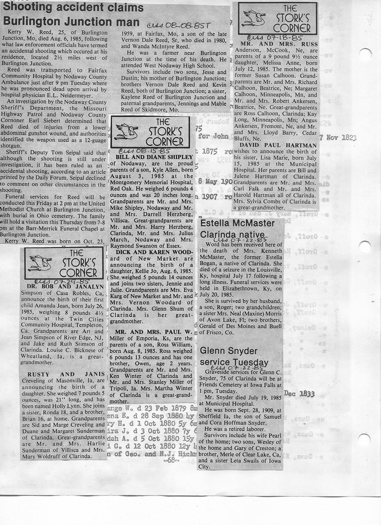 O'Dell's Abstracted Newspaper Index - Clippings - #8000's
