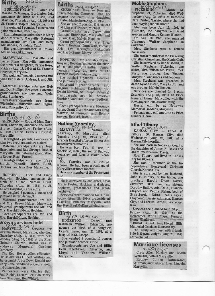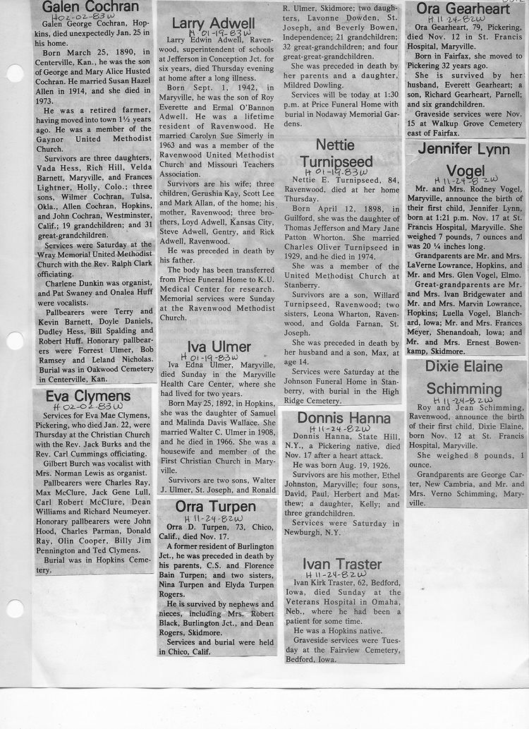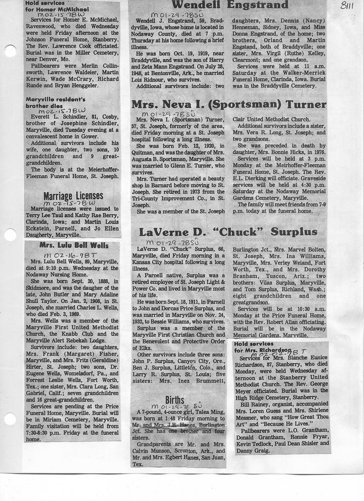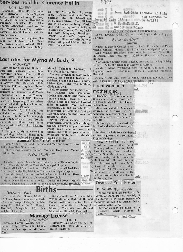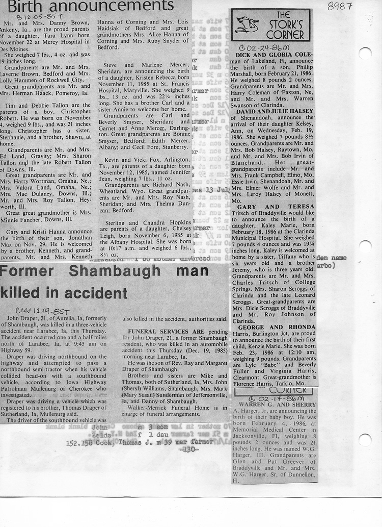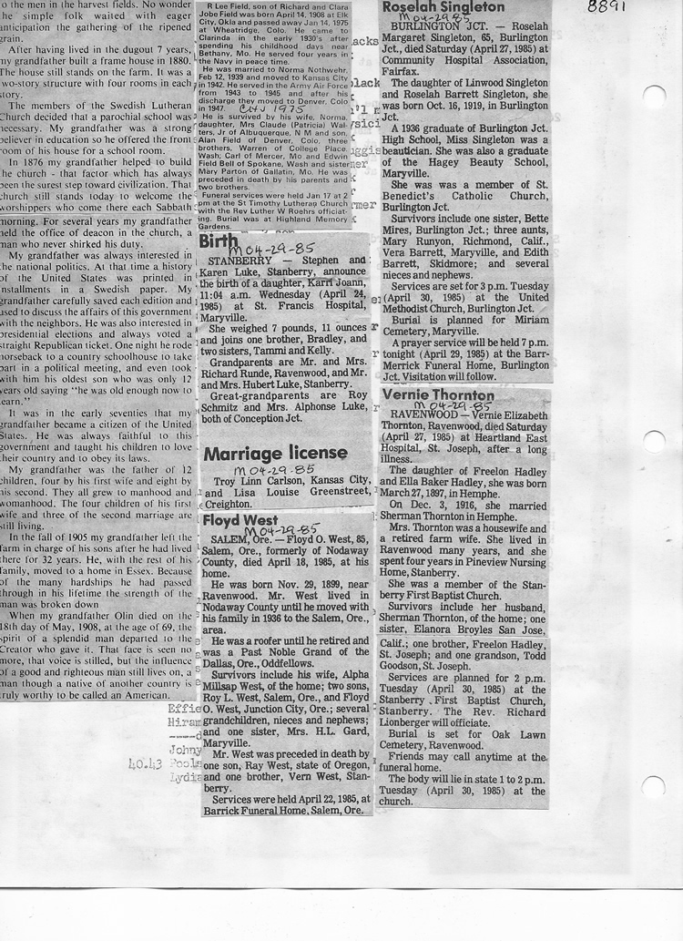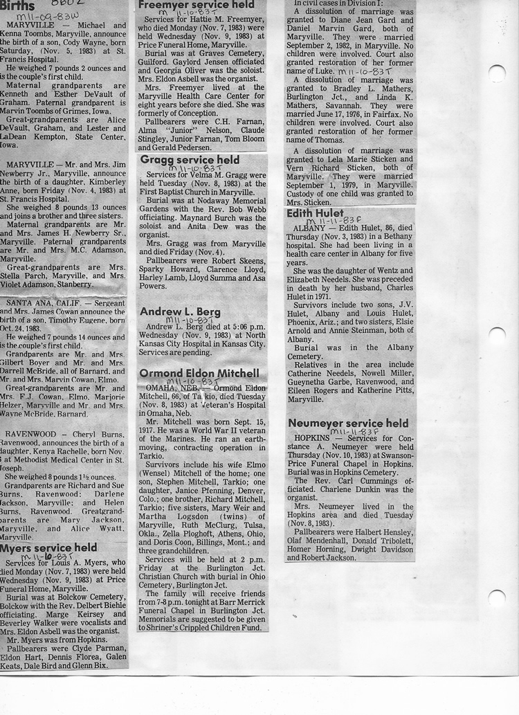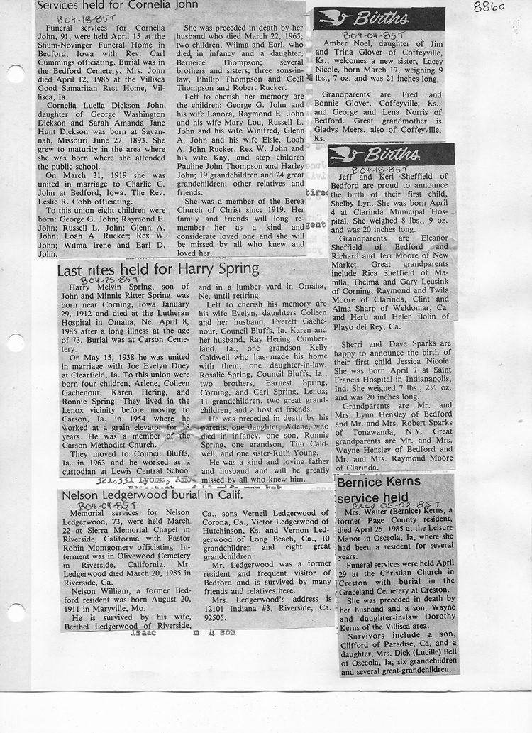 O'Dell's Abstracted Newspaper Index - Clippings - #8000's