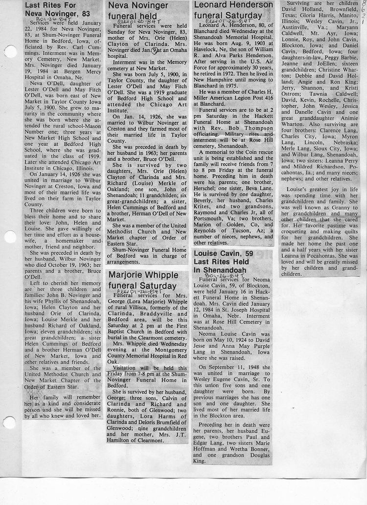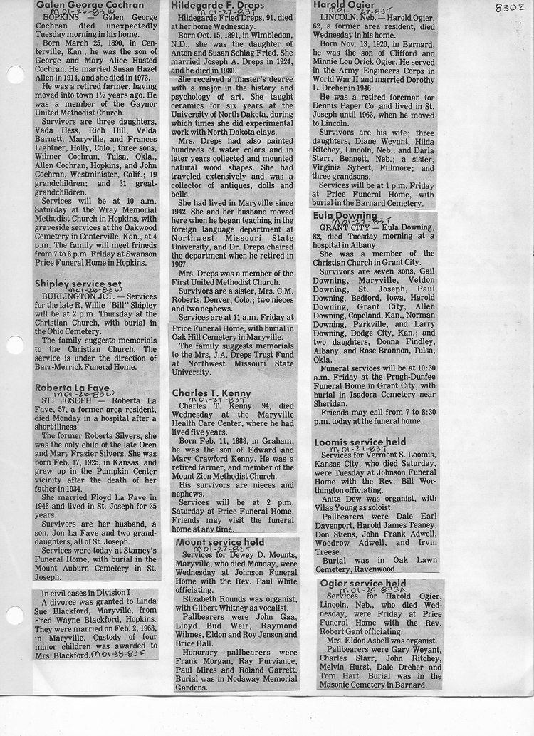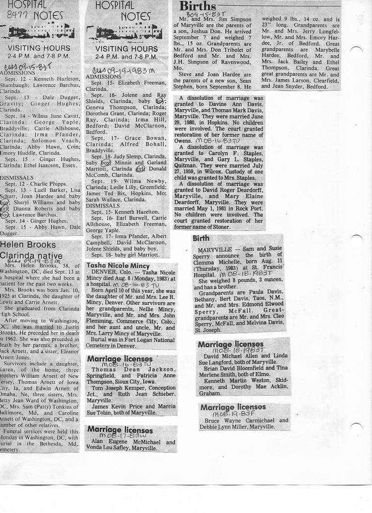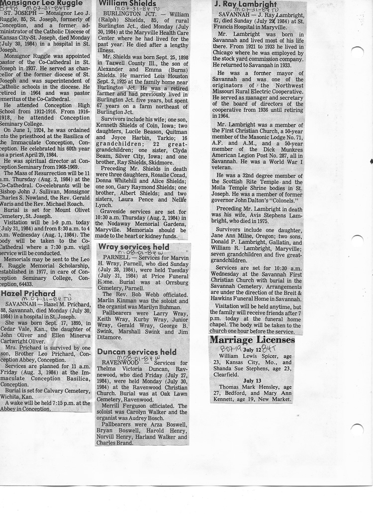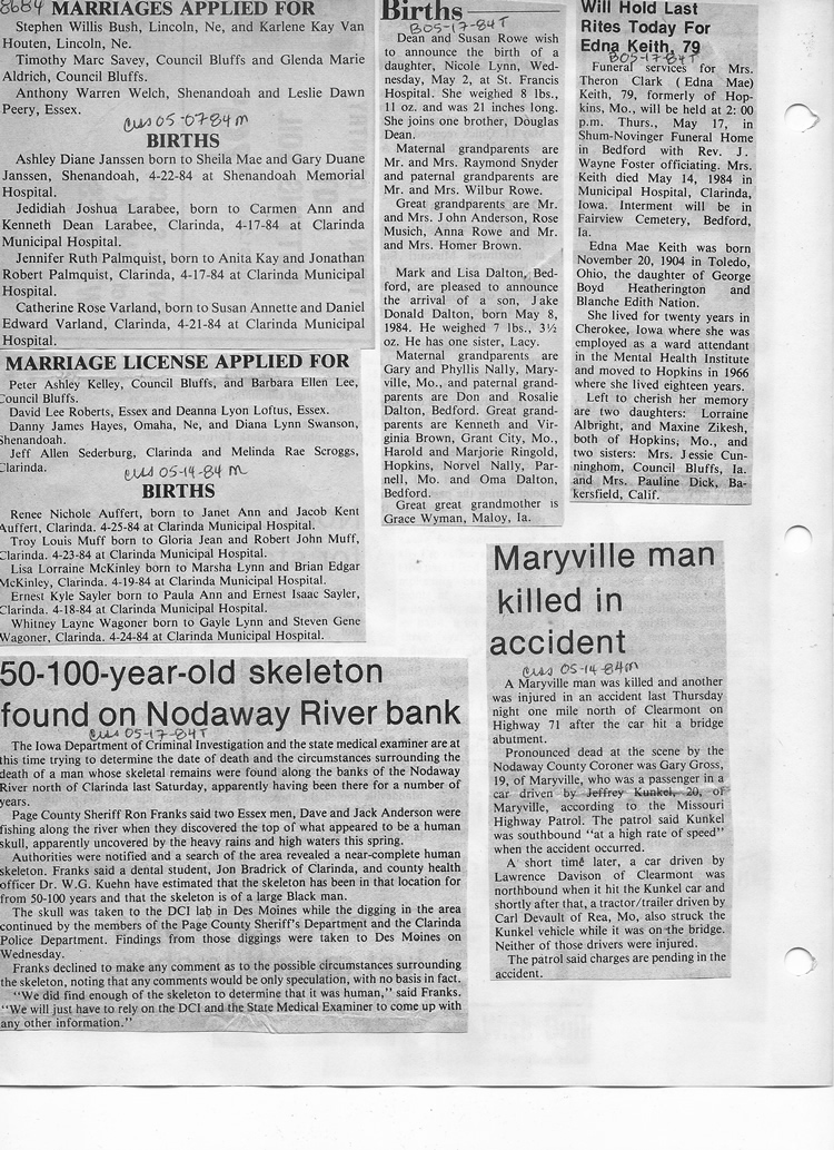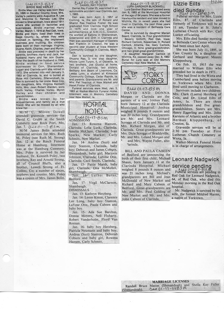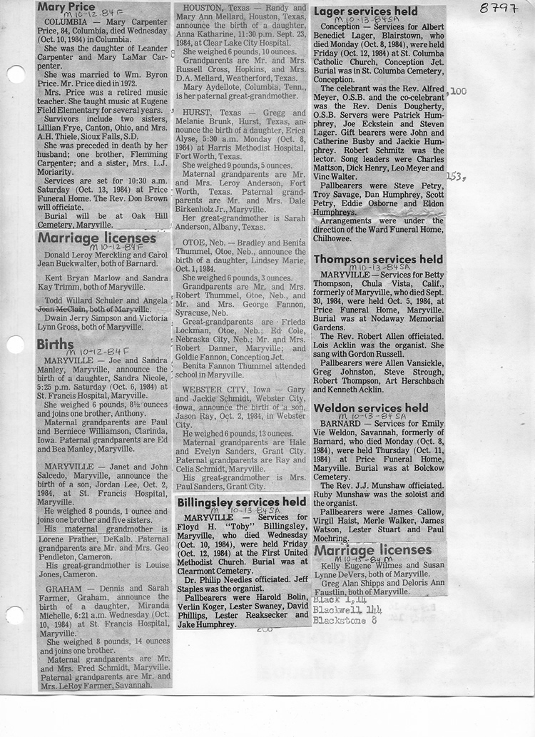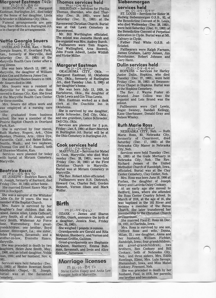 O'Dell's Abstracted Newspaper Index - Clippings - #8000's