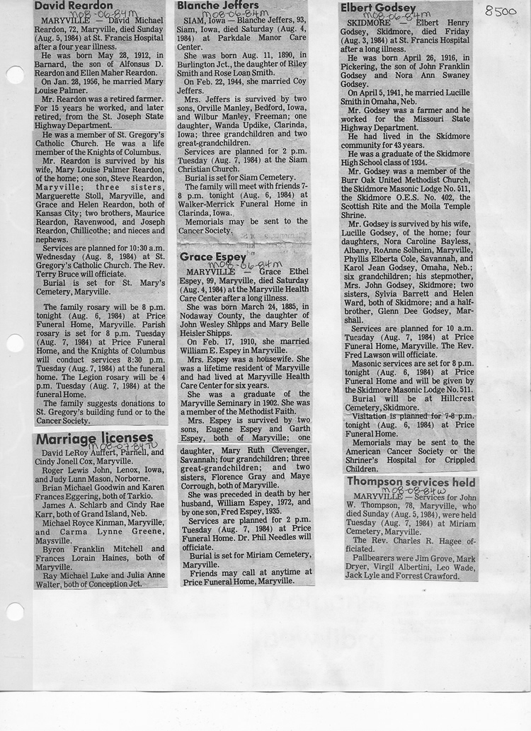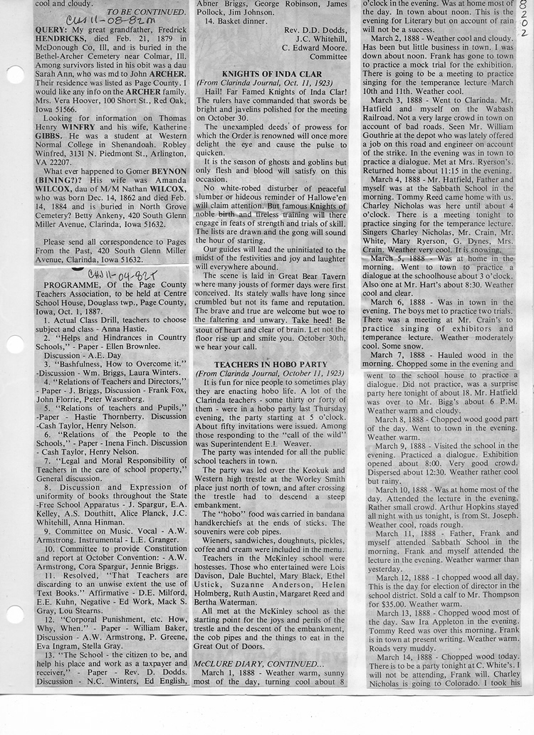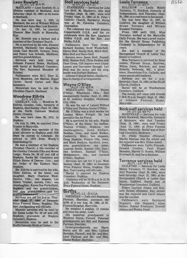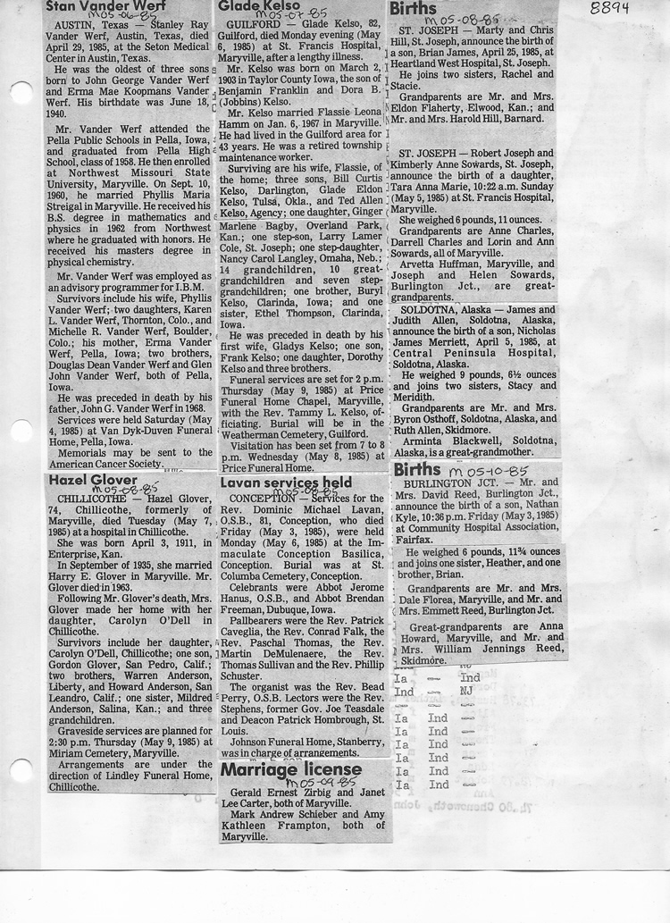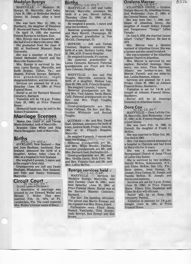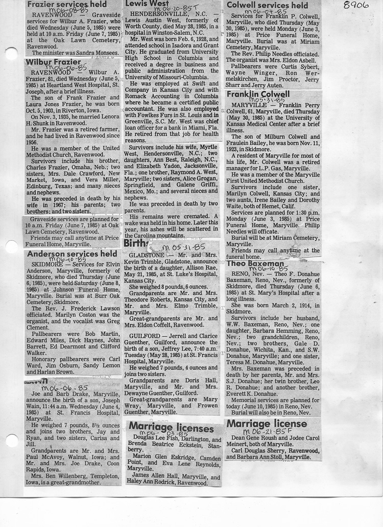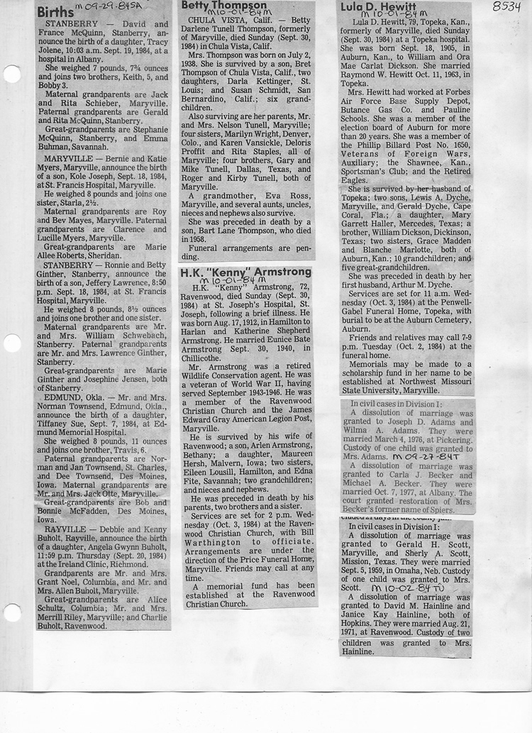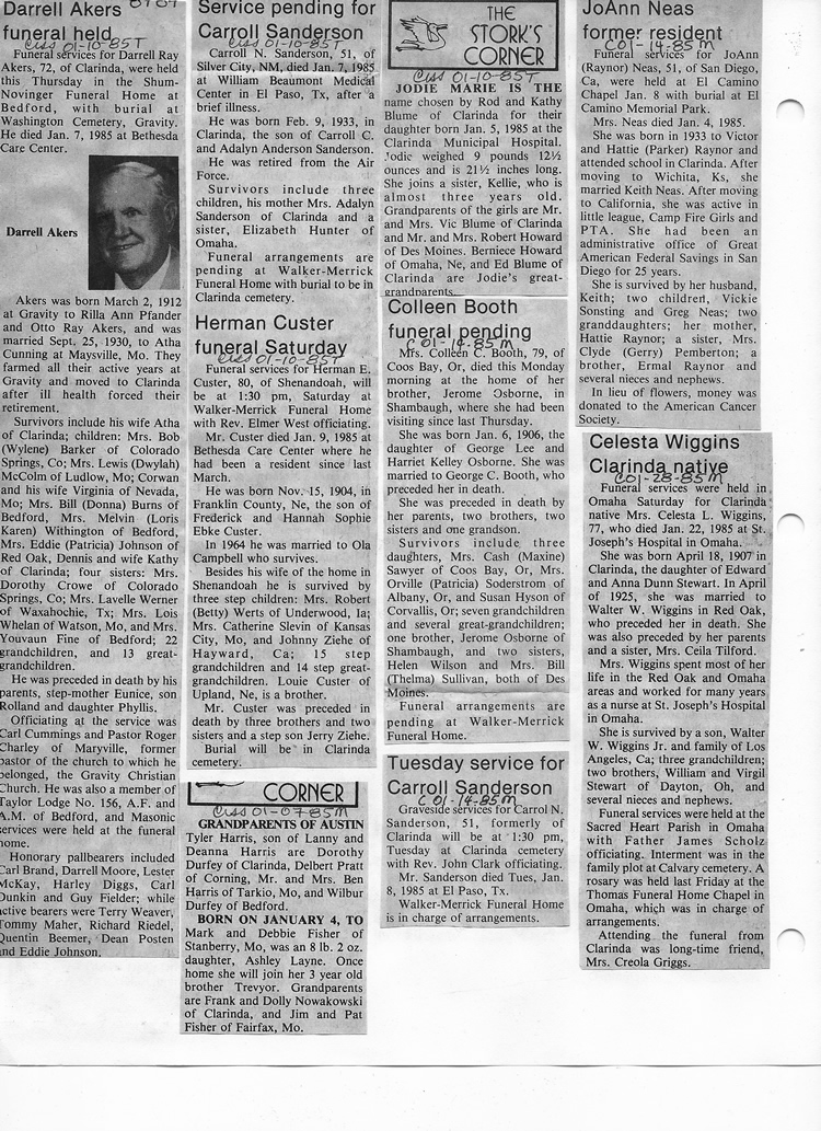 O'Dell's Abstracted Newspaper Index - Clippings - #8000's