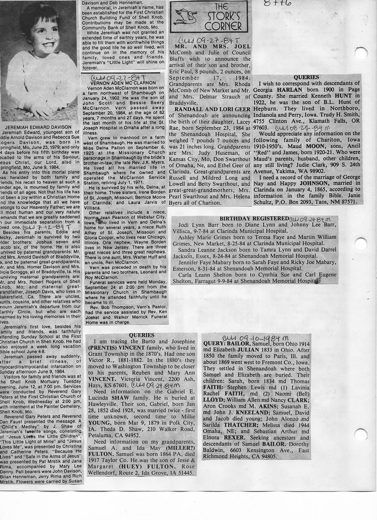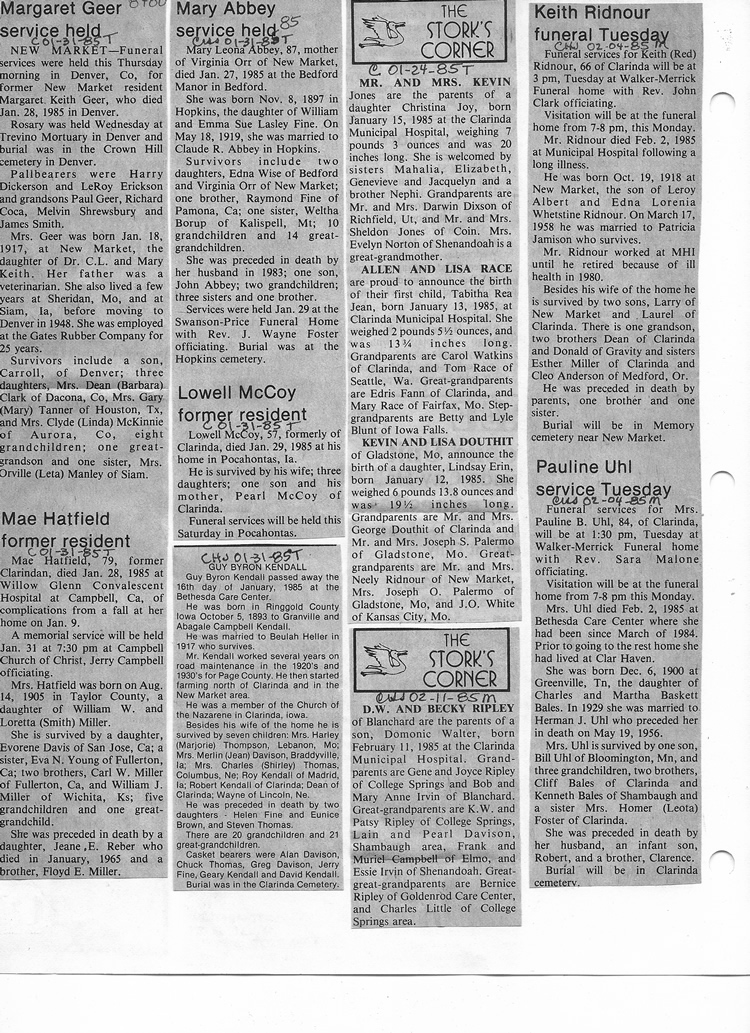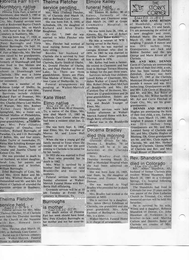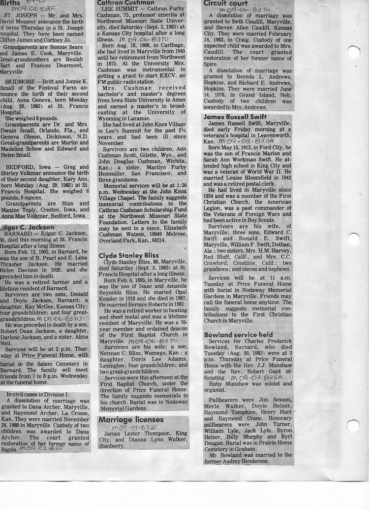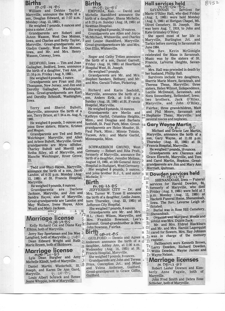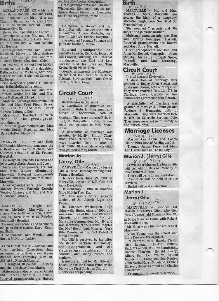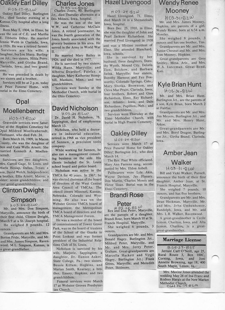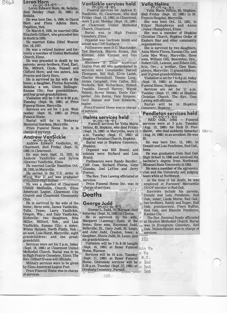 O'Dell's Abstracted Newspaper Index - Clippings - #8000's