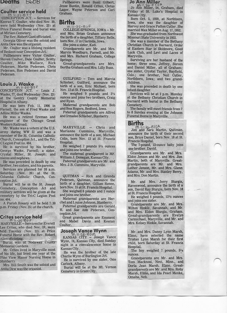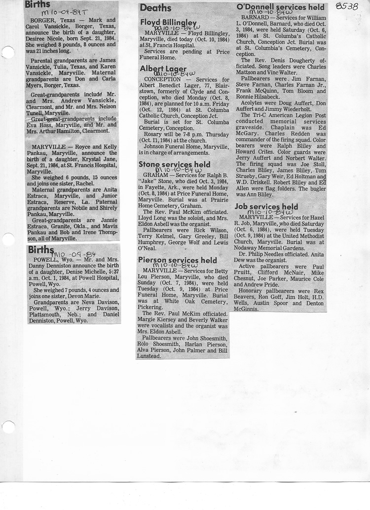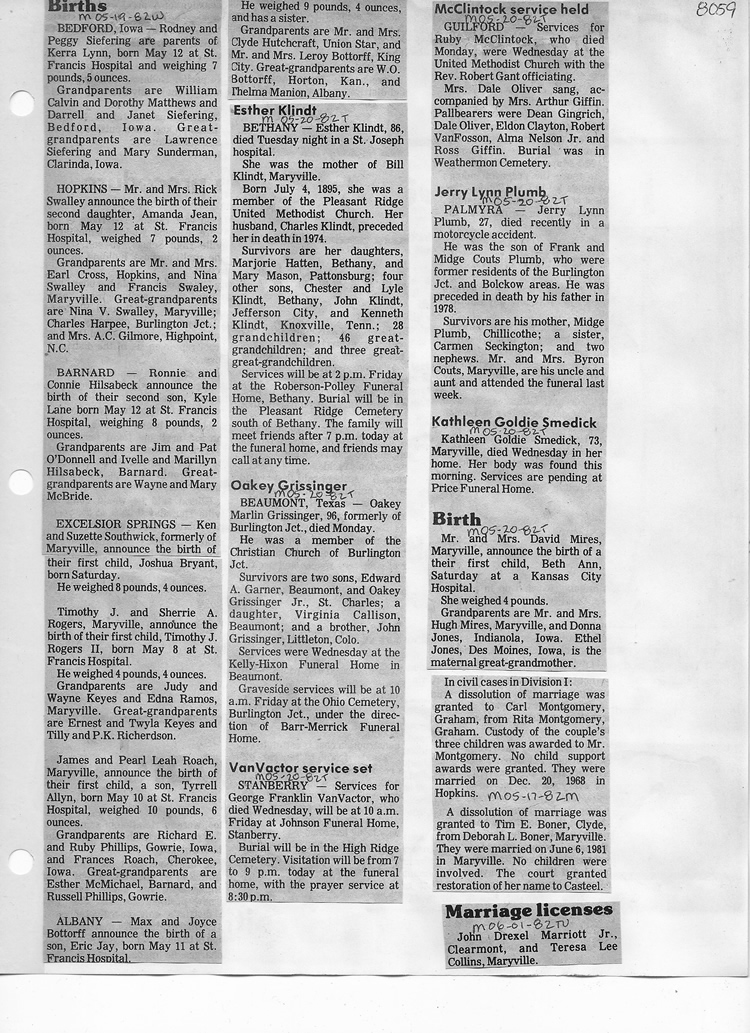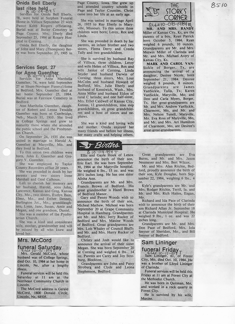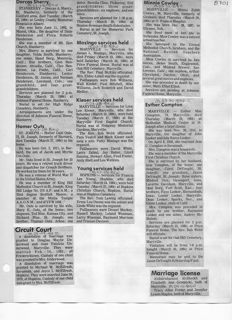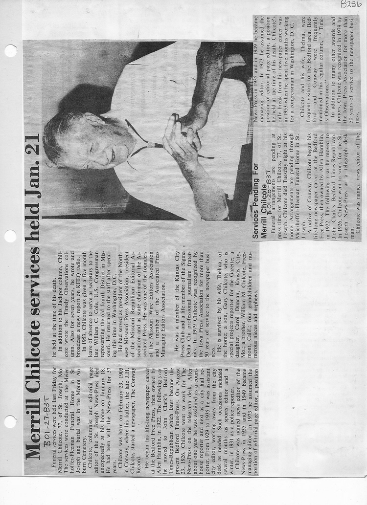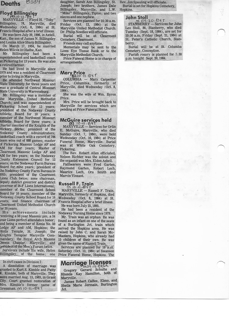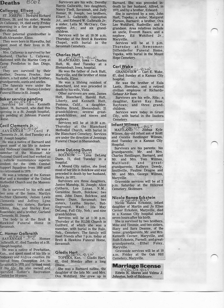 O'Dell's Abstracted Newspaper Index - Clippings - #8000's