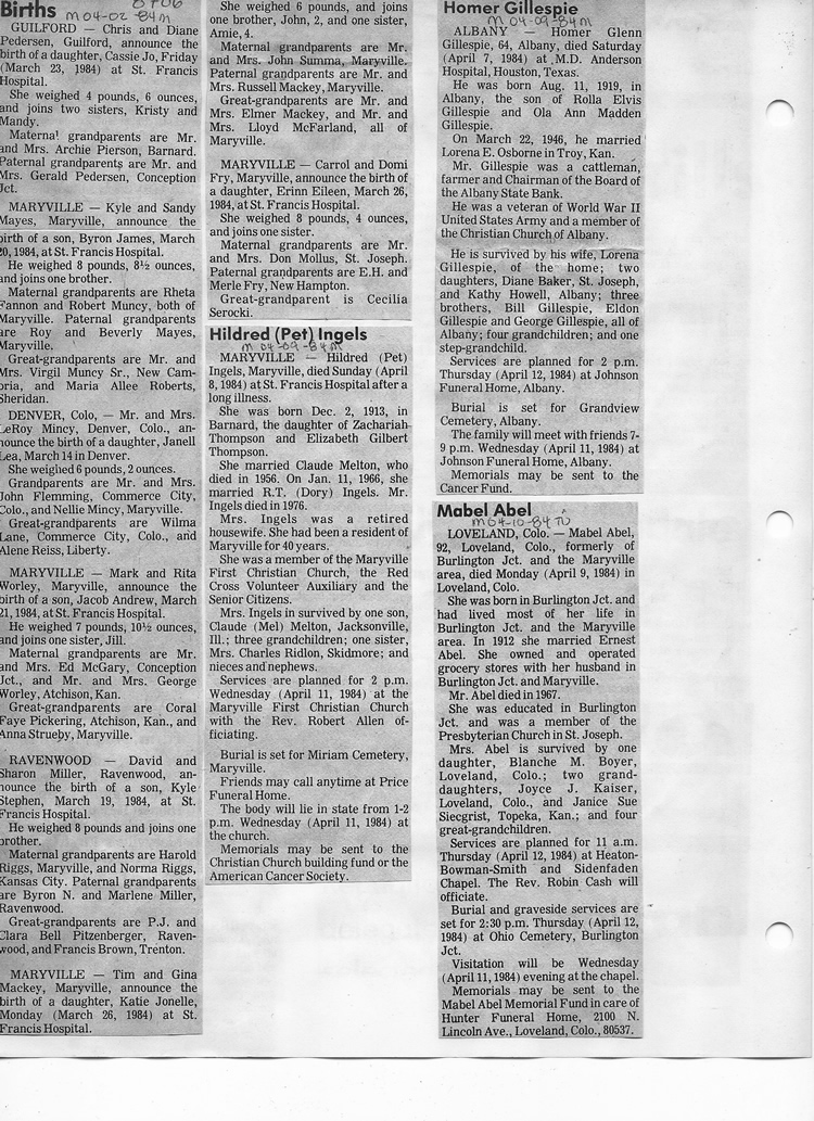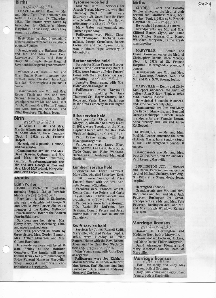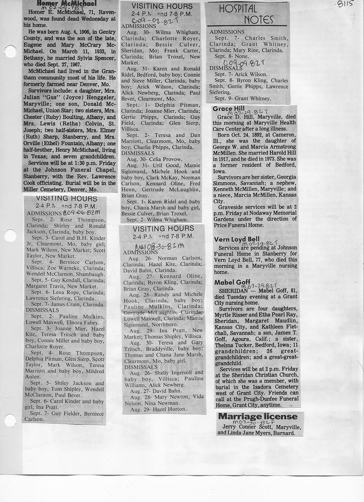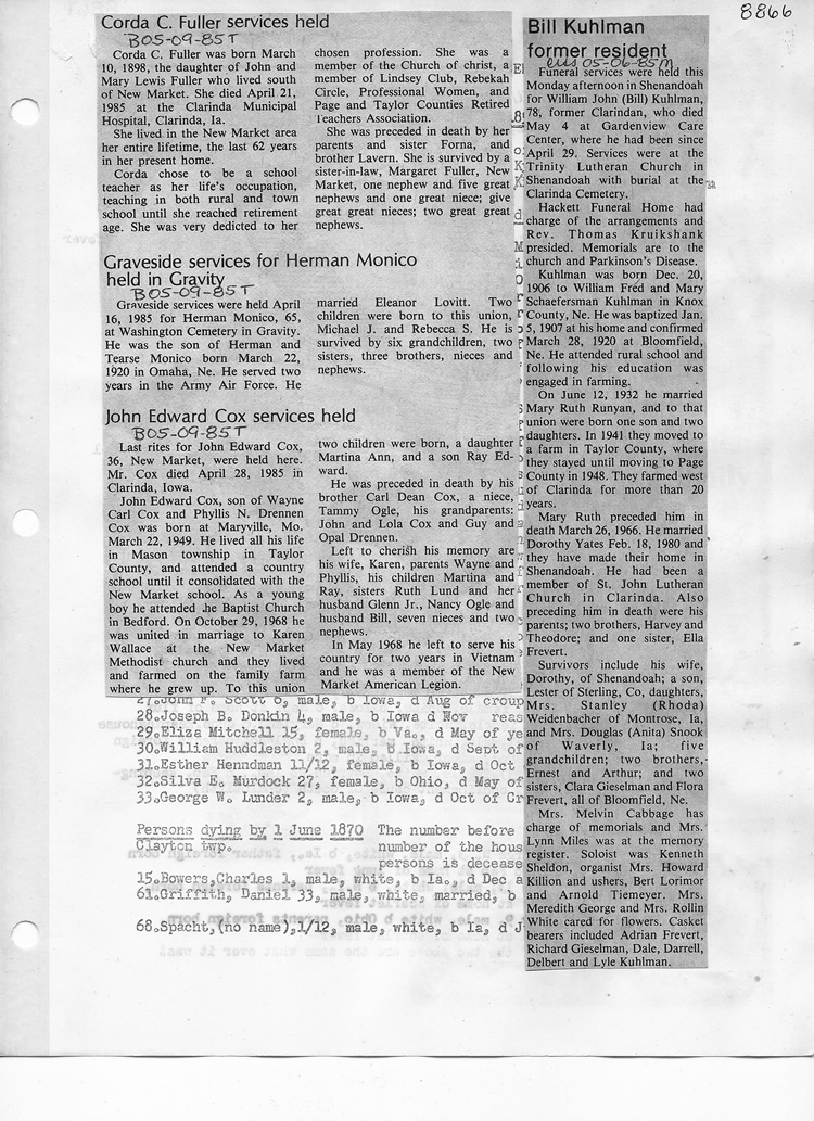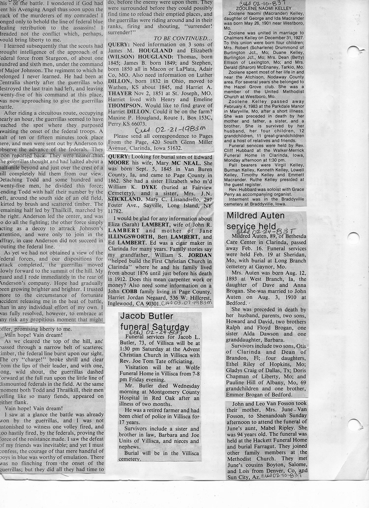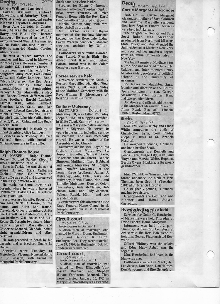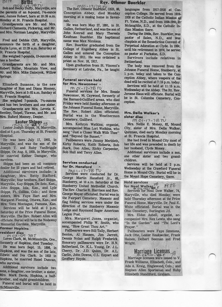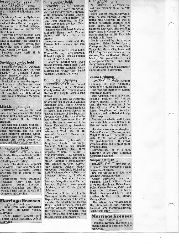 O'Dell's Abstracted Newspaper Index - Clippings - #8000's