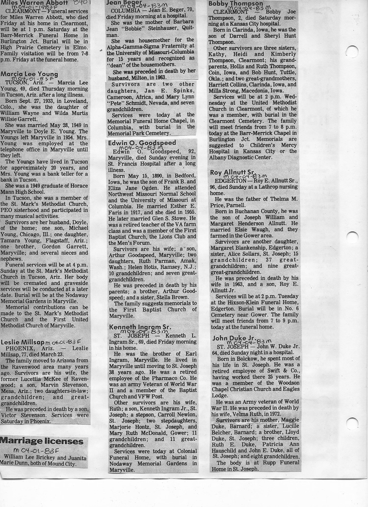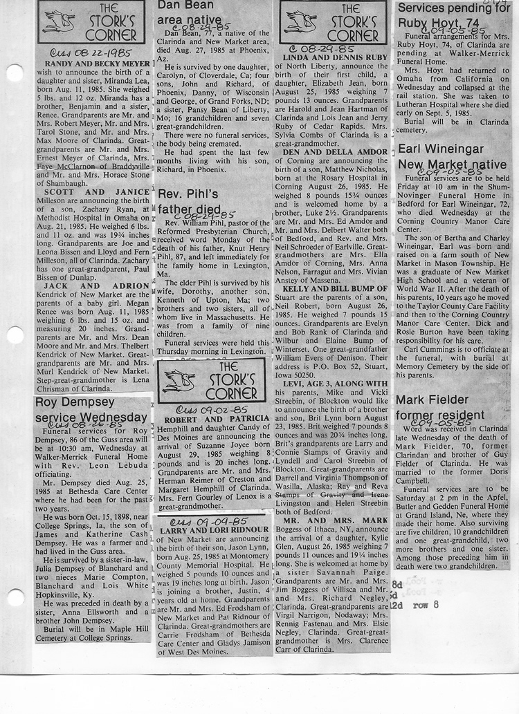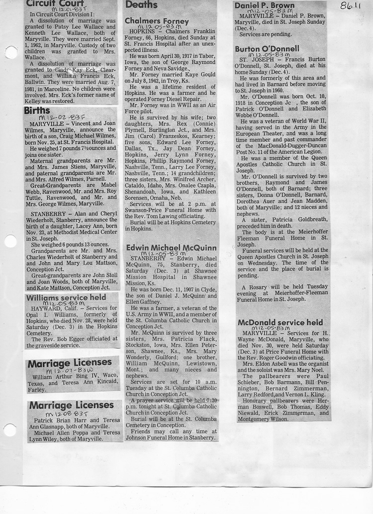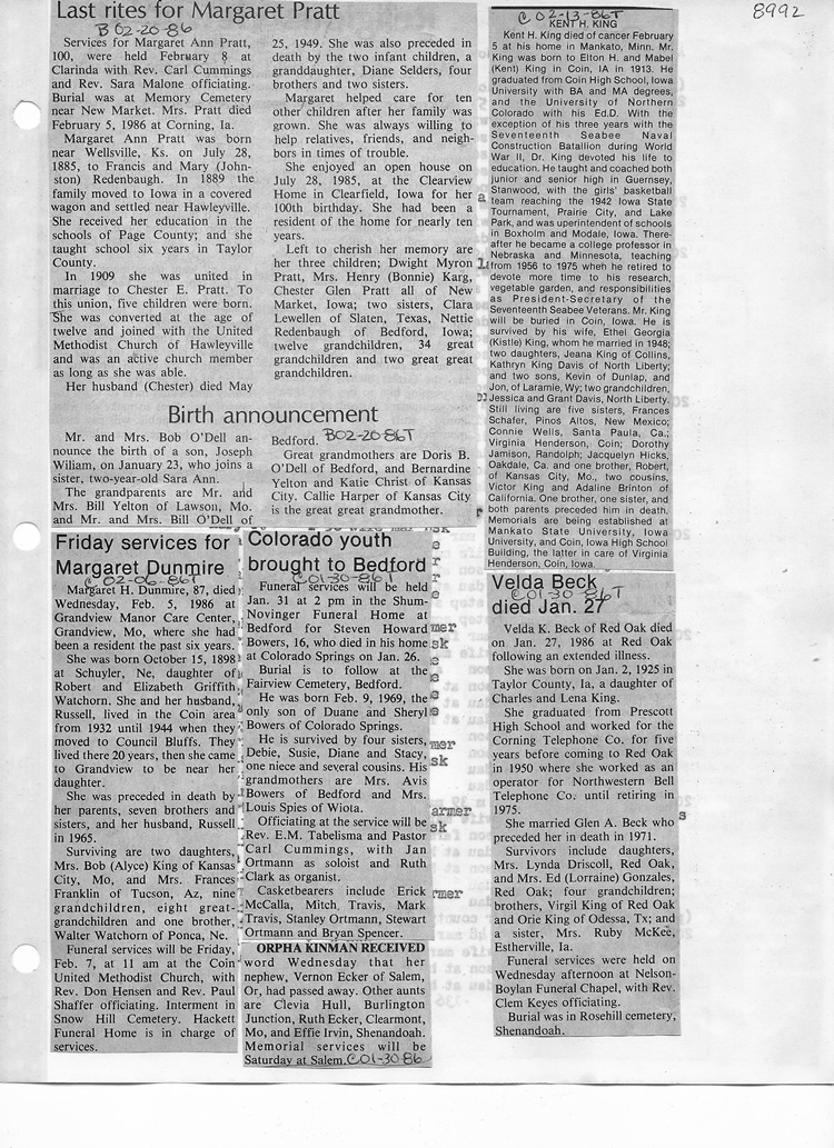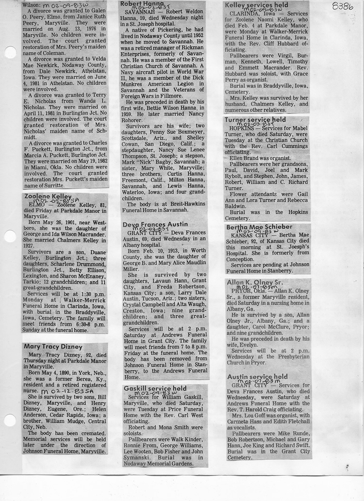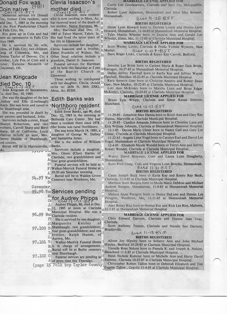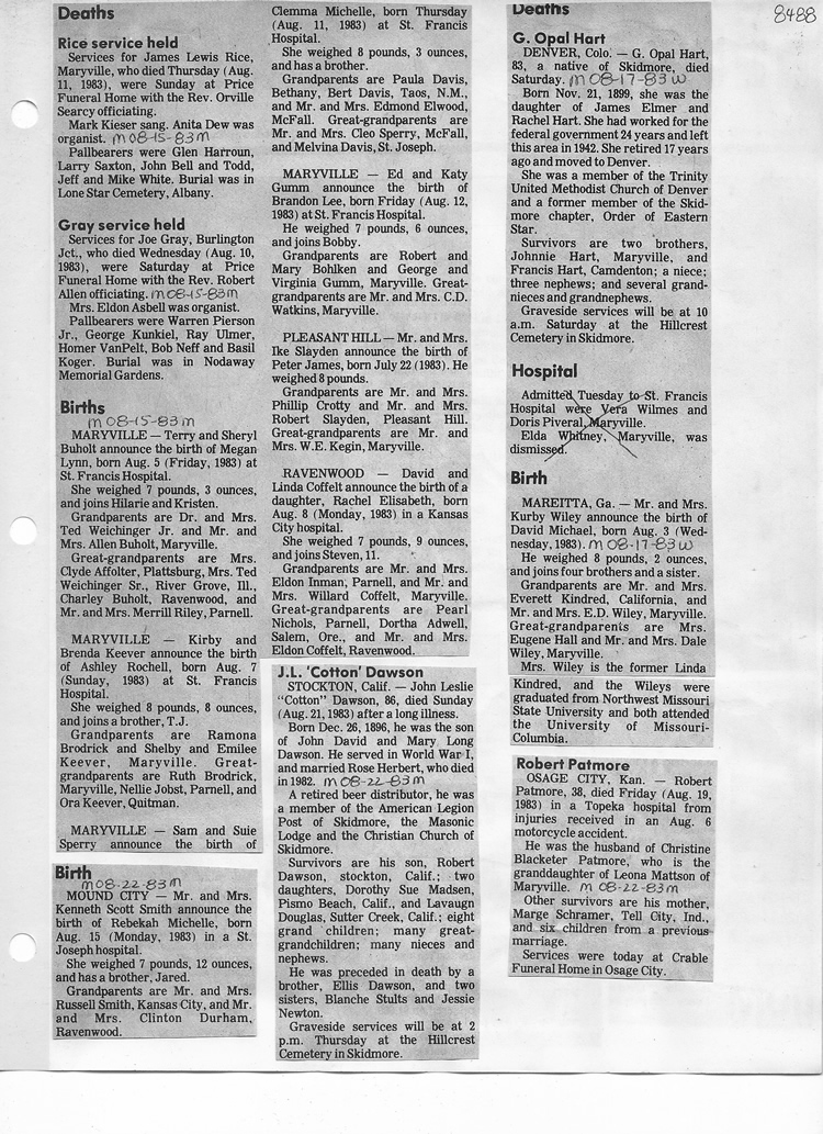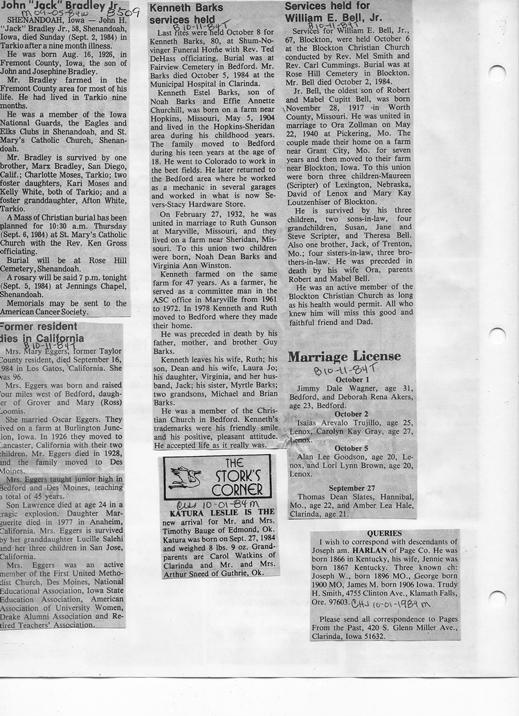 O'Dell's Abstracted Newspaper Index - Clippings - #8000's