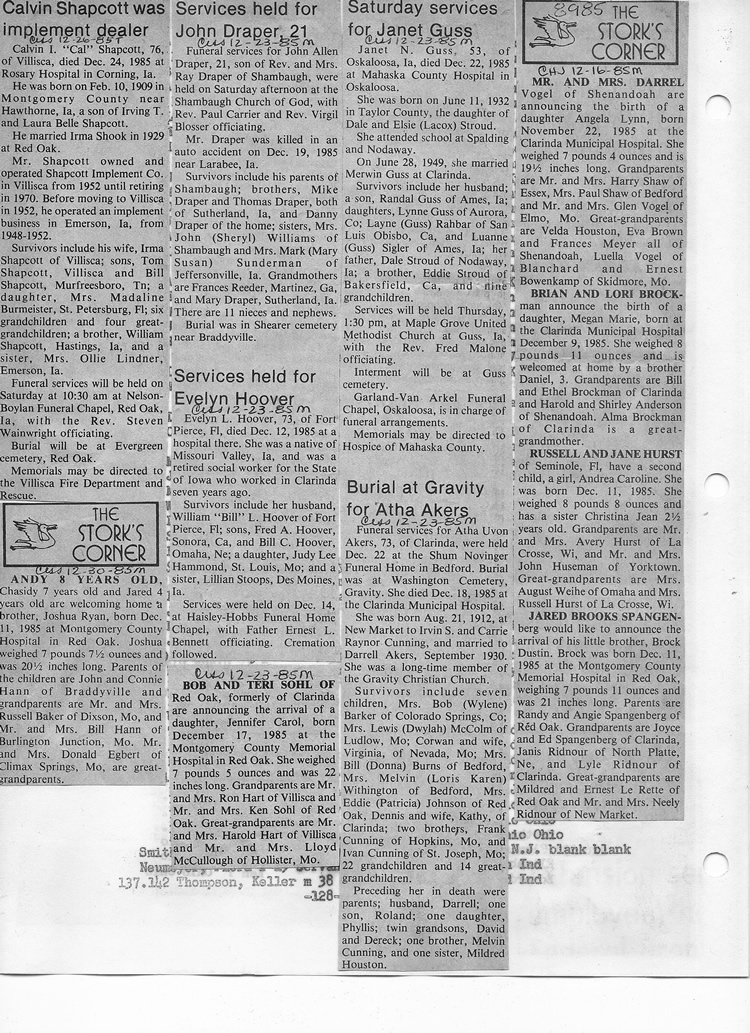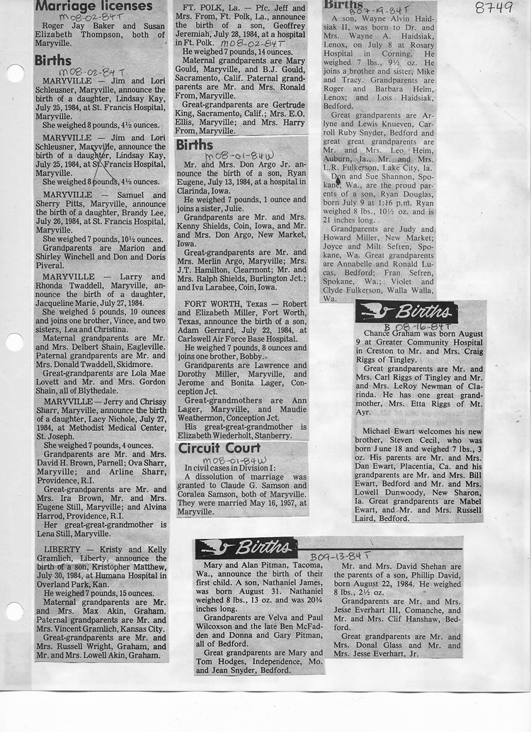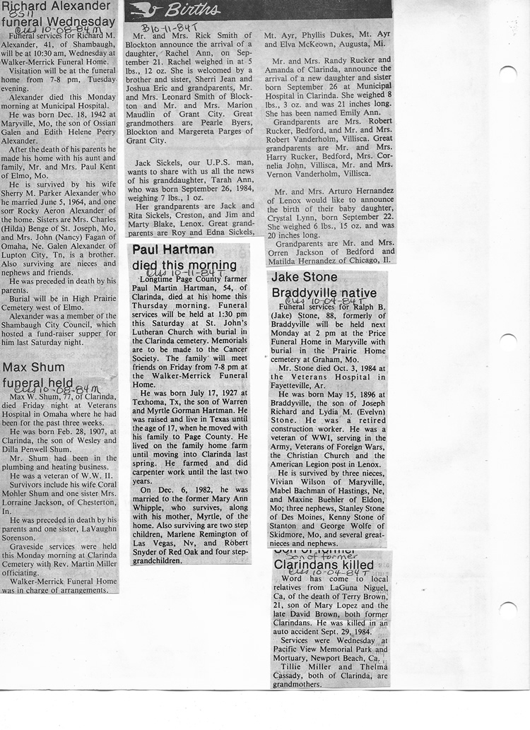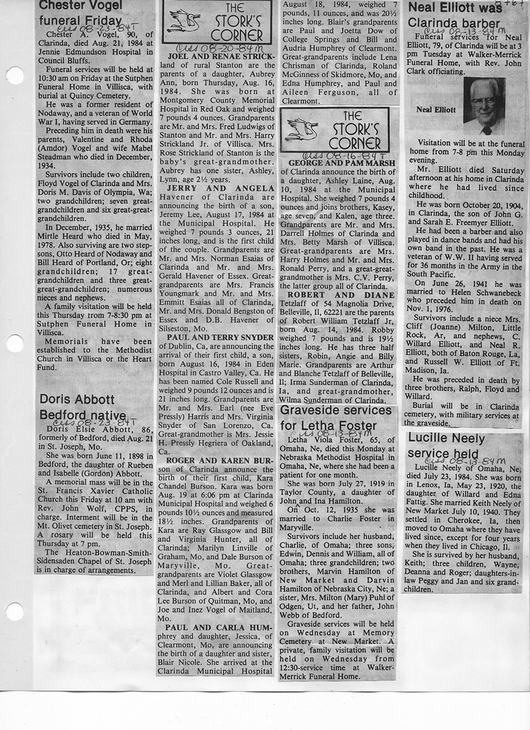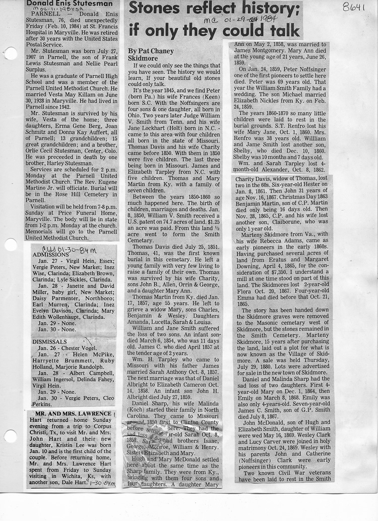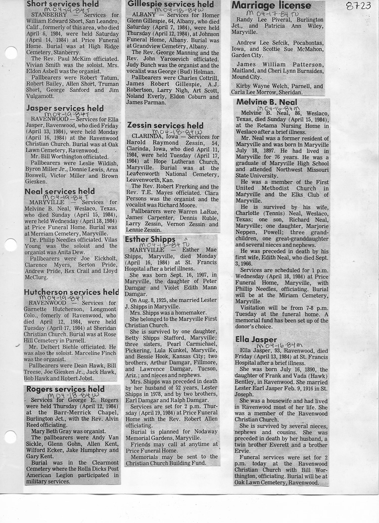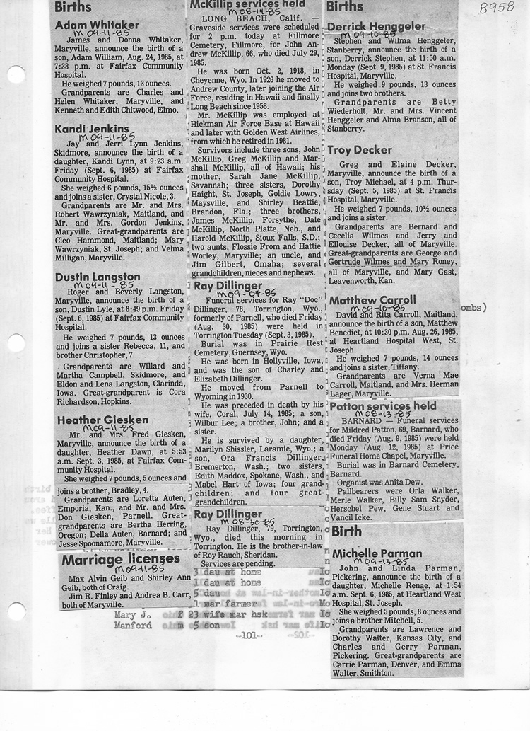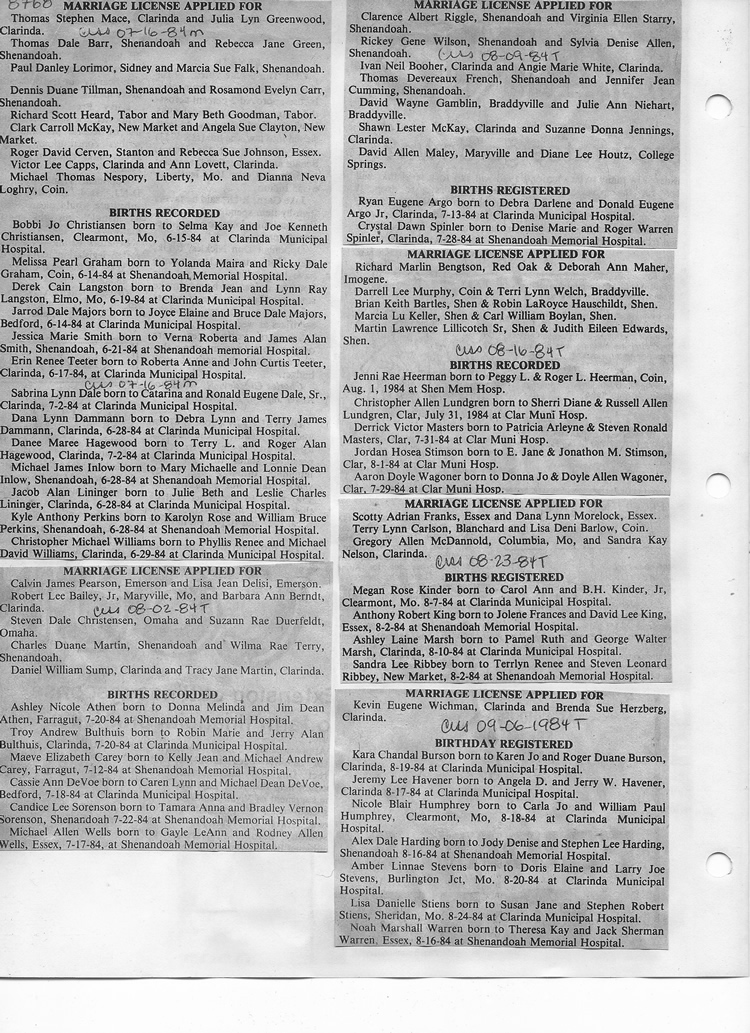 O'Dell's Abstracted Newspaper Index - Clippings - #8000's