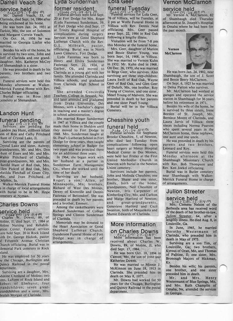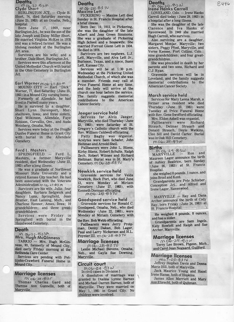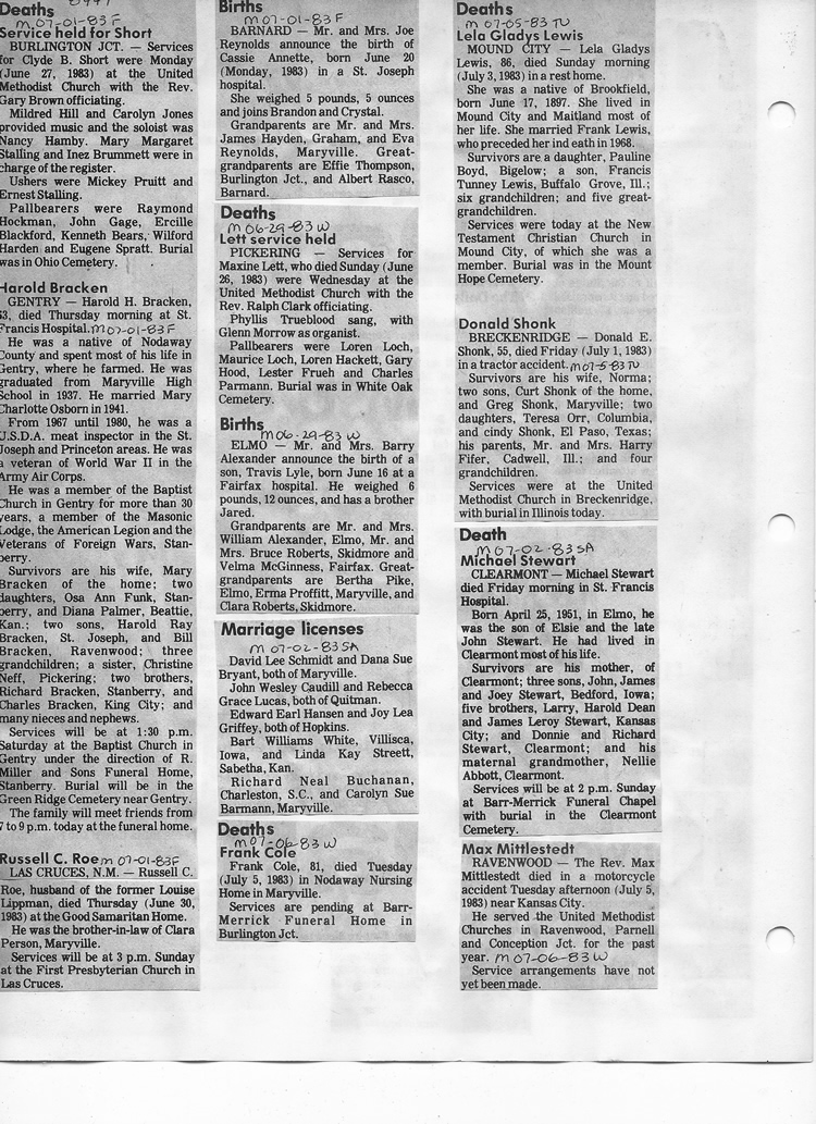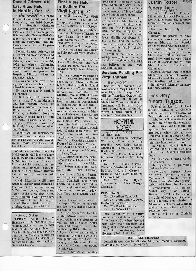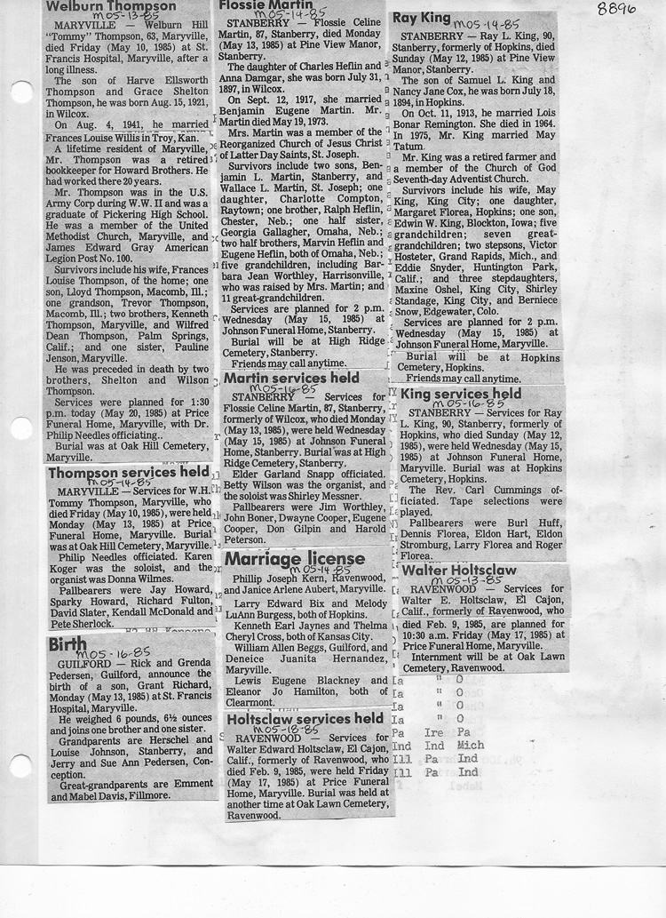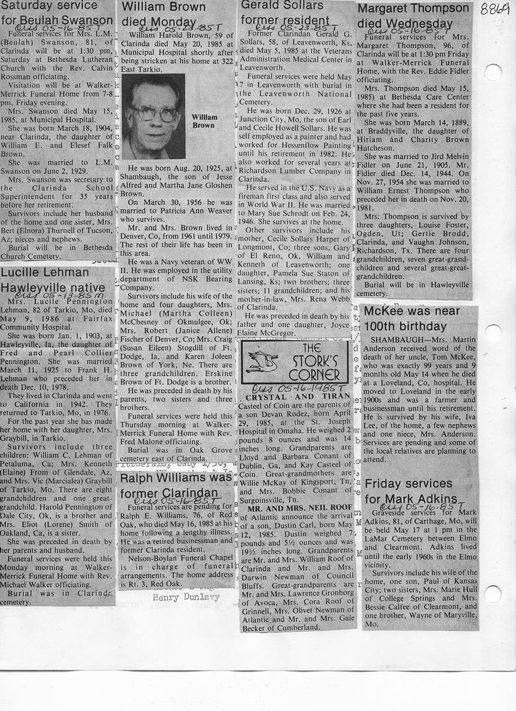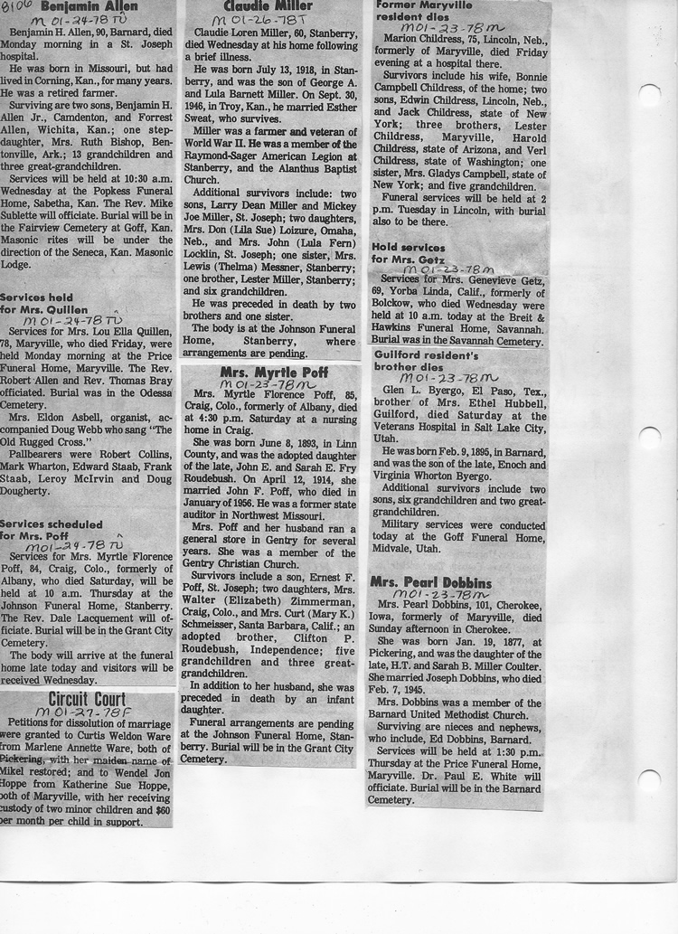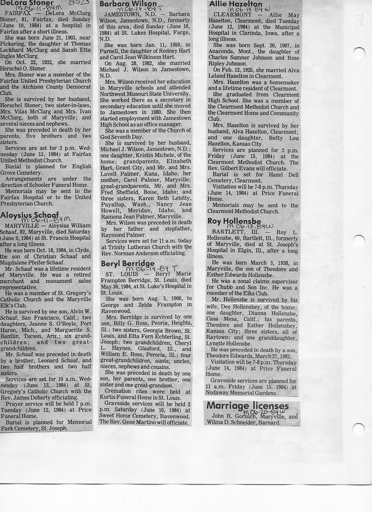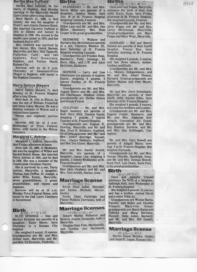 O'Dell's Abstracted Newspaper Index - Clippings - #8000's
