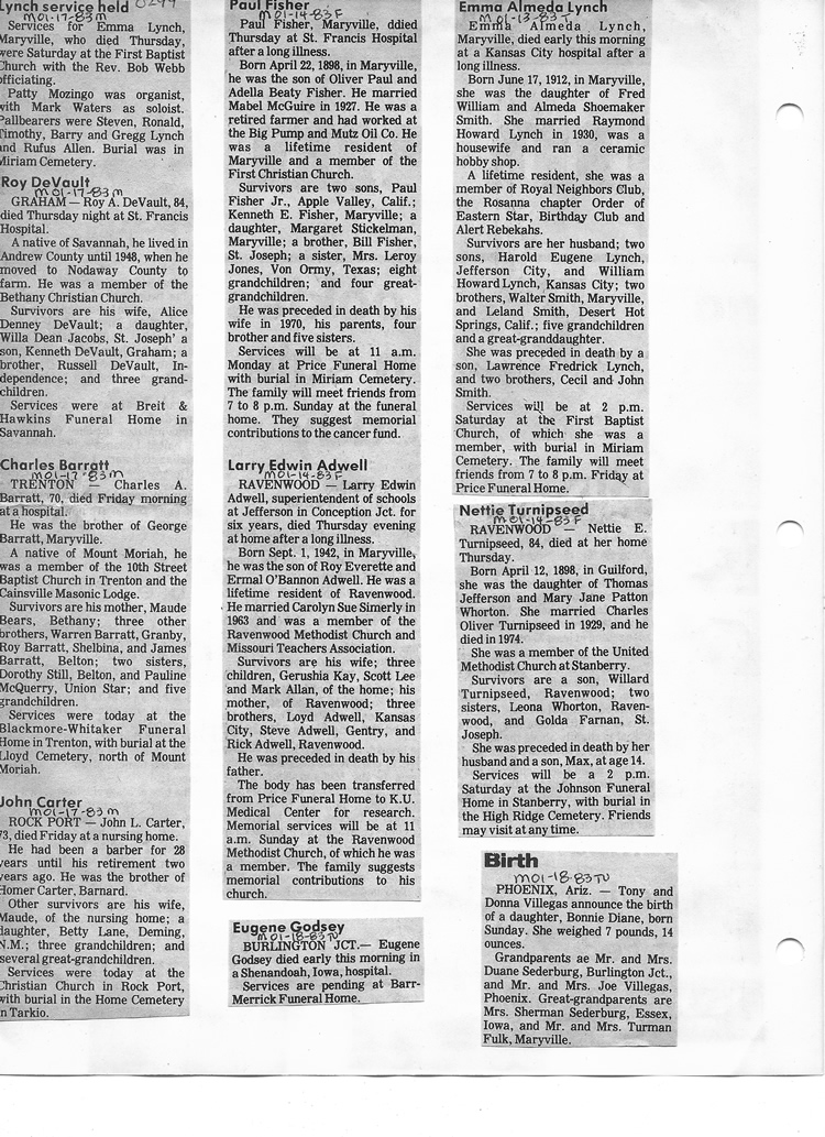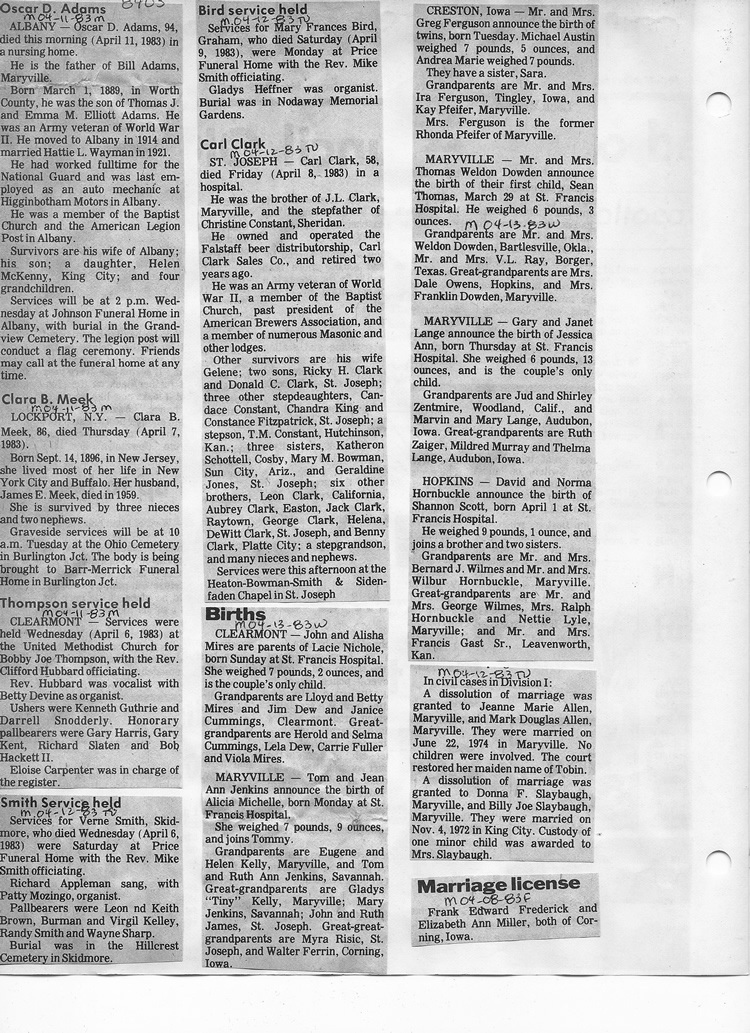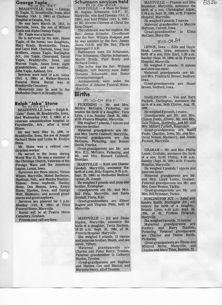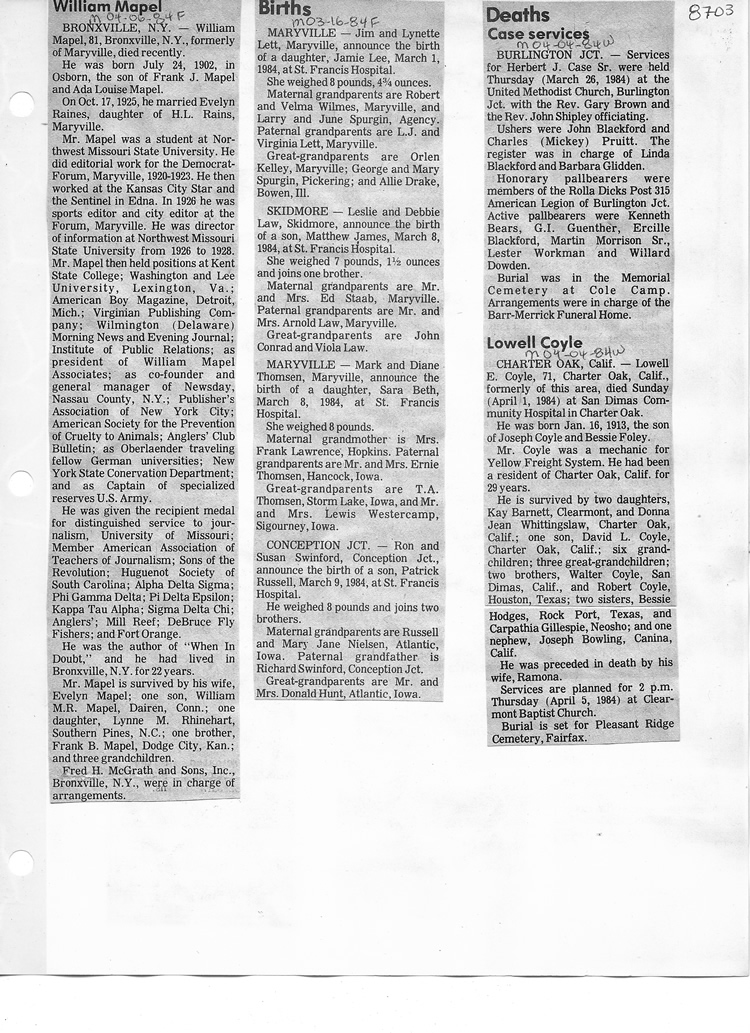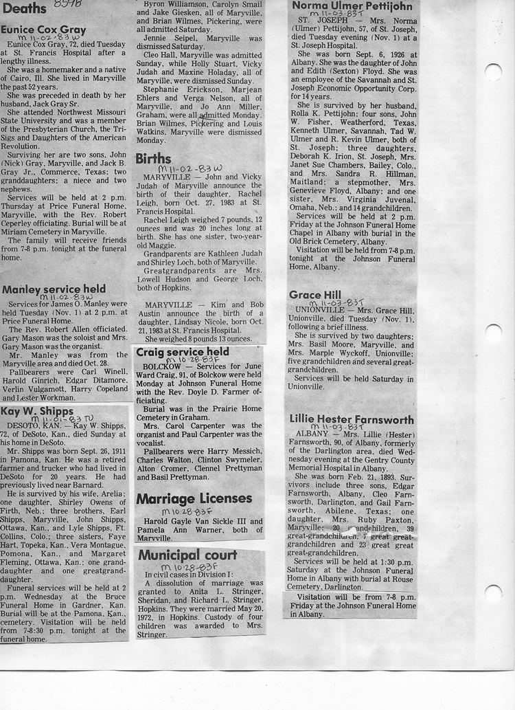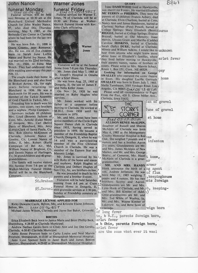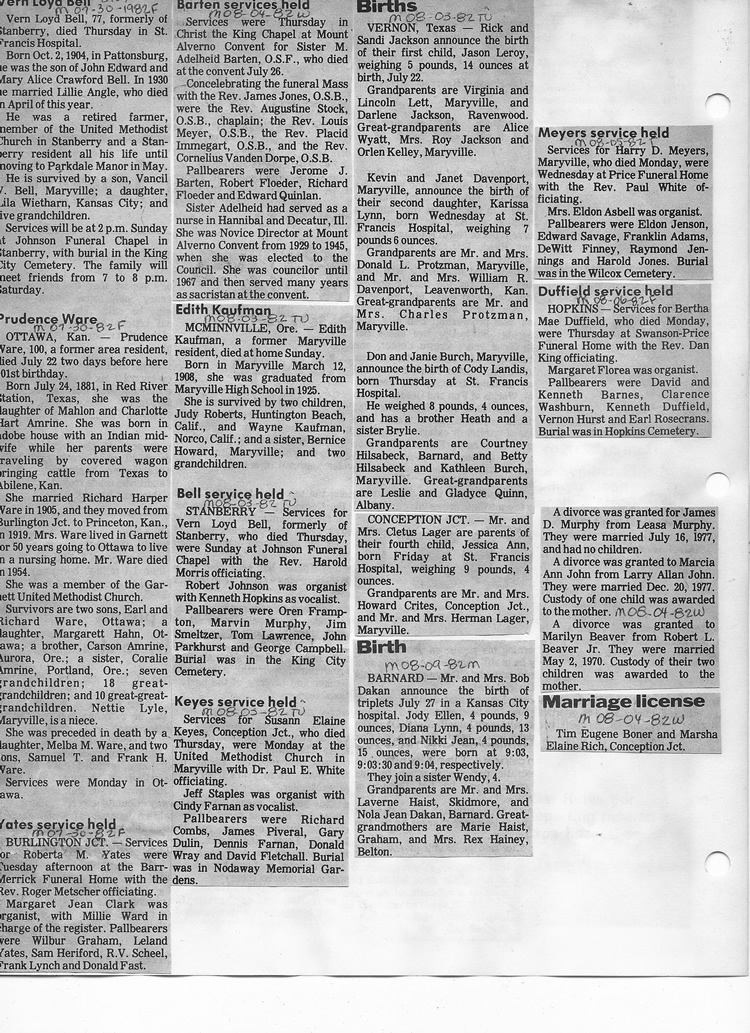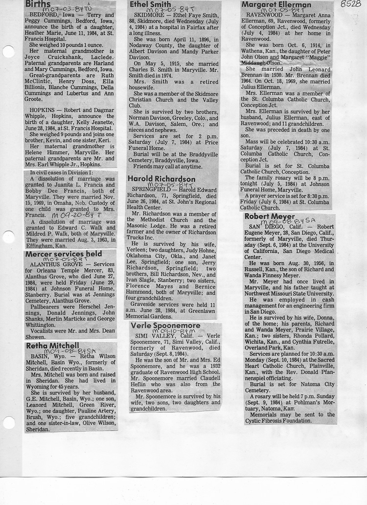 O'Dell's Abstracted Newspaper Index - Clippings - #8000's