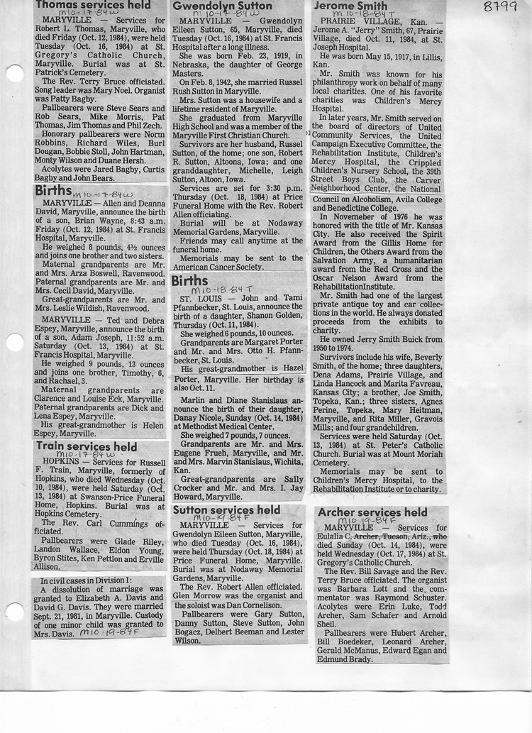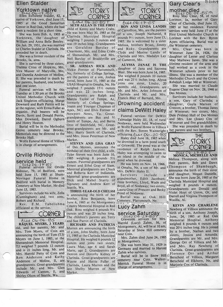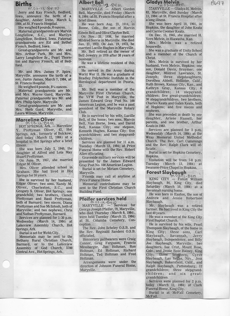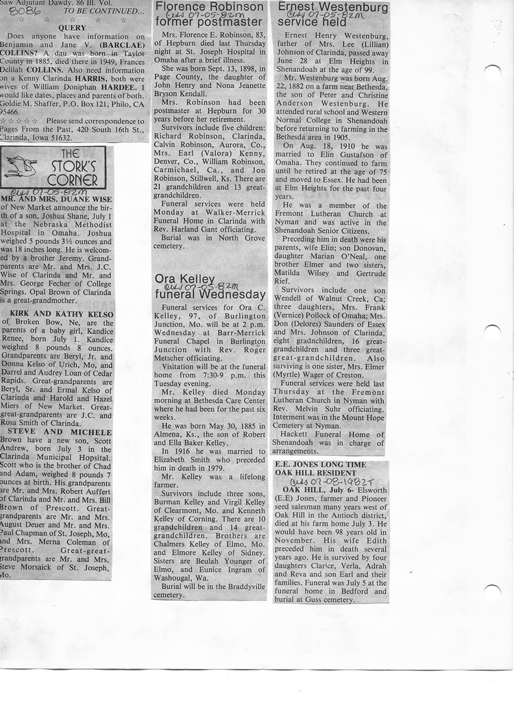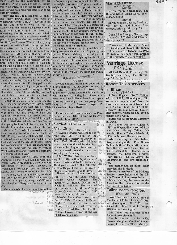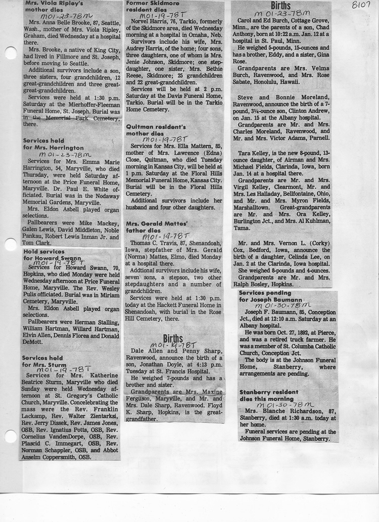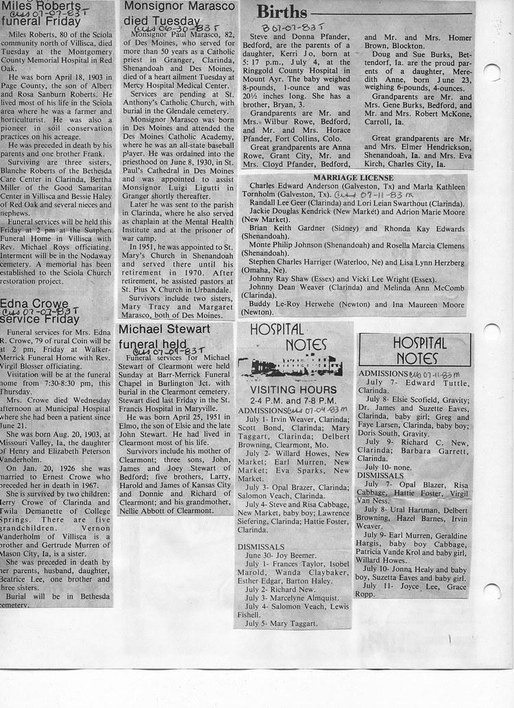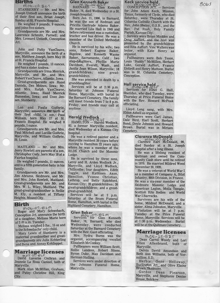 O'Dell's Abstracted Newspaper Index - Clippings - #8000's