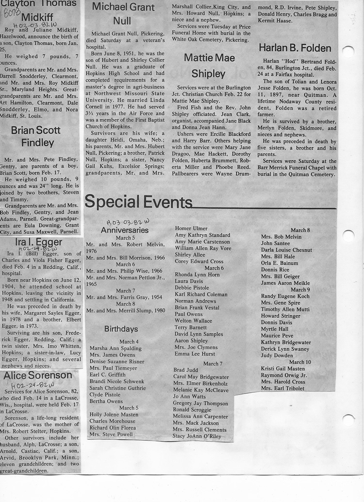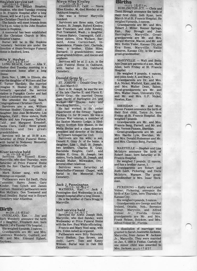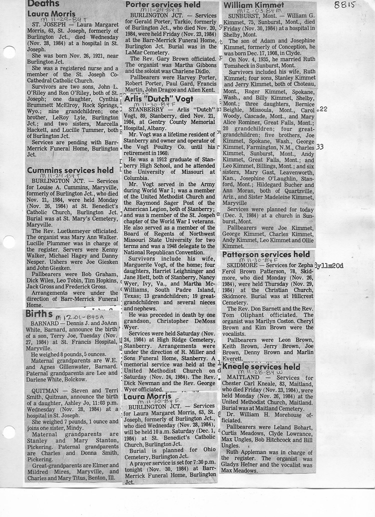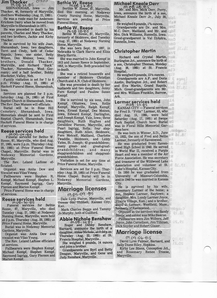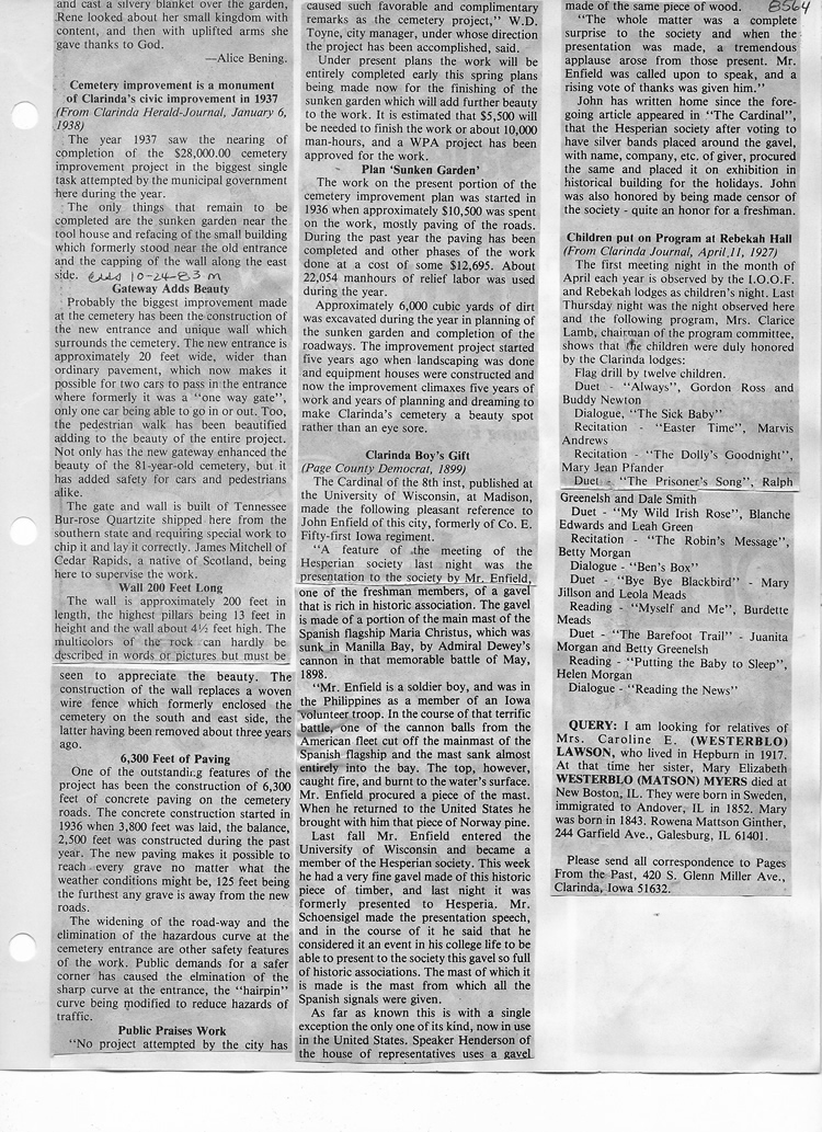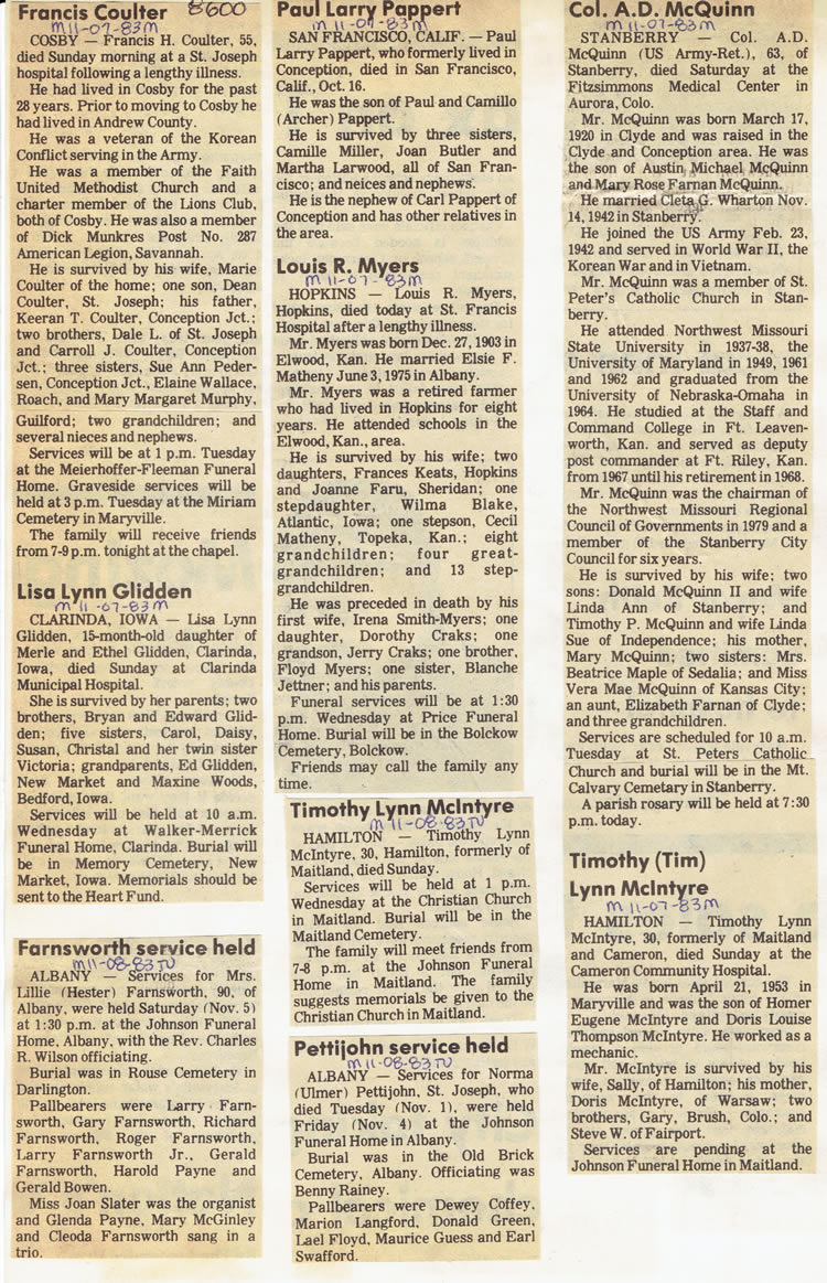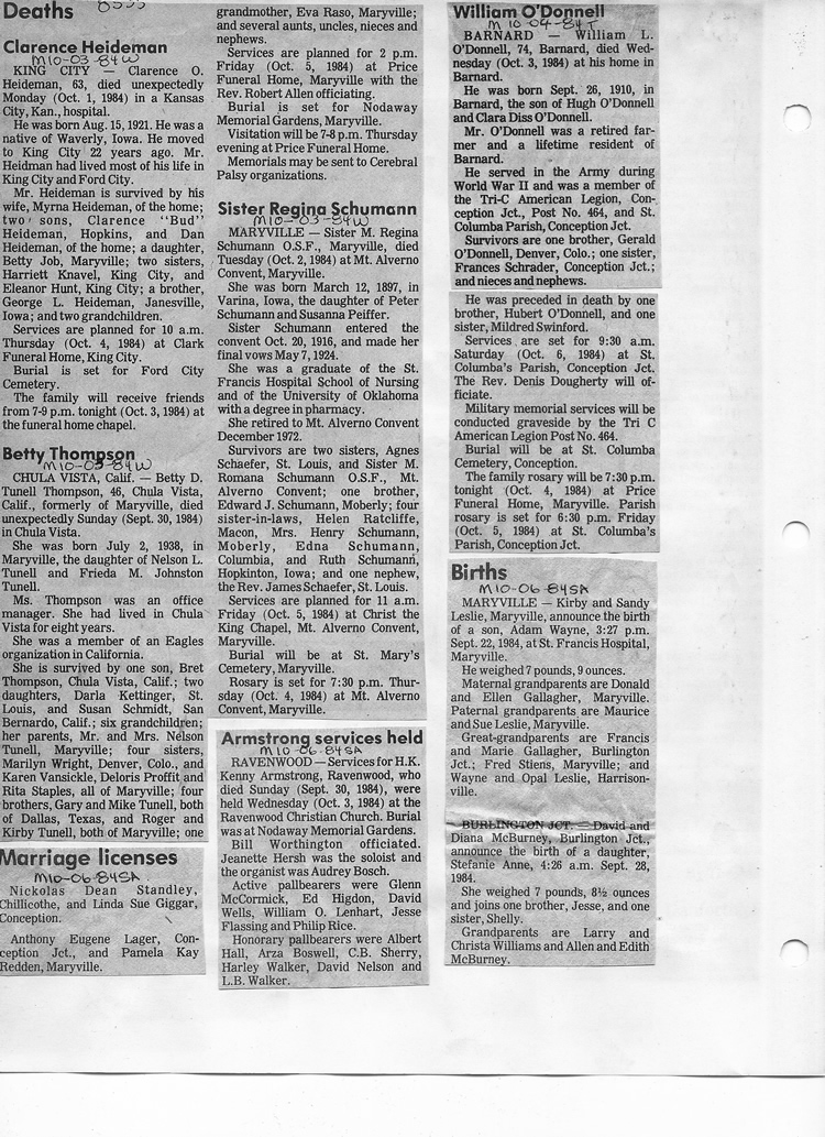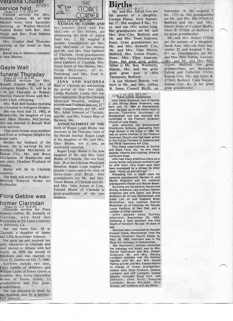O'Dell's Abstracted Newspaper Index - Clippings - #8000's