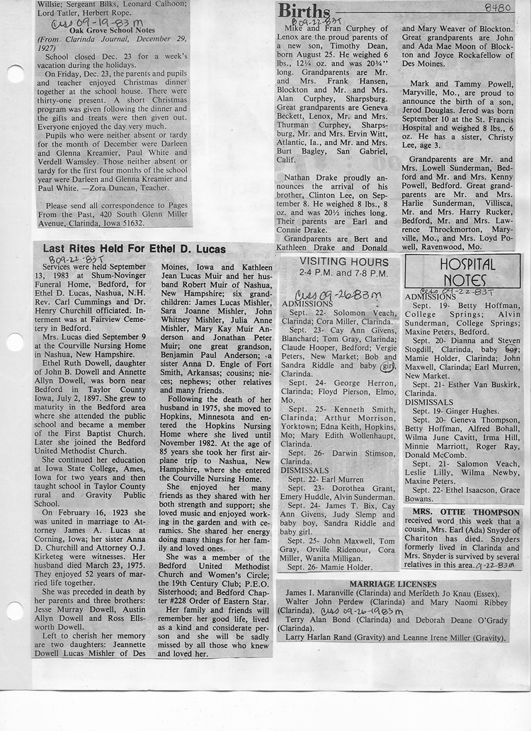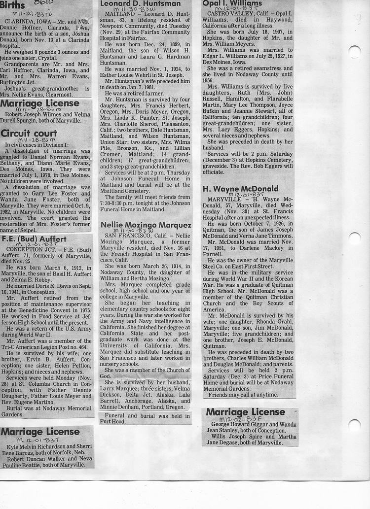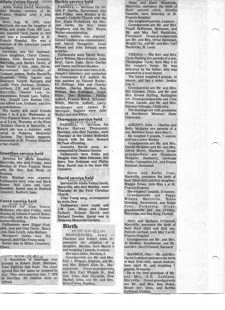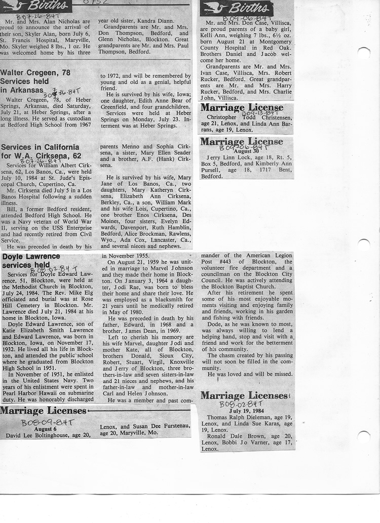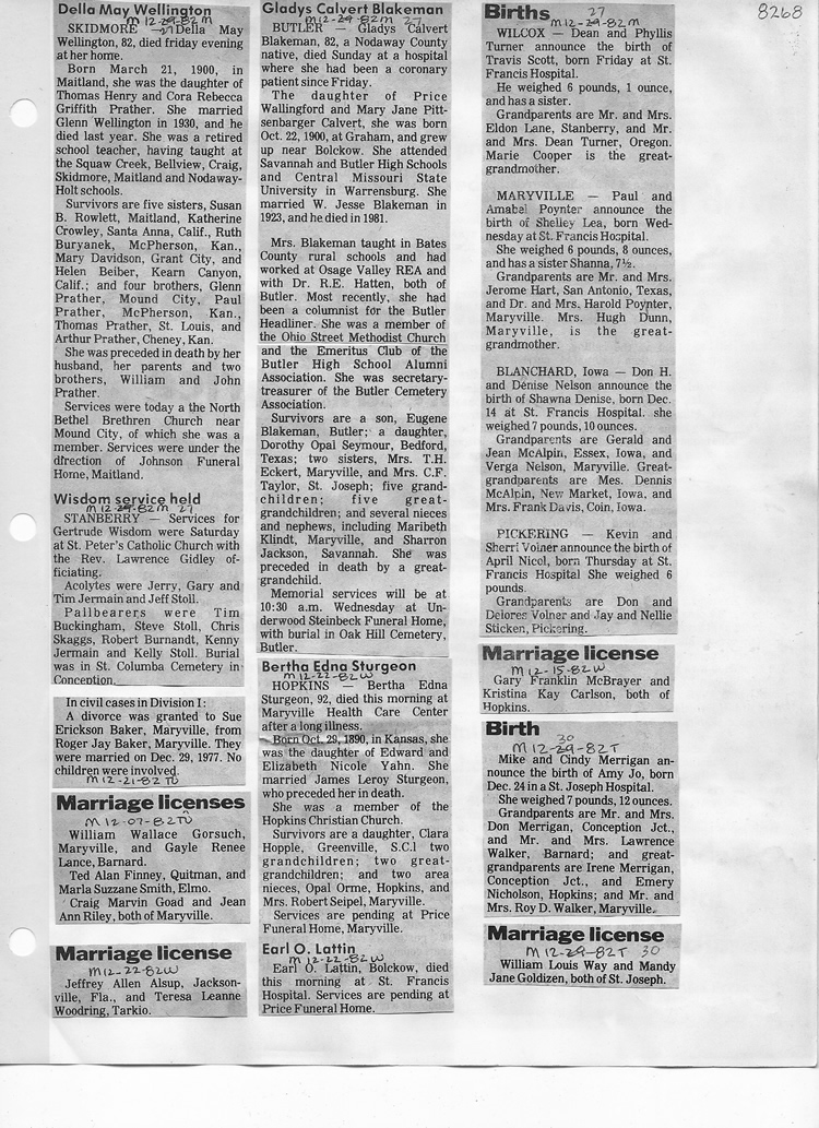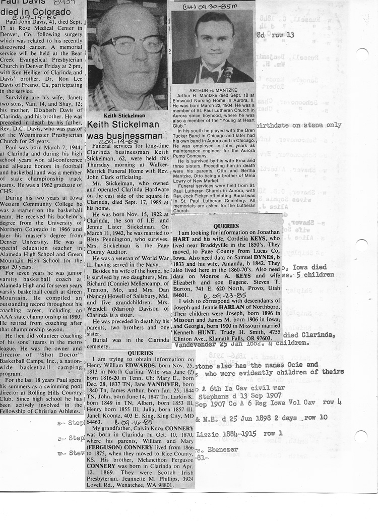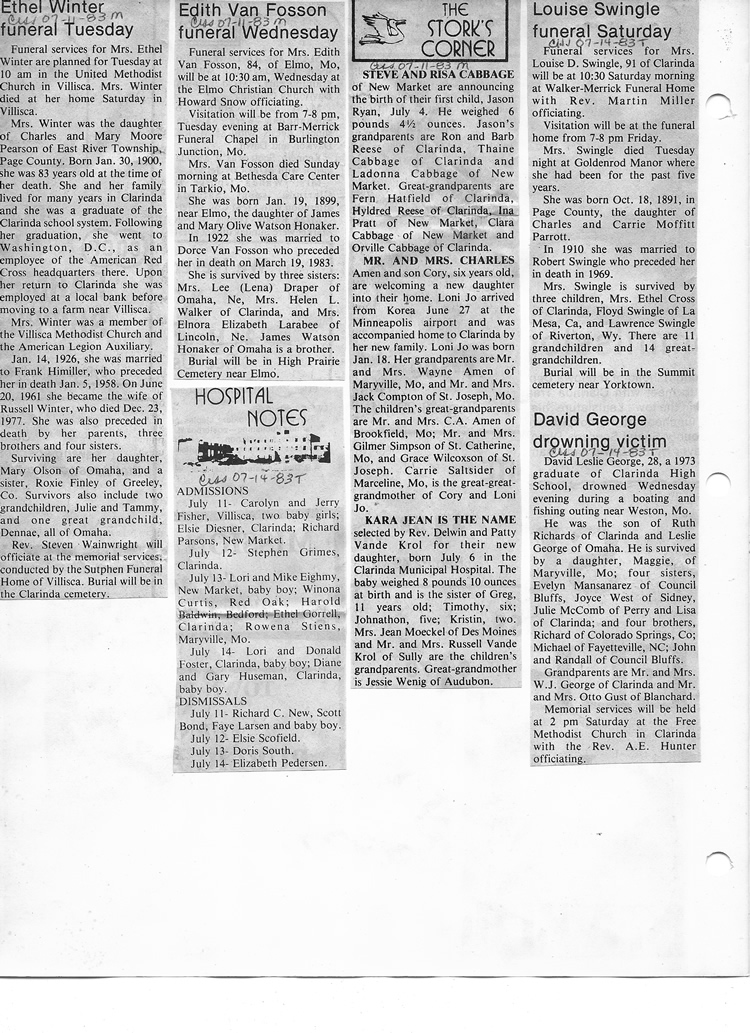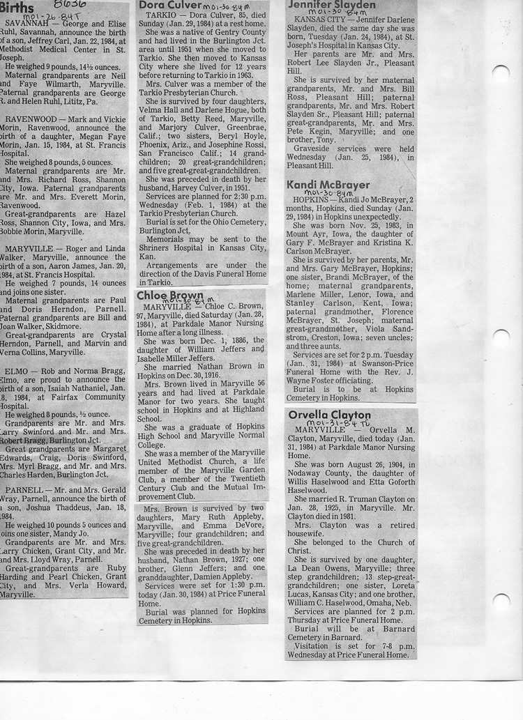 O'Dell's Abstracted Newspaper Index - Clippings - #8000's