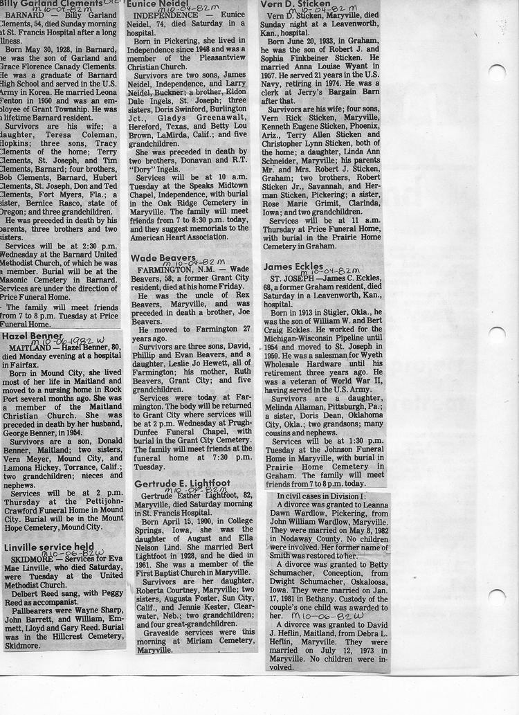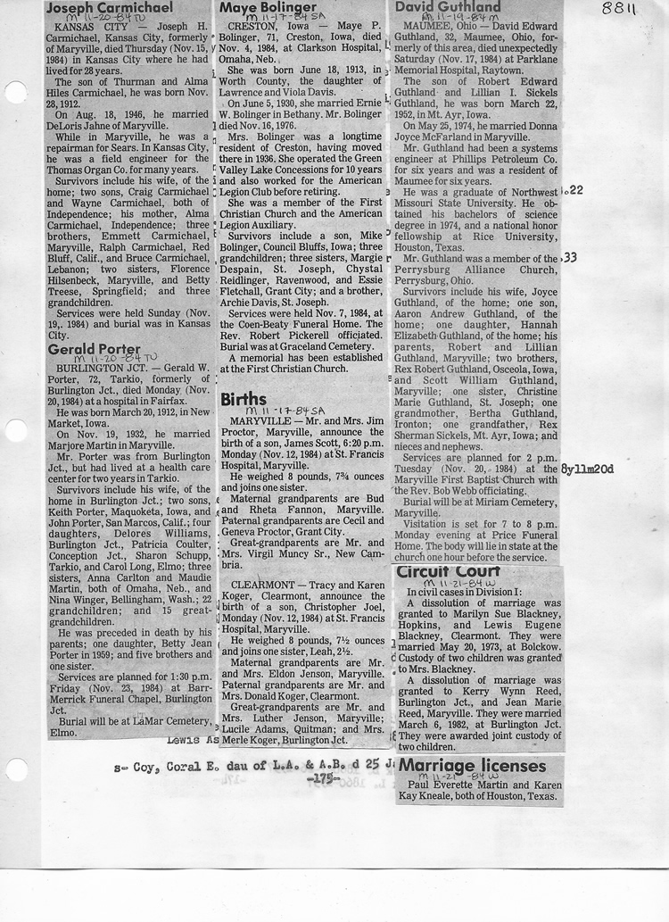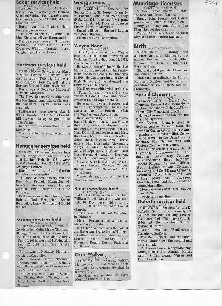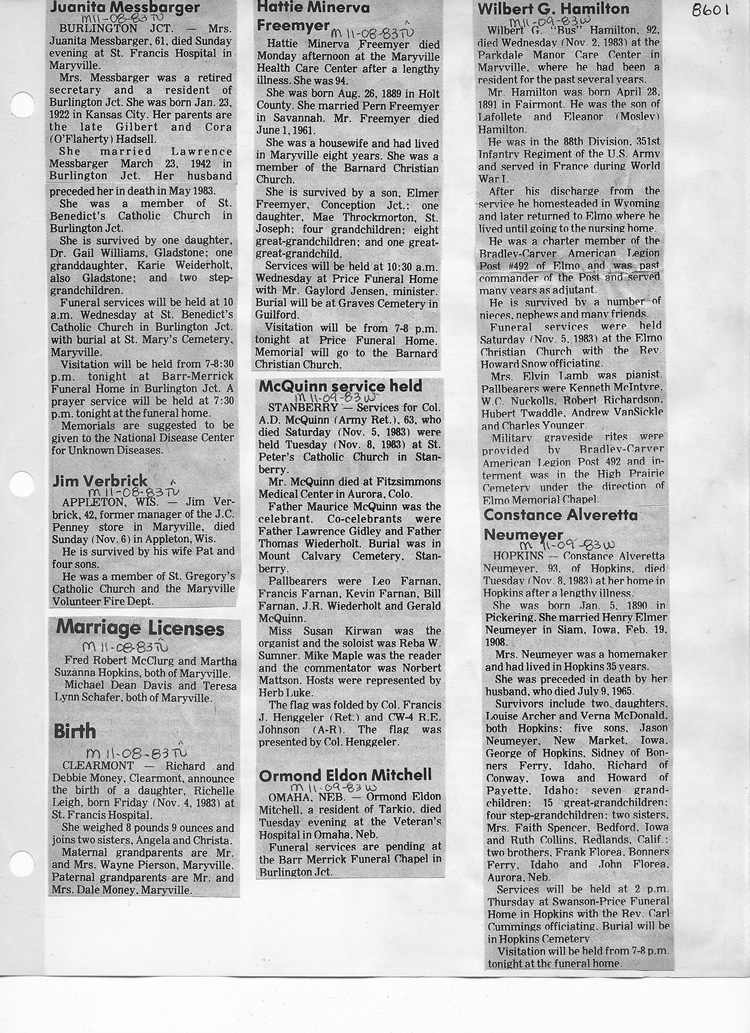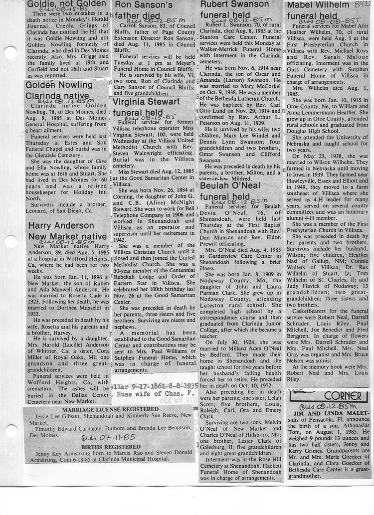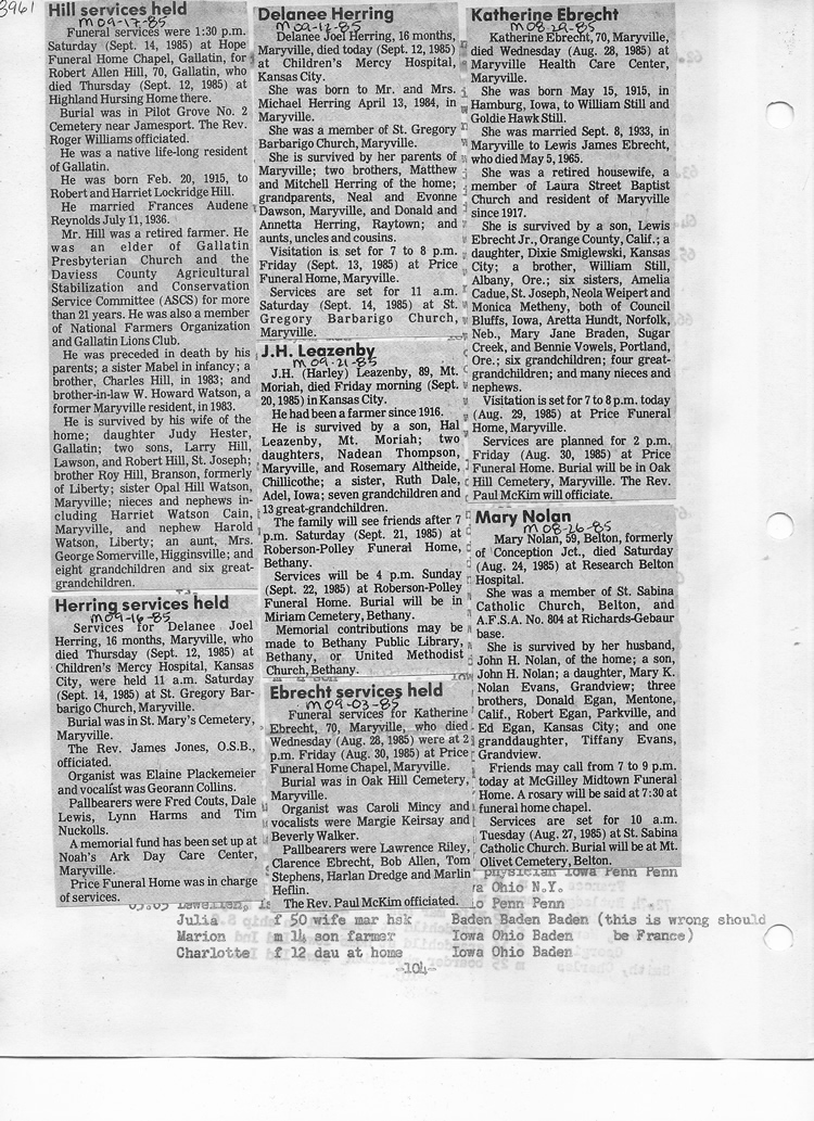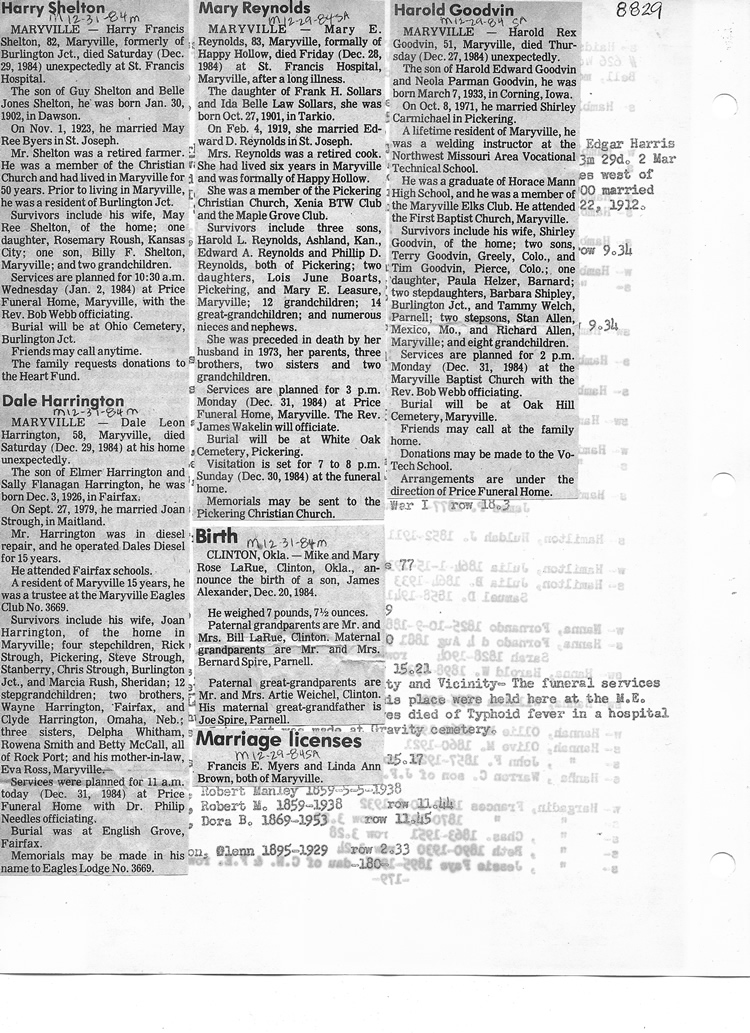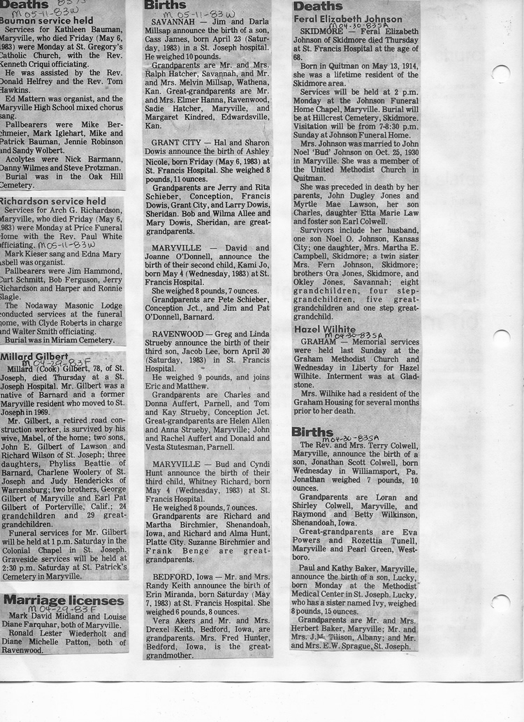 O'Dell's Abstracted Newspaper Index - Clippings - #8000's