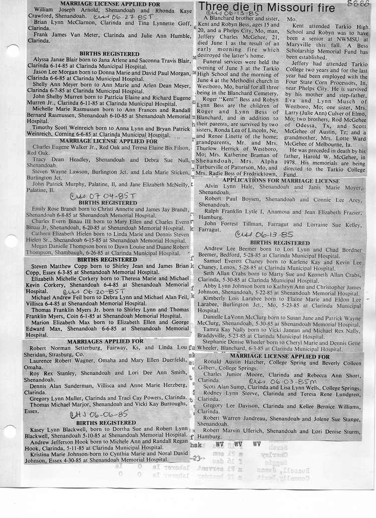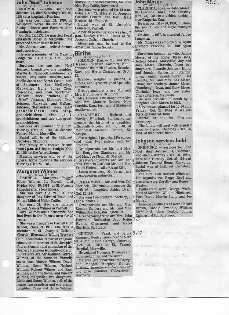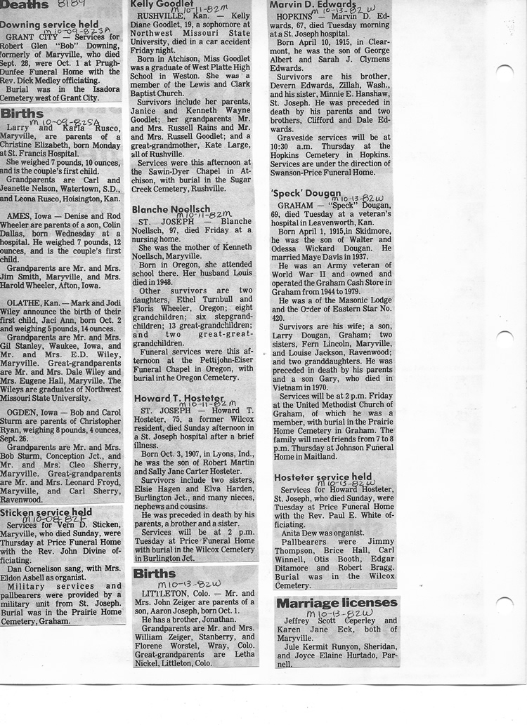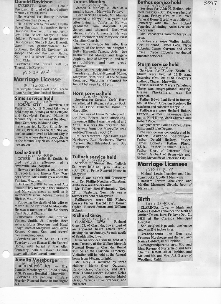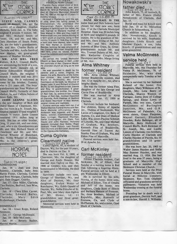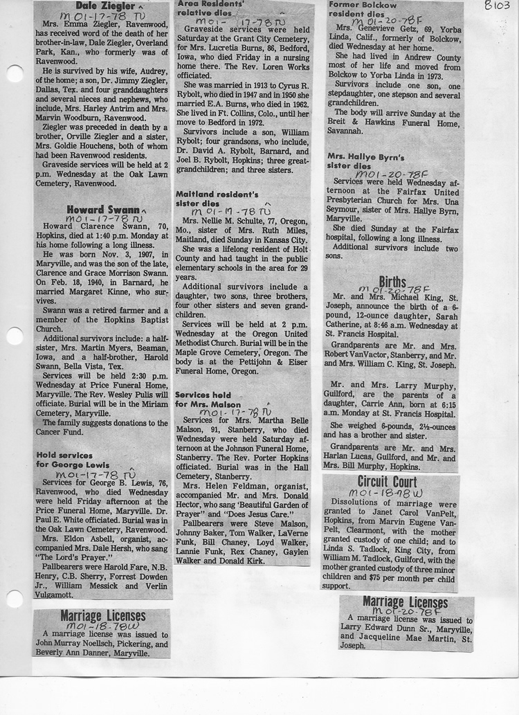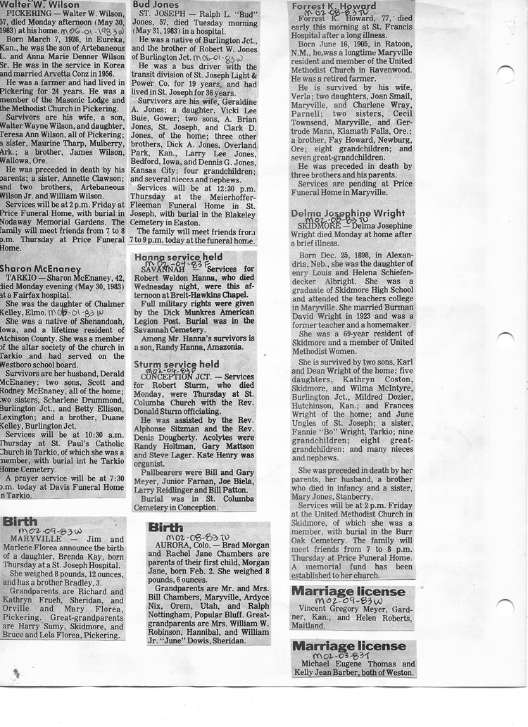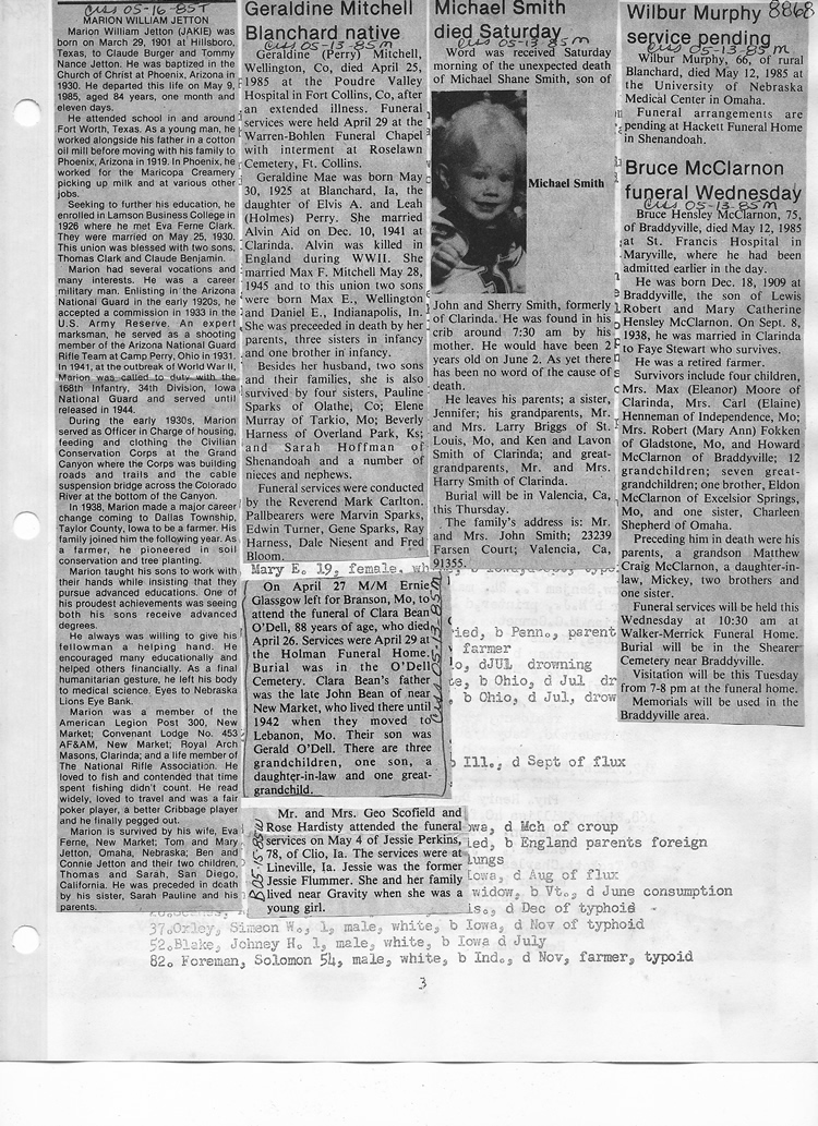 O'Dell's Abstracted Newspaper Index - Clippings - #8000's