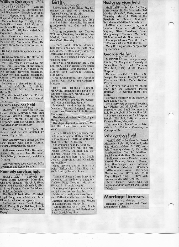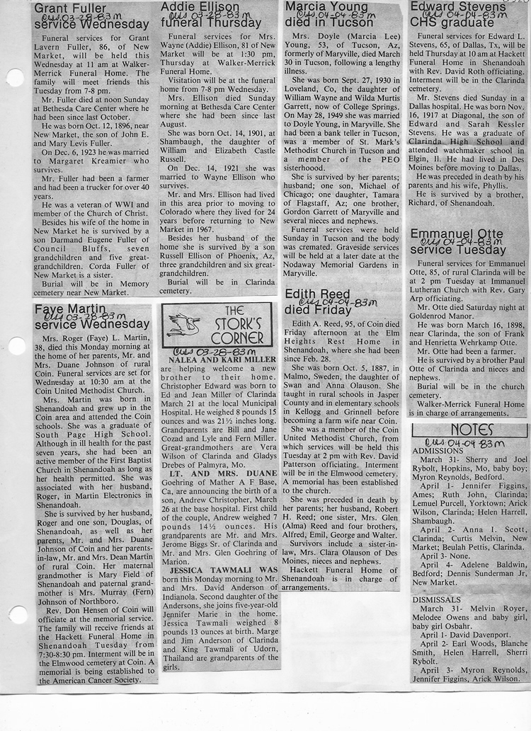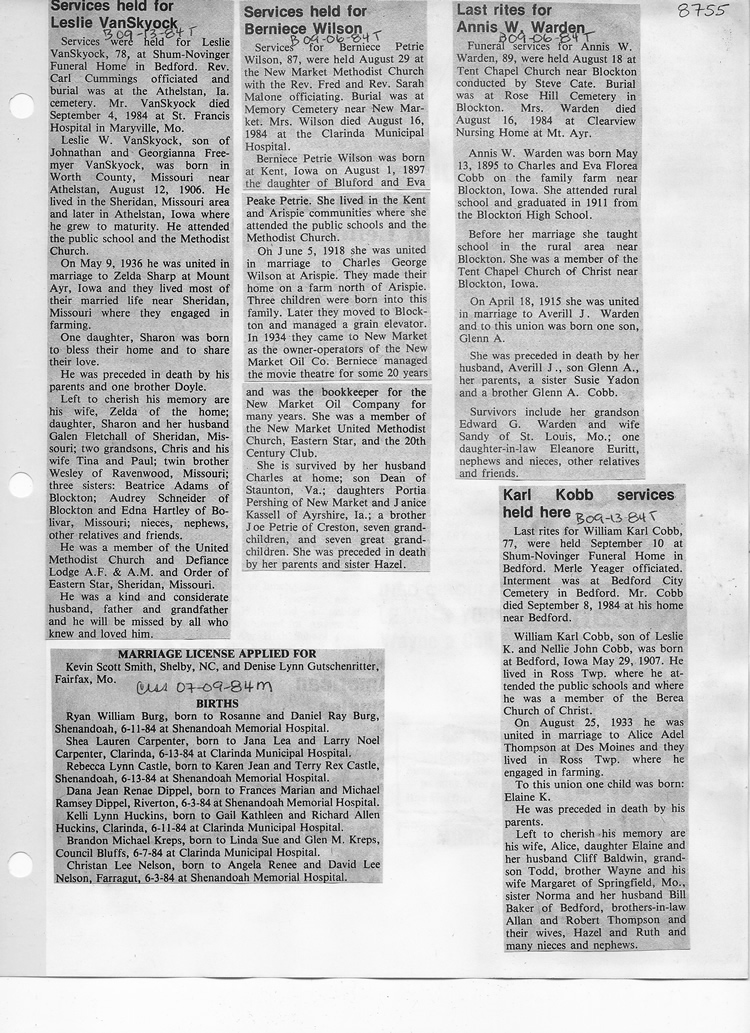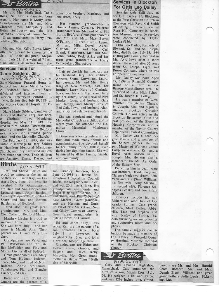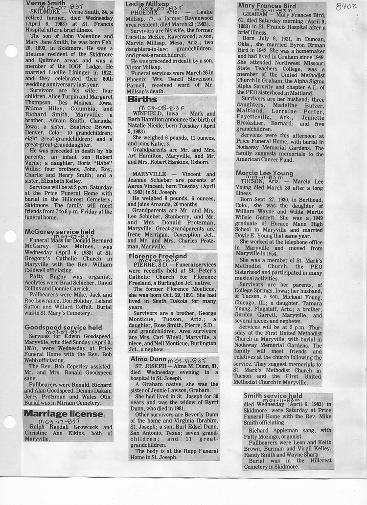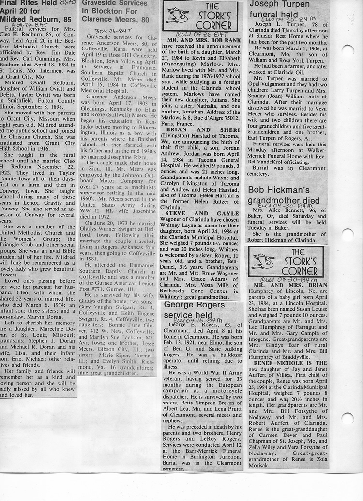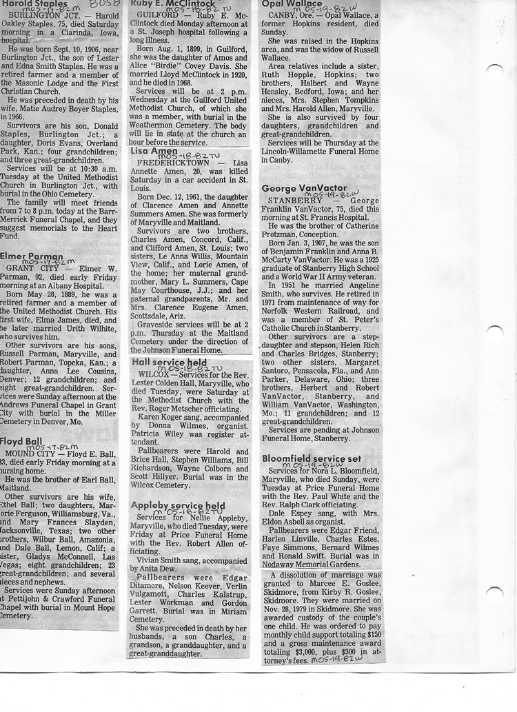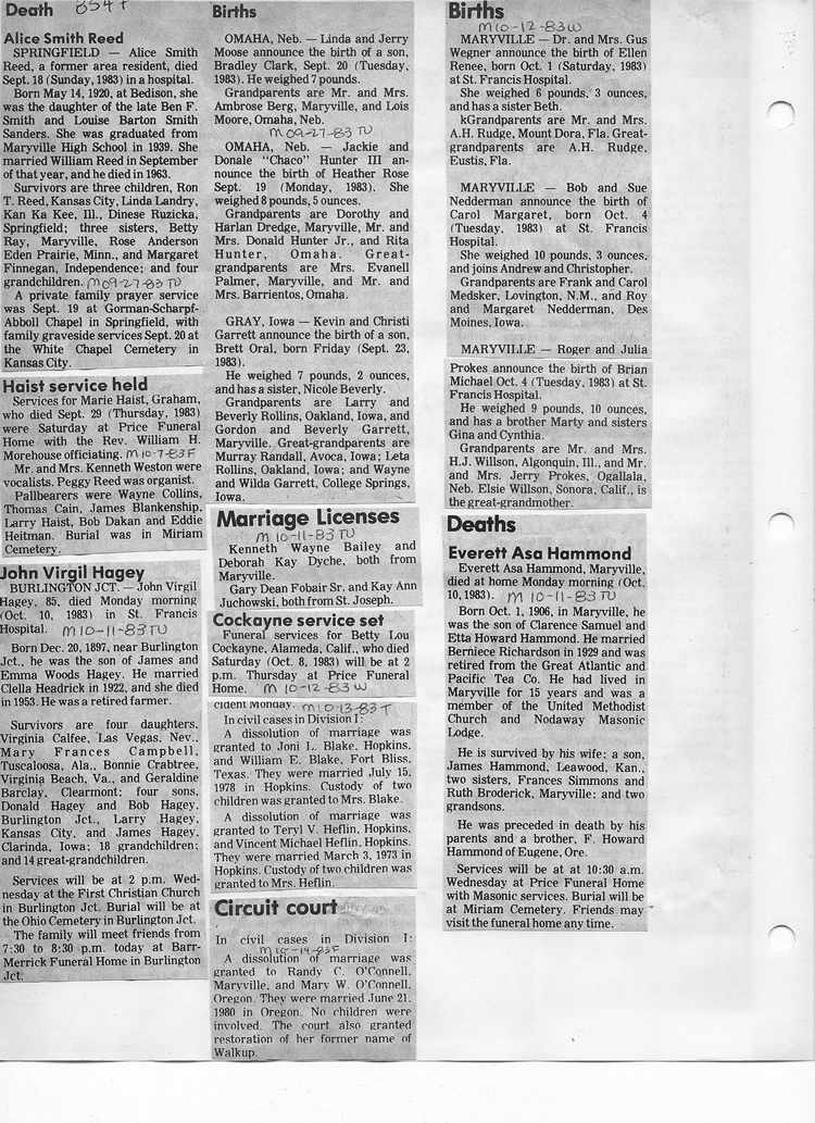 O'Dell's Abstracted Newspaper Index - Clippings - #8000's