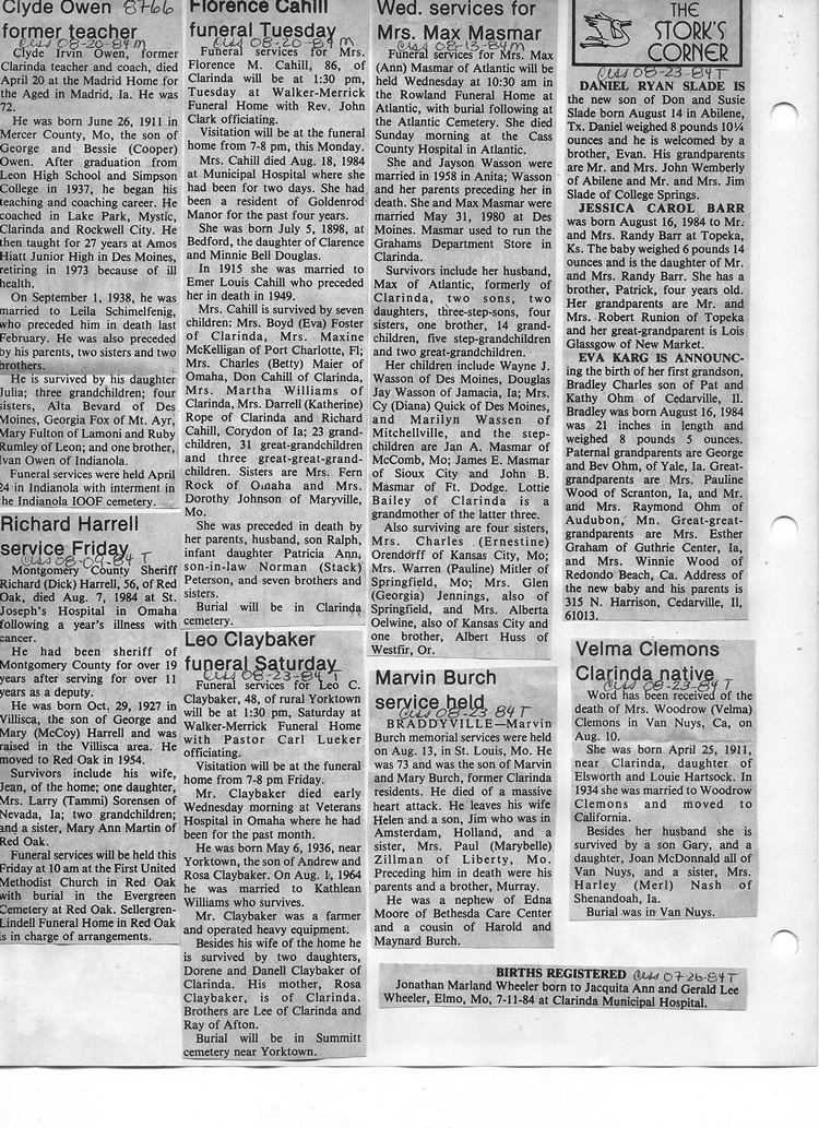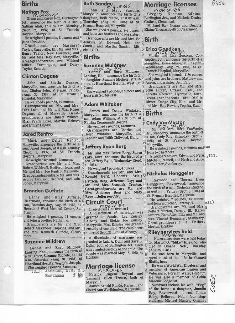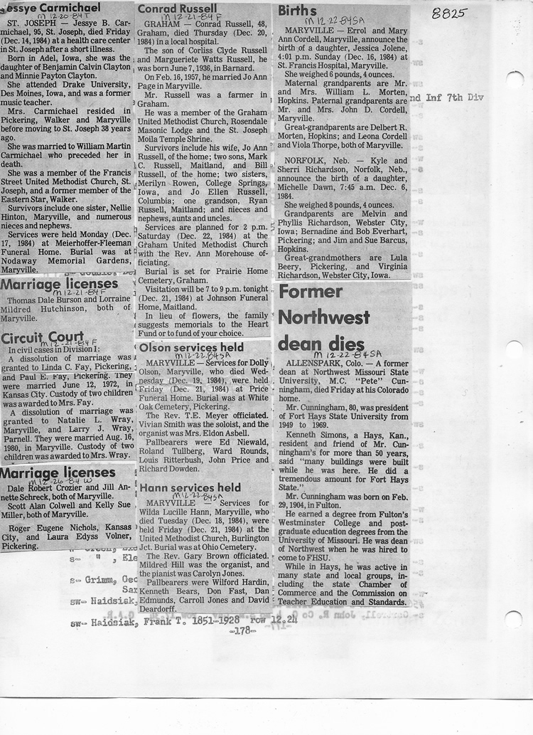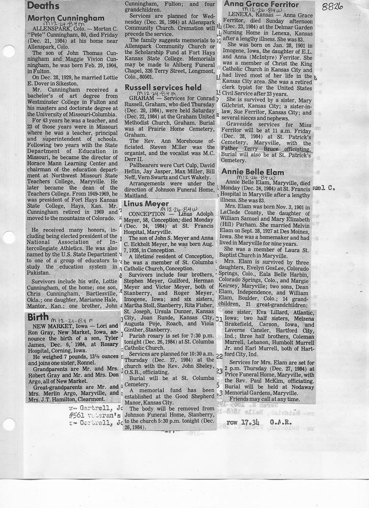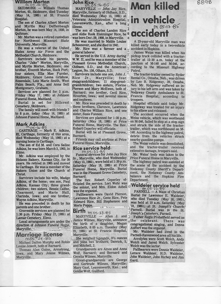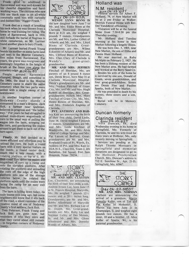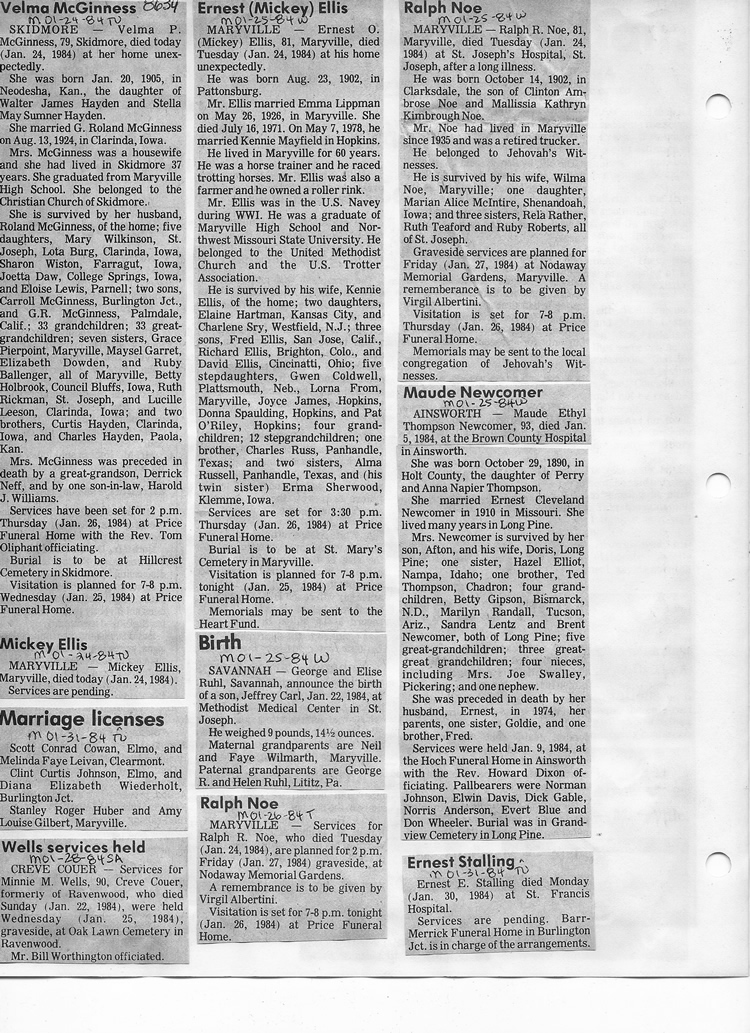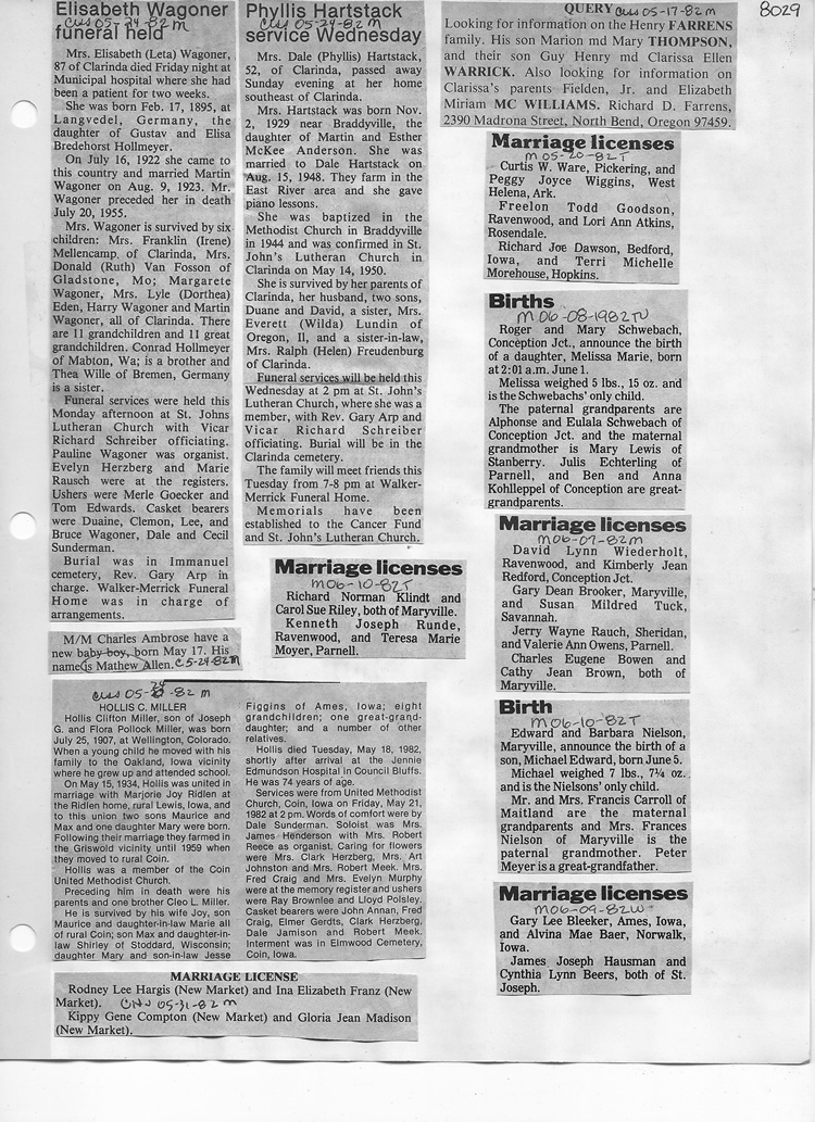 O'Dell's Abstracted Newspaper Index - Clippings - #8000's