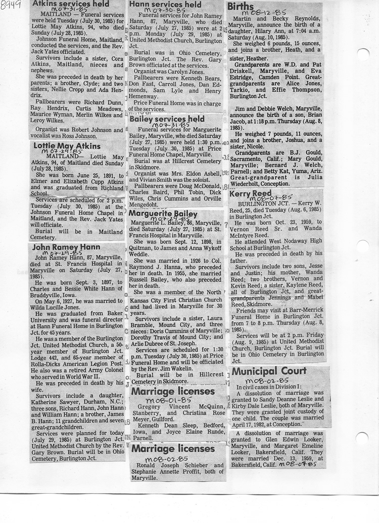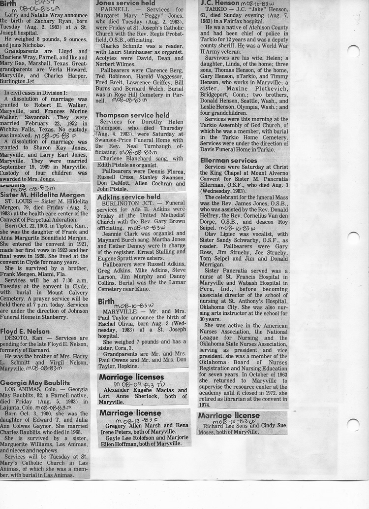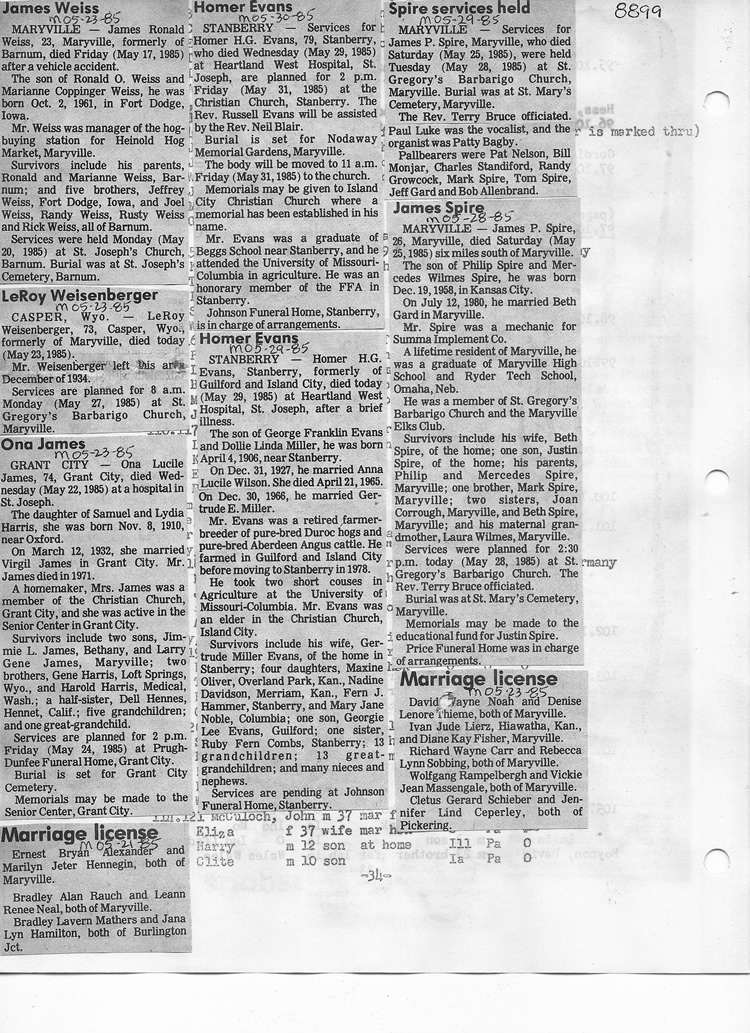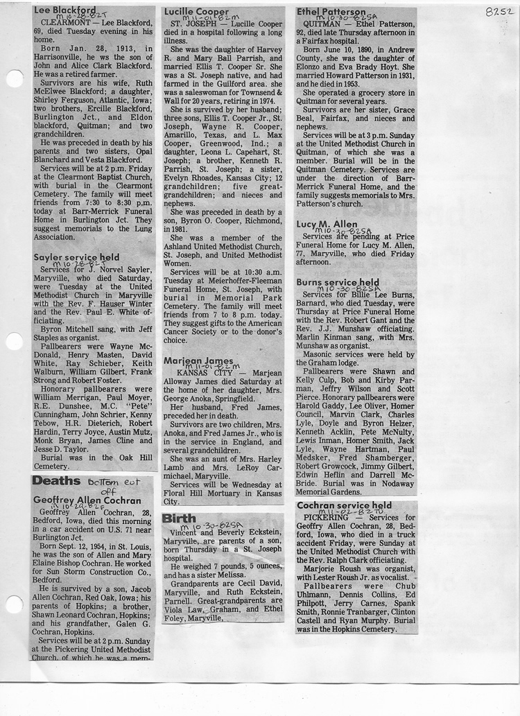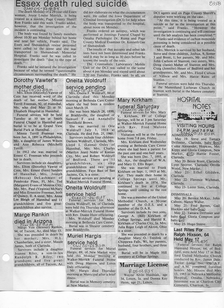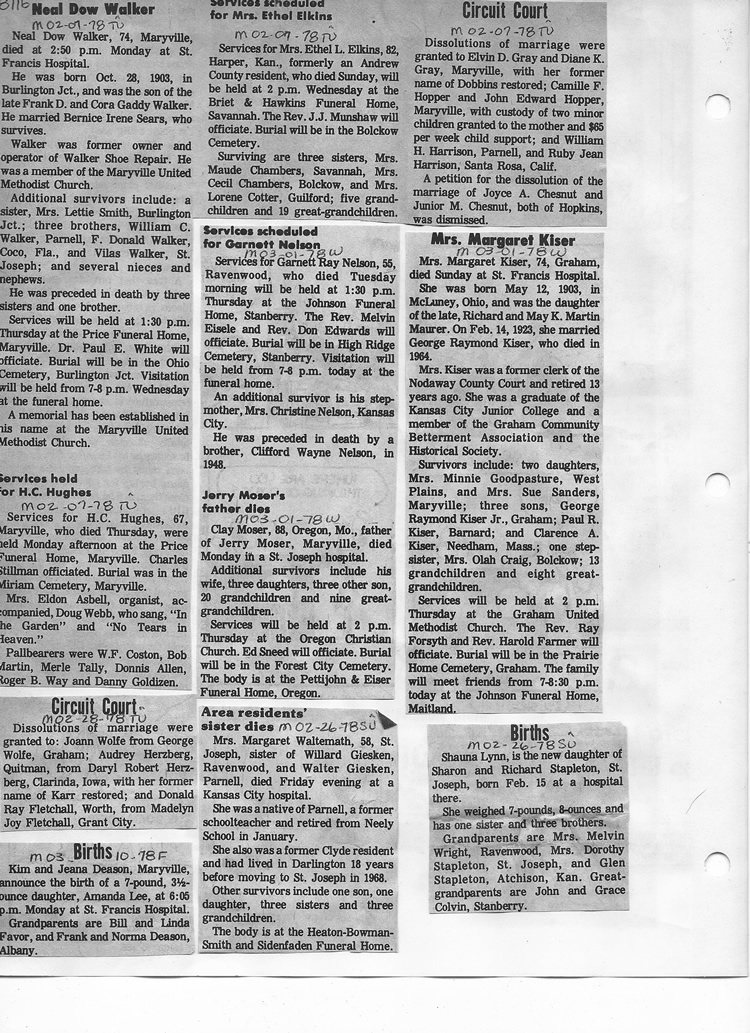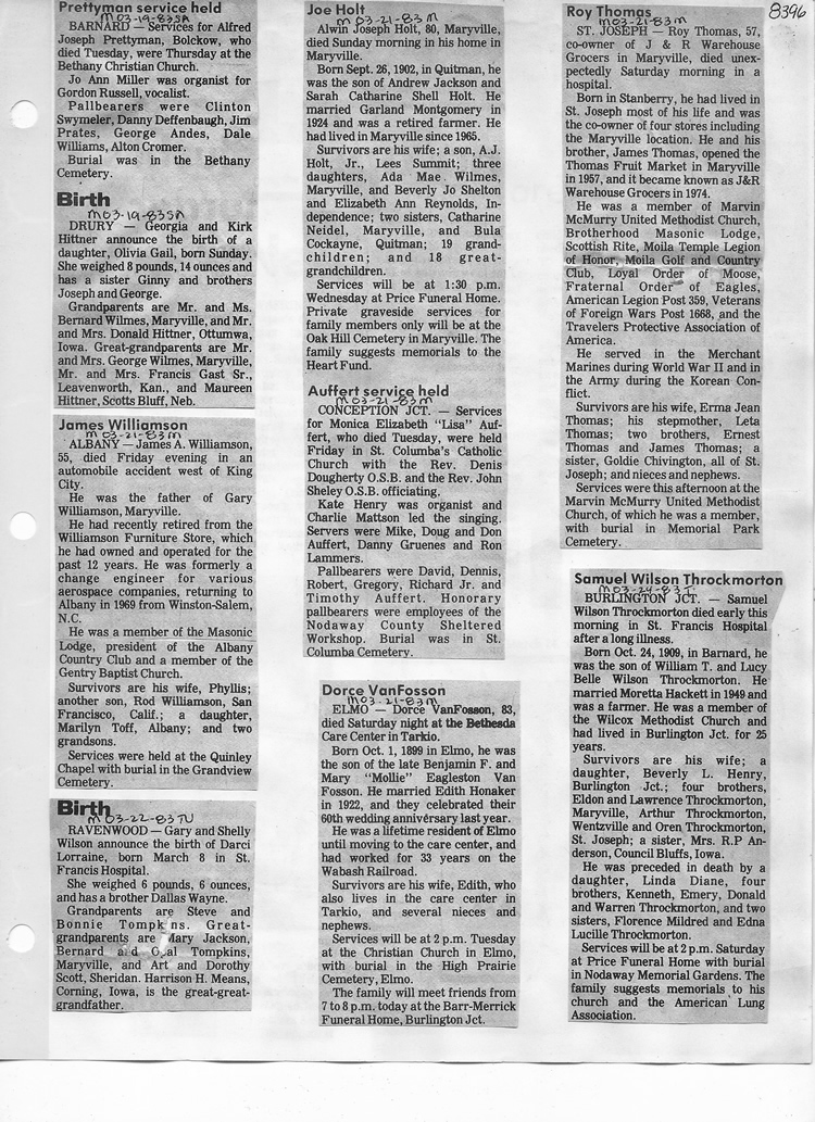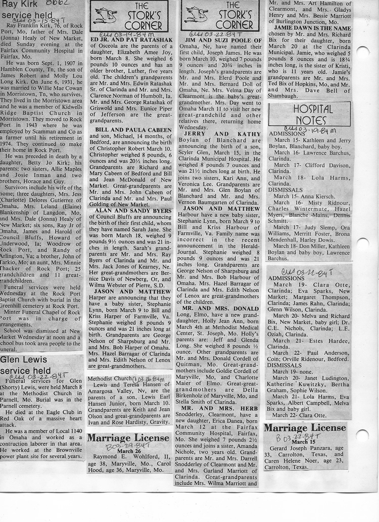 O'Dell's Abstracted Newspaper Index - Clippings - #8000's