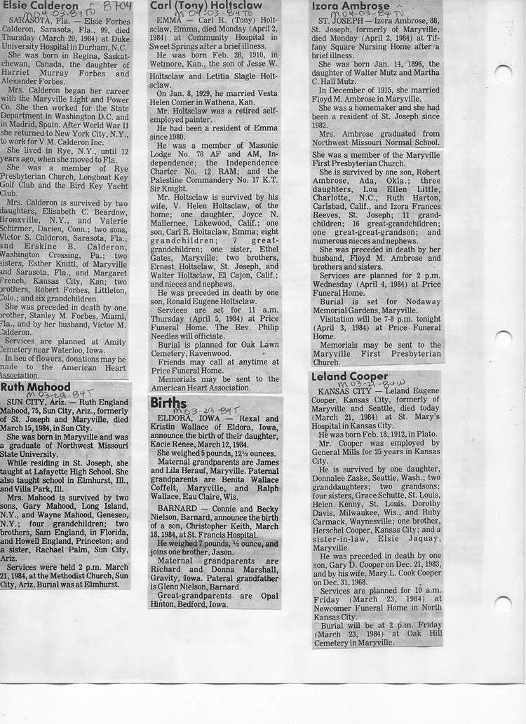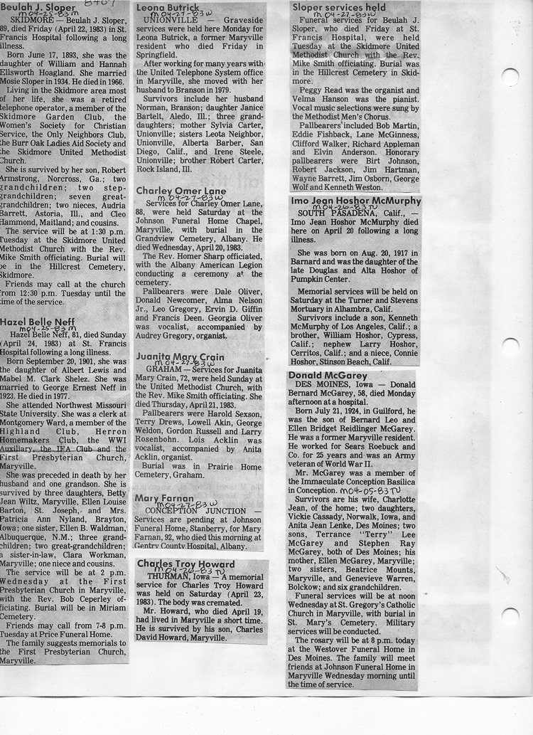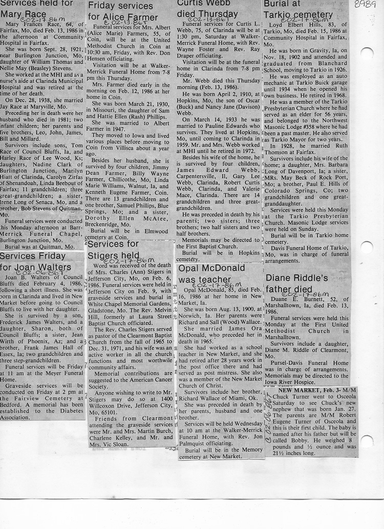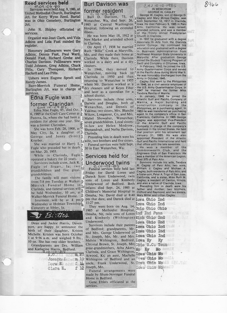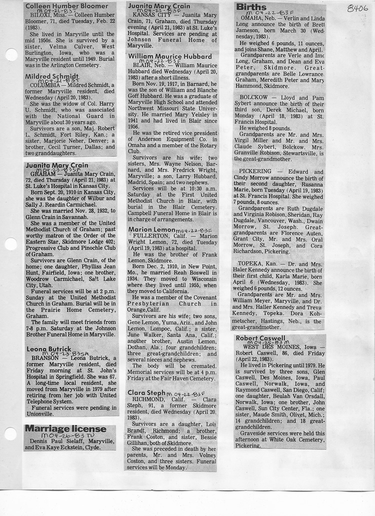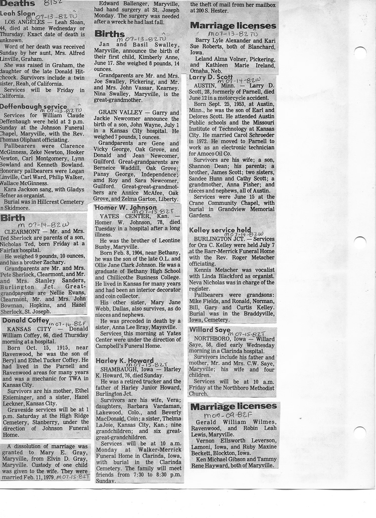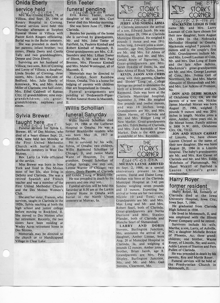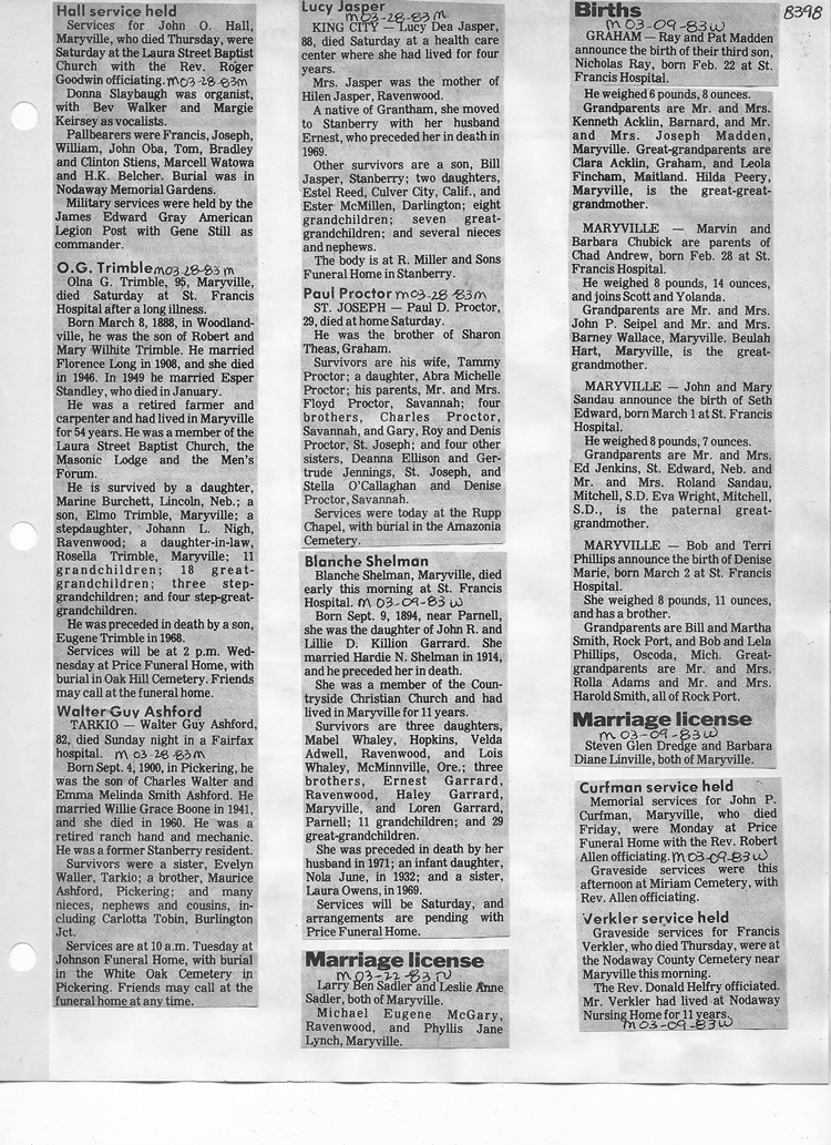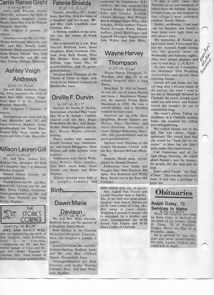 O'Dell's Abstracted Newspaper Index - Clippings - #8000's