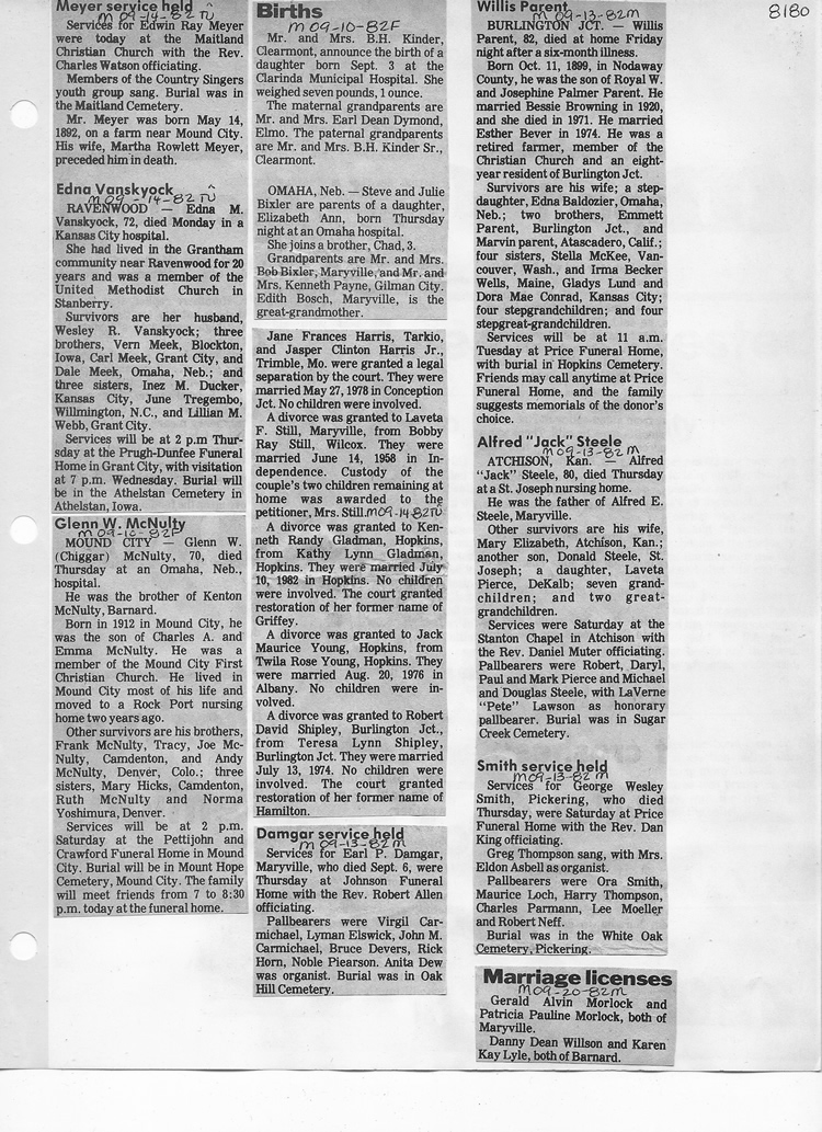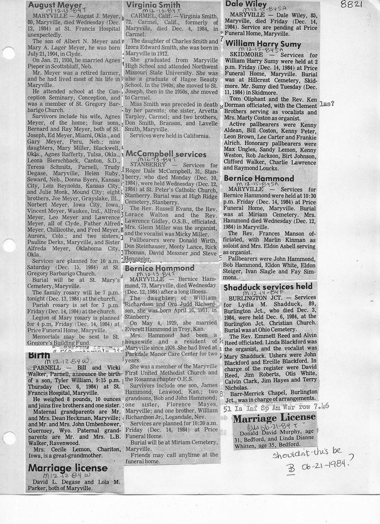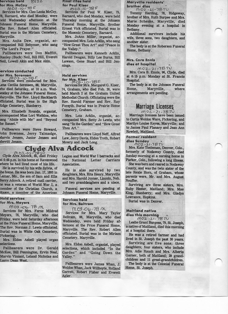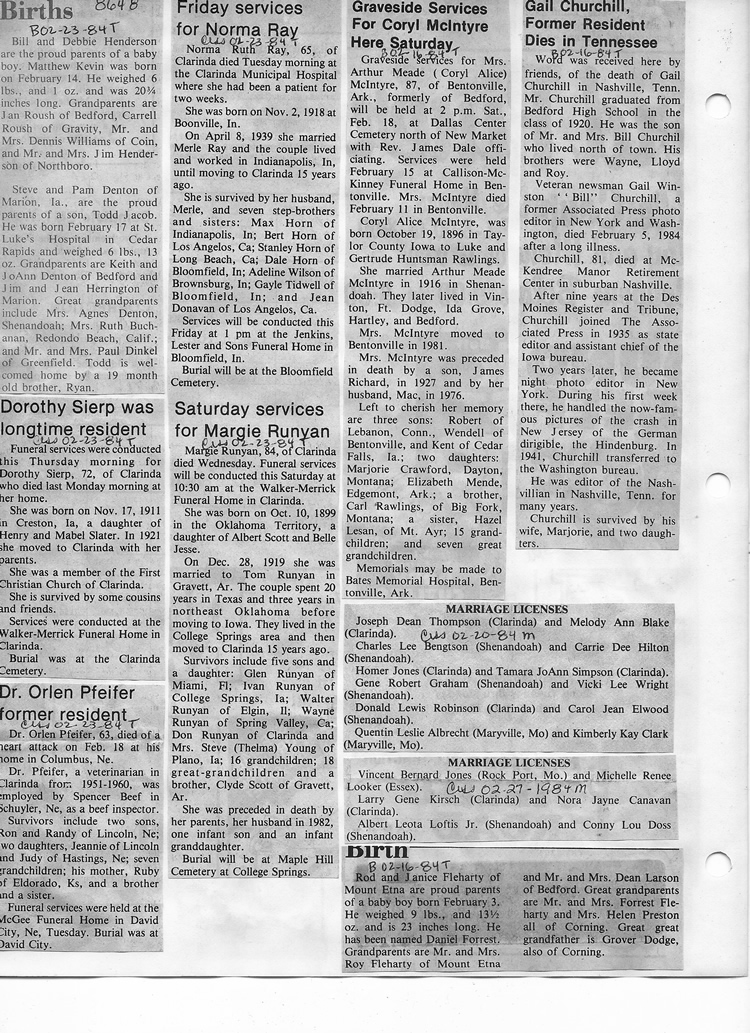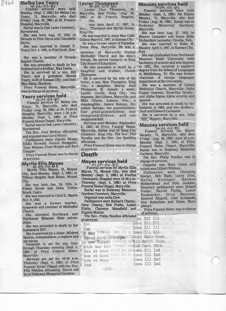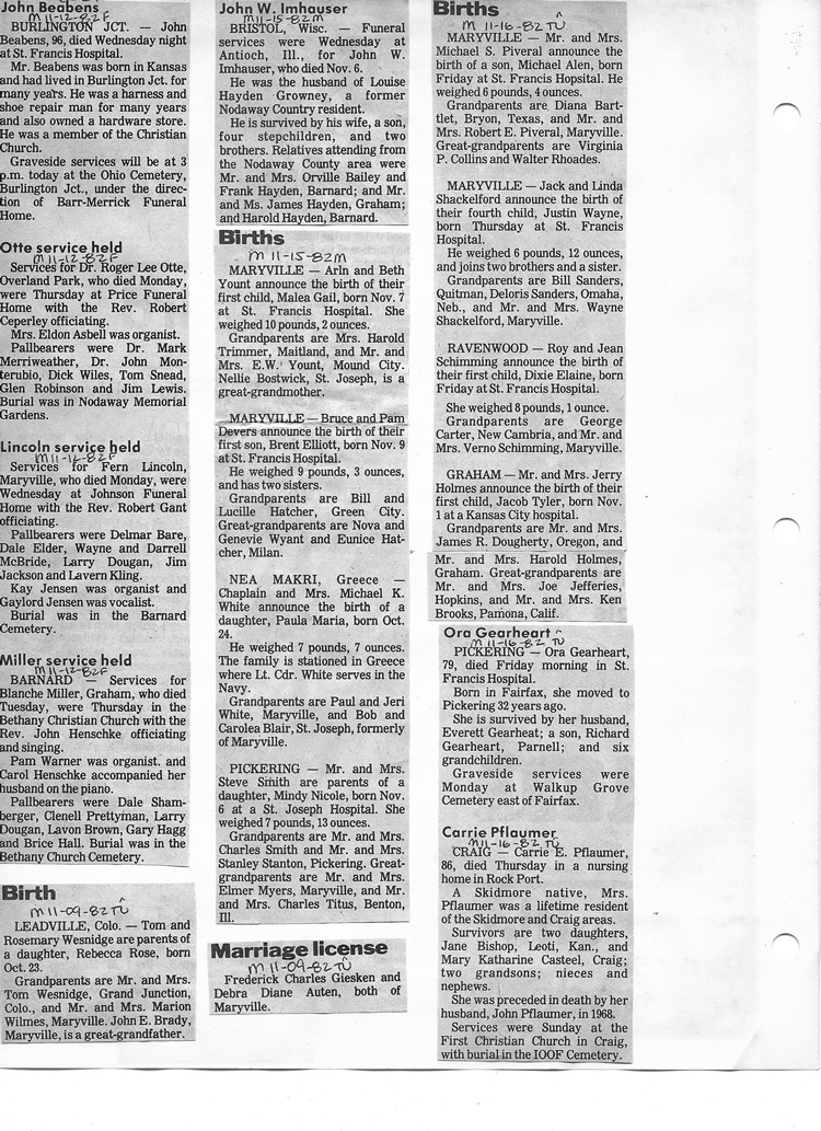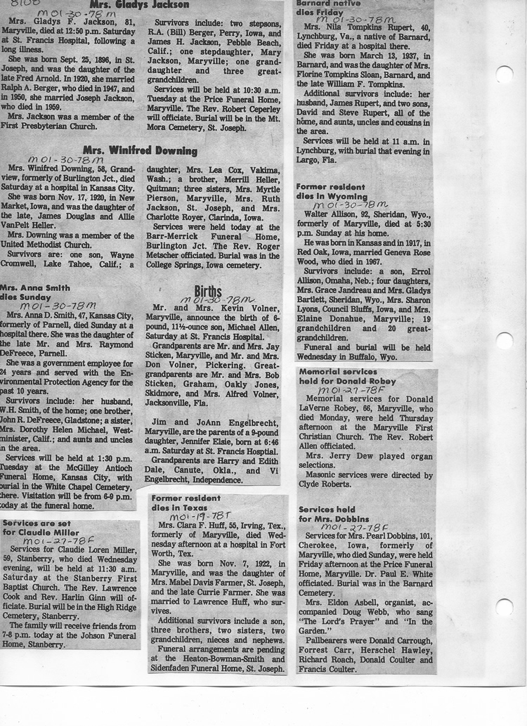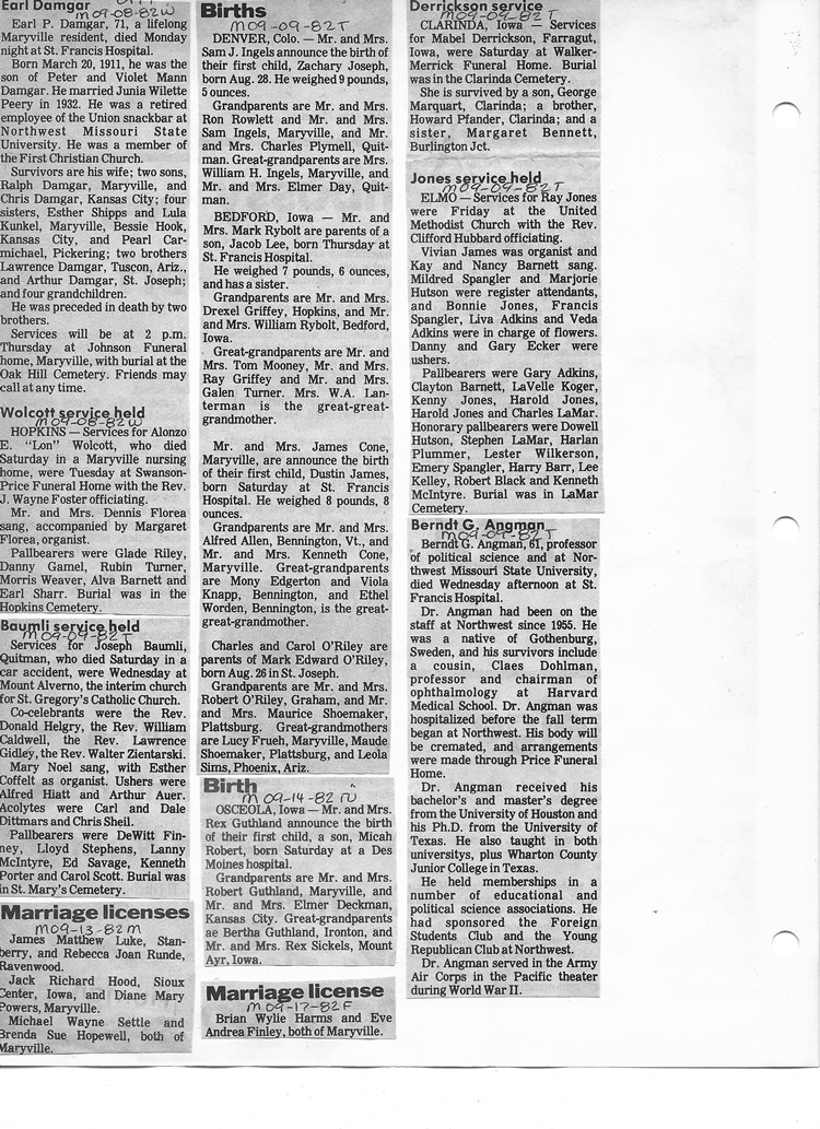 O'Dell's Abstracted Newspaper Index - Clippings - #8000's
