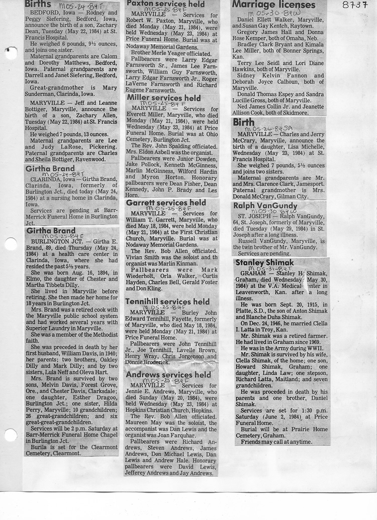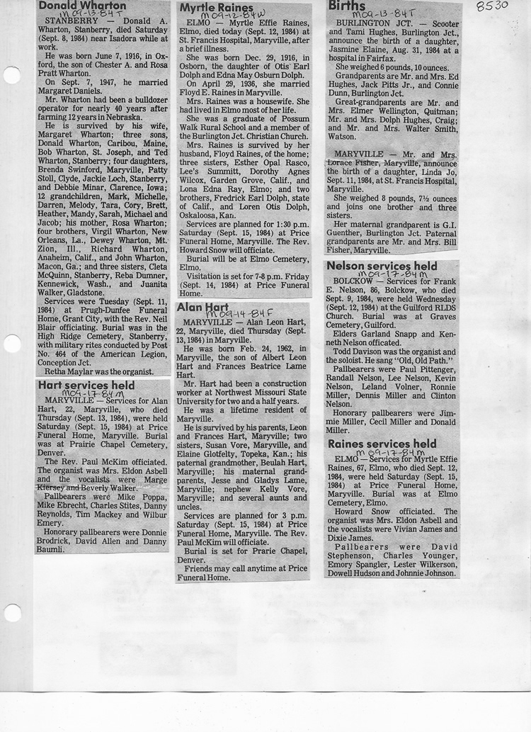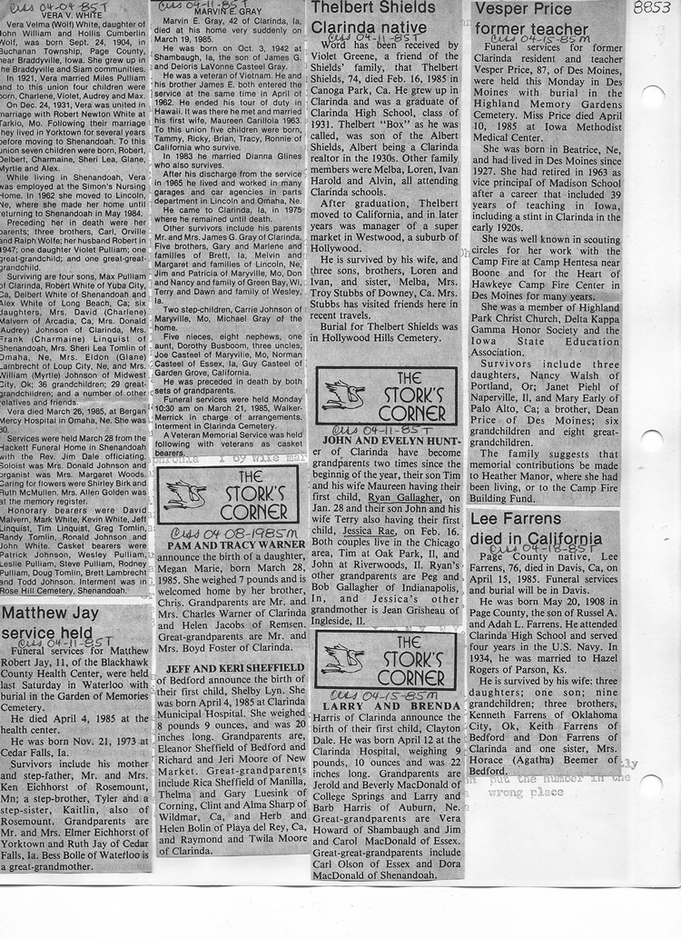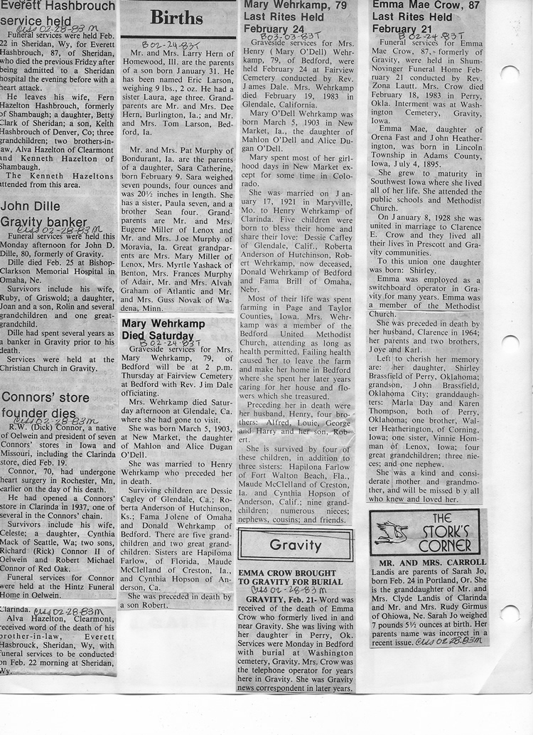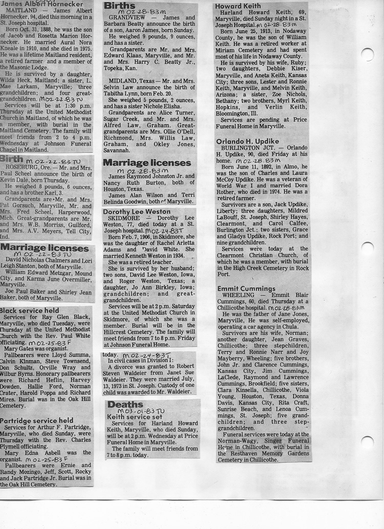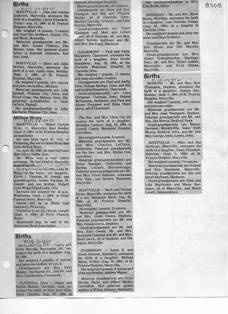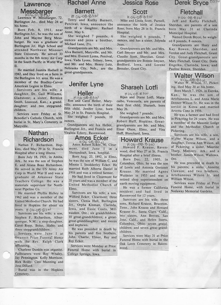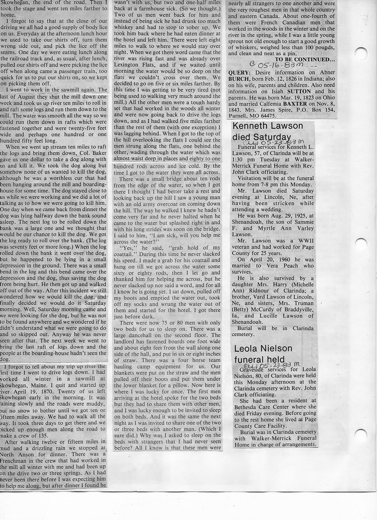 O'Dell's Abstracted Newspaper Index - Clippings - #8000's