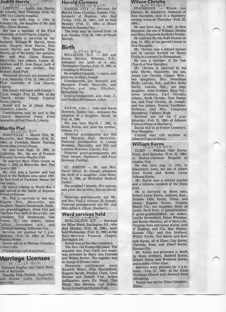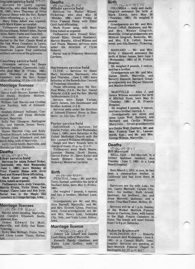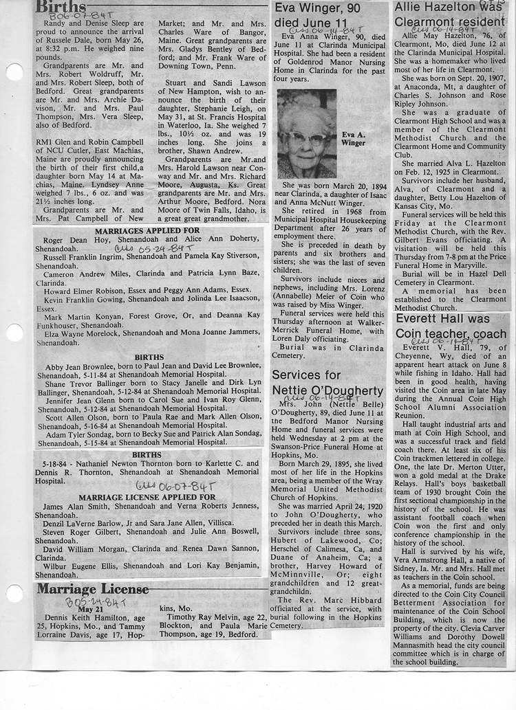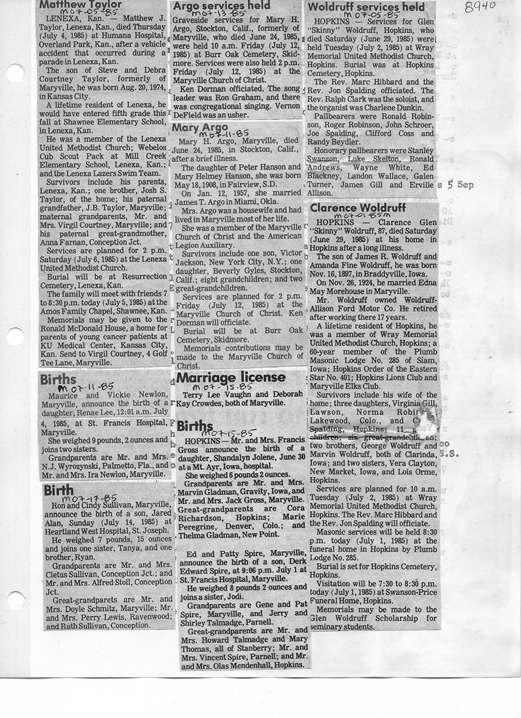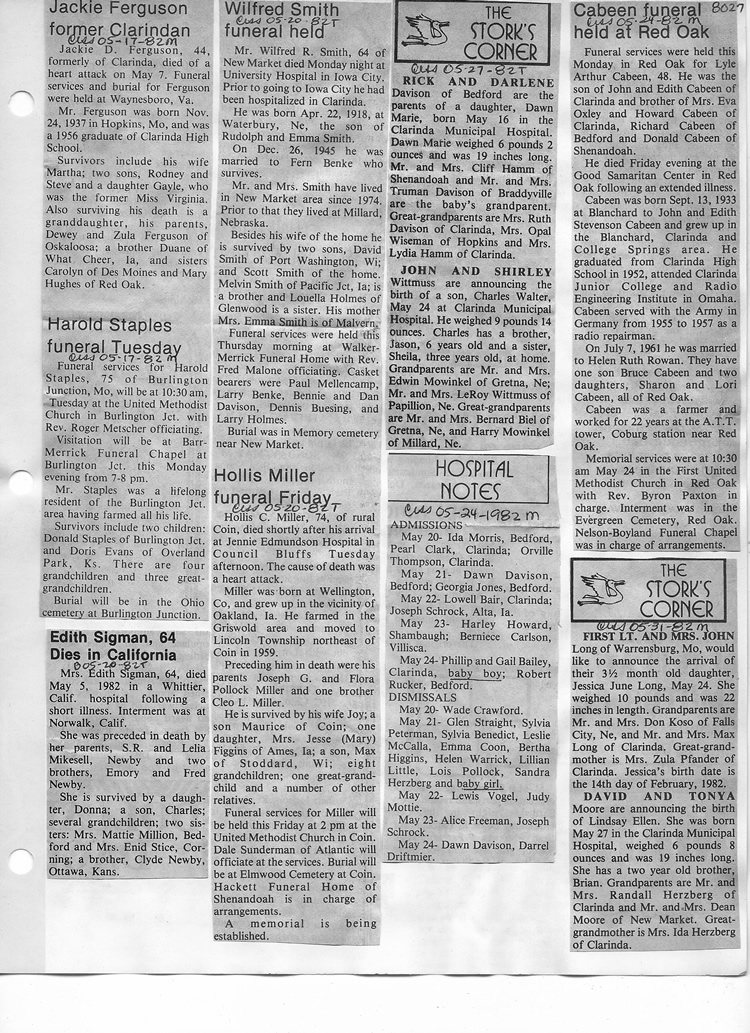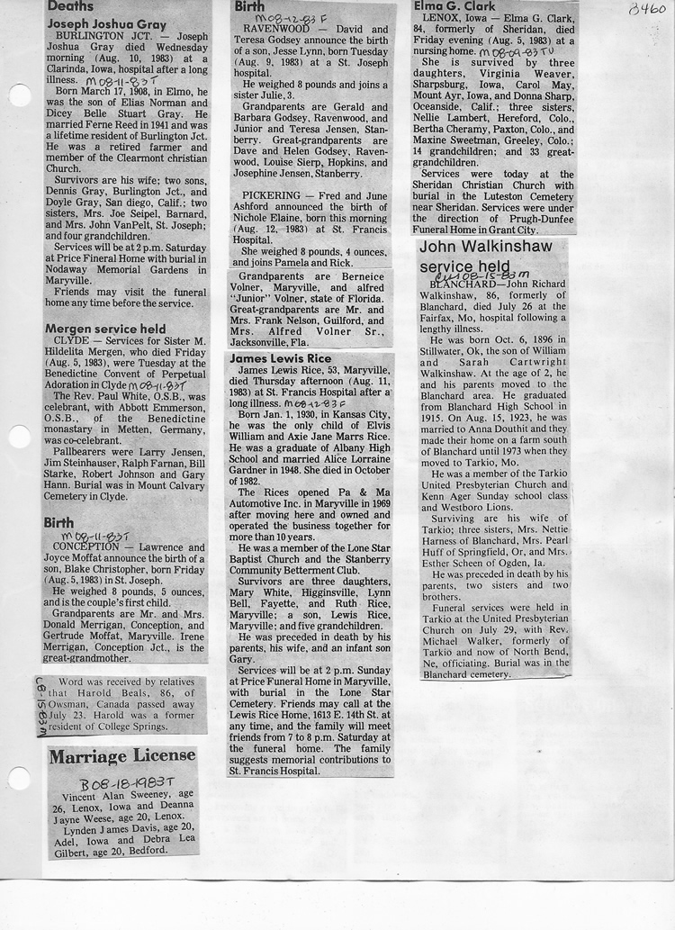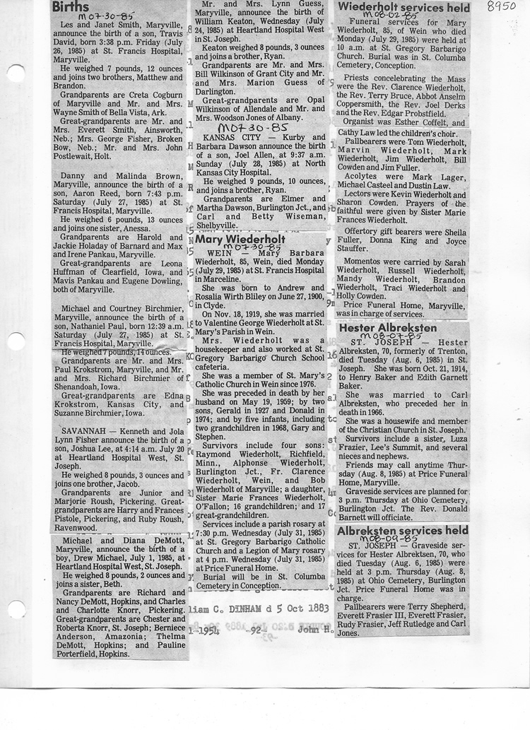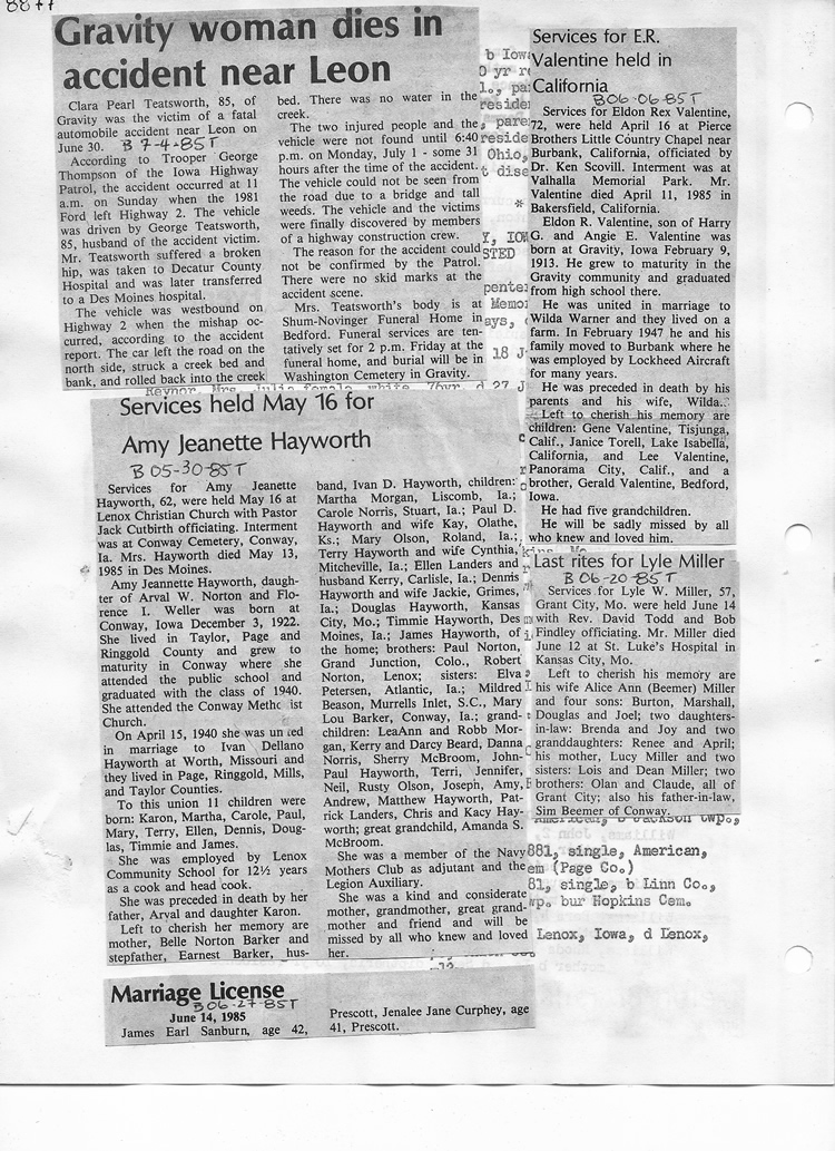O'Dell's Abstracted Newspaper Index - Clippings - #8000's
