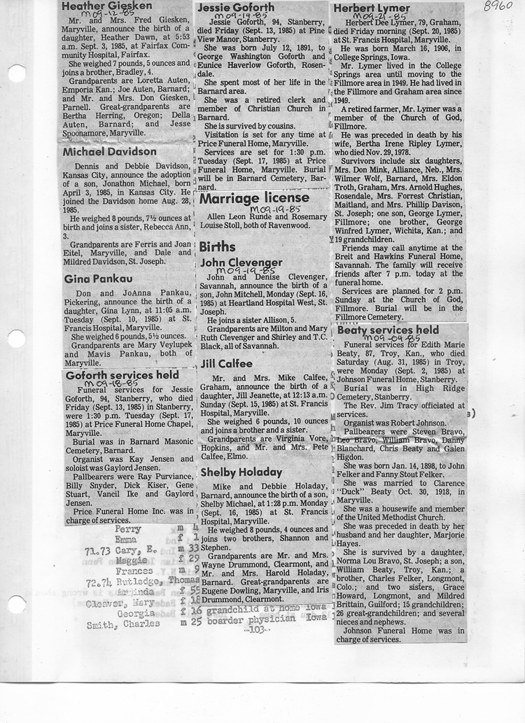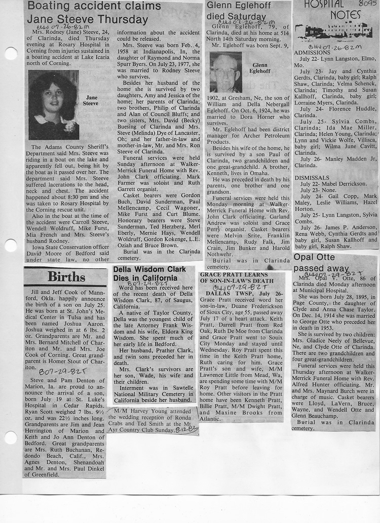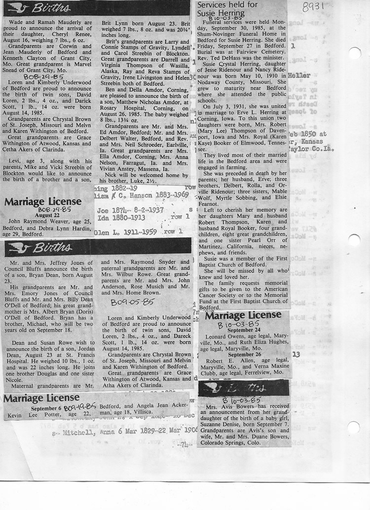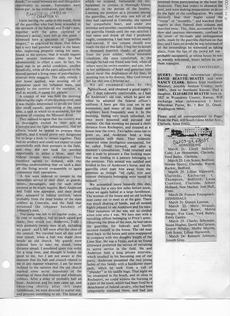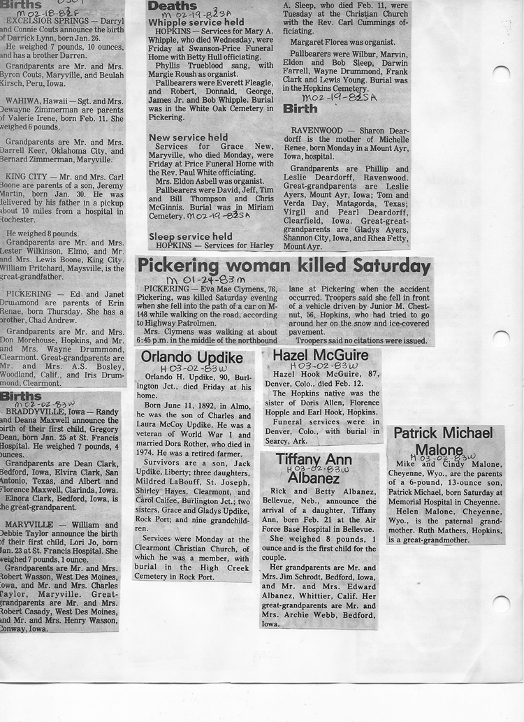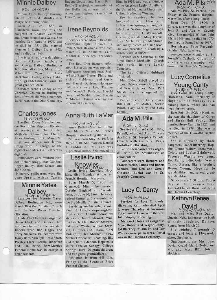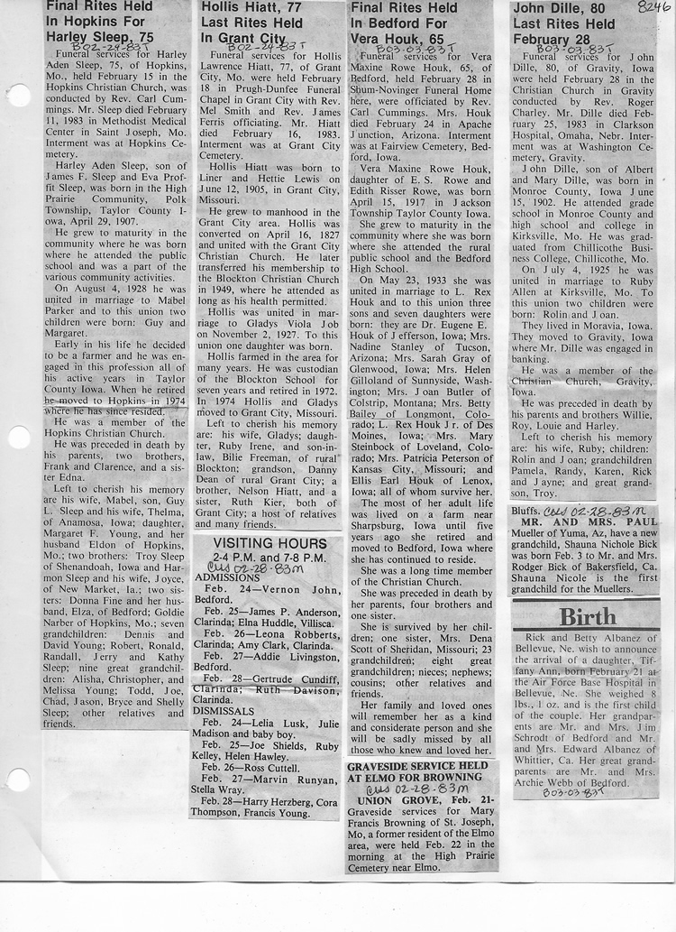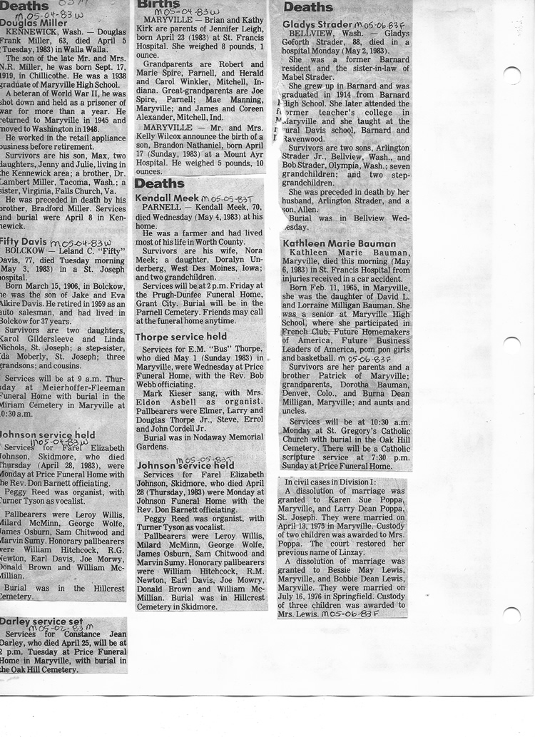 O'Dell's Abstracted Newspaper Index - Clippings - #8000's