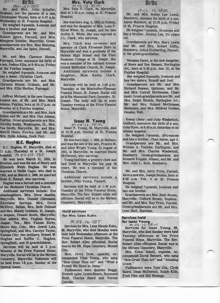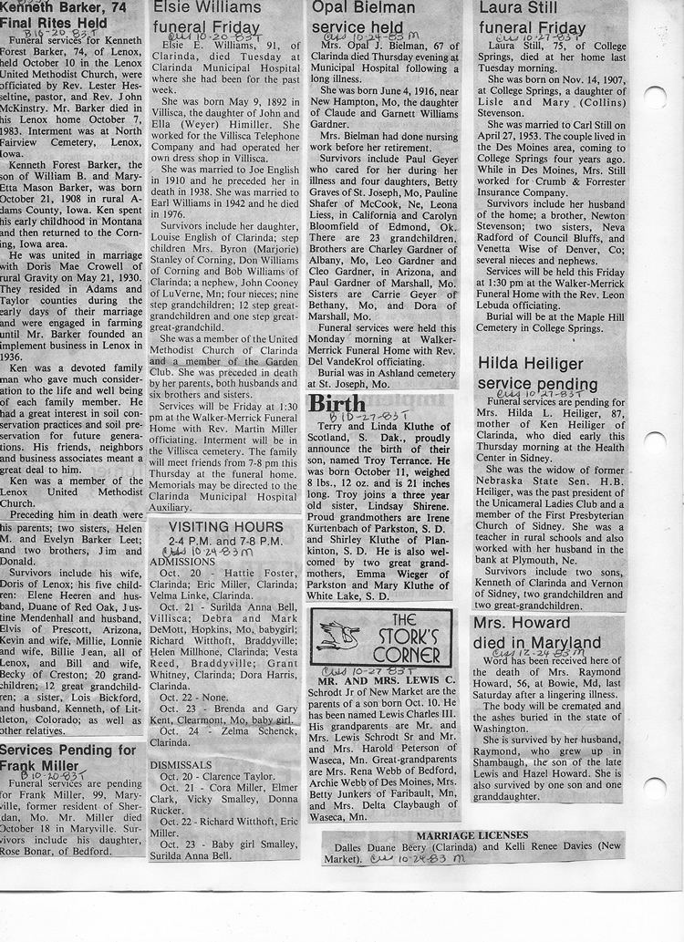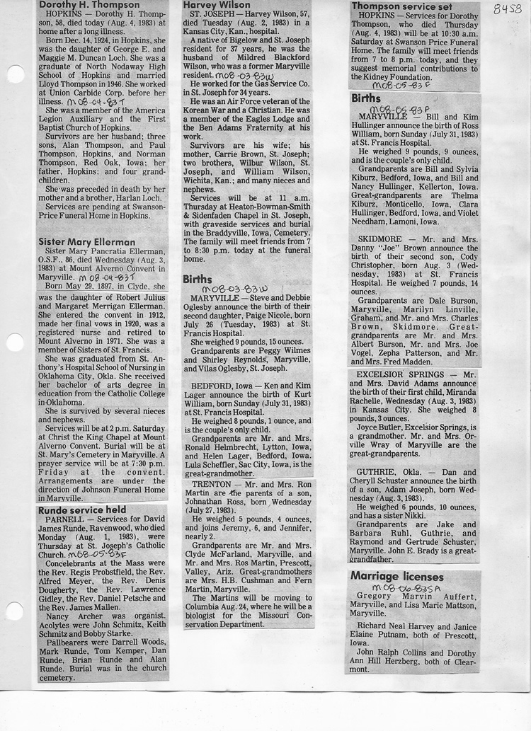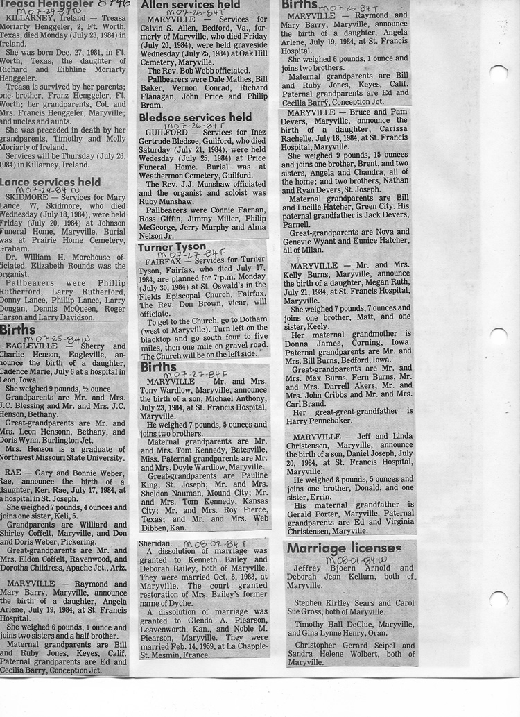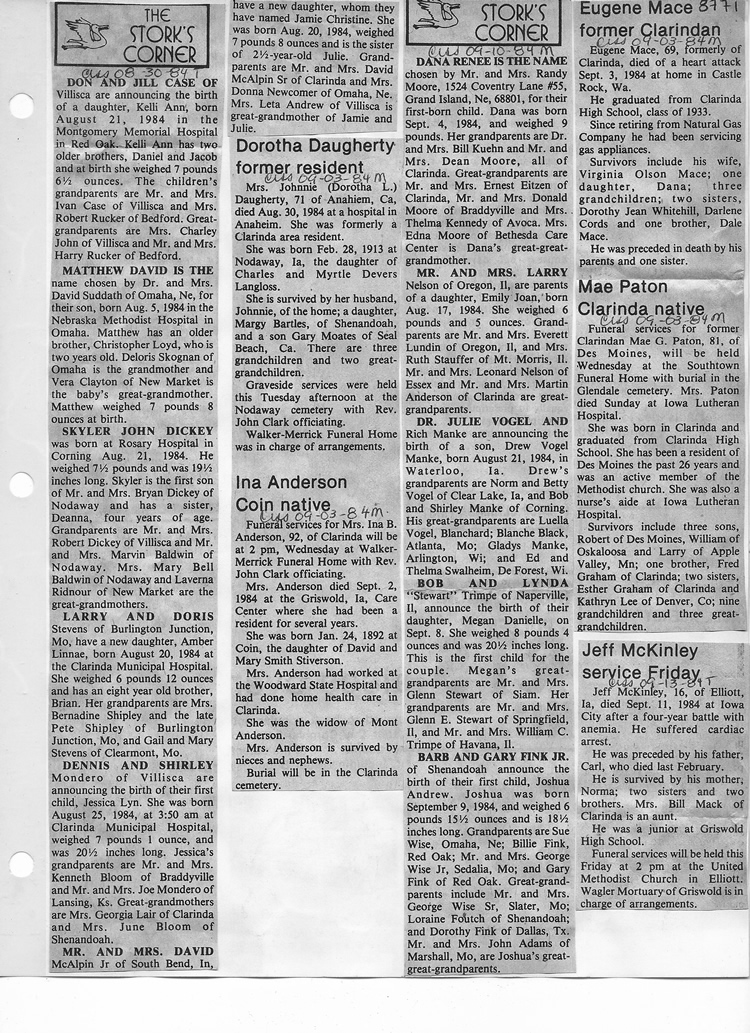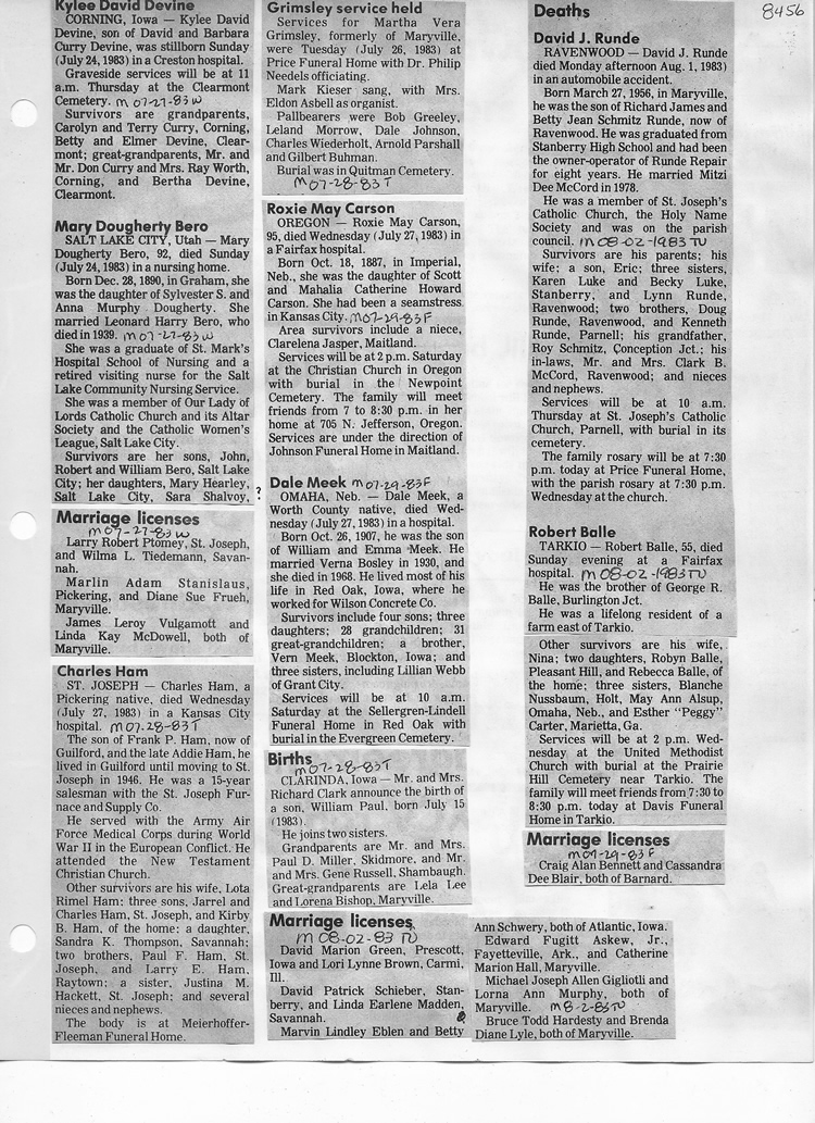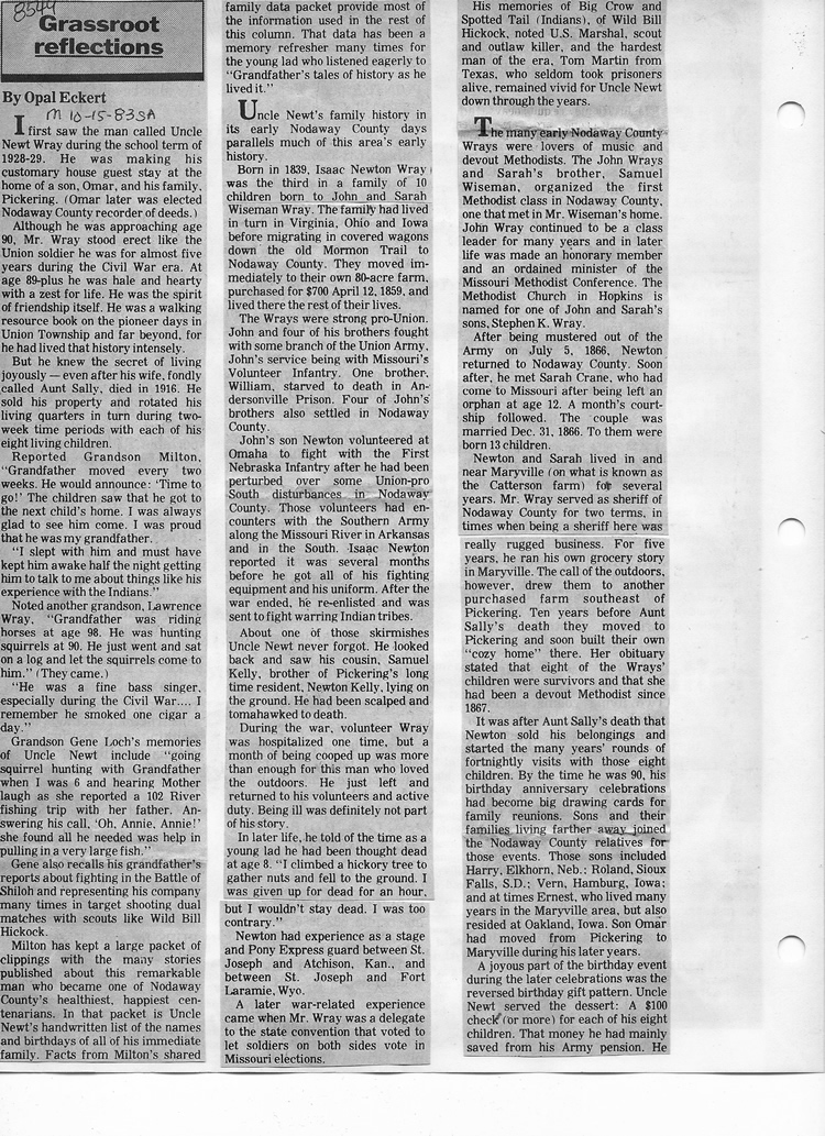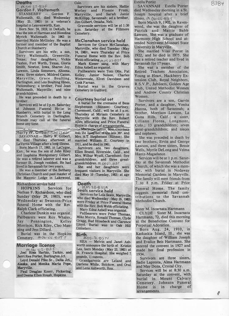 O'Dell's Abstracted Newspaper Index - Clippings - #8000's