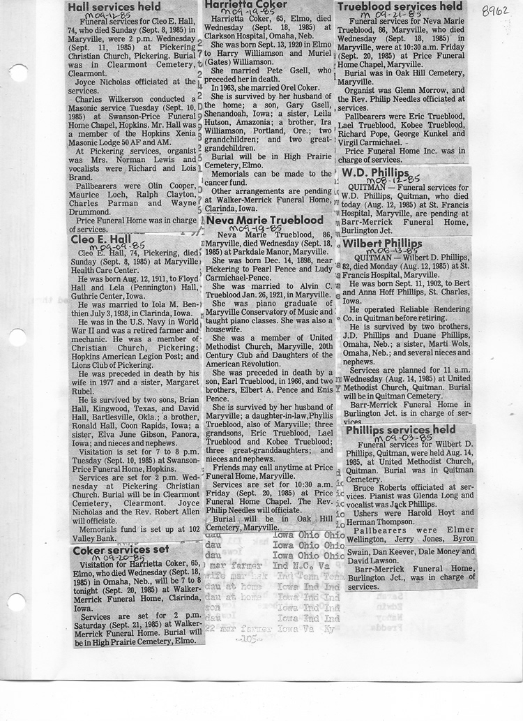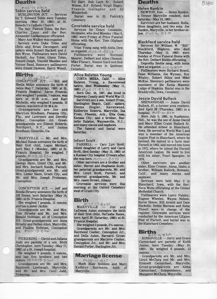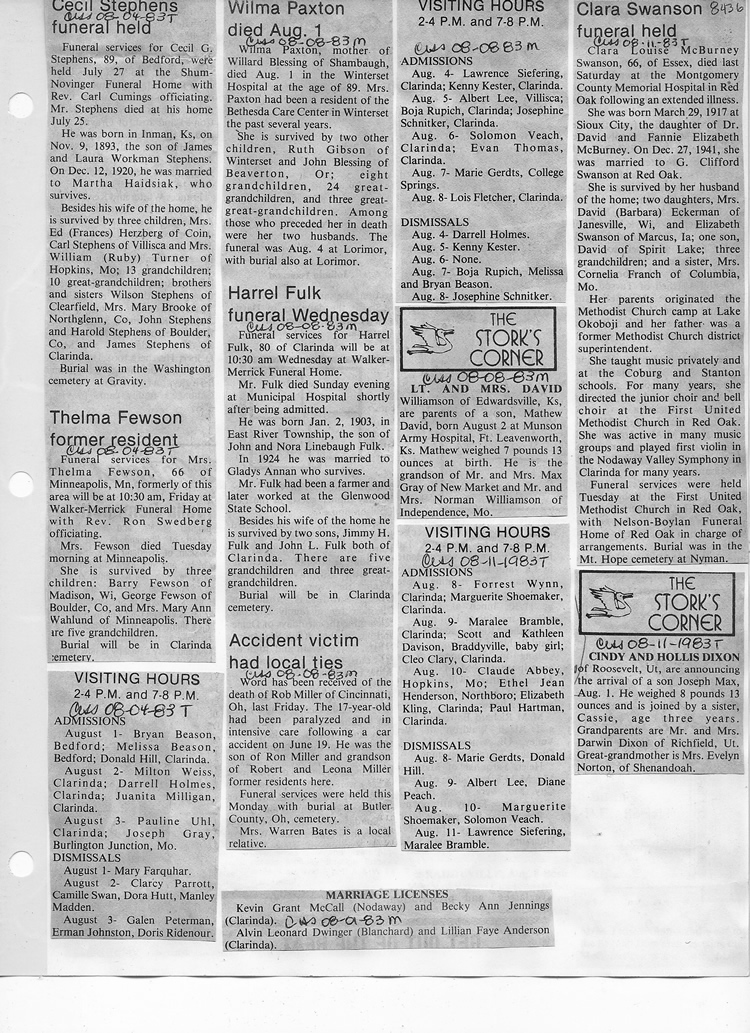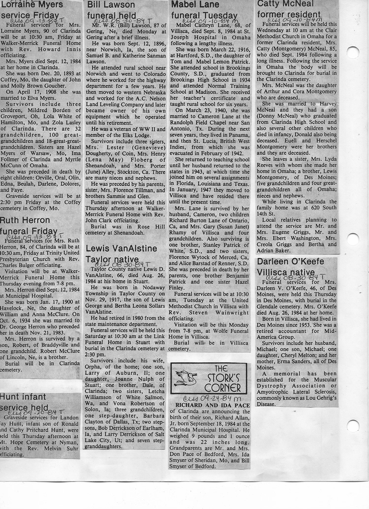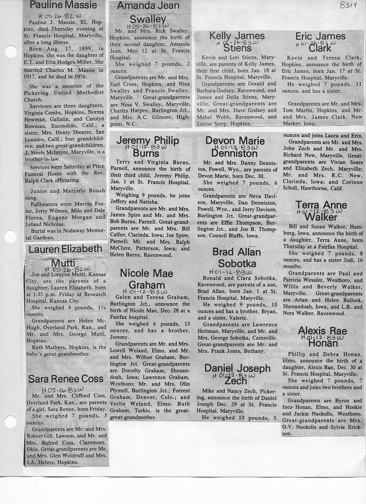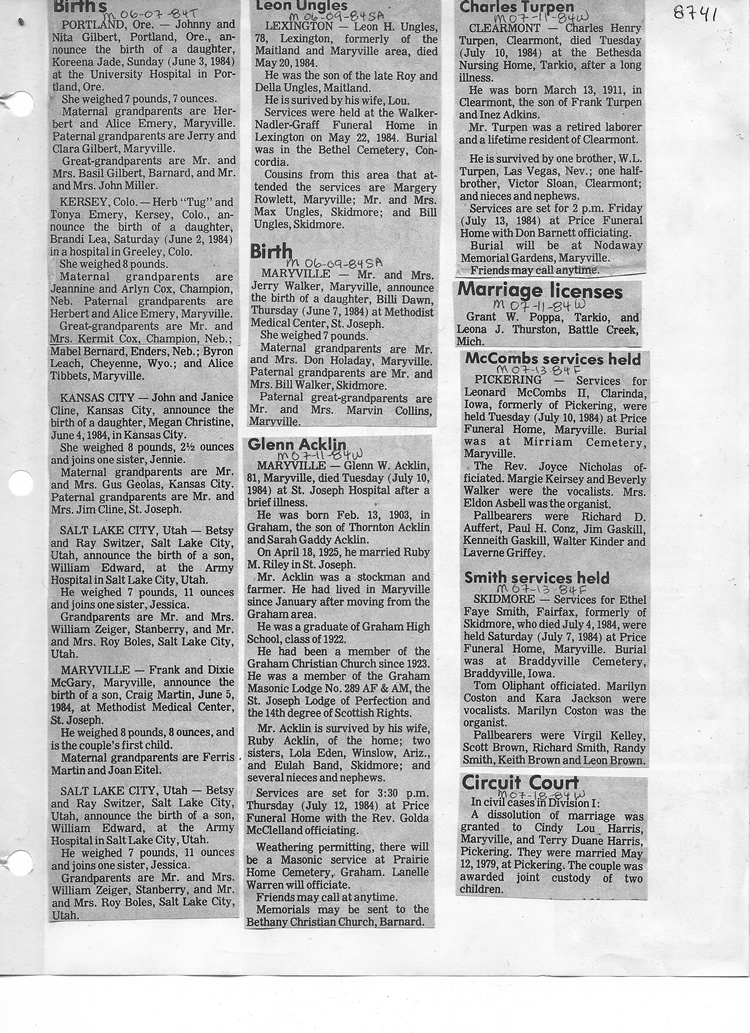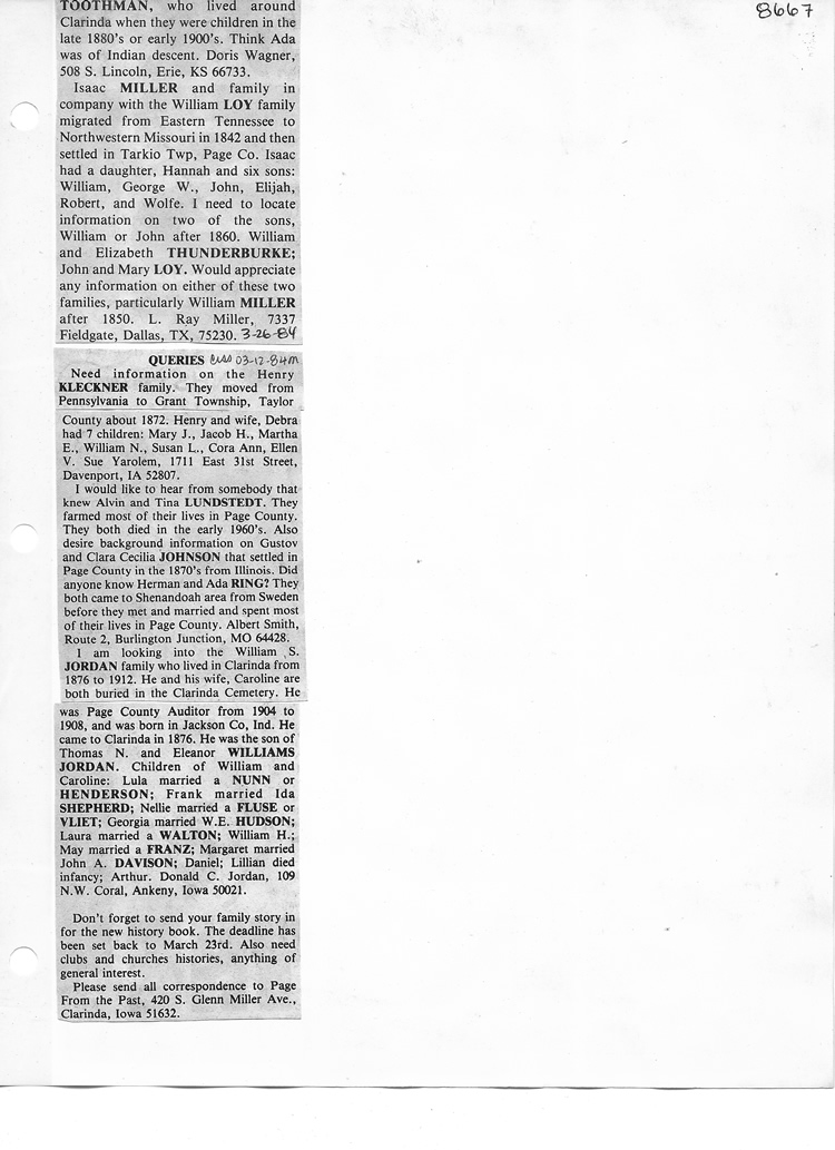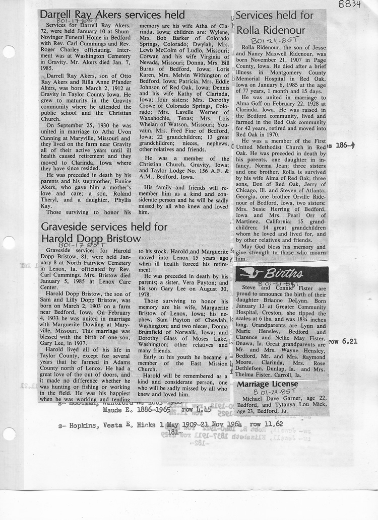 O'Dell's Abstracted Newspaper Index - Clippings - #8000's