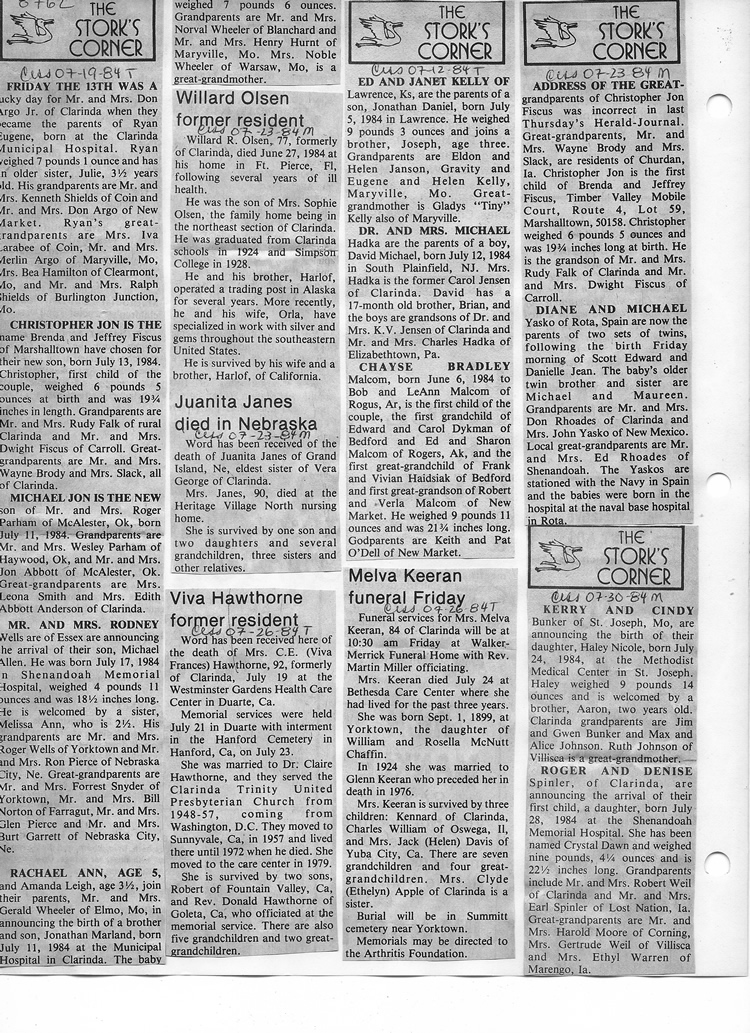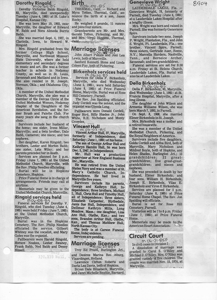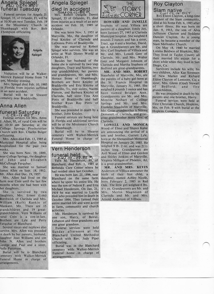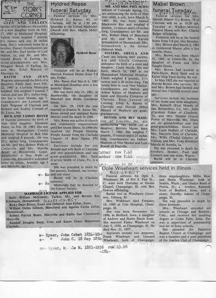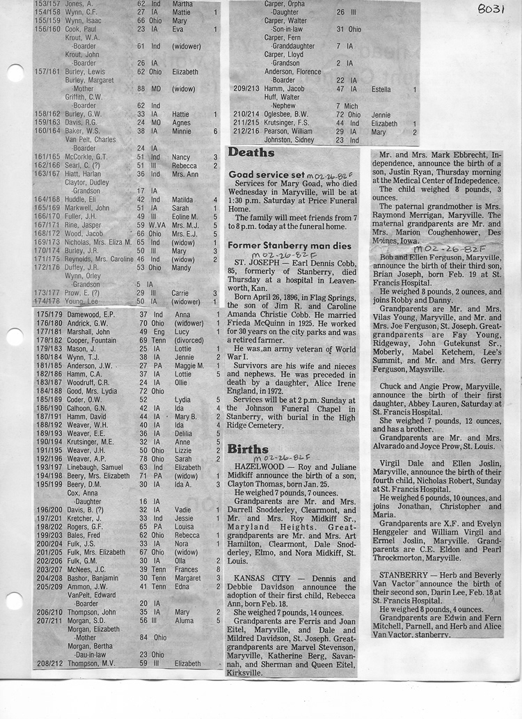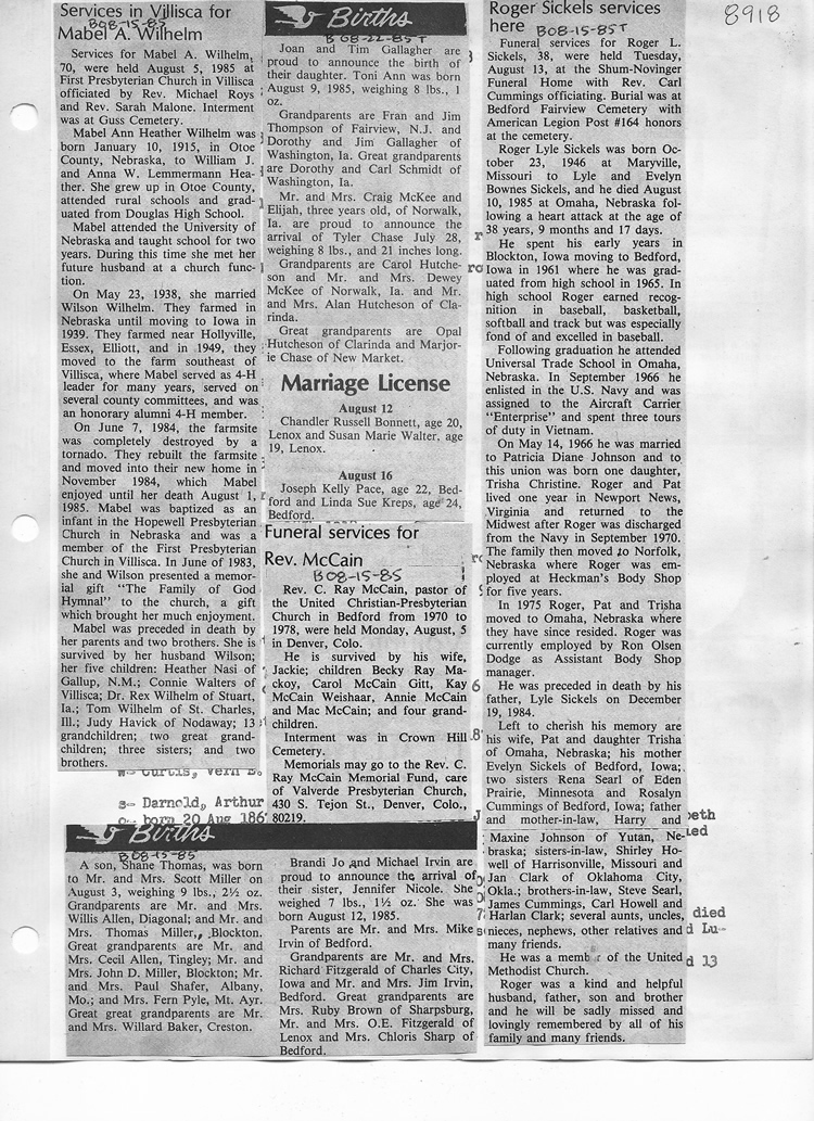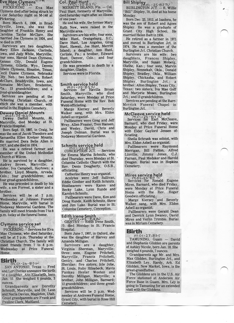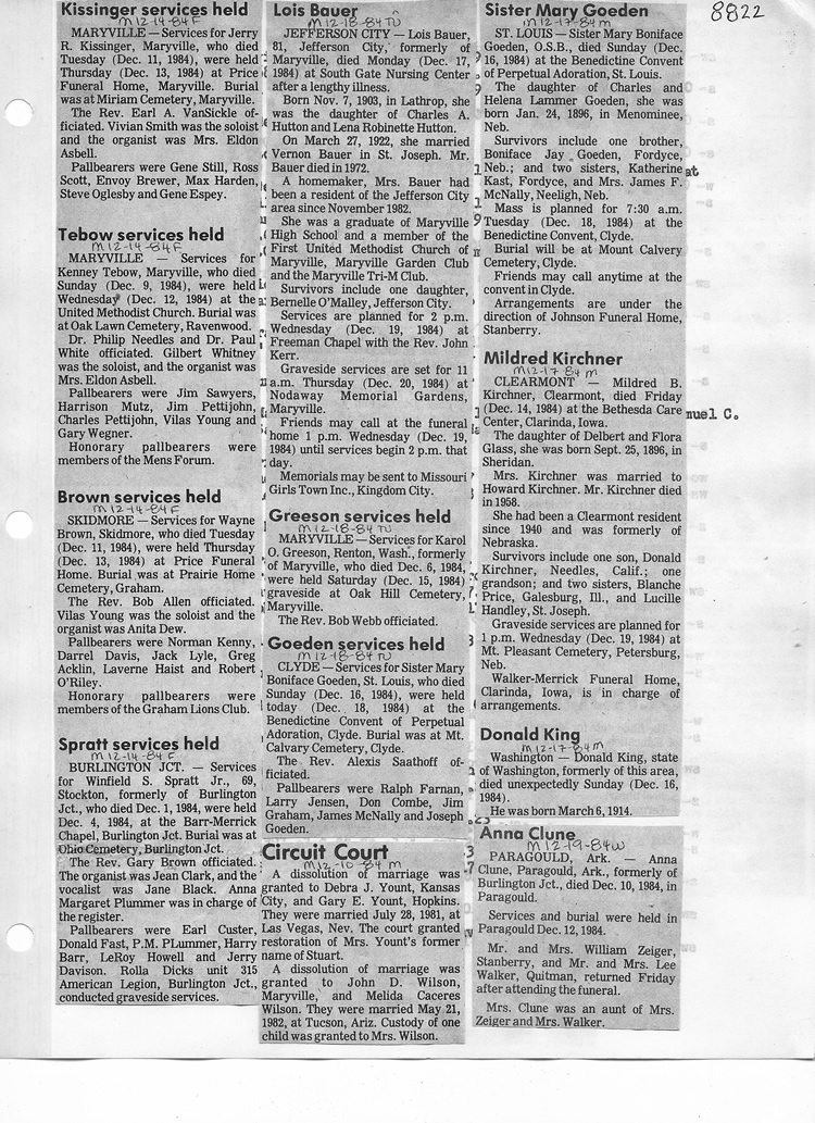 O'Dell's Abstracted Newspaper Index - Clippings - #8000's