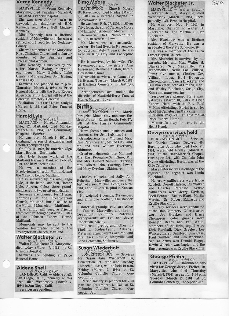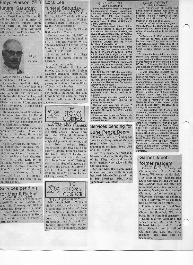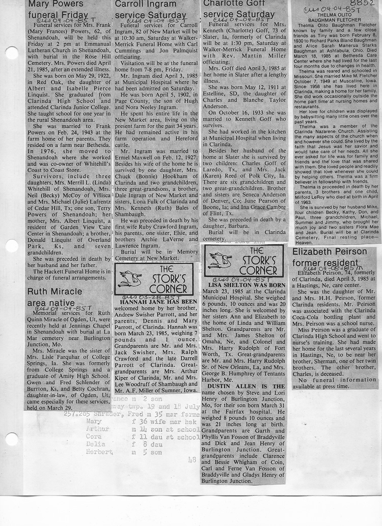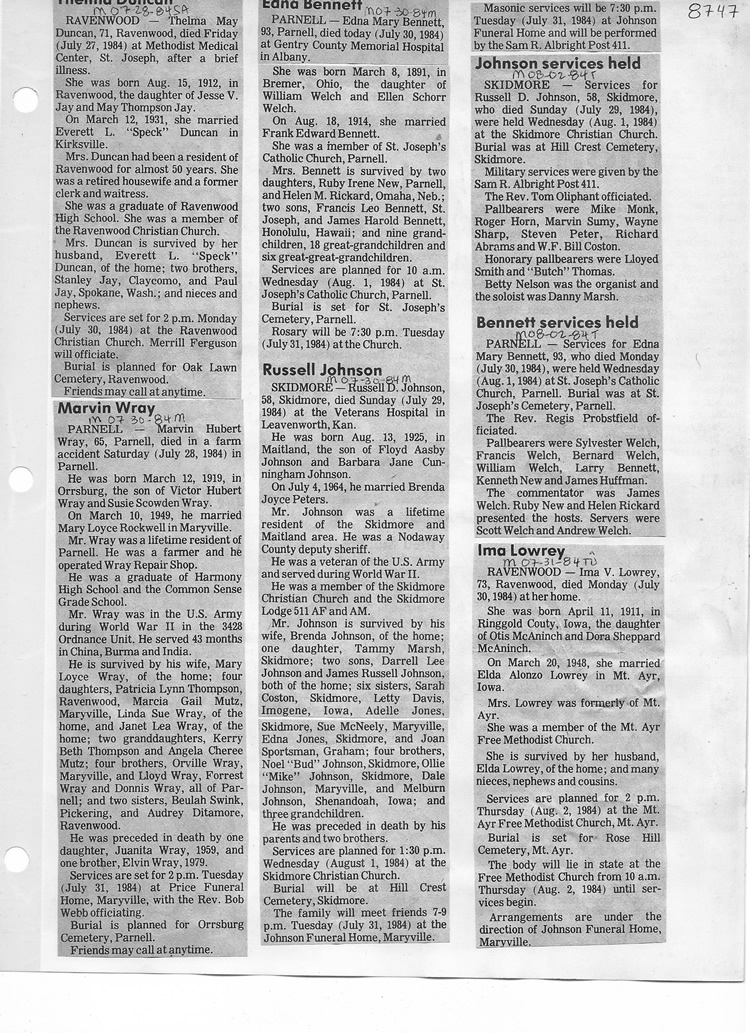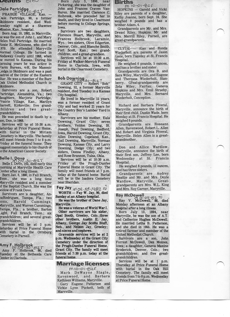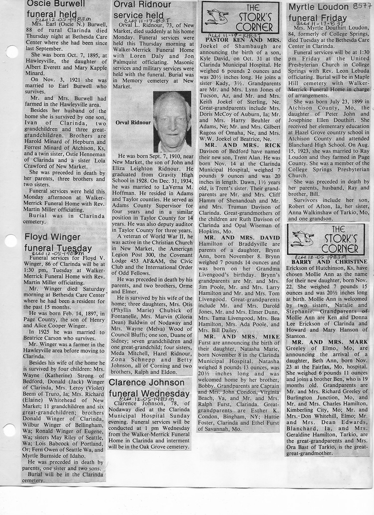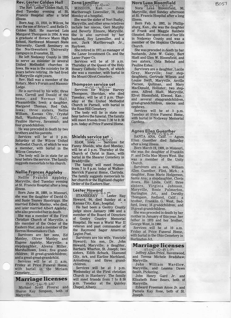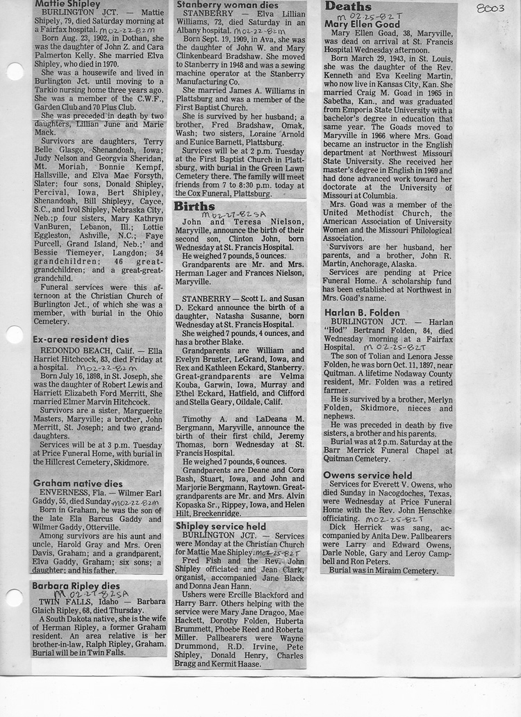 O'Dell's Abstracted Newspaper Index - Clippings - #8000's