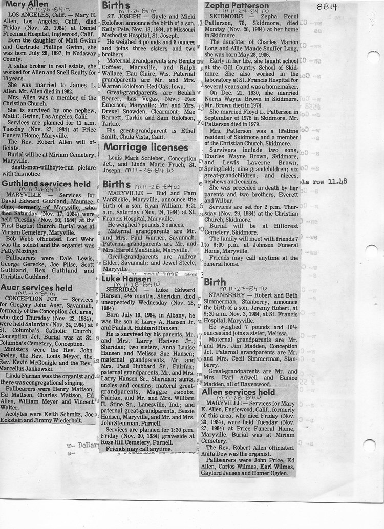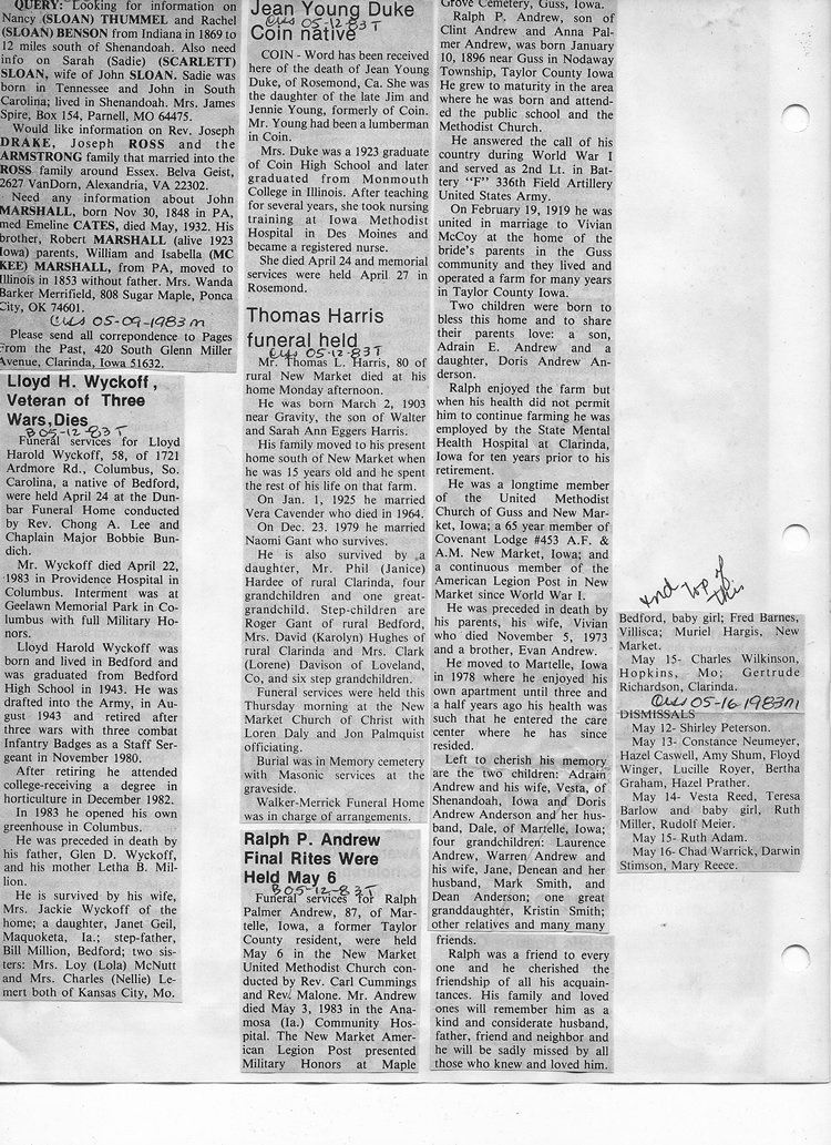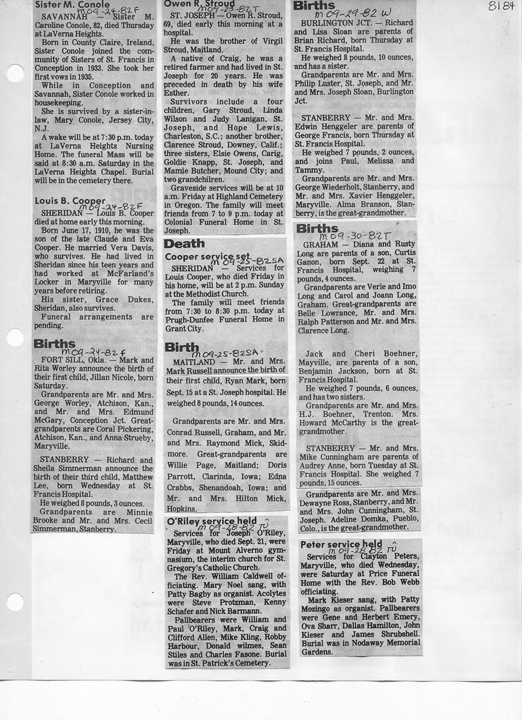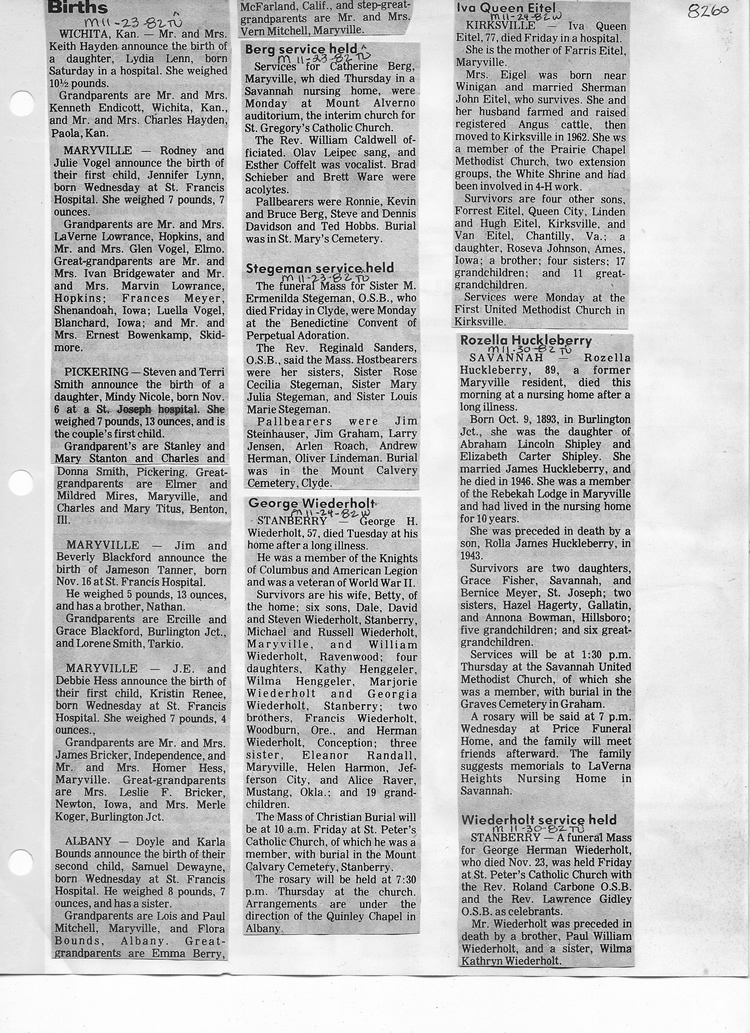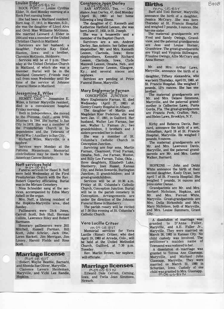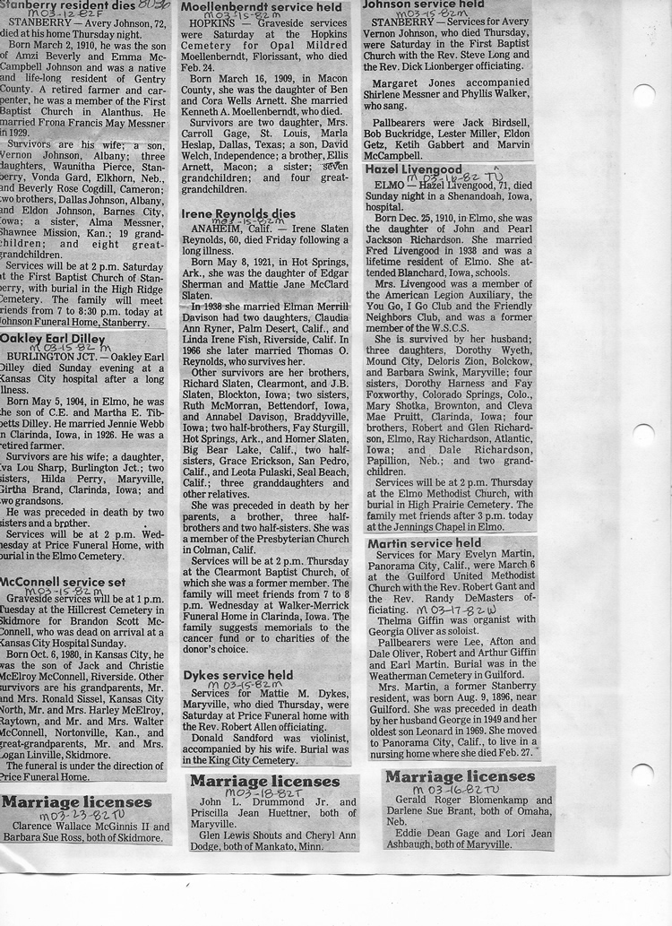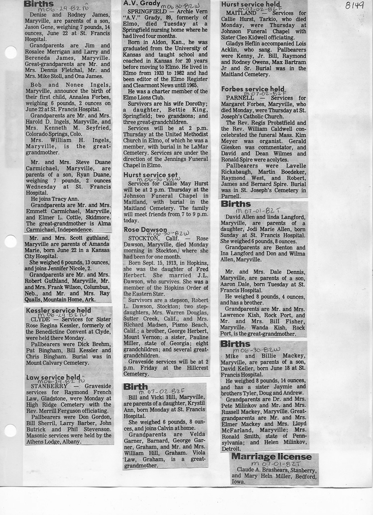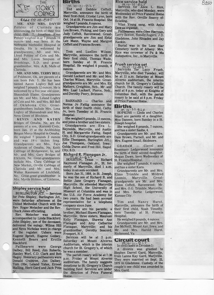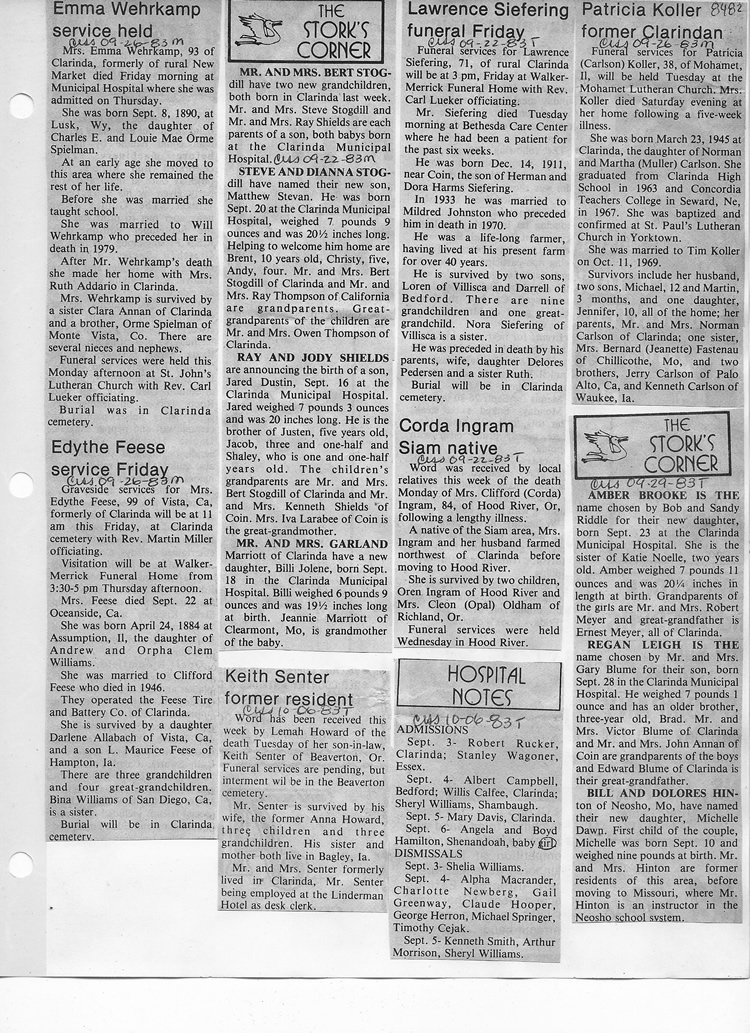 O'Dell's Abstracted Newspaper Index - Clippings - #8000's