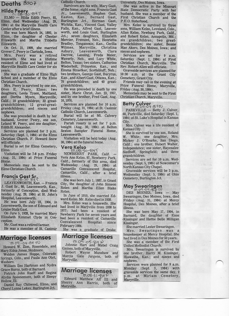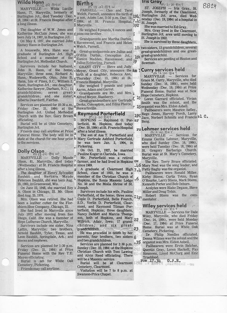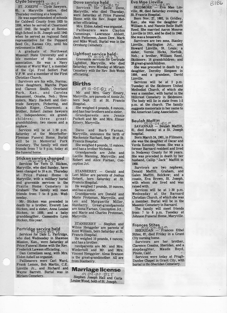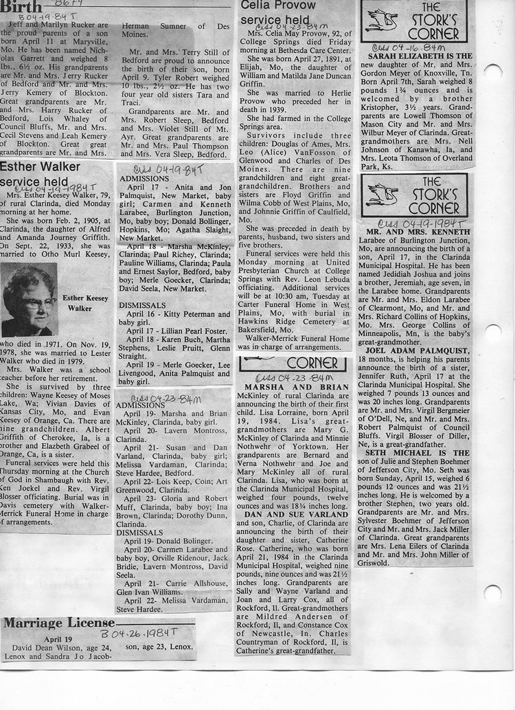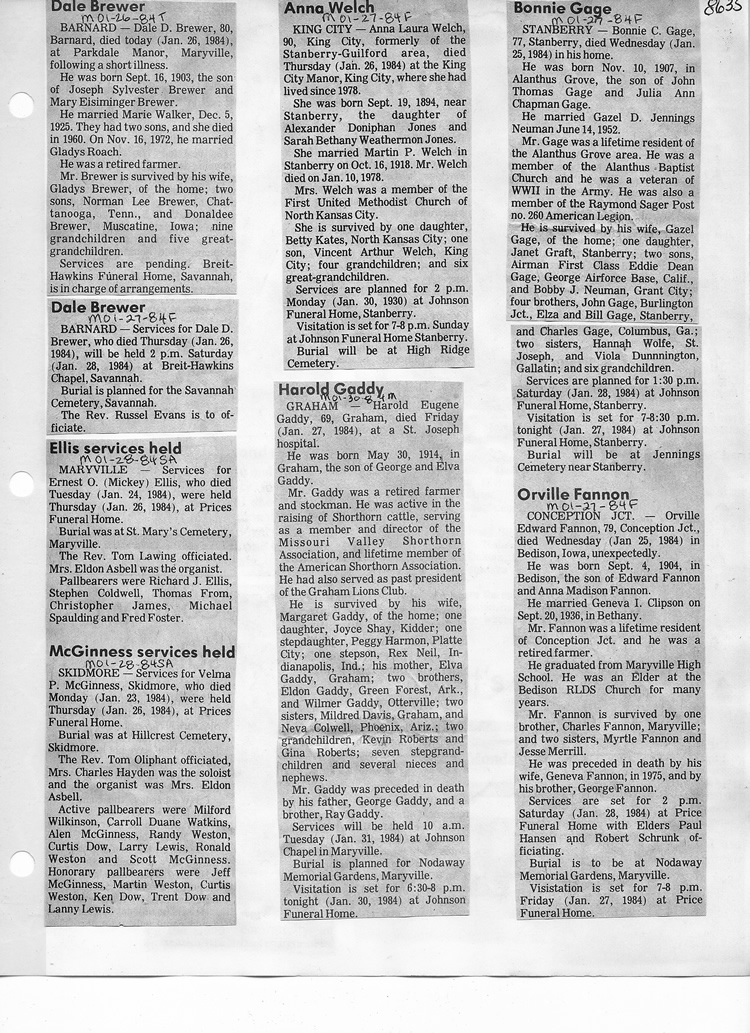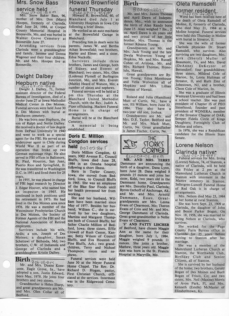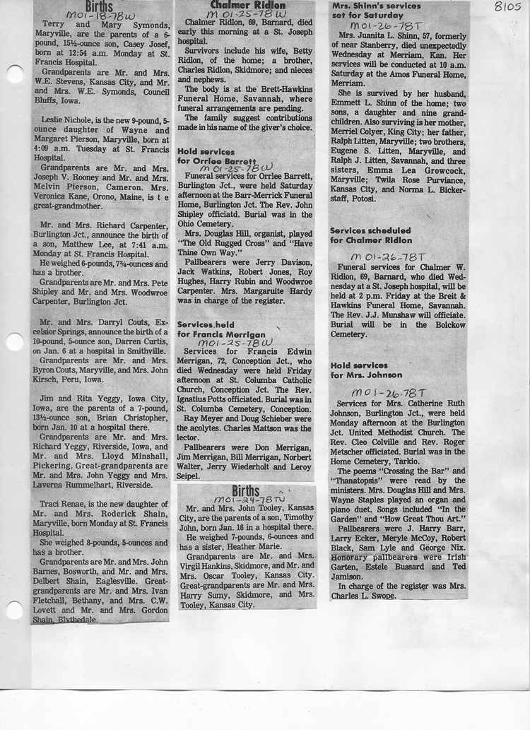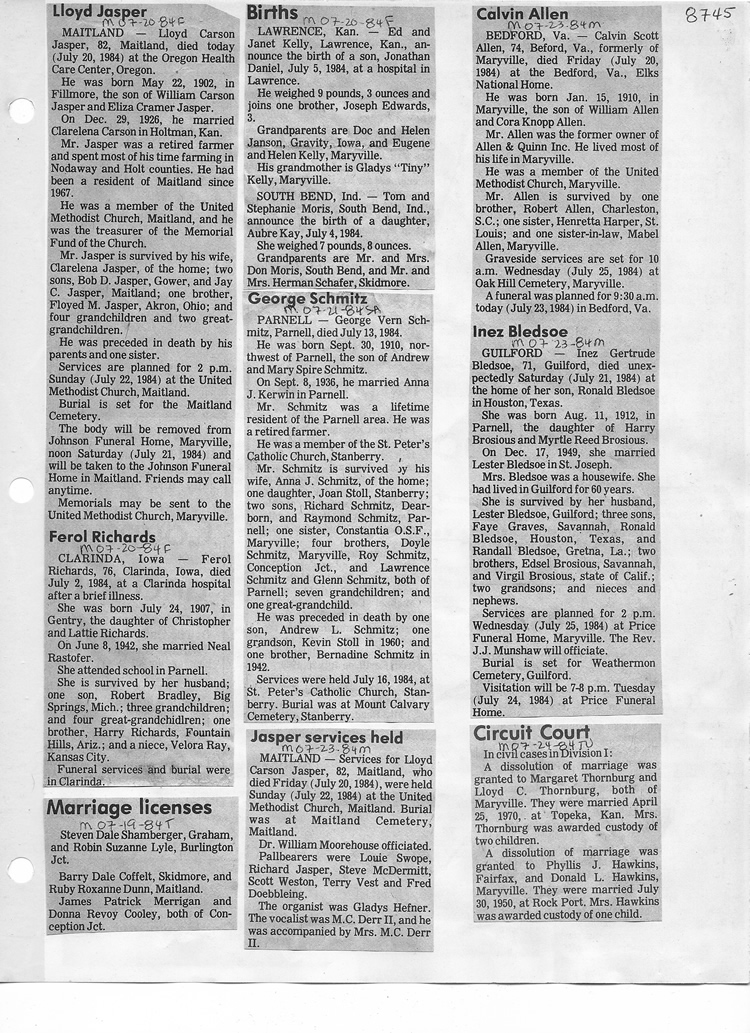 O'Dell's Abstracted Newspaper Index - Clippings - #8000's