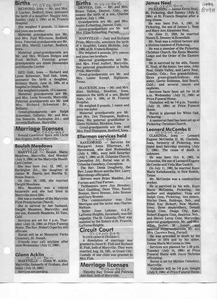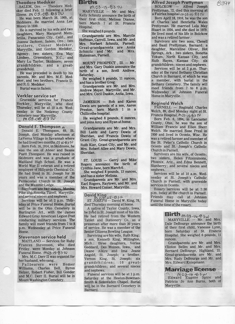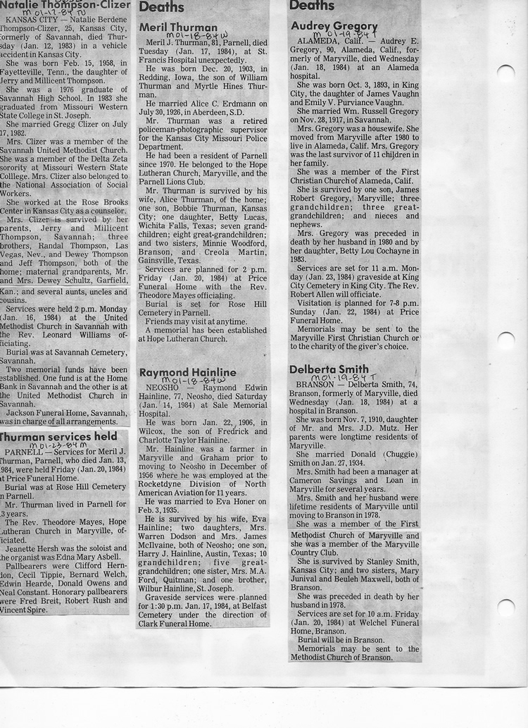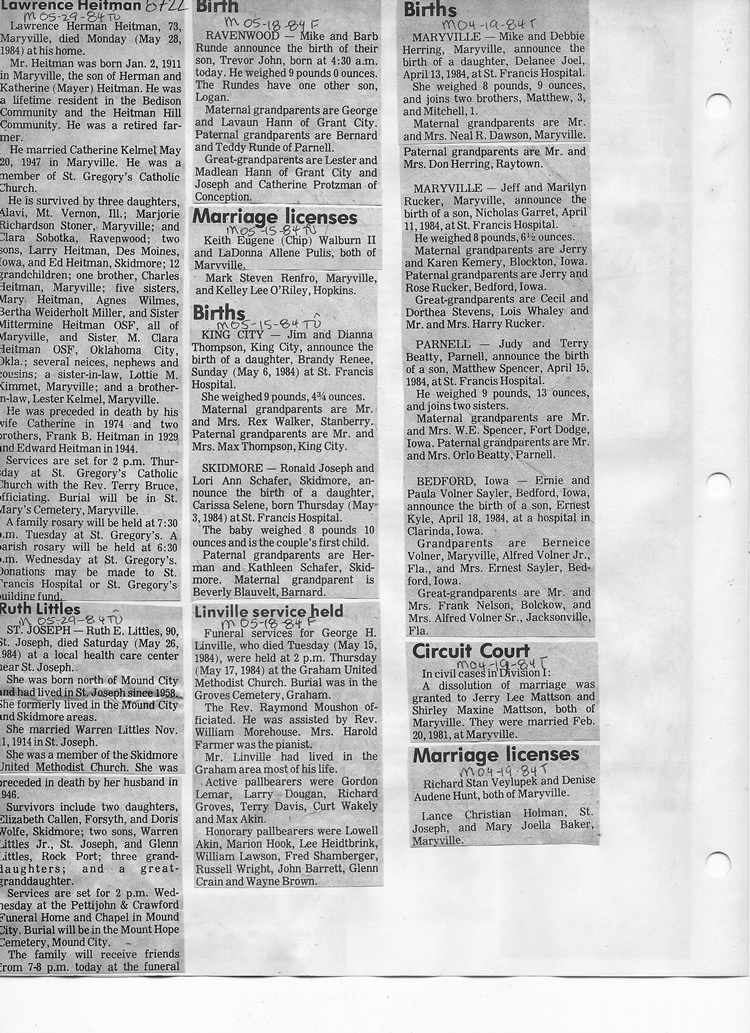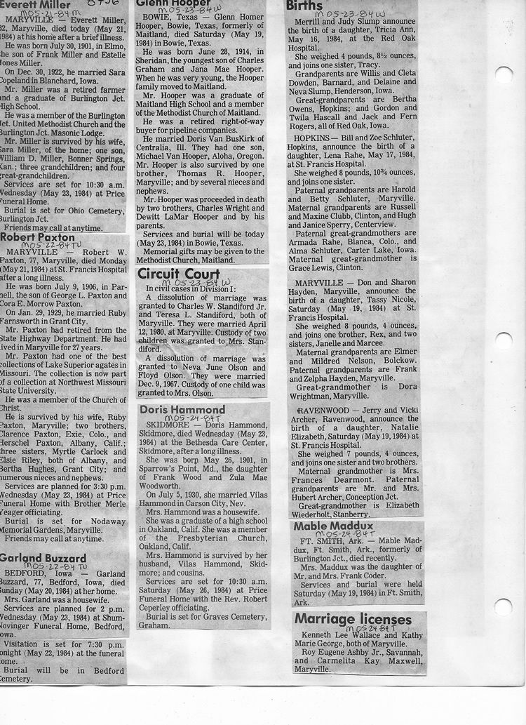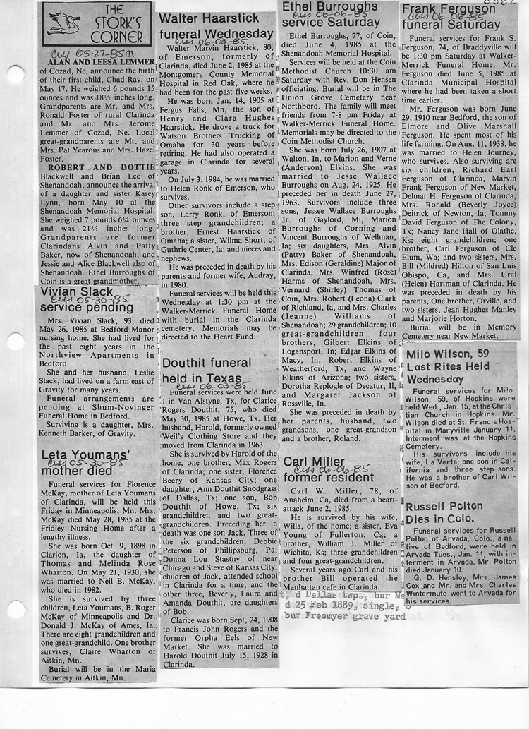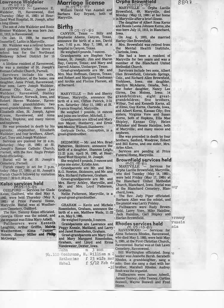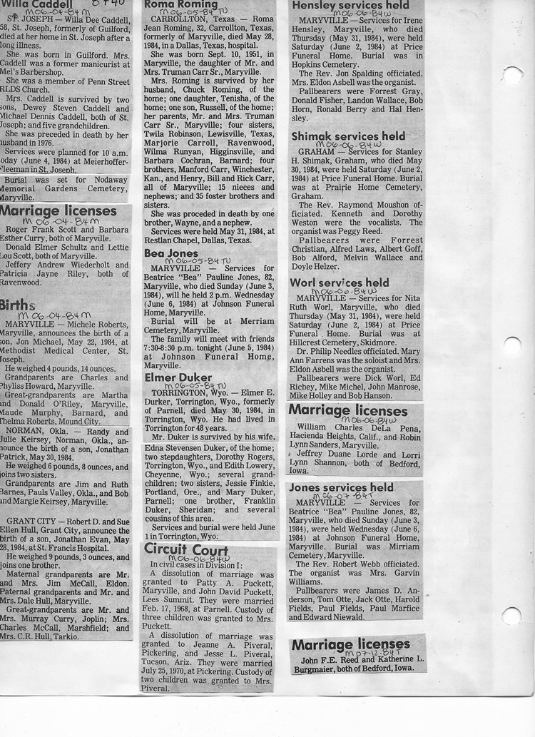 O'Dell's Abstracted Newspaper Index - Clippings - #8000's