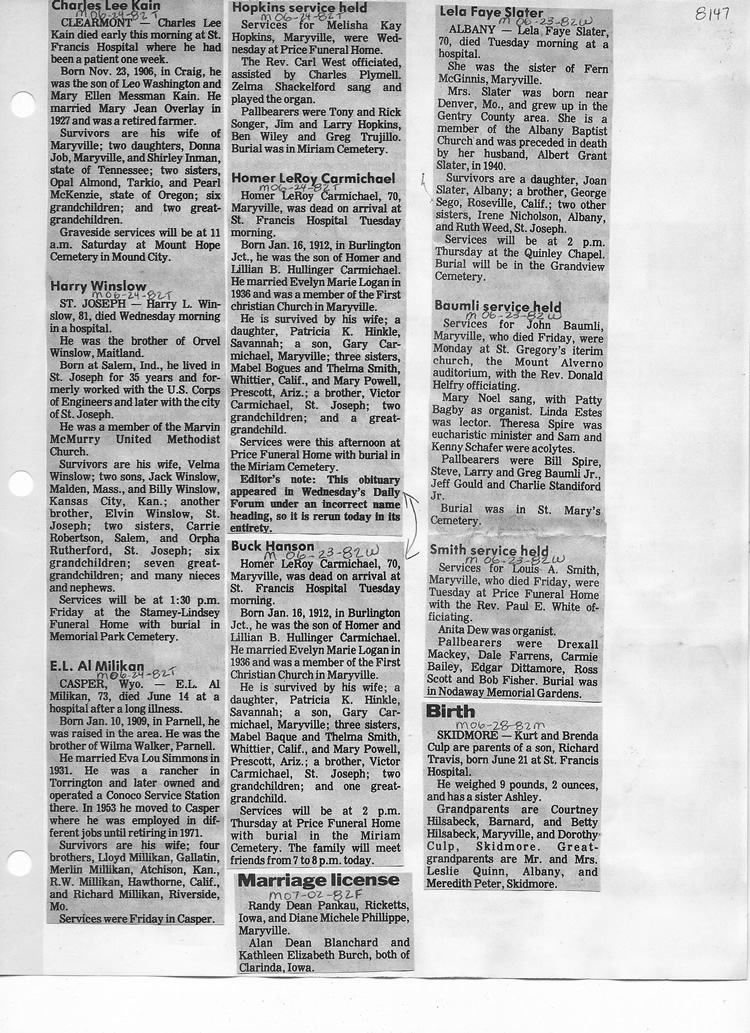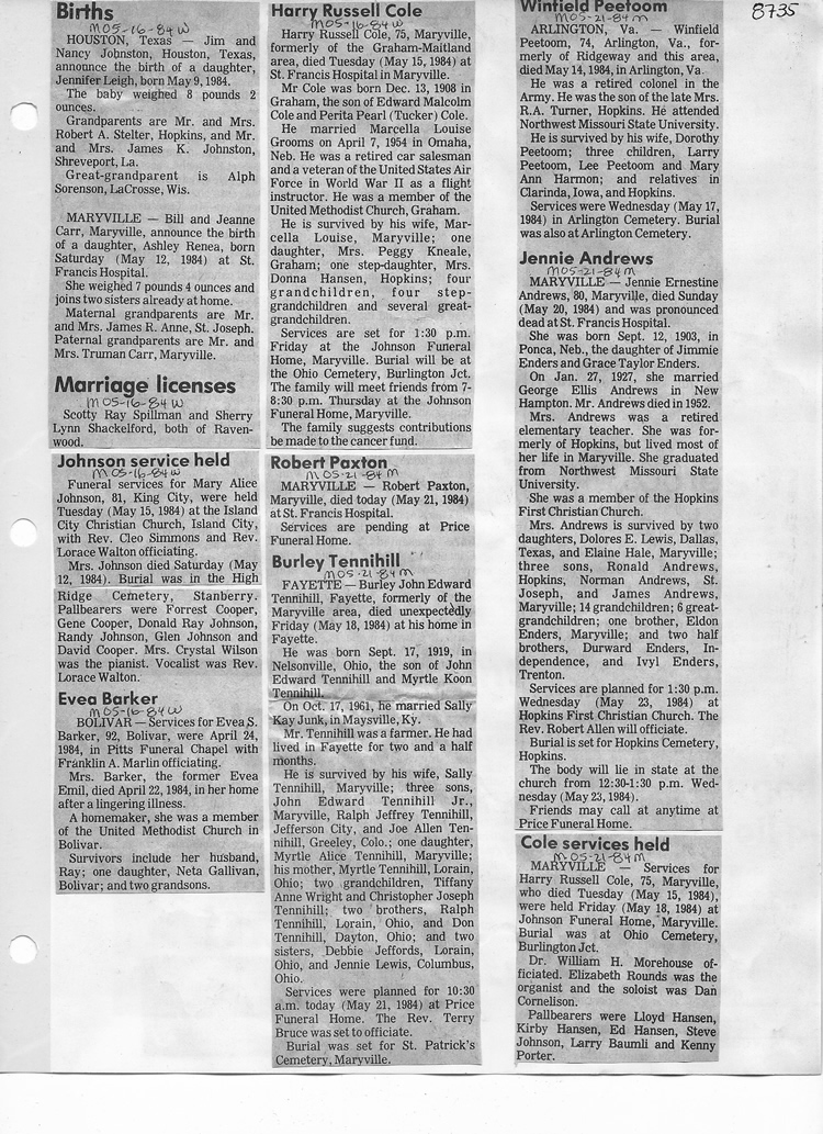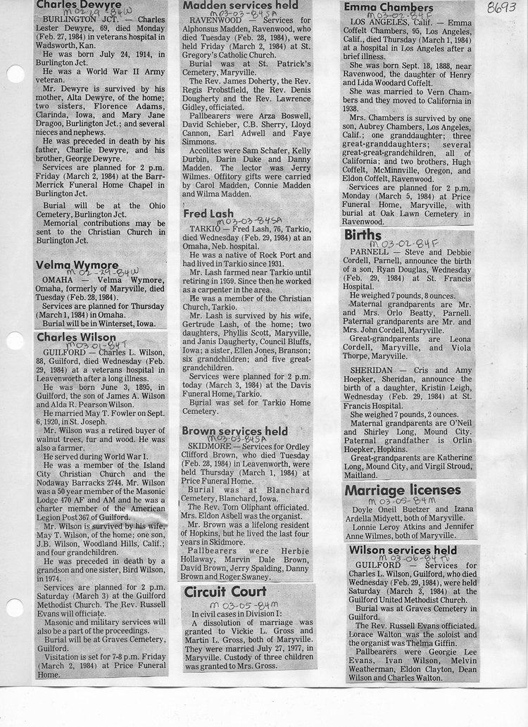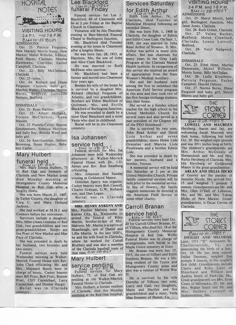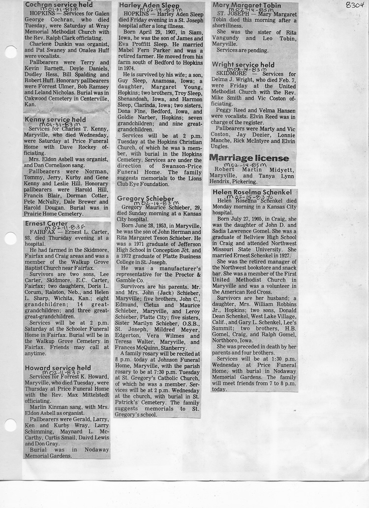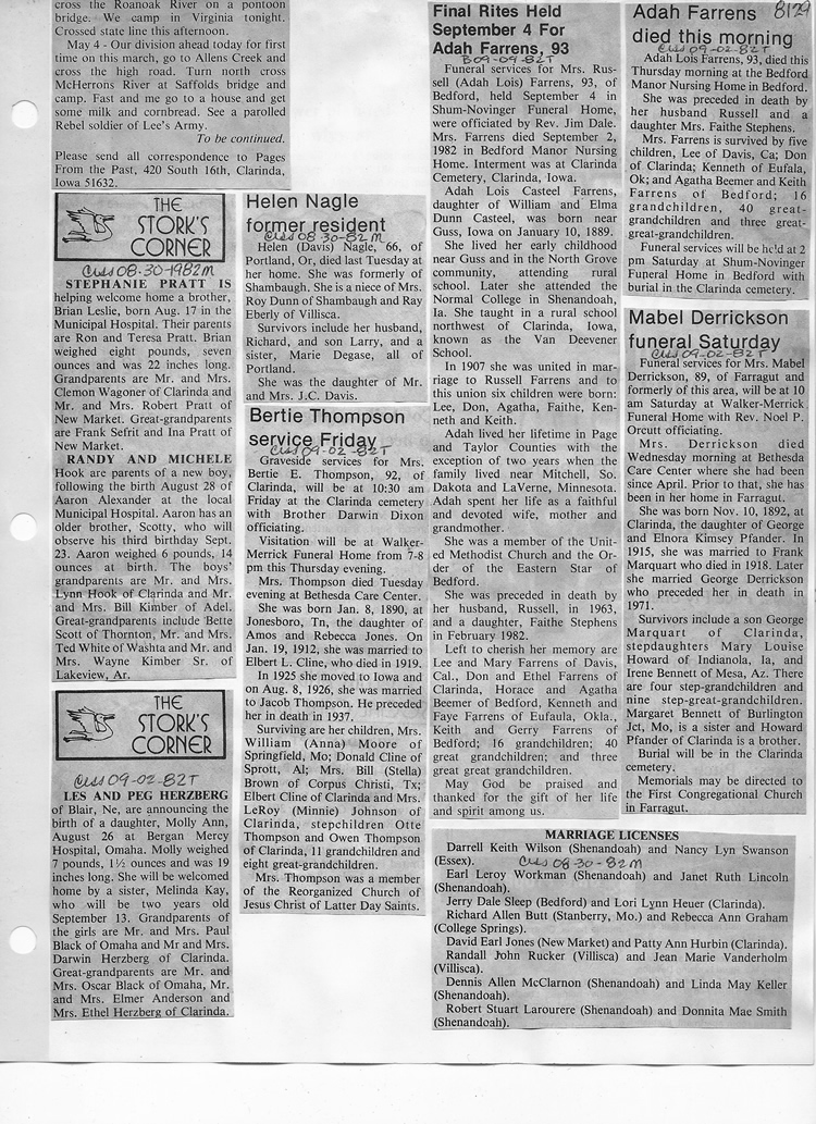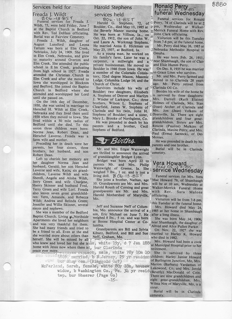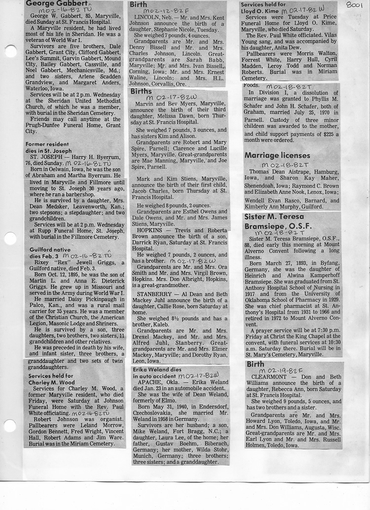 O'Dell's Abstracted Newspaper Index - Clippings - #8000's